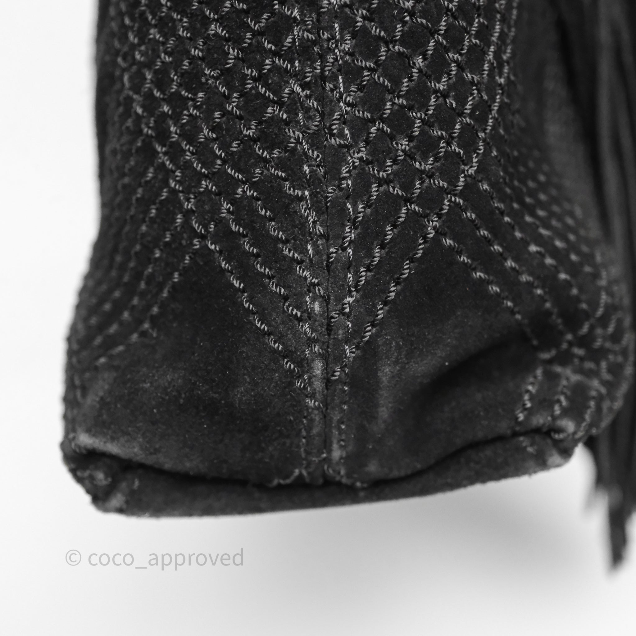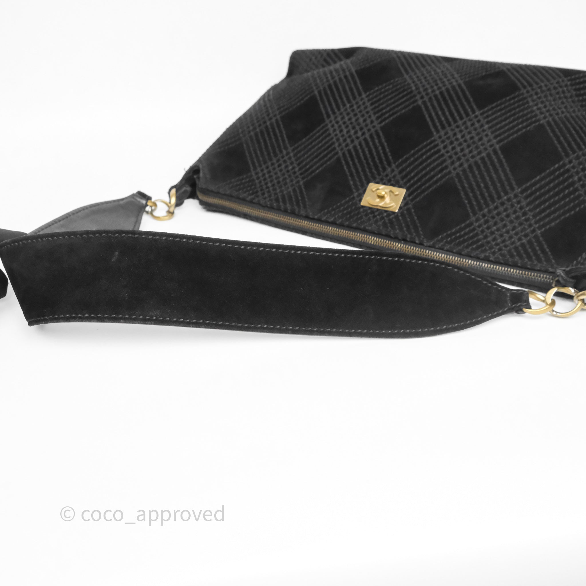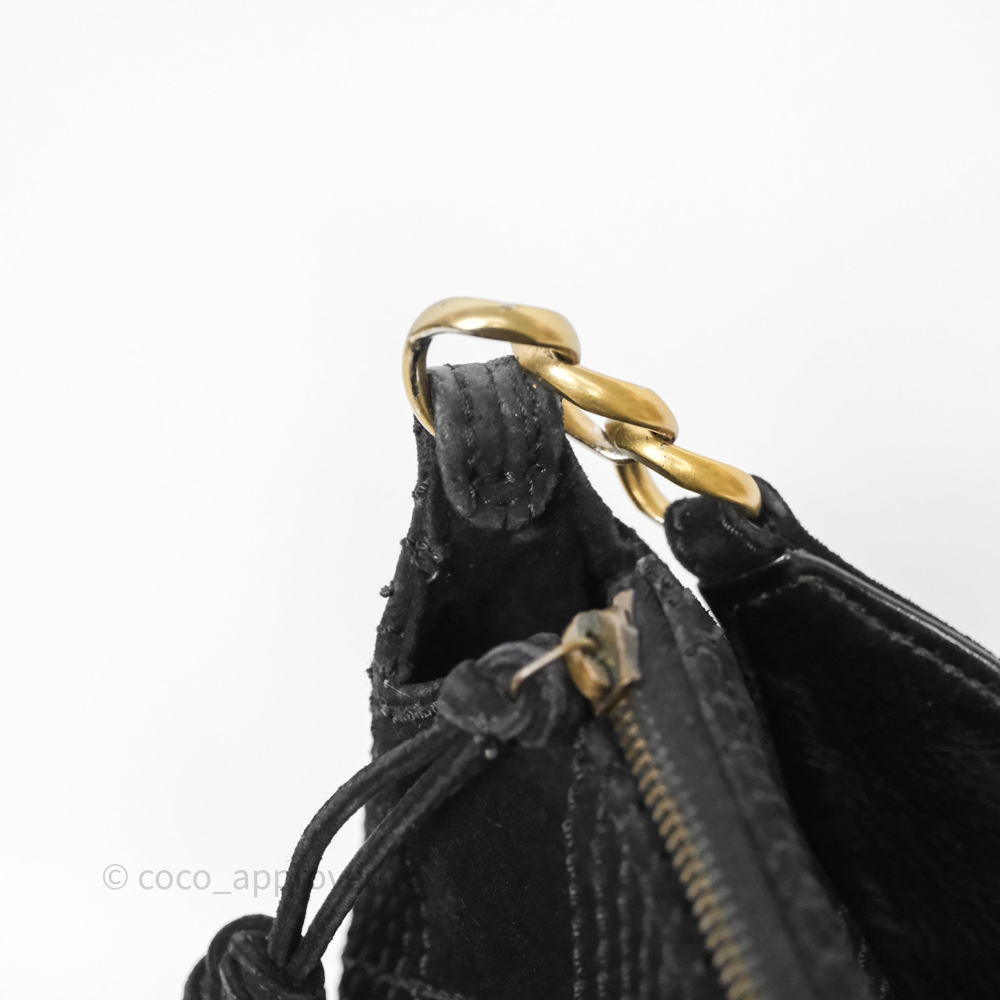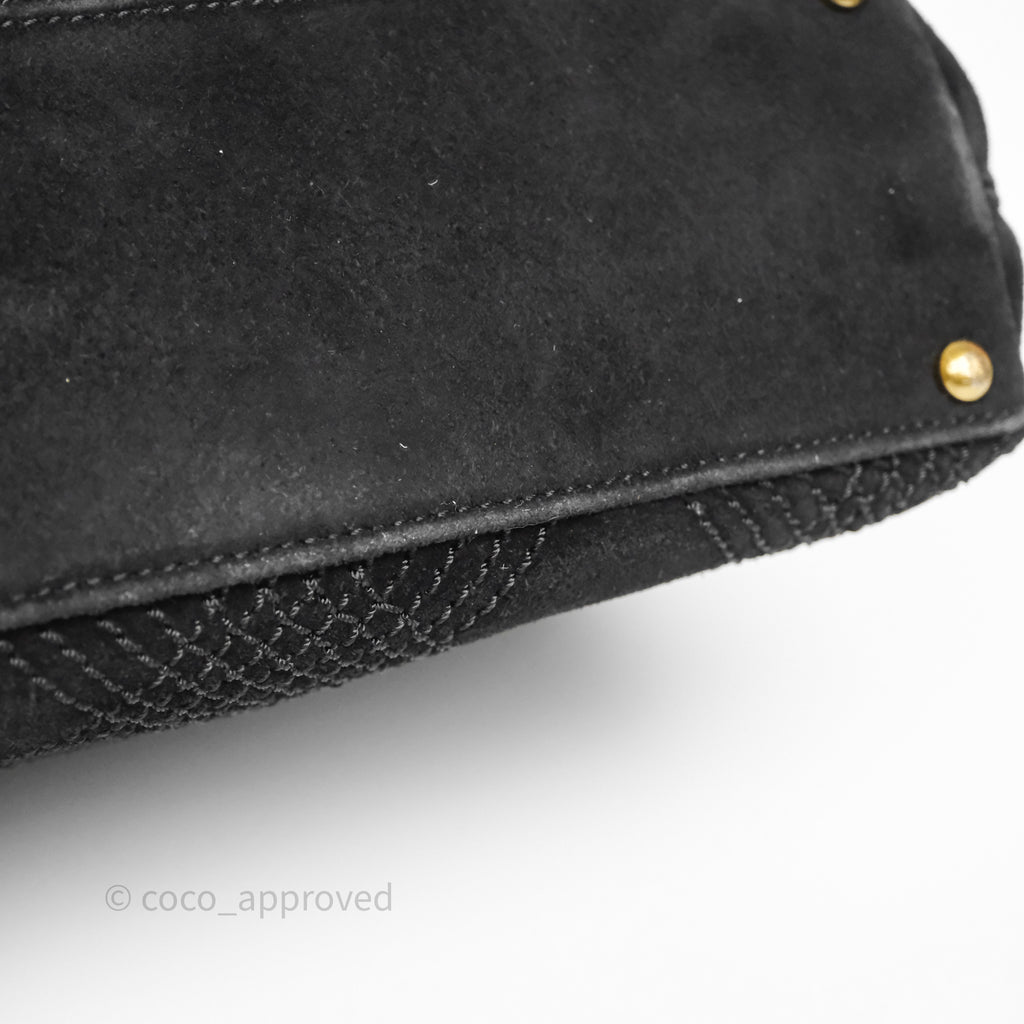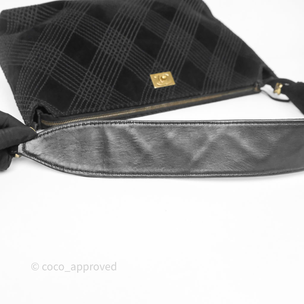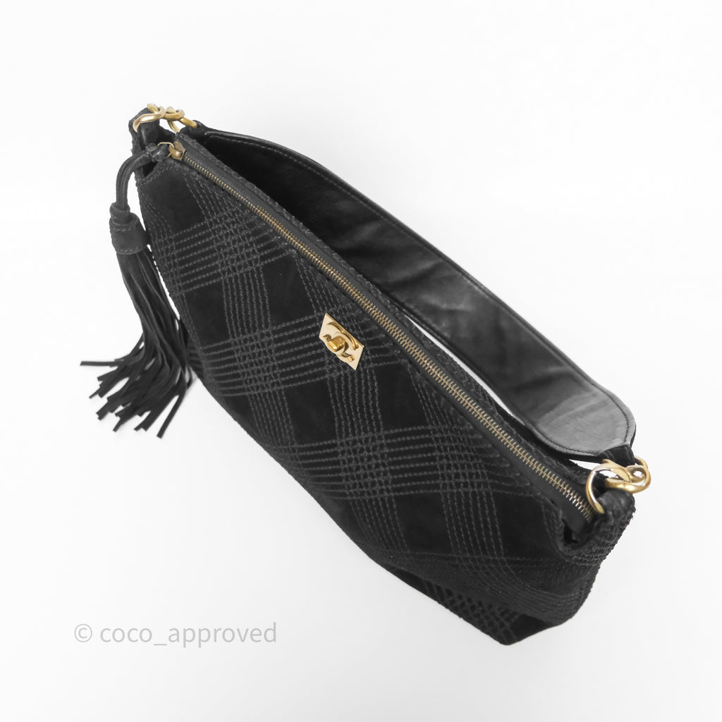 Chanel Vintage Shoulder Bag Quilted Black Suede Aged Gold Hardware