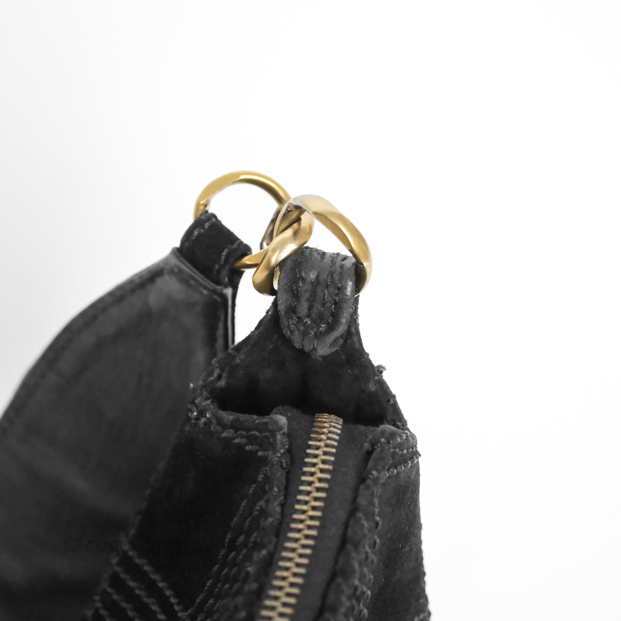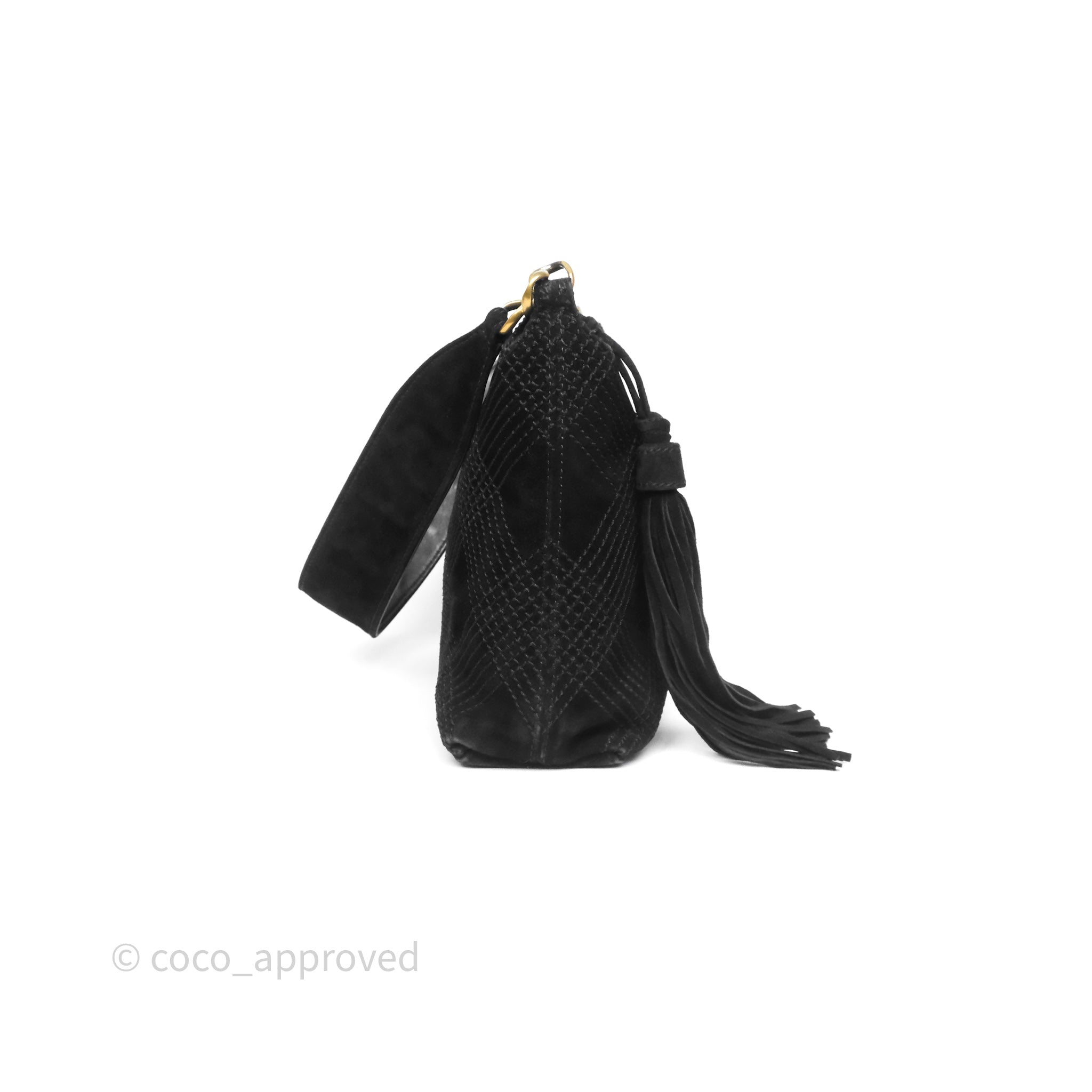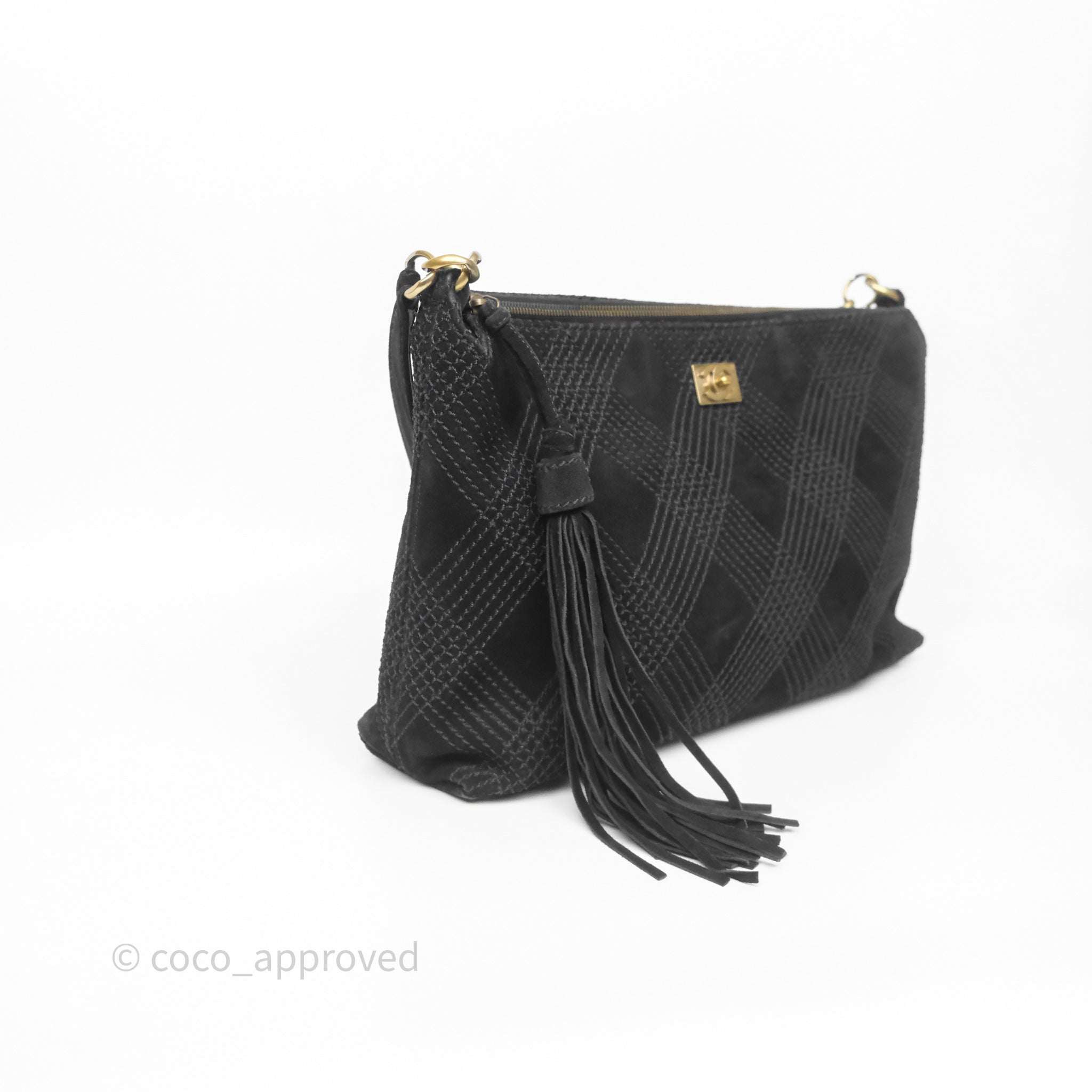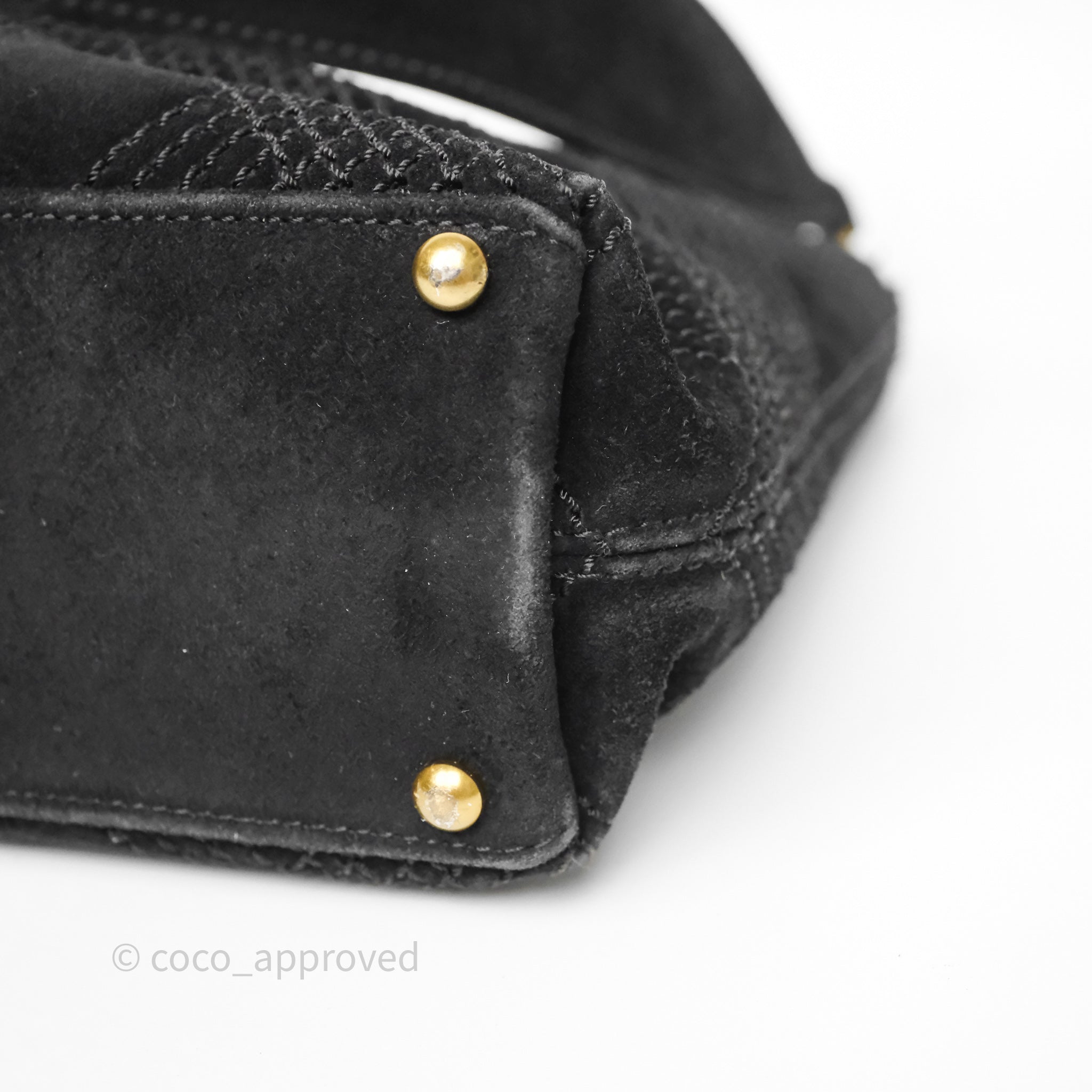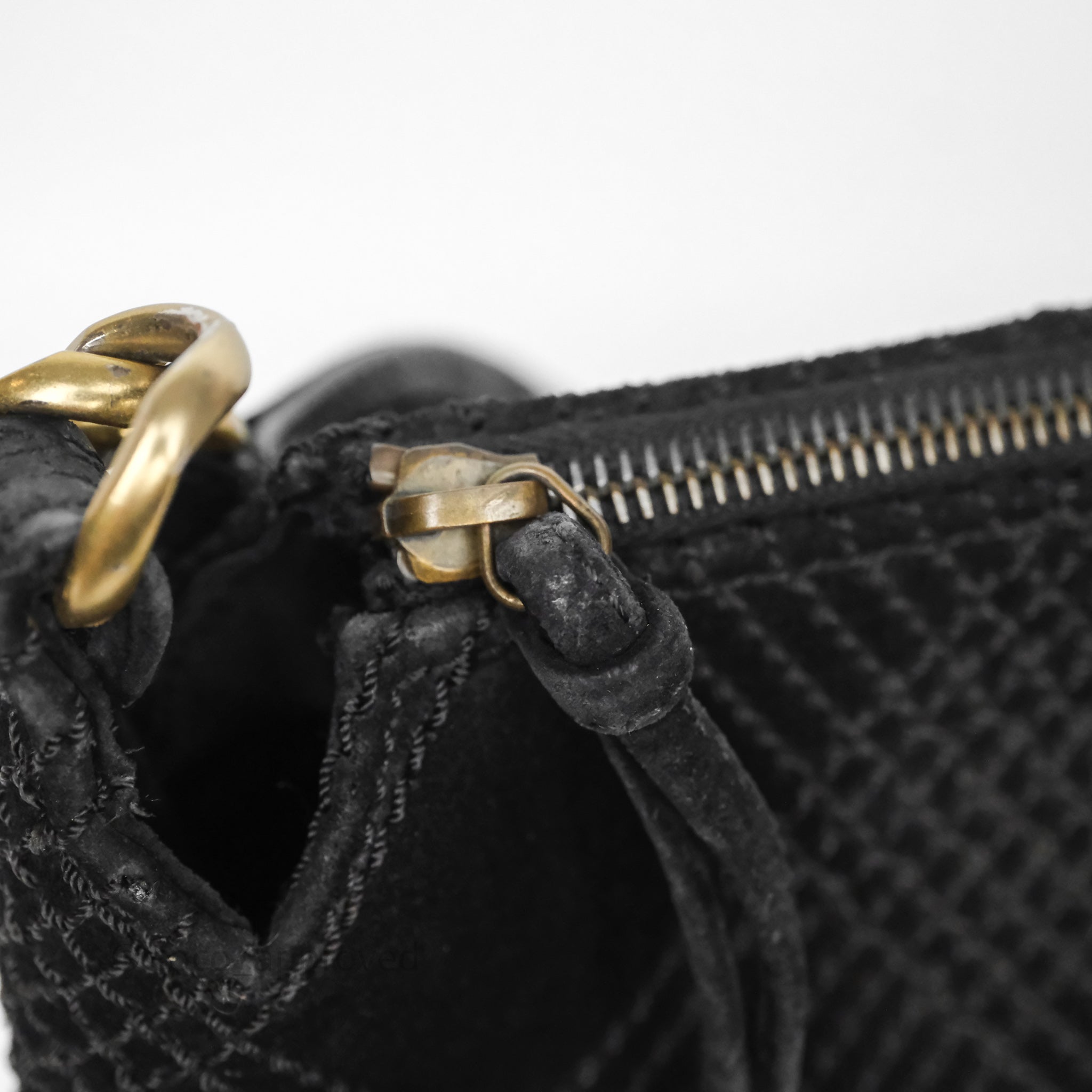 Chanel Vintage Shoulder Bag Quilted Black Suede Aged Gold Hardware