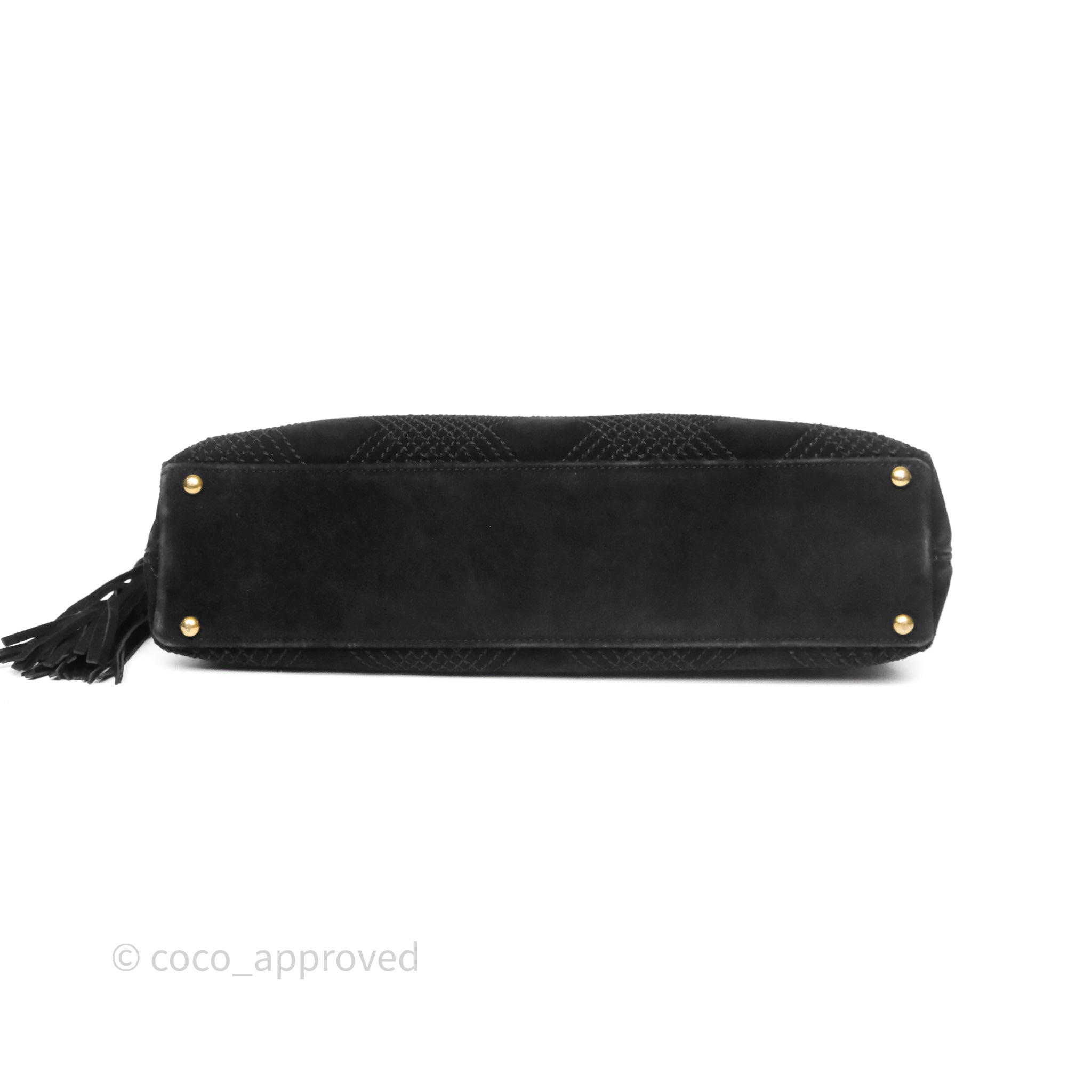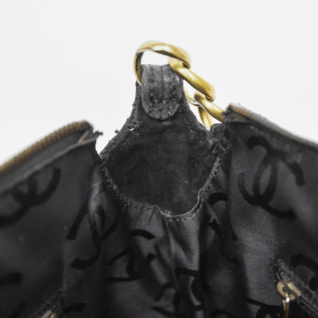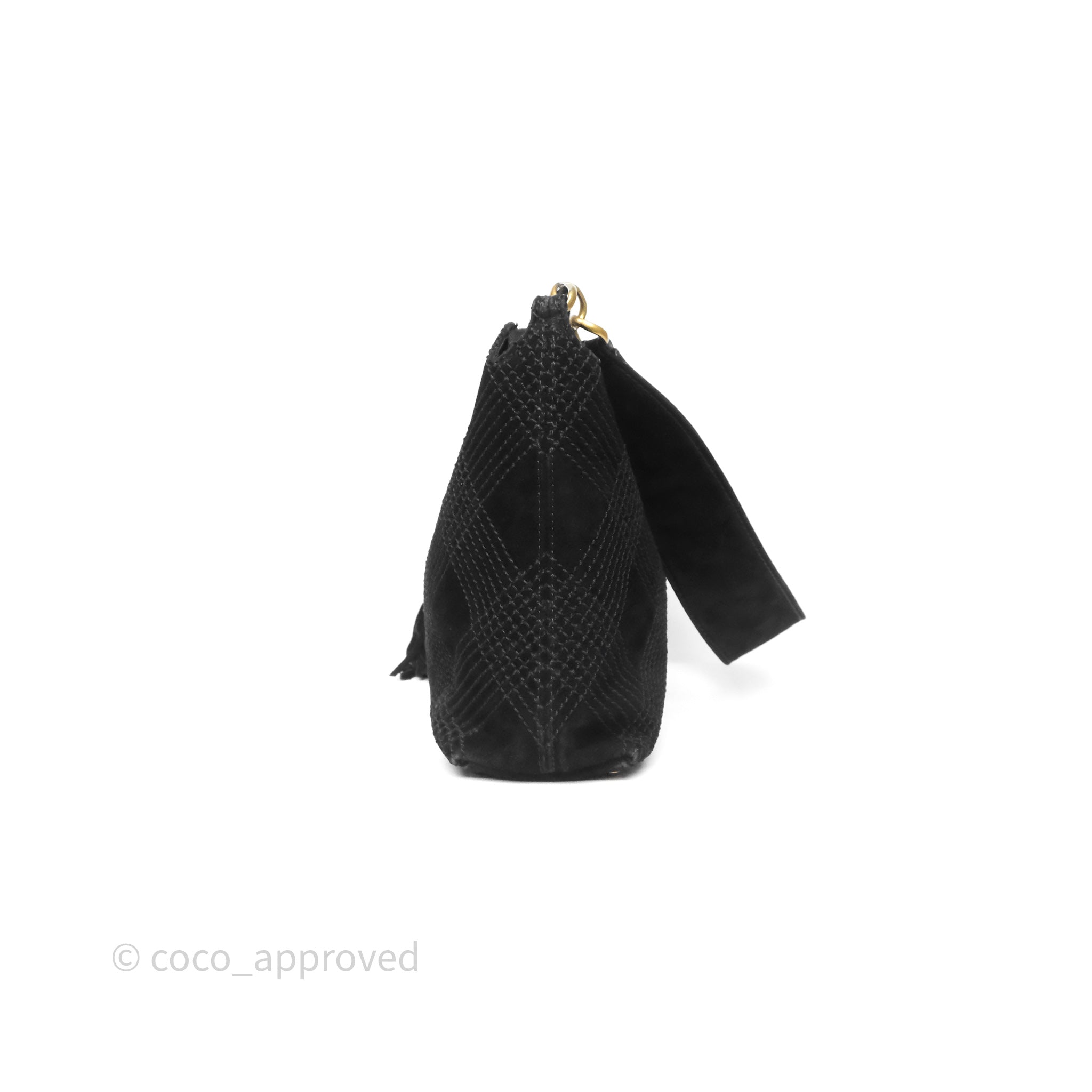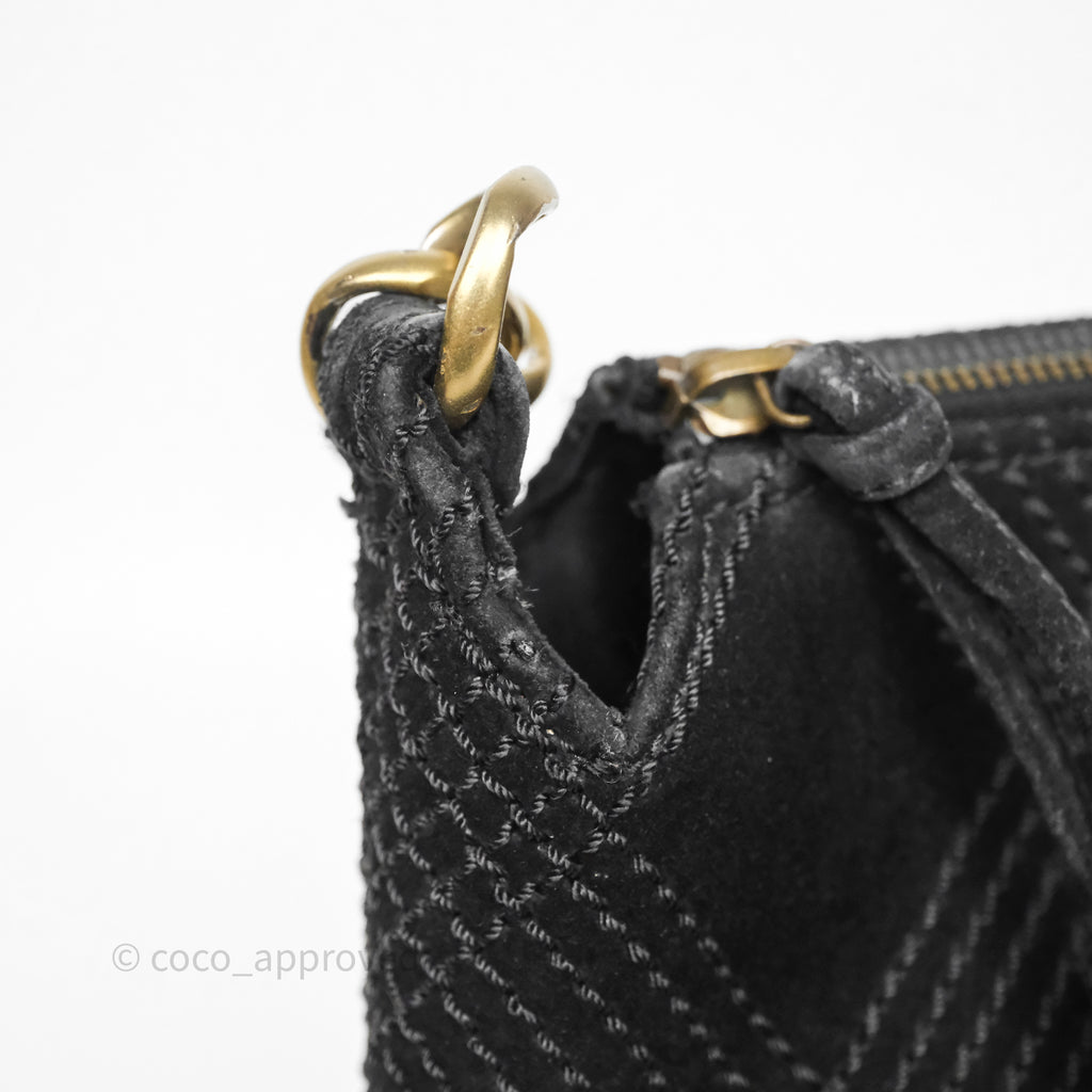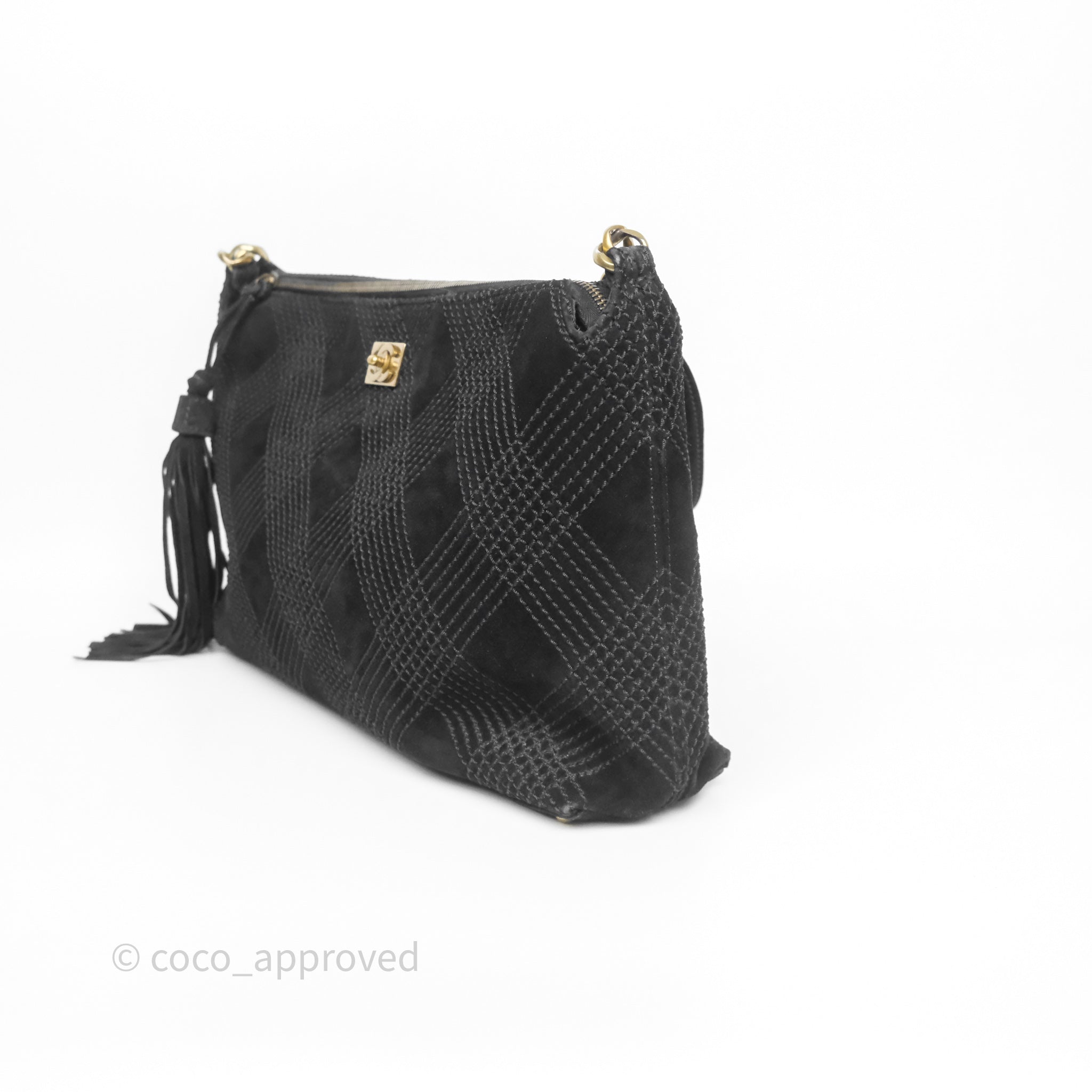 Chanel Vintage Shoulder Bag Quilted Black Suede Aged Gold Hardware