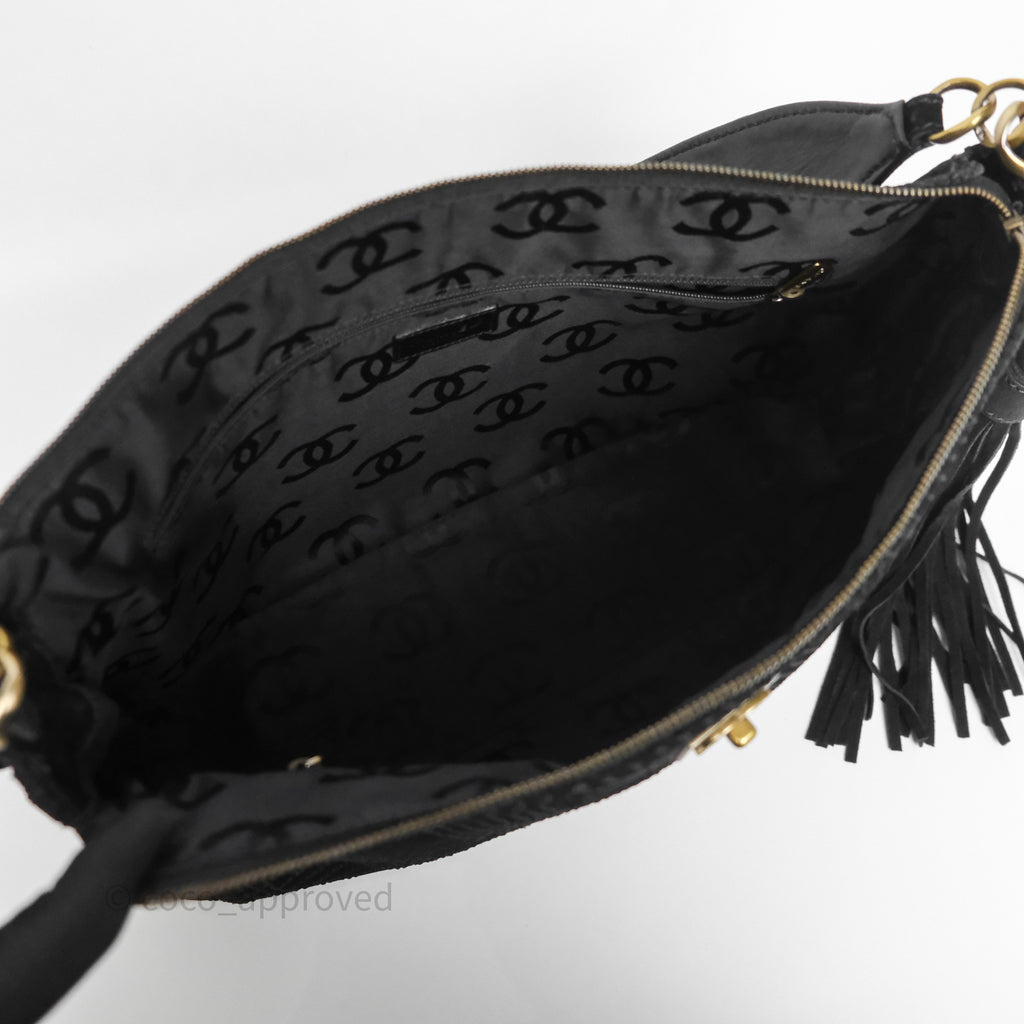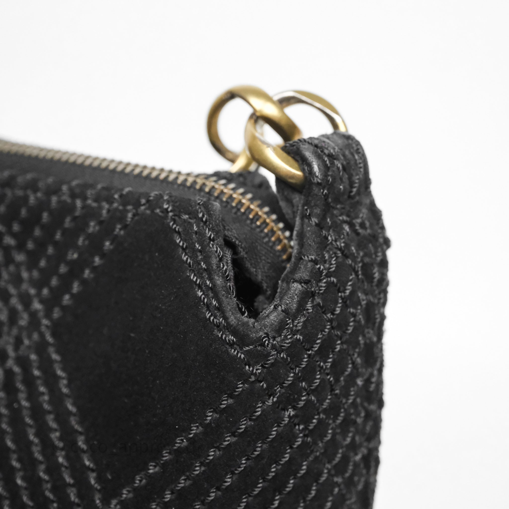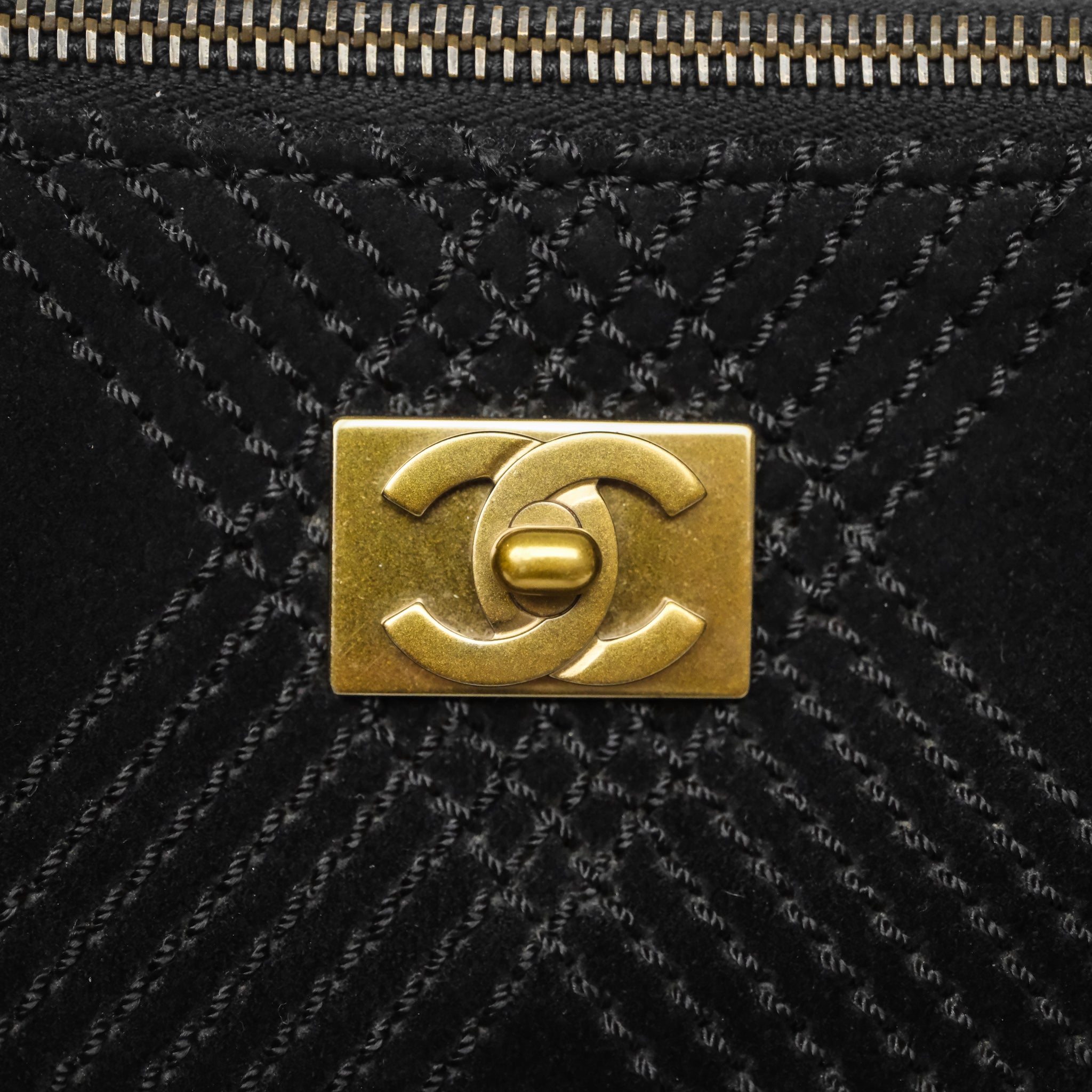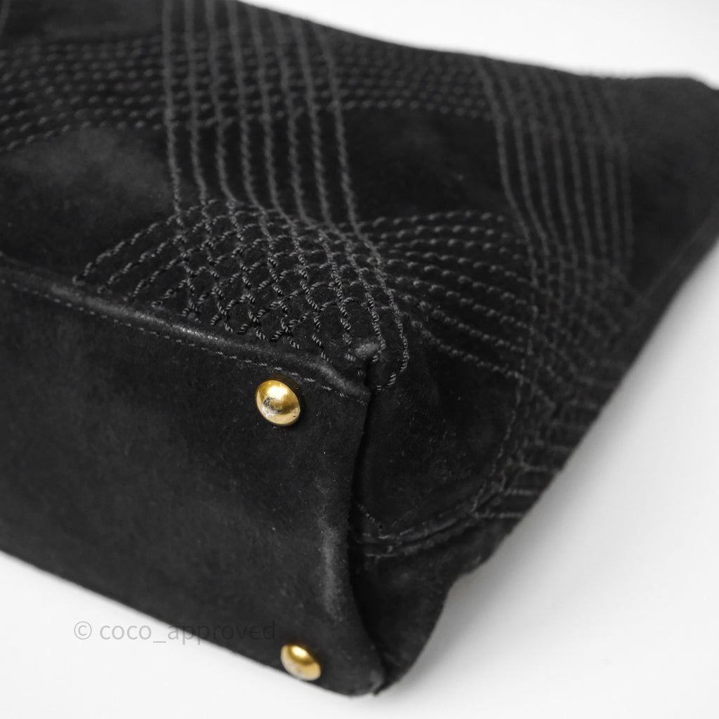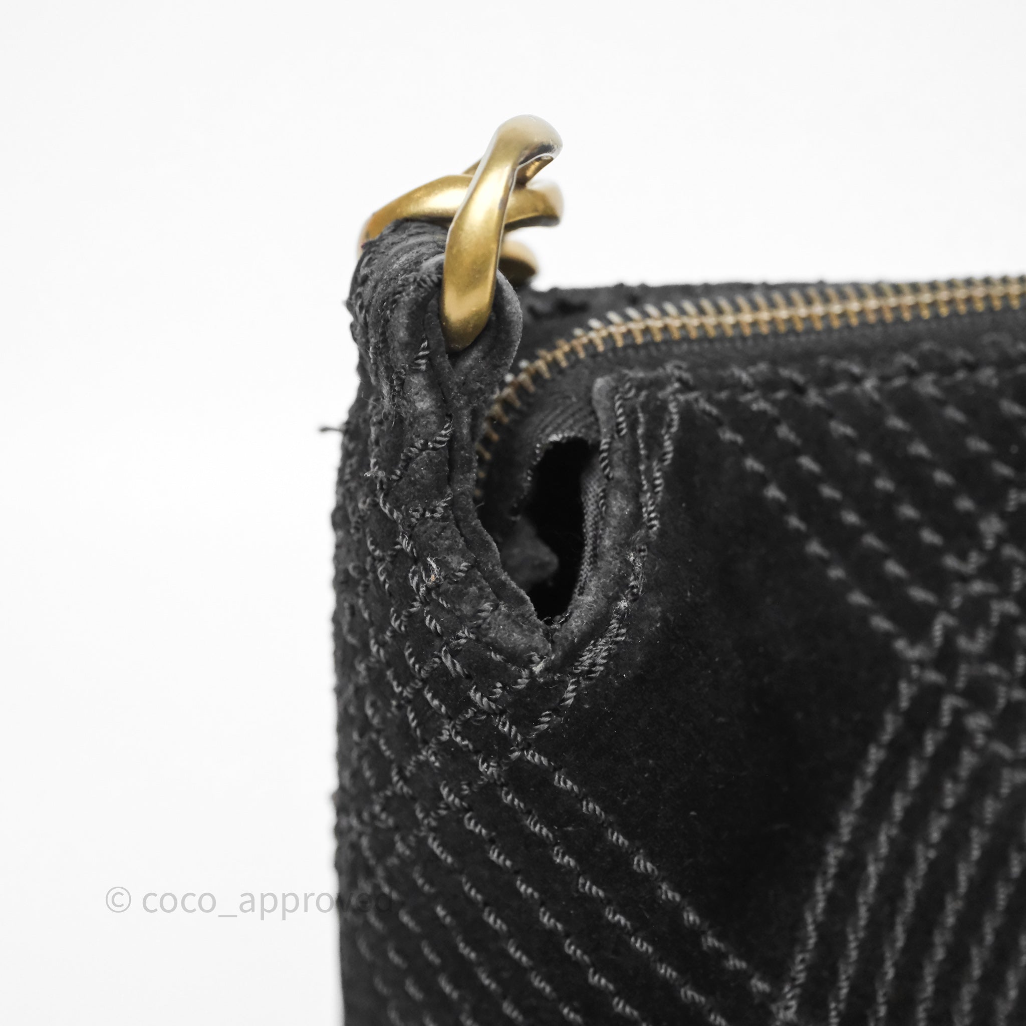 Chanel Vintage Shoulder Bag Quilted Black Suede Aged Gold Hardware
