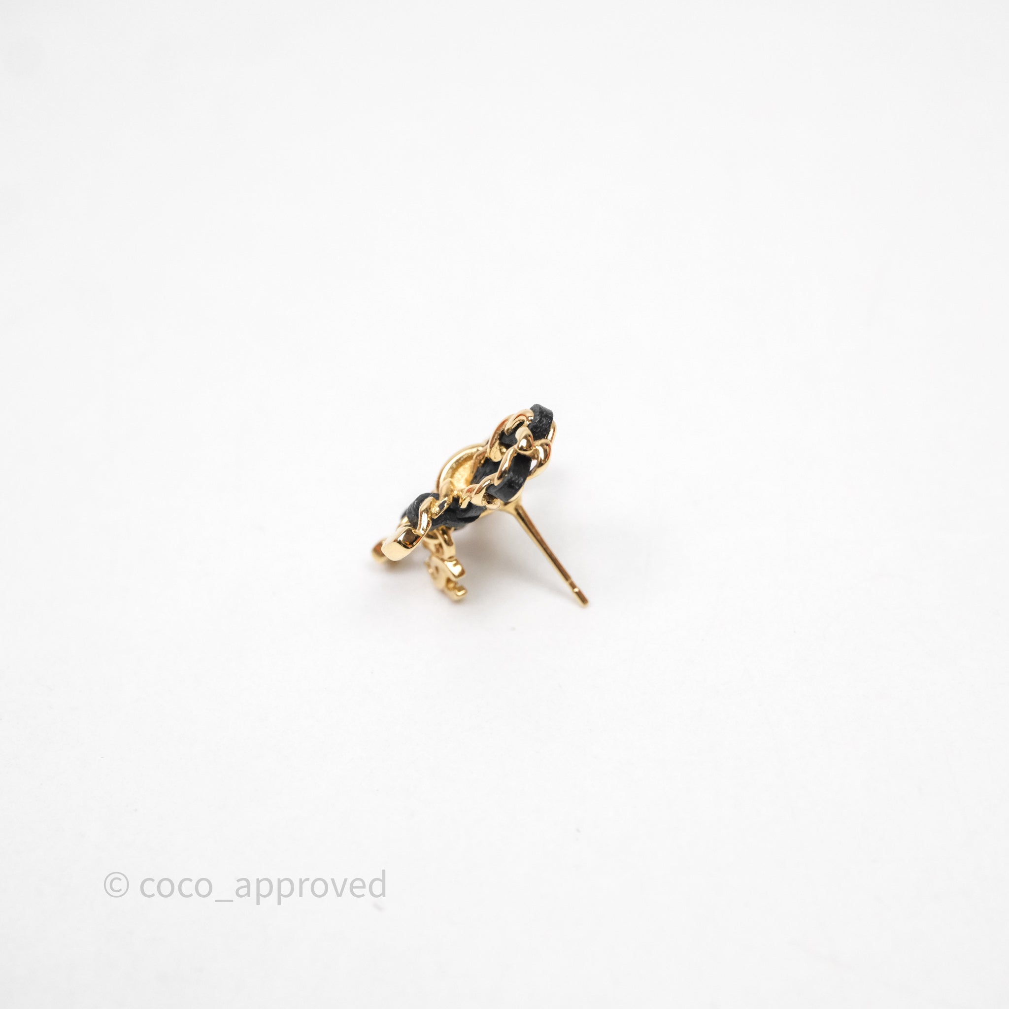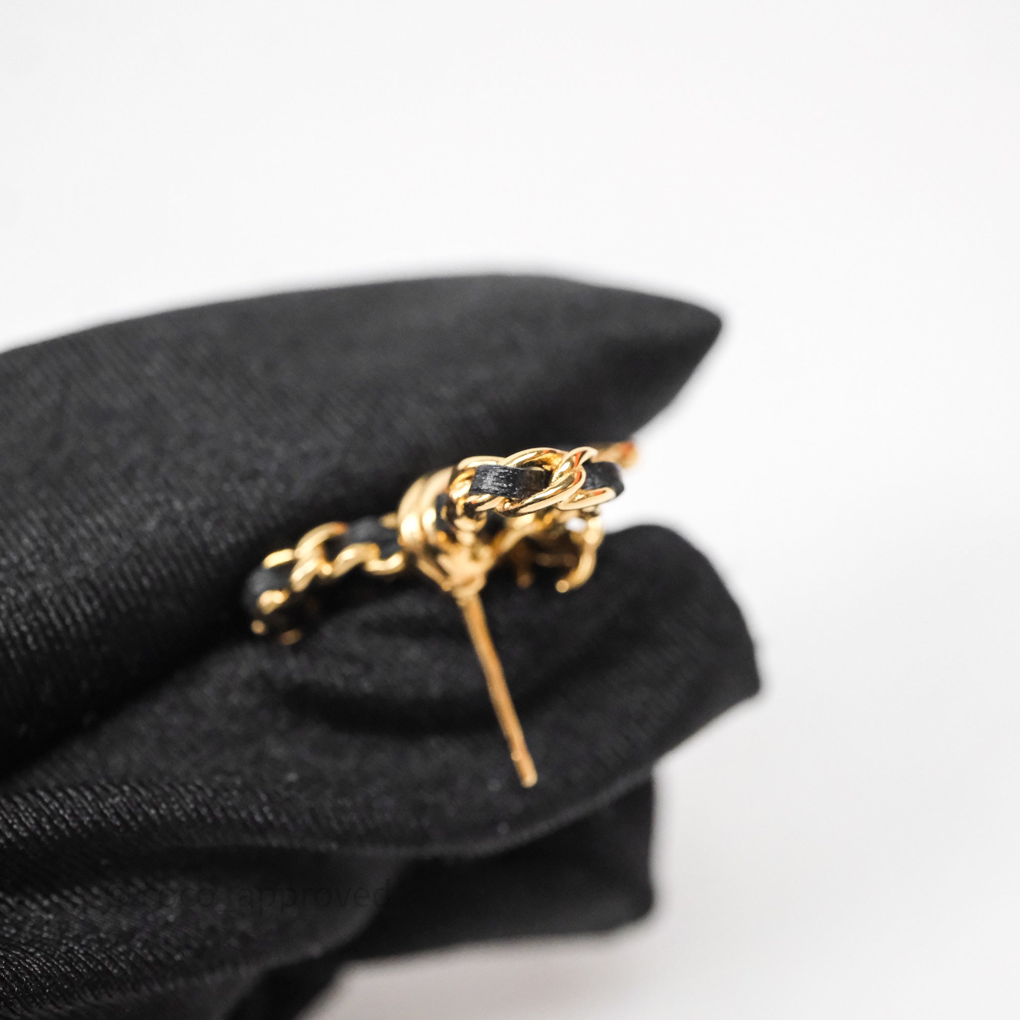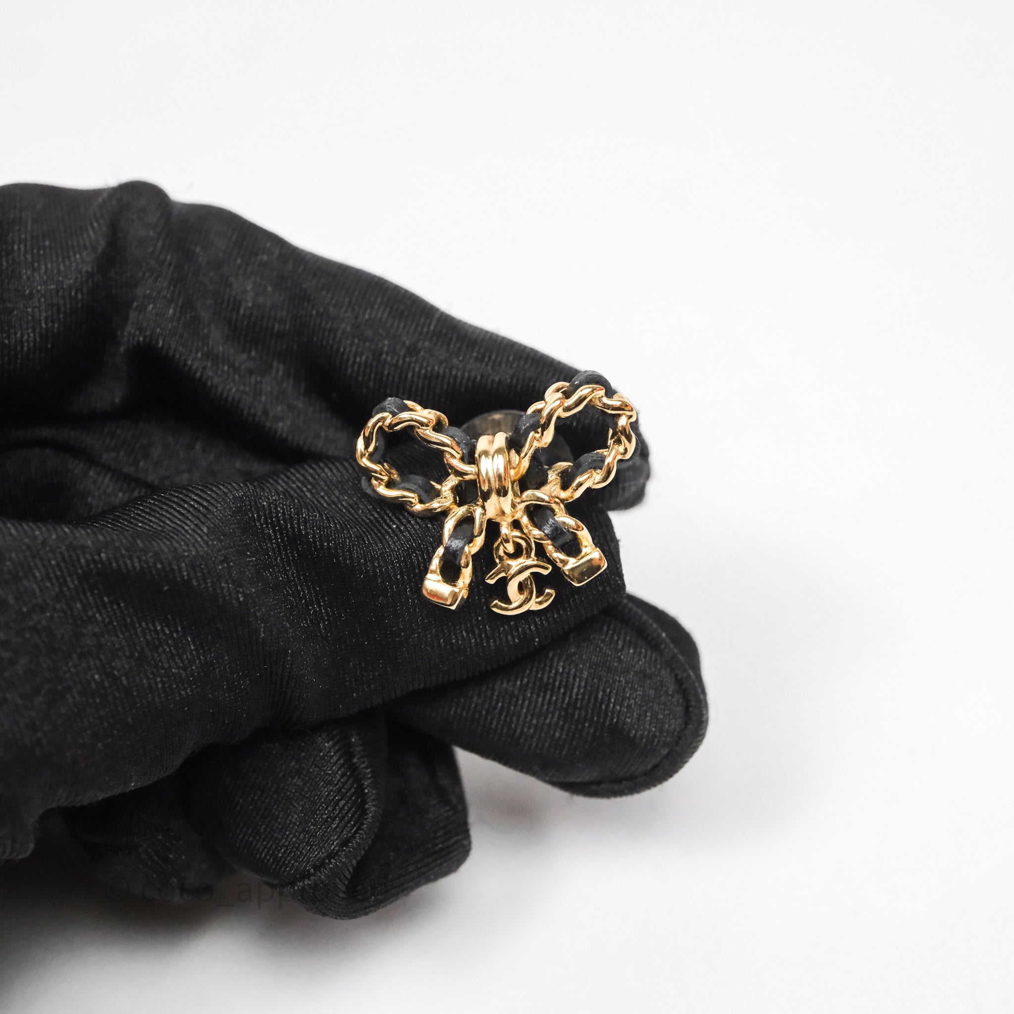 Chanel Woven Ribbon Bow Black Earrings Gold Tone 25V