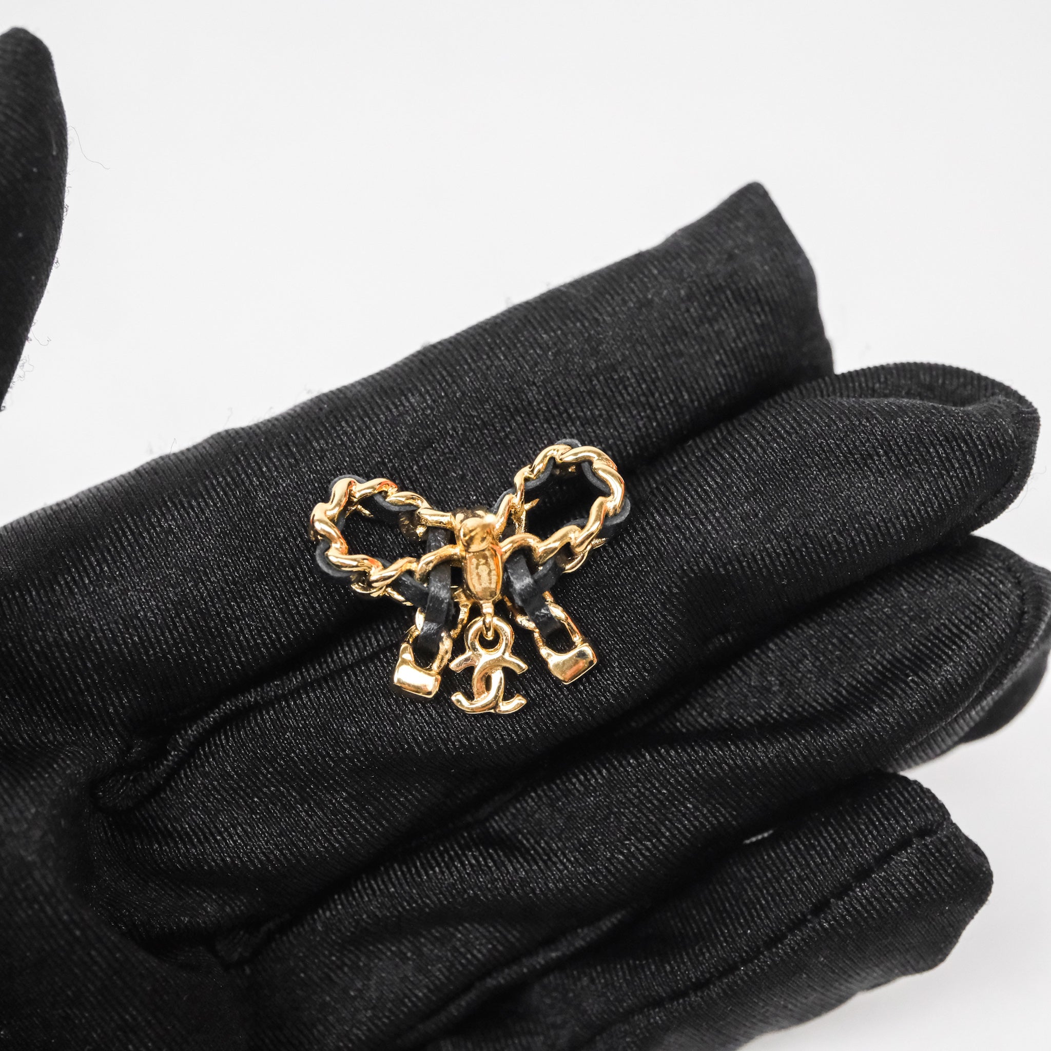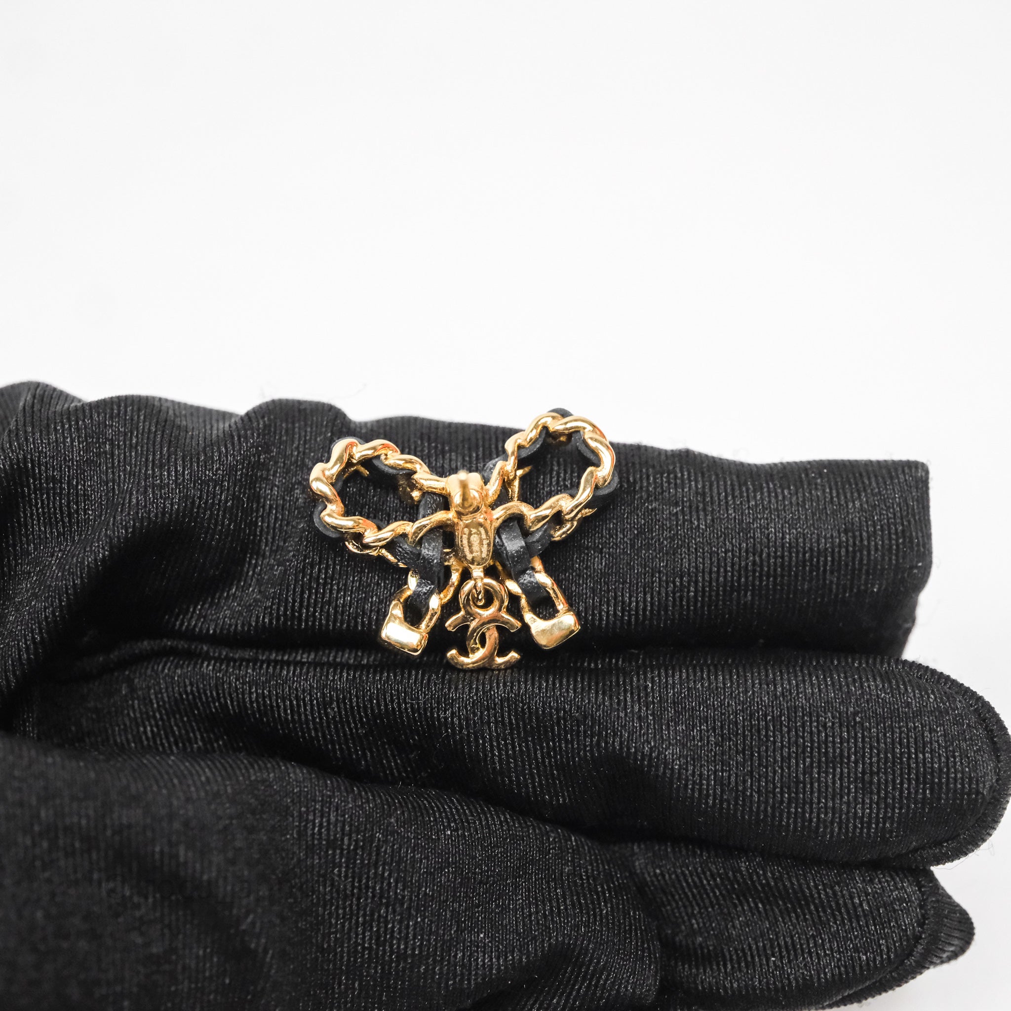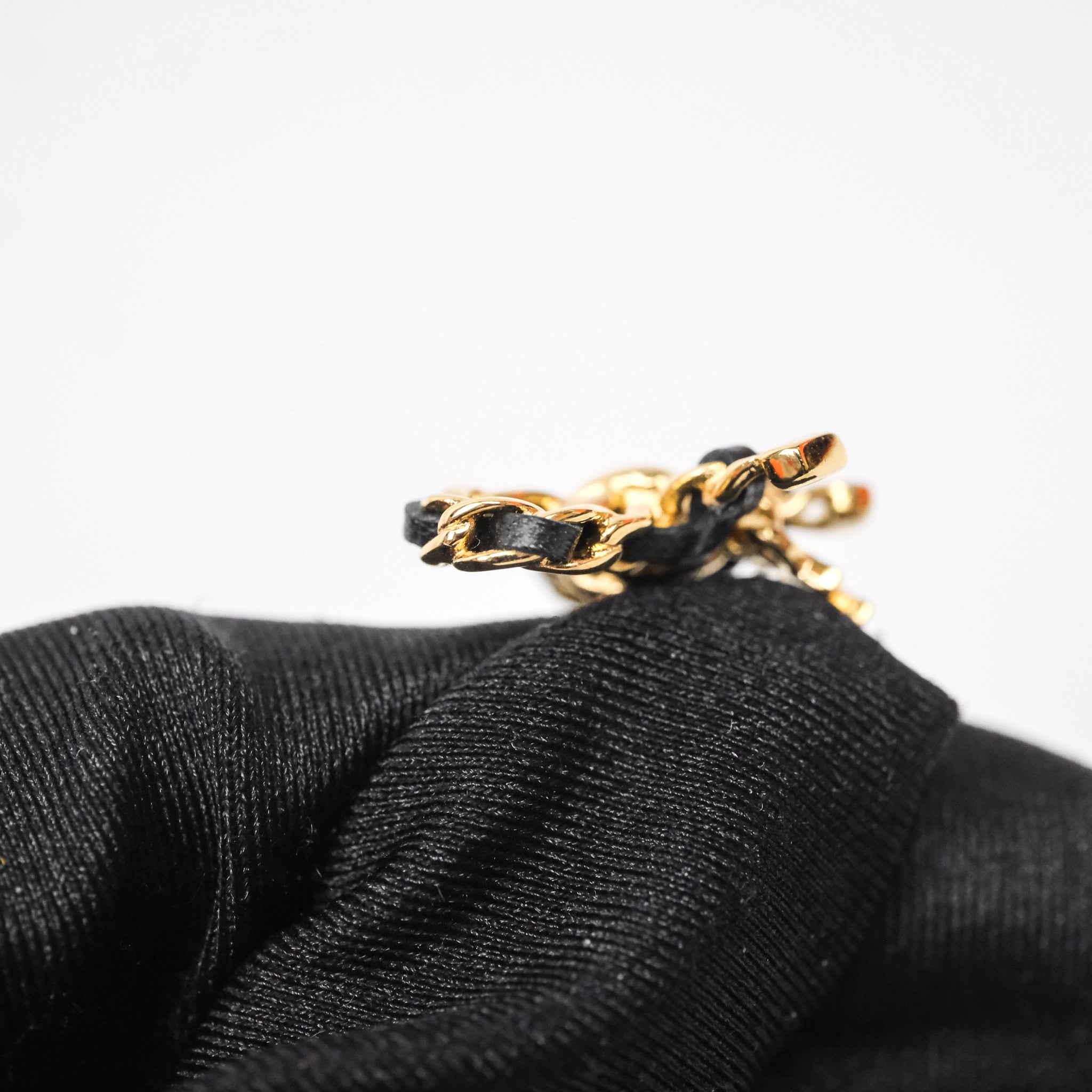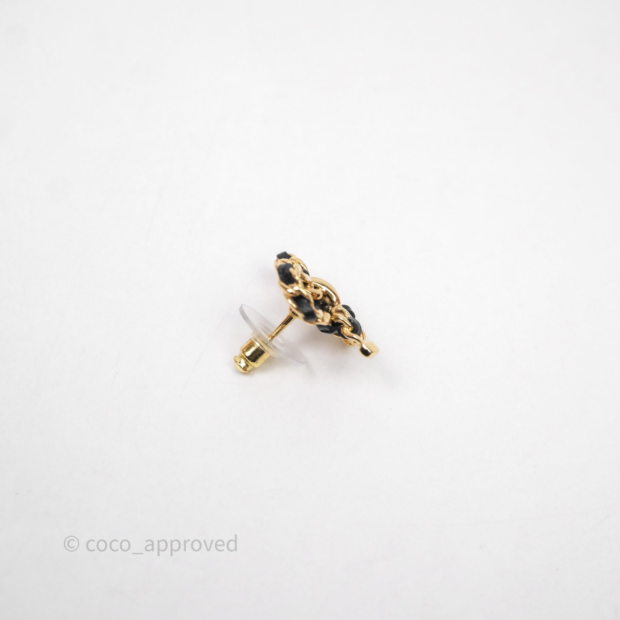 Chanel Woven Ribbon Bow Black Earrings Gold Tone 25V