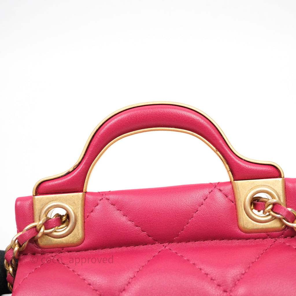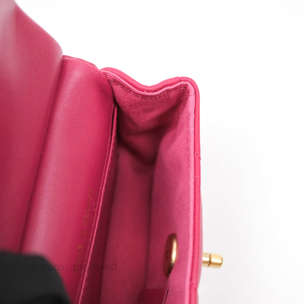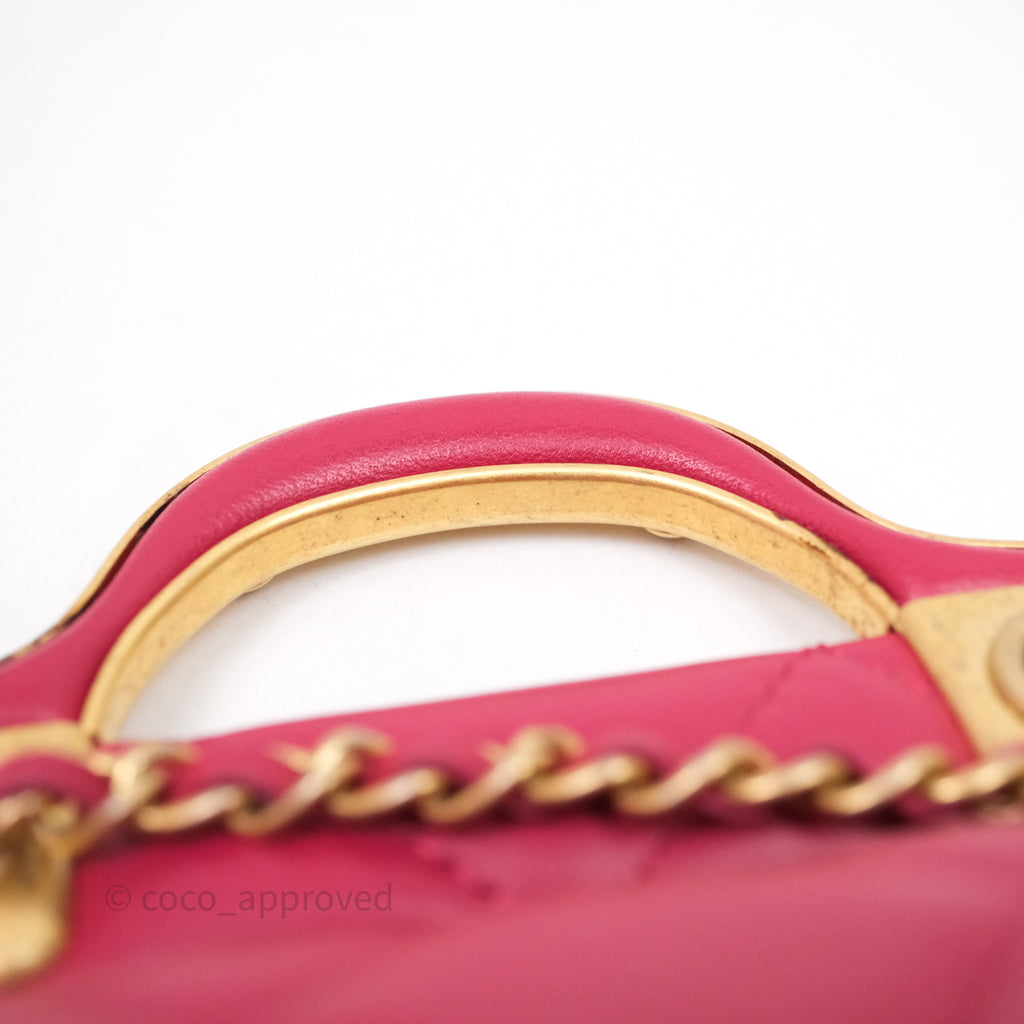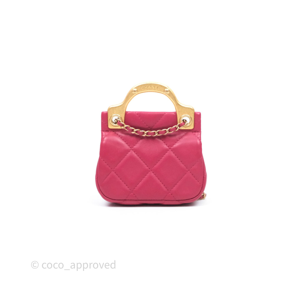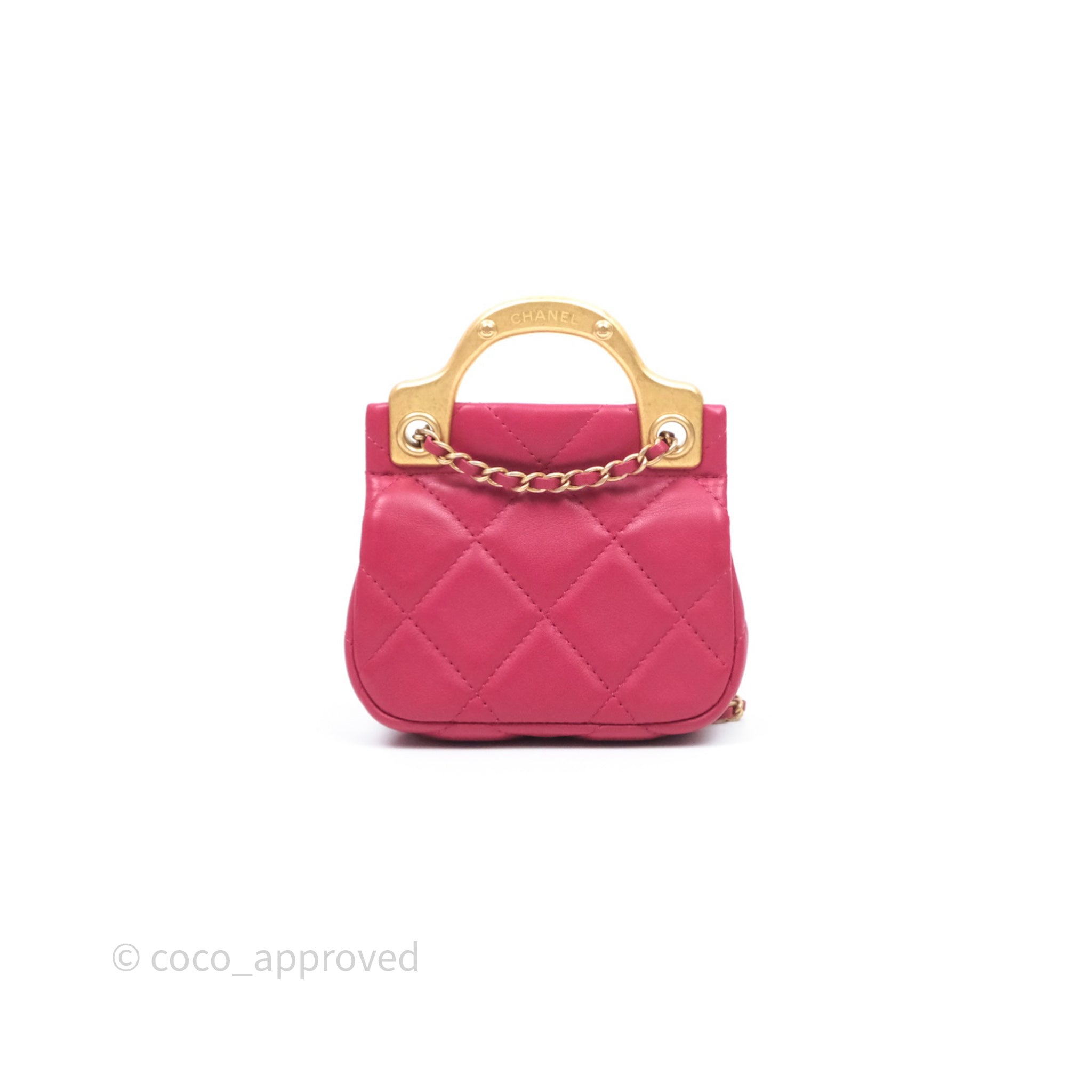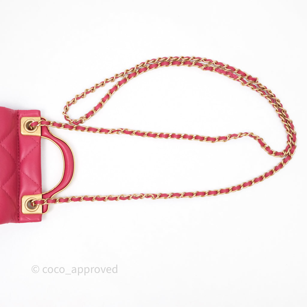 Chanel Quilted Lady Handle Flap Card Holder With Chain Dark Pink Calfskin Aged Gold Hardware
