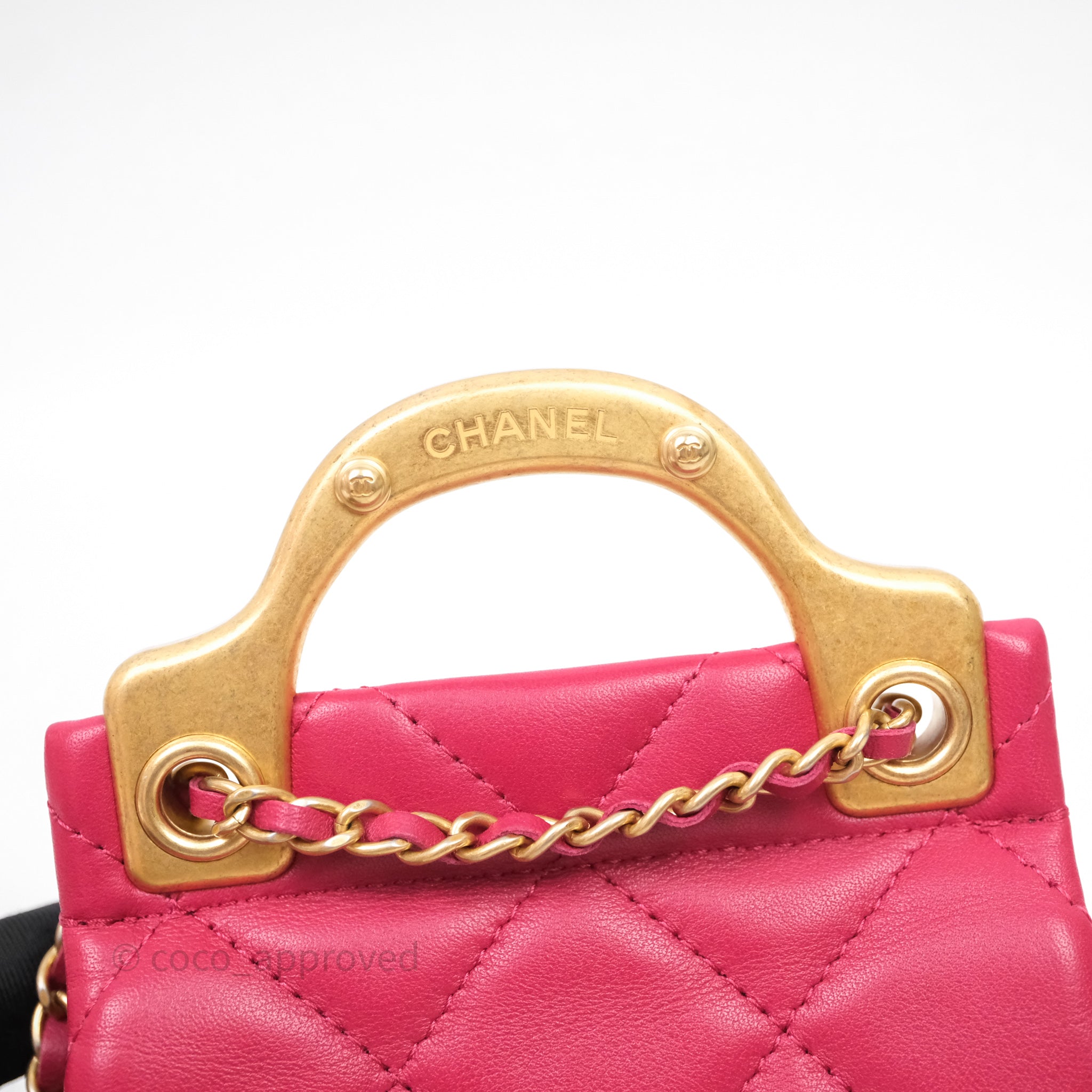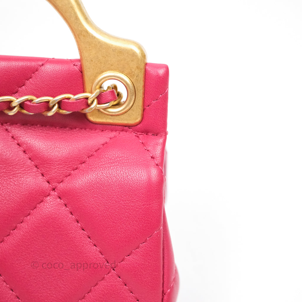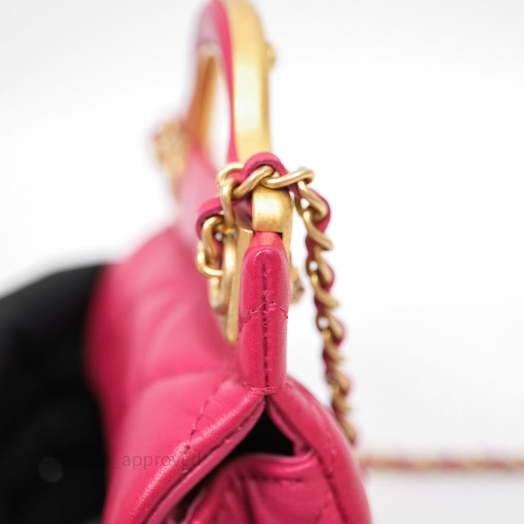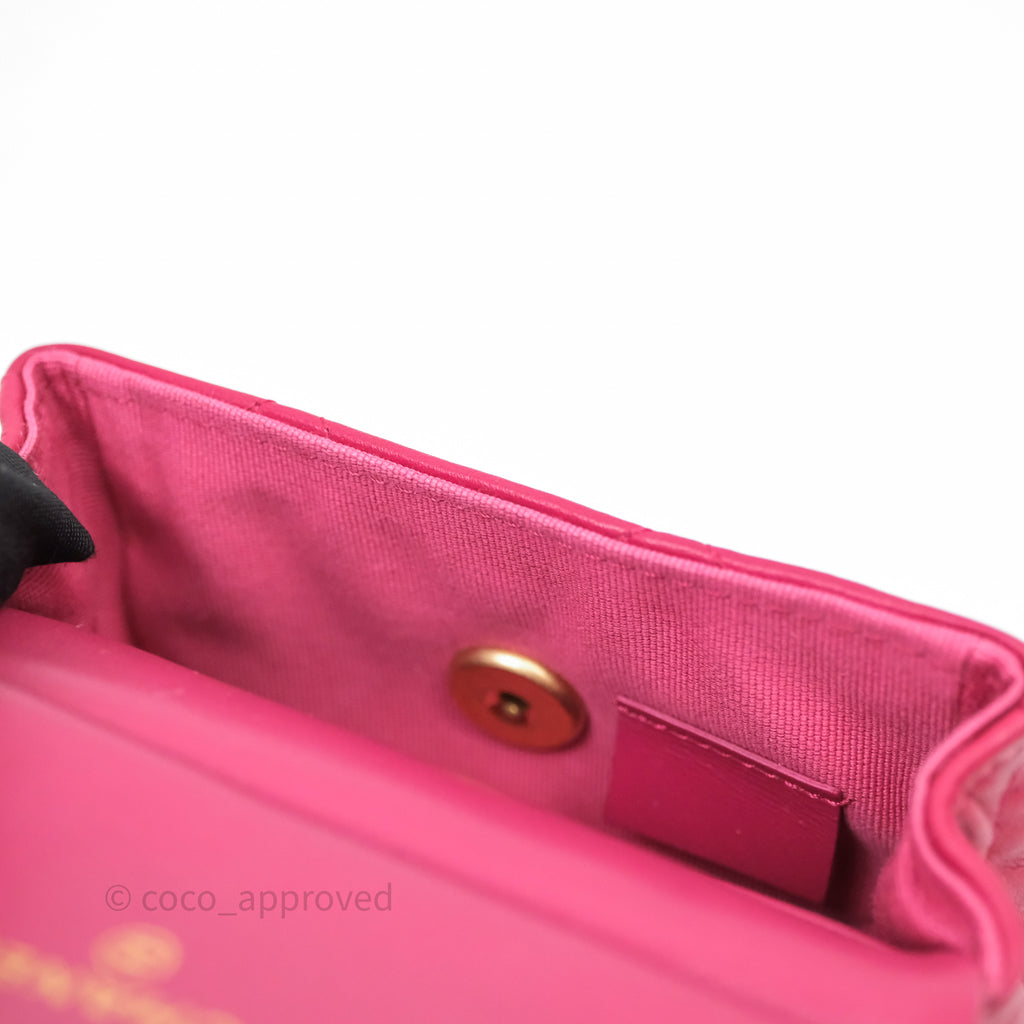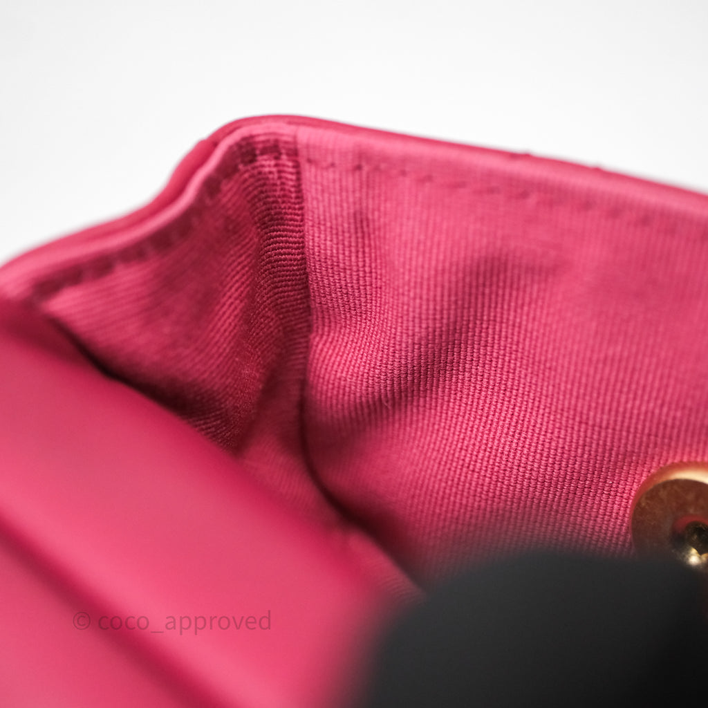 Chanel Quilted Lady Handle Flap Card Holder With Chain Dark Pink Calfskin Aged Gold Hardware