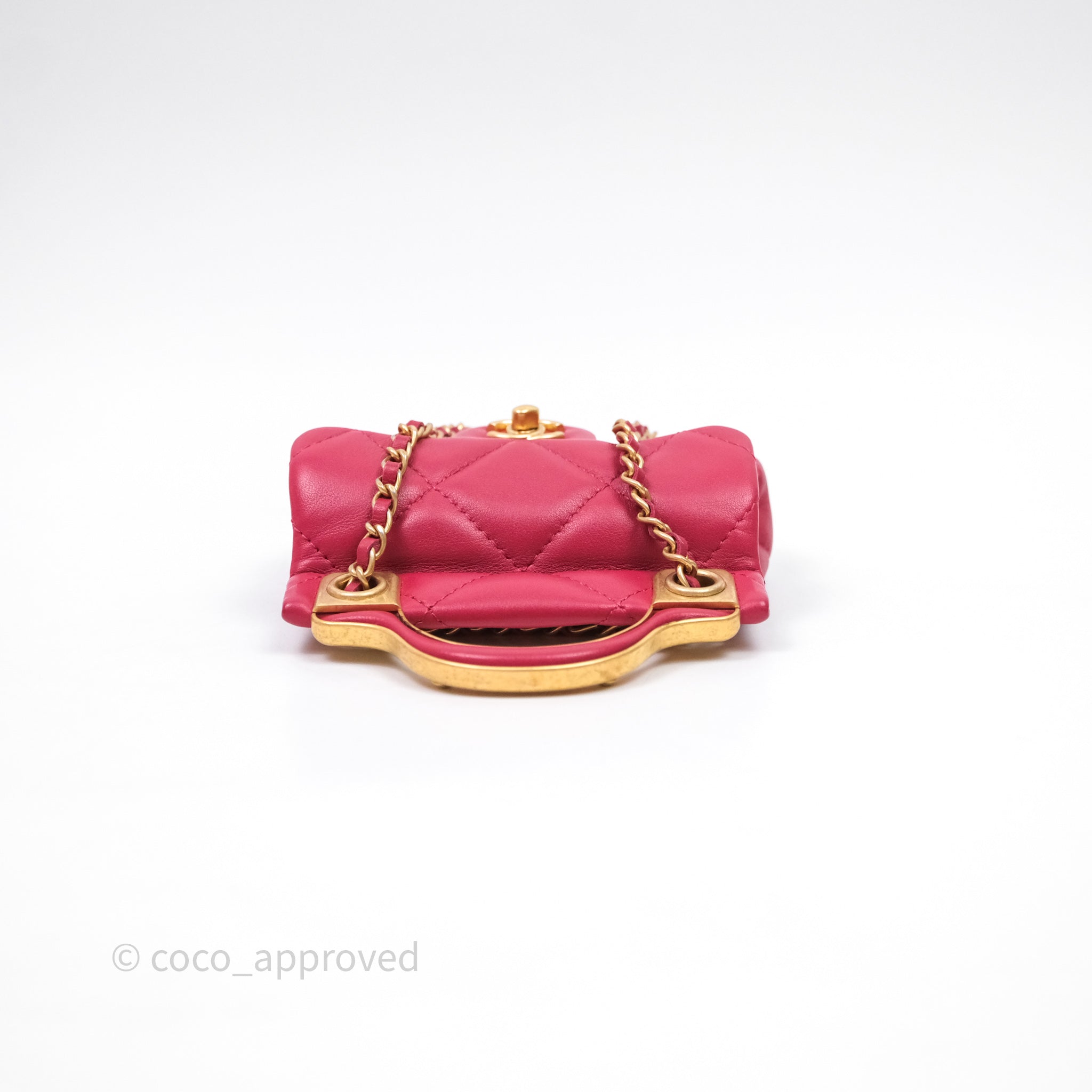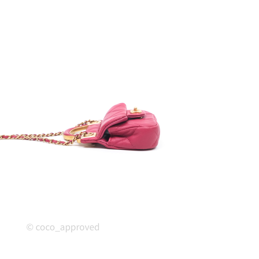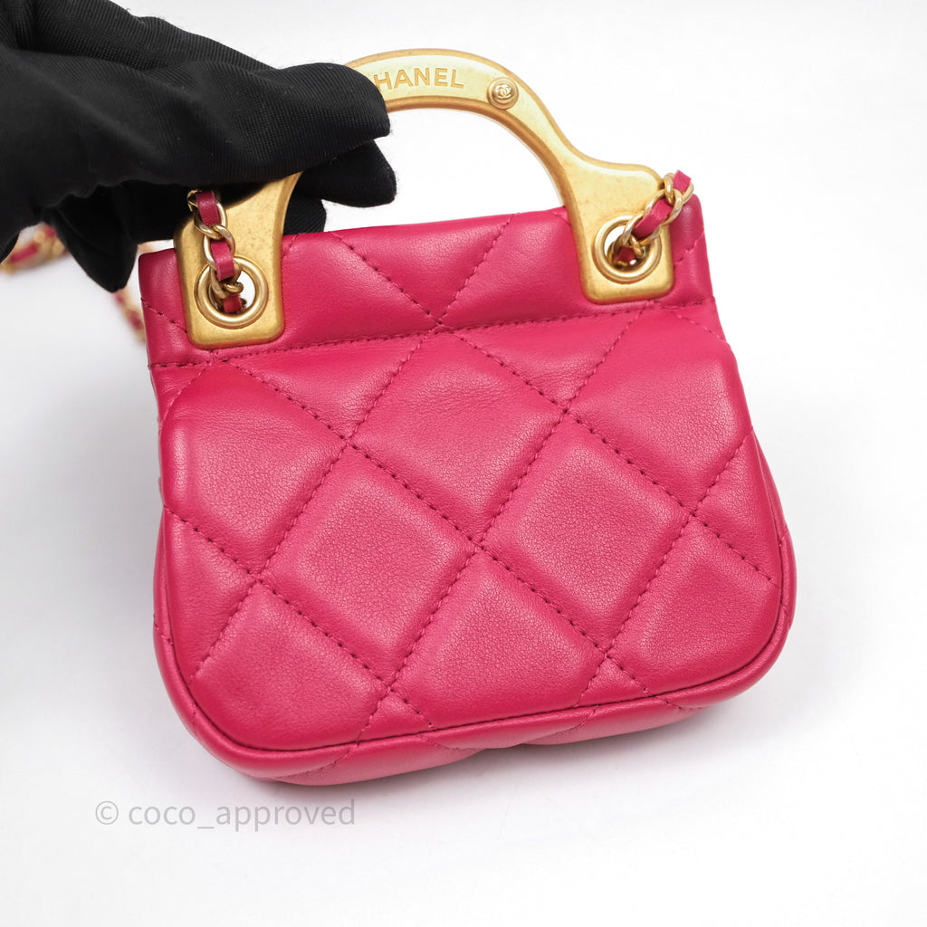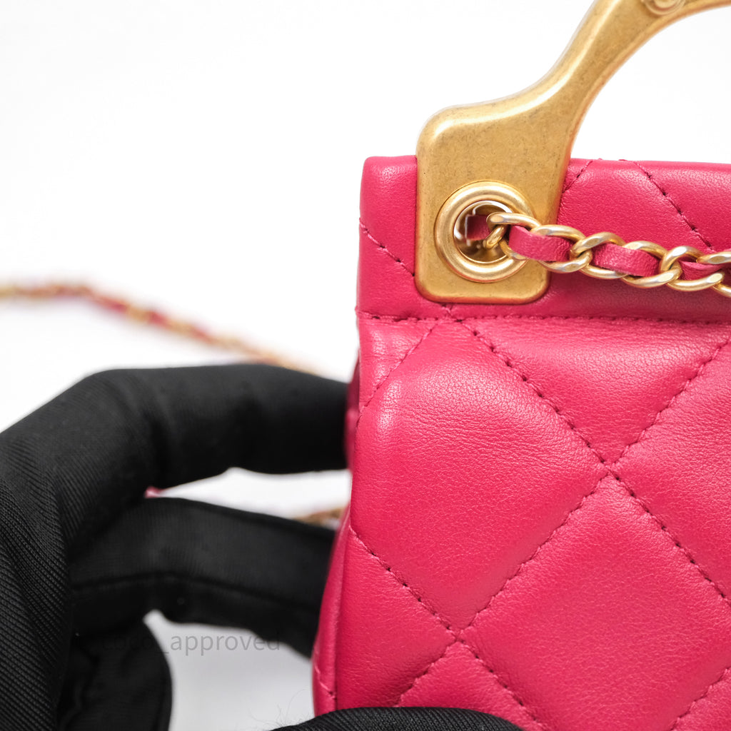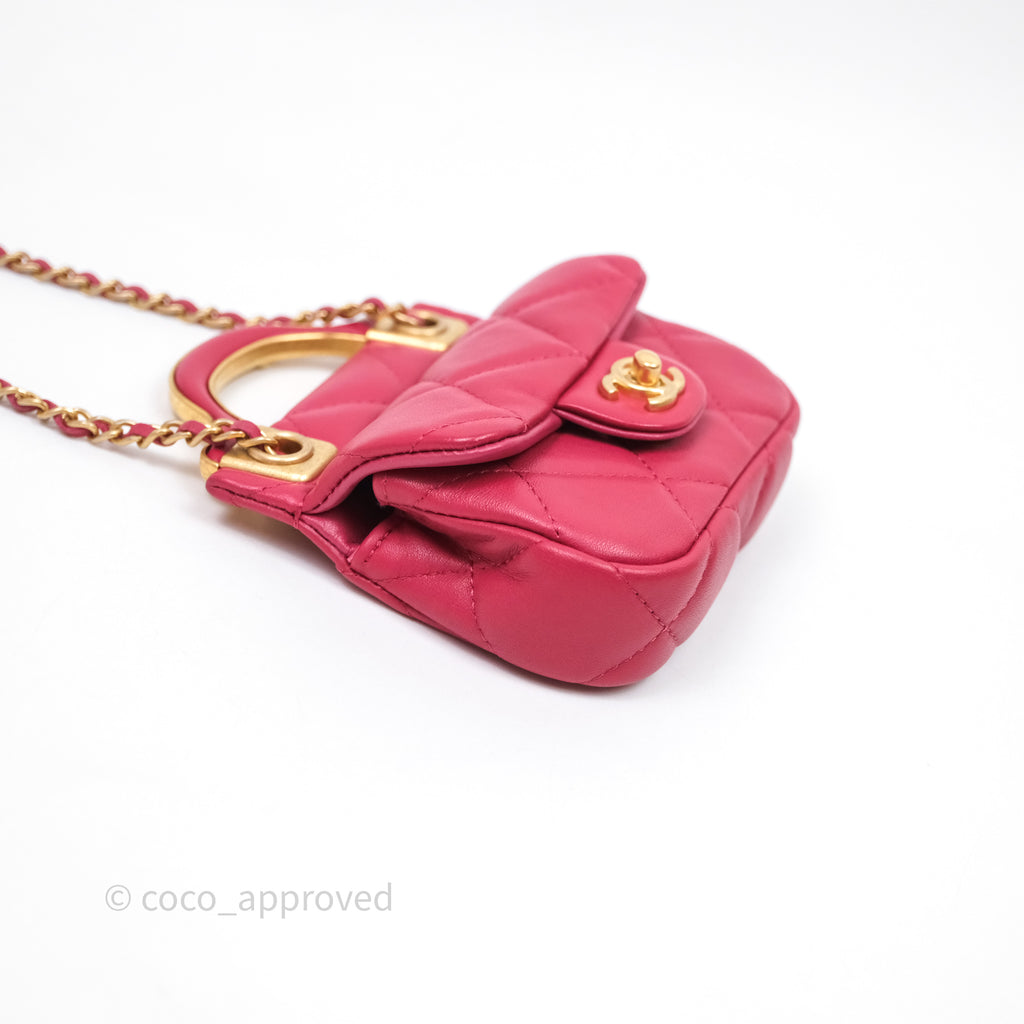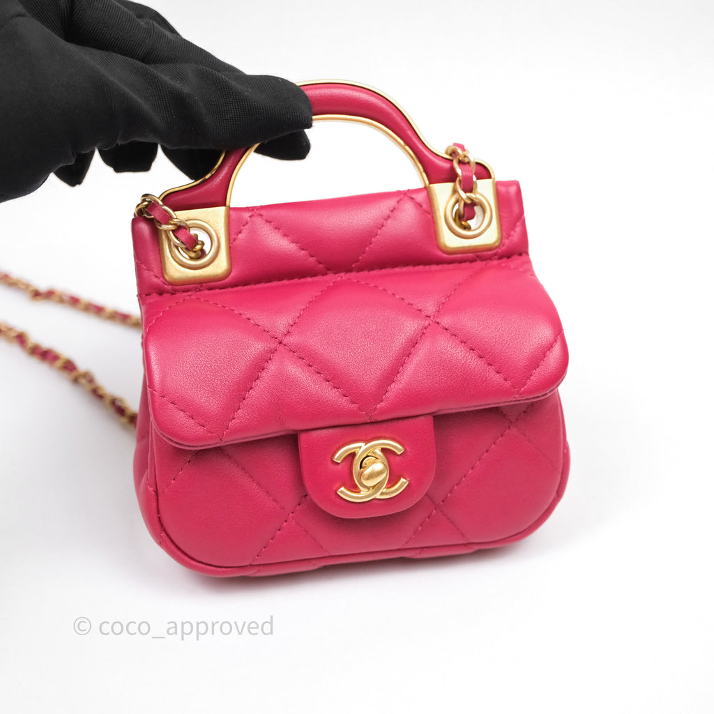 Chanel Quilted Lady Handle Flap Card Holder With Chain Dark Pink Calfskin Aged Gold Hardware
