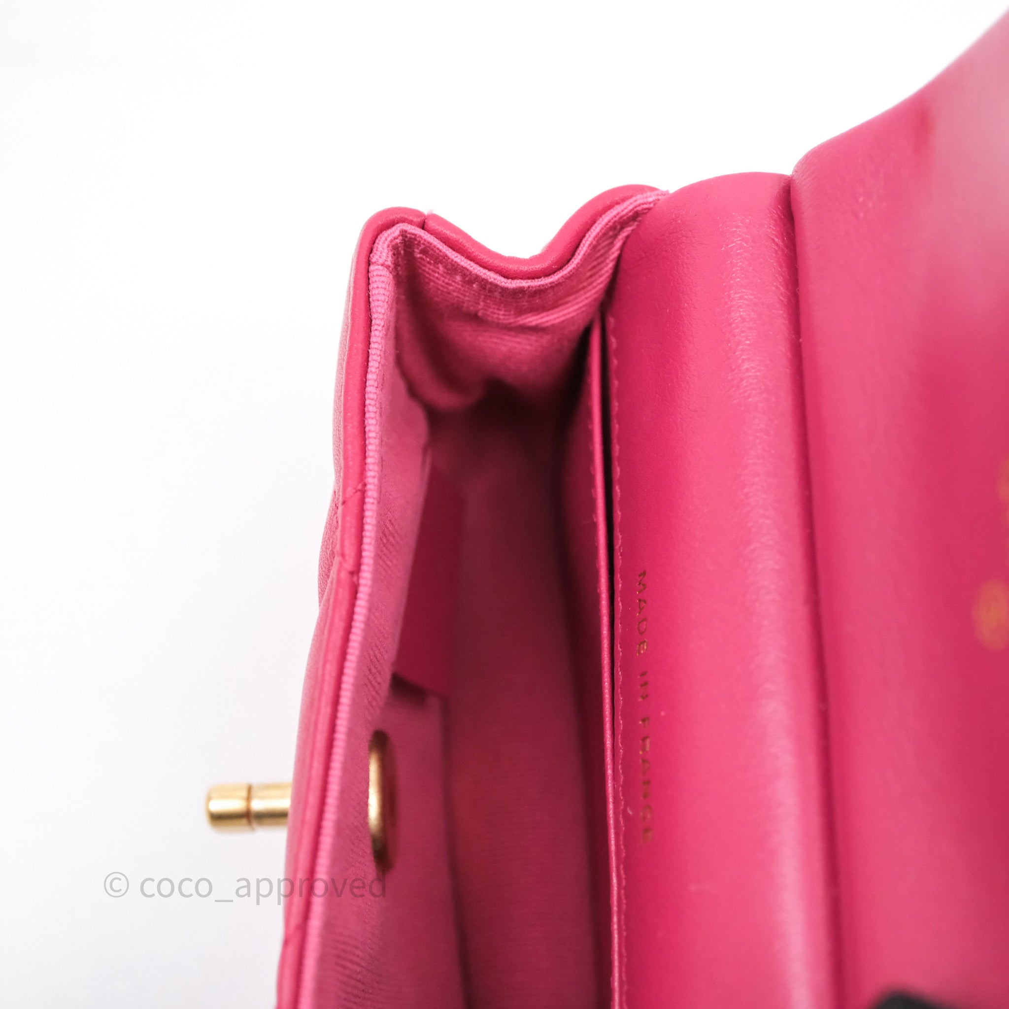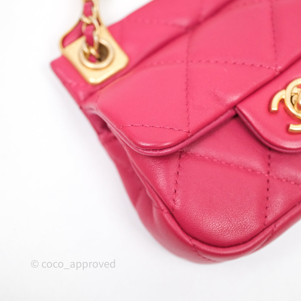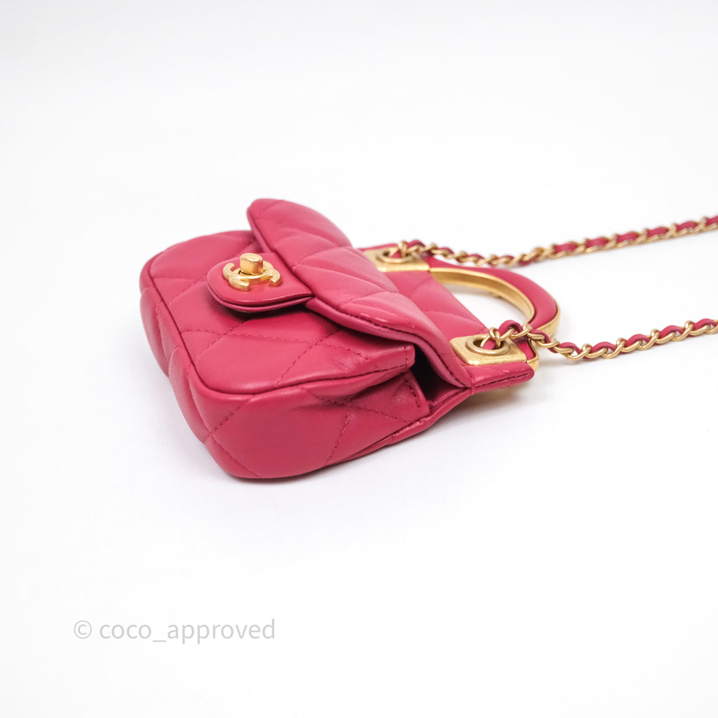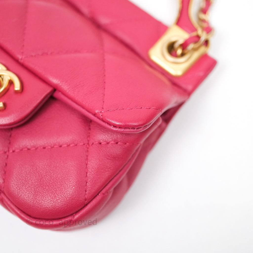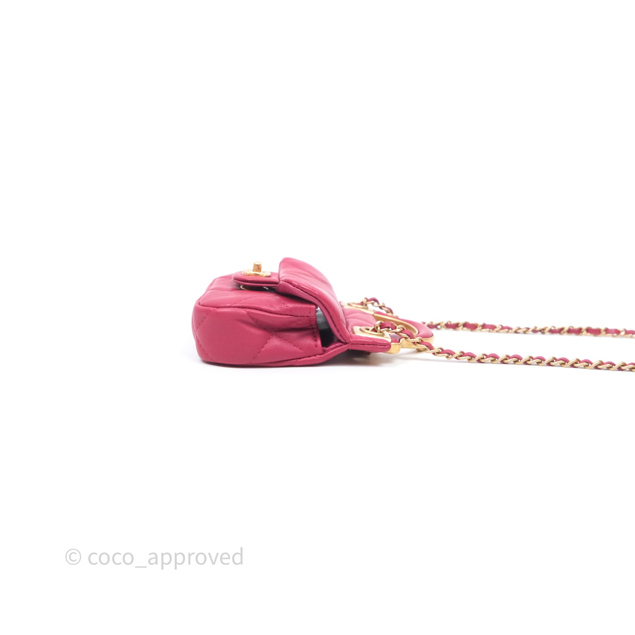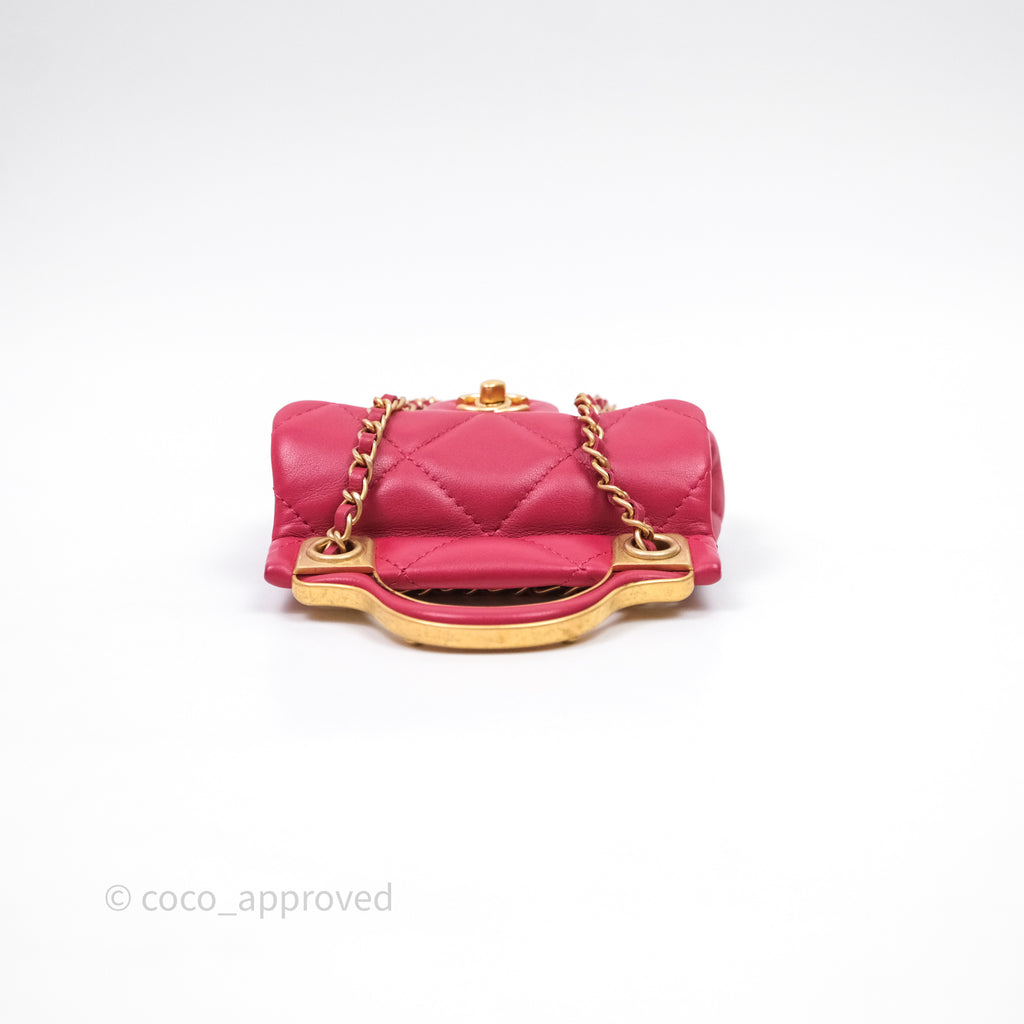 Chanel Quilted Lady Handle Flap Card Holder With Chain Dark Pink Calfskin Aged Gold Hardware