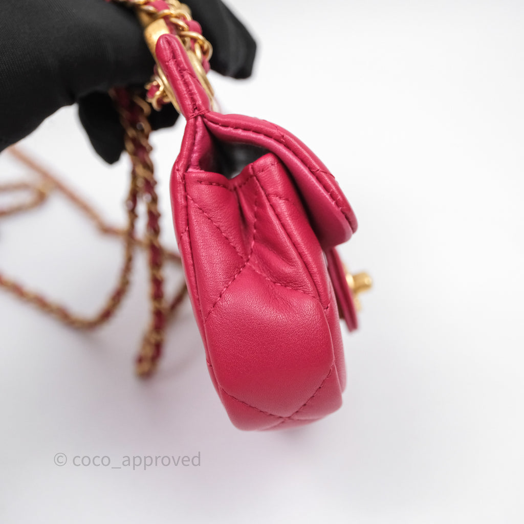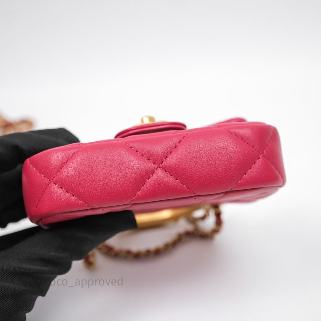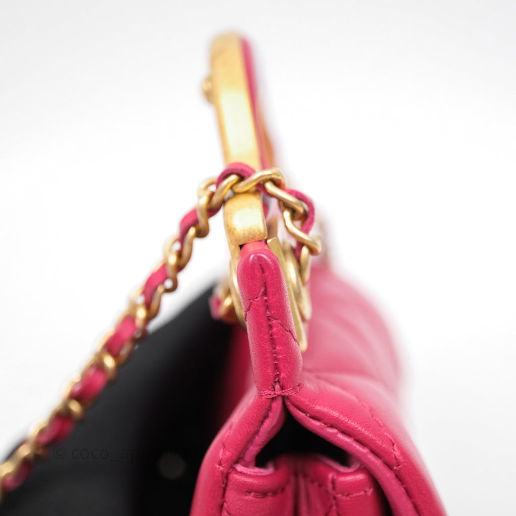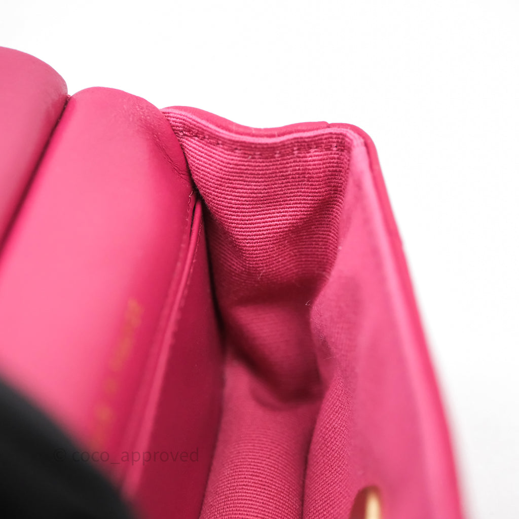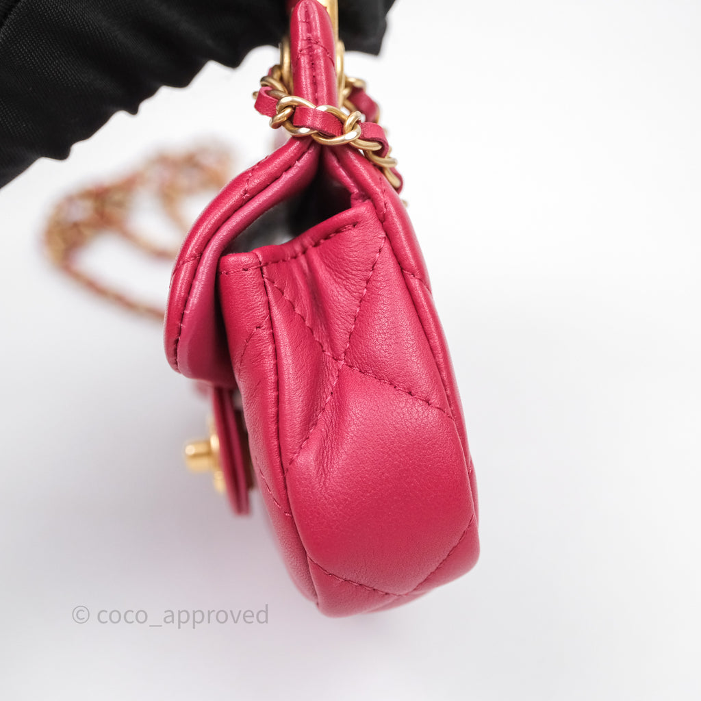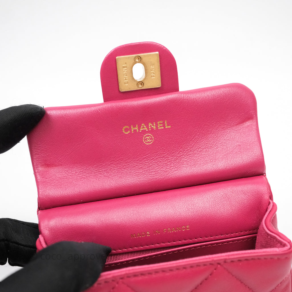 Chanel Quilted Lady Handle Flap Card Holder With Chain Dark Pink Calfskin Aged Gold Hardware