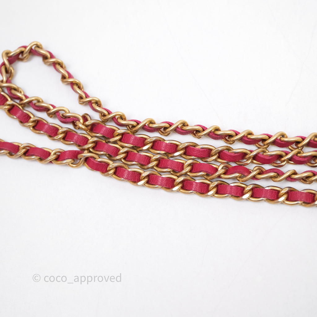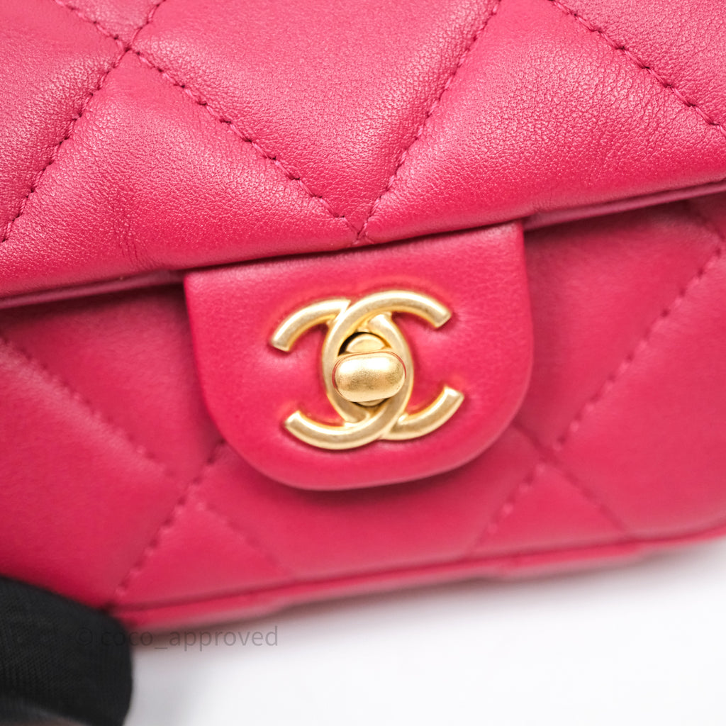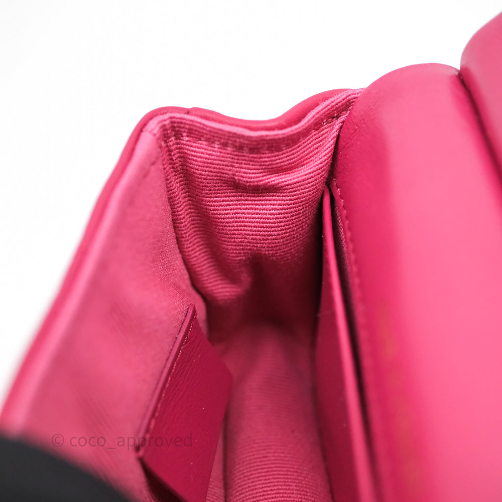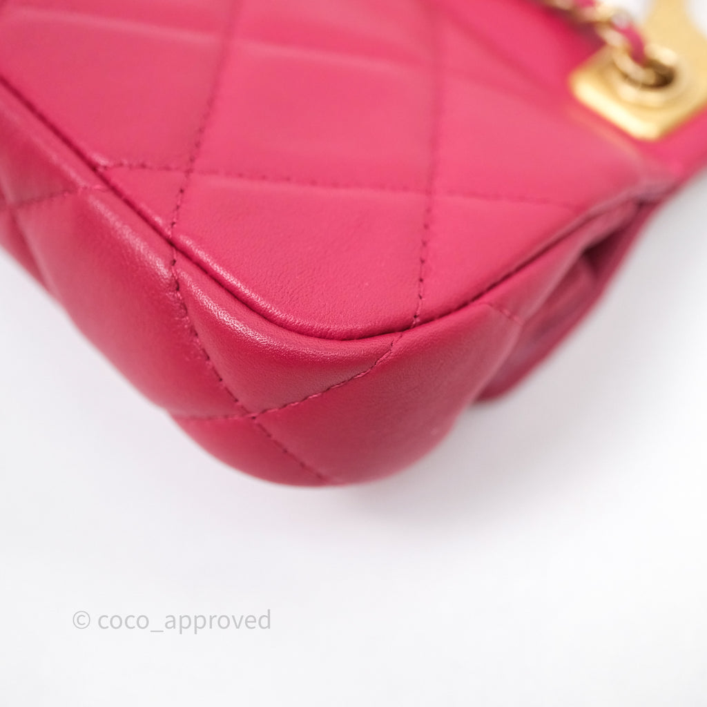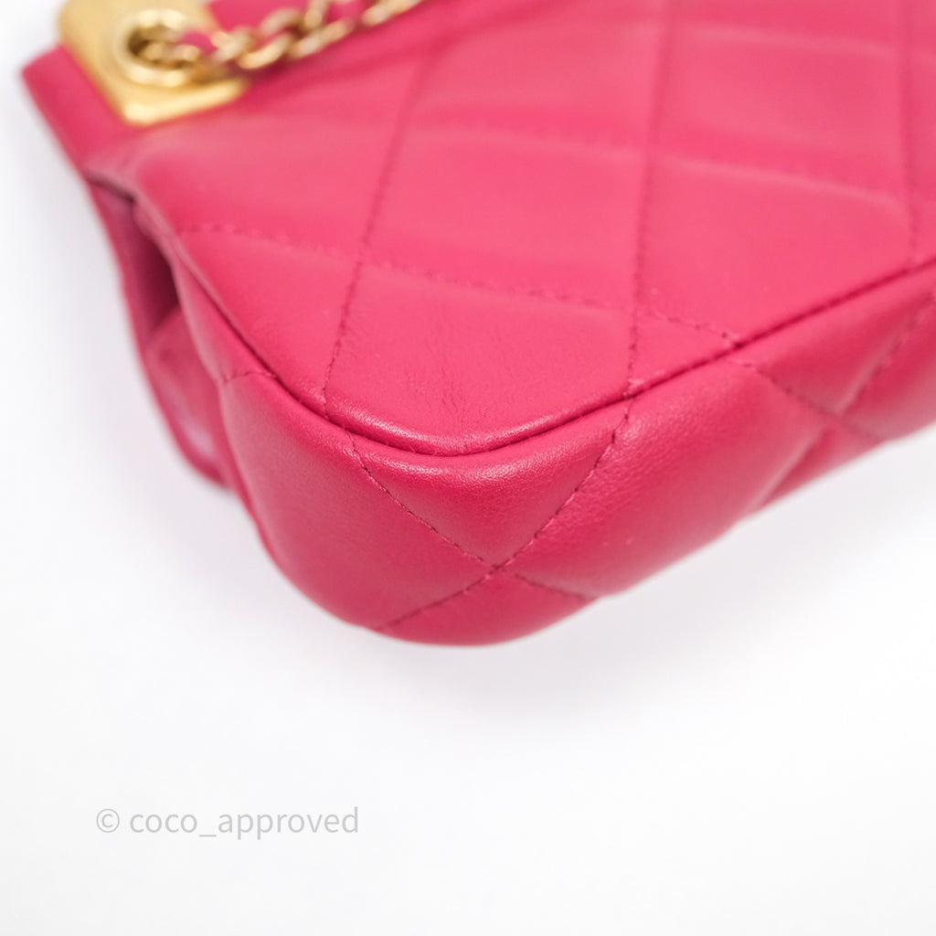 Chanel Quilted Lady Handle Flap Card Holder With Chain Dark Pink Calfskin Aged Gold Hardware