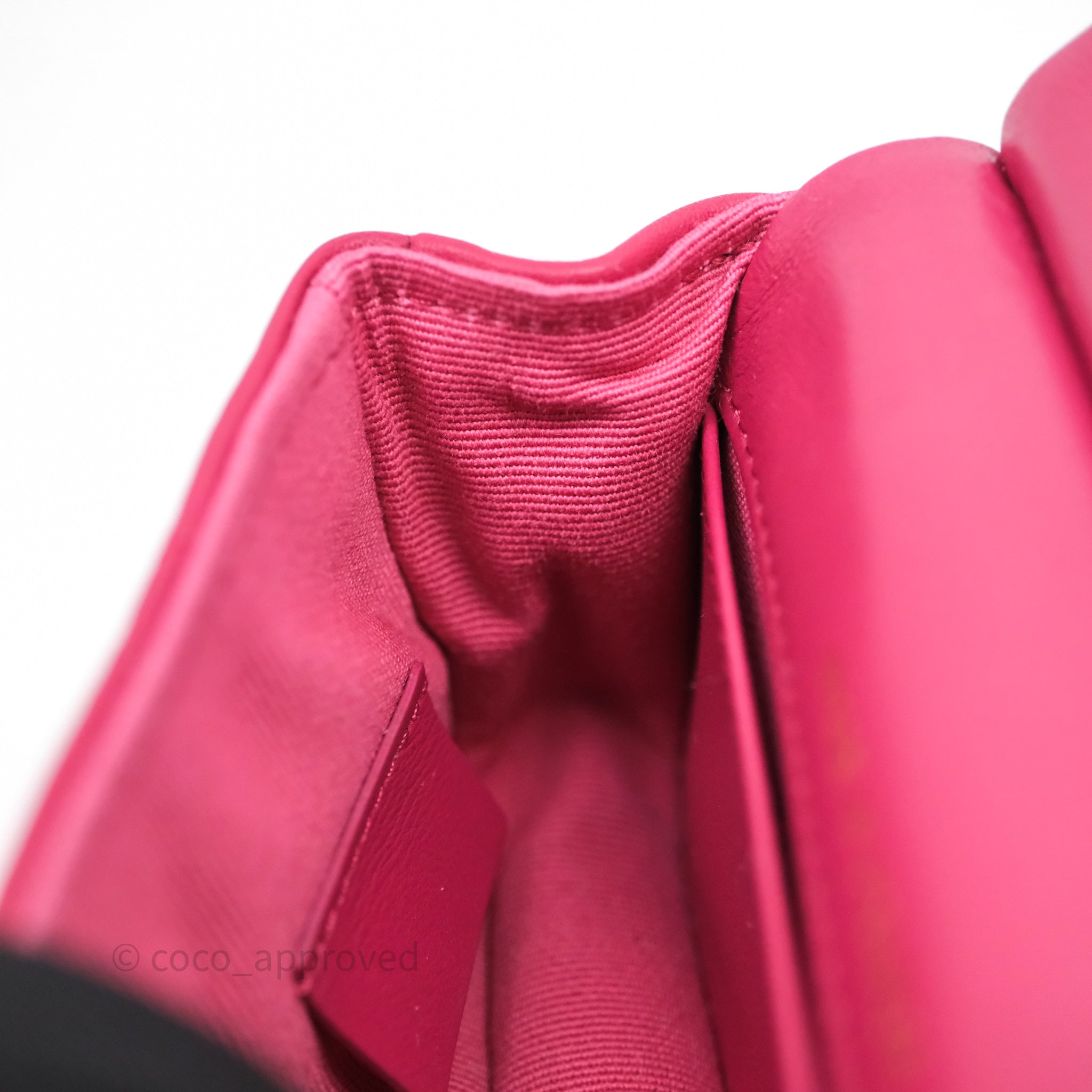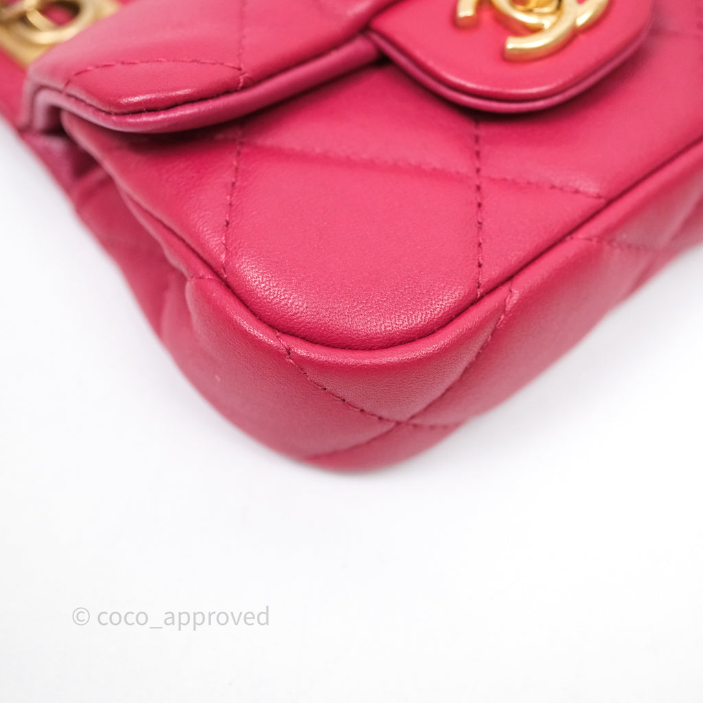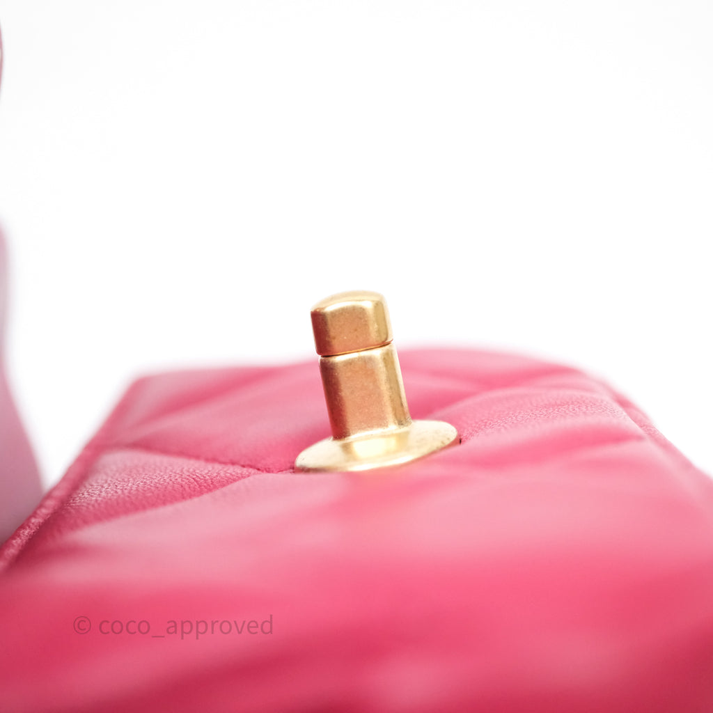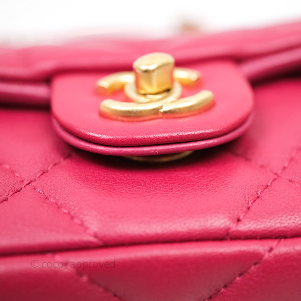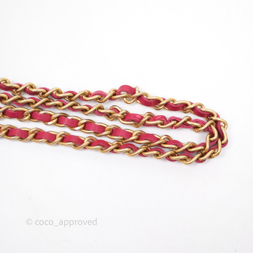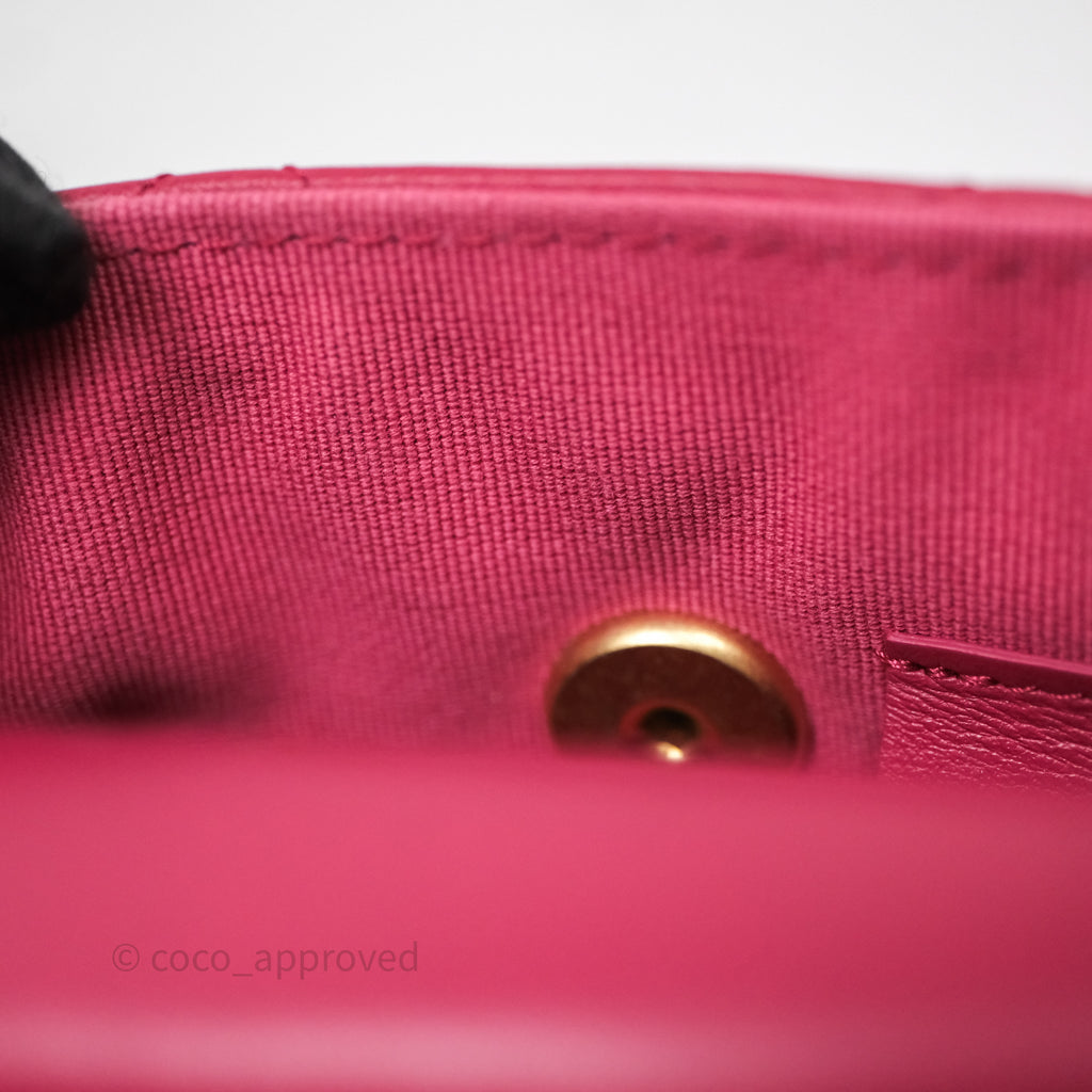 Chanel Quilted Lady Handle Flap Card Holder With Chain Dark Pink Calfskin Aged Gold Hardware