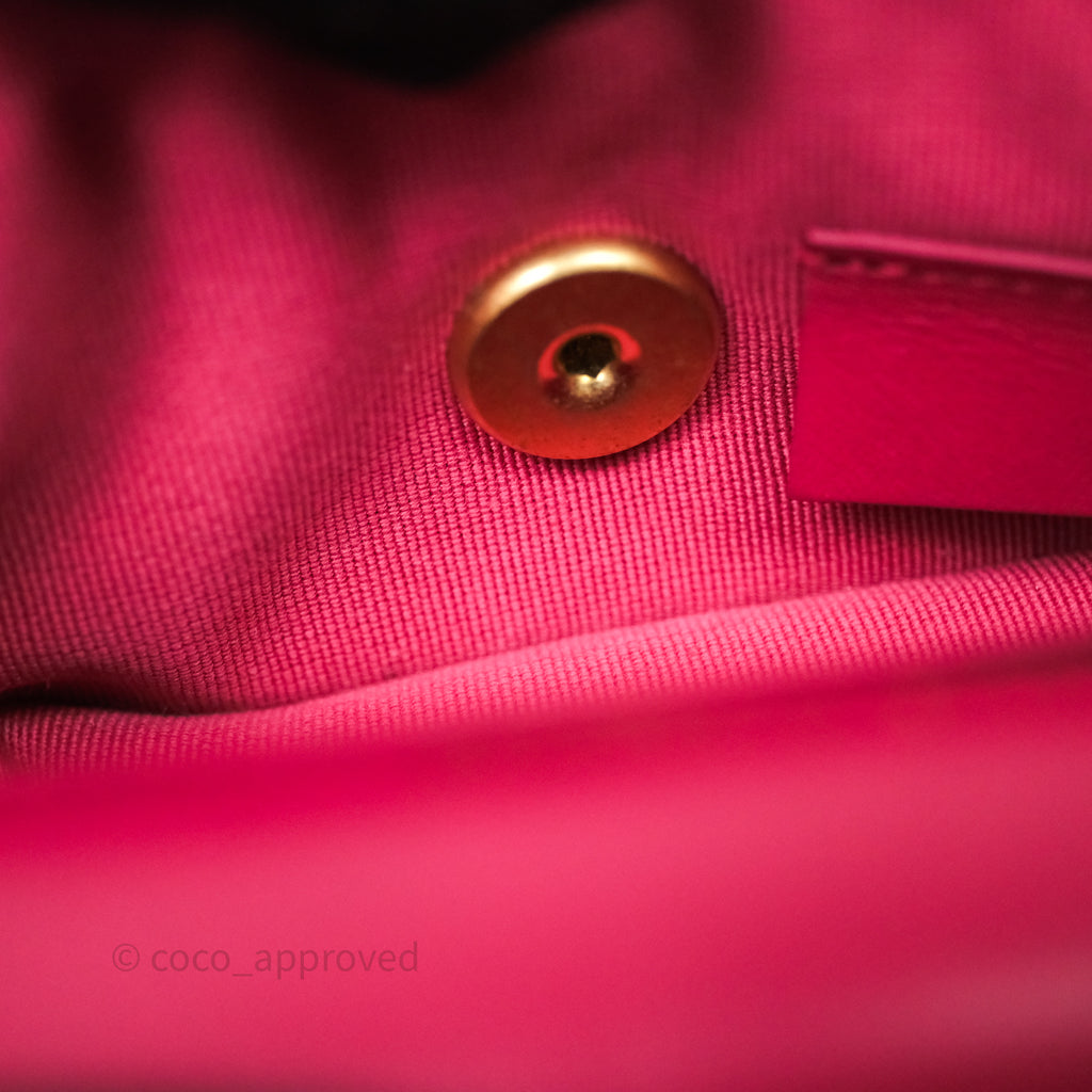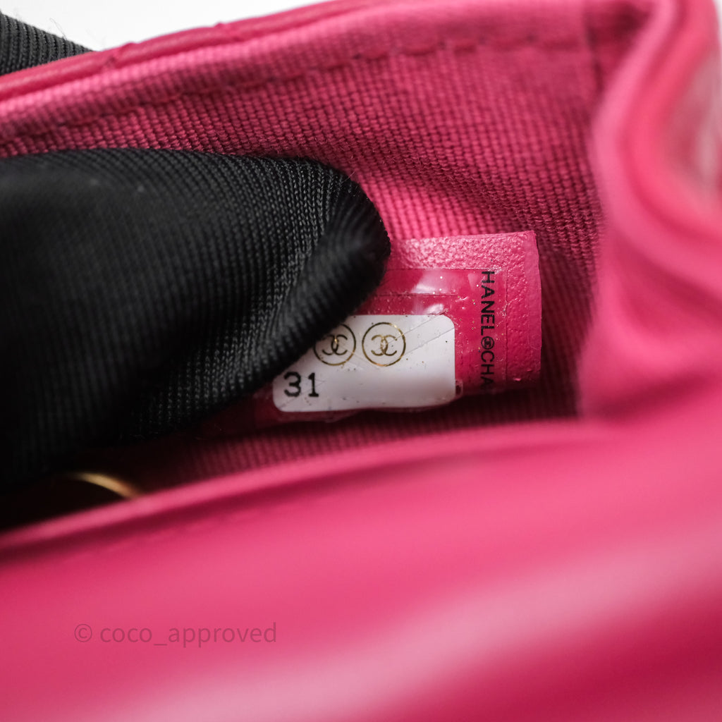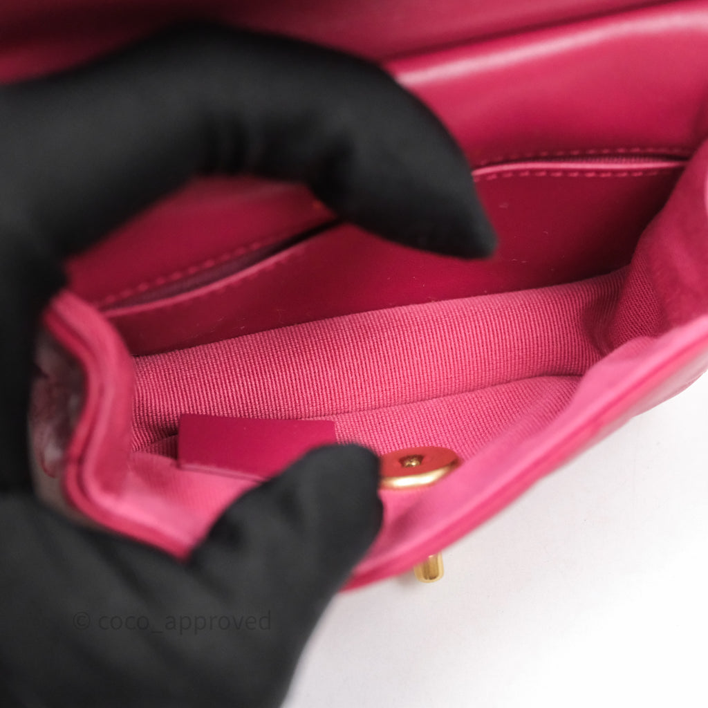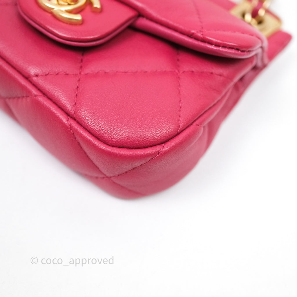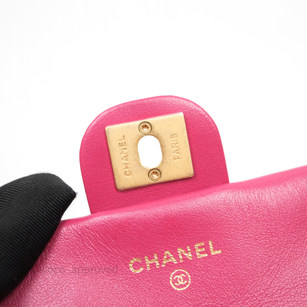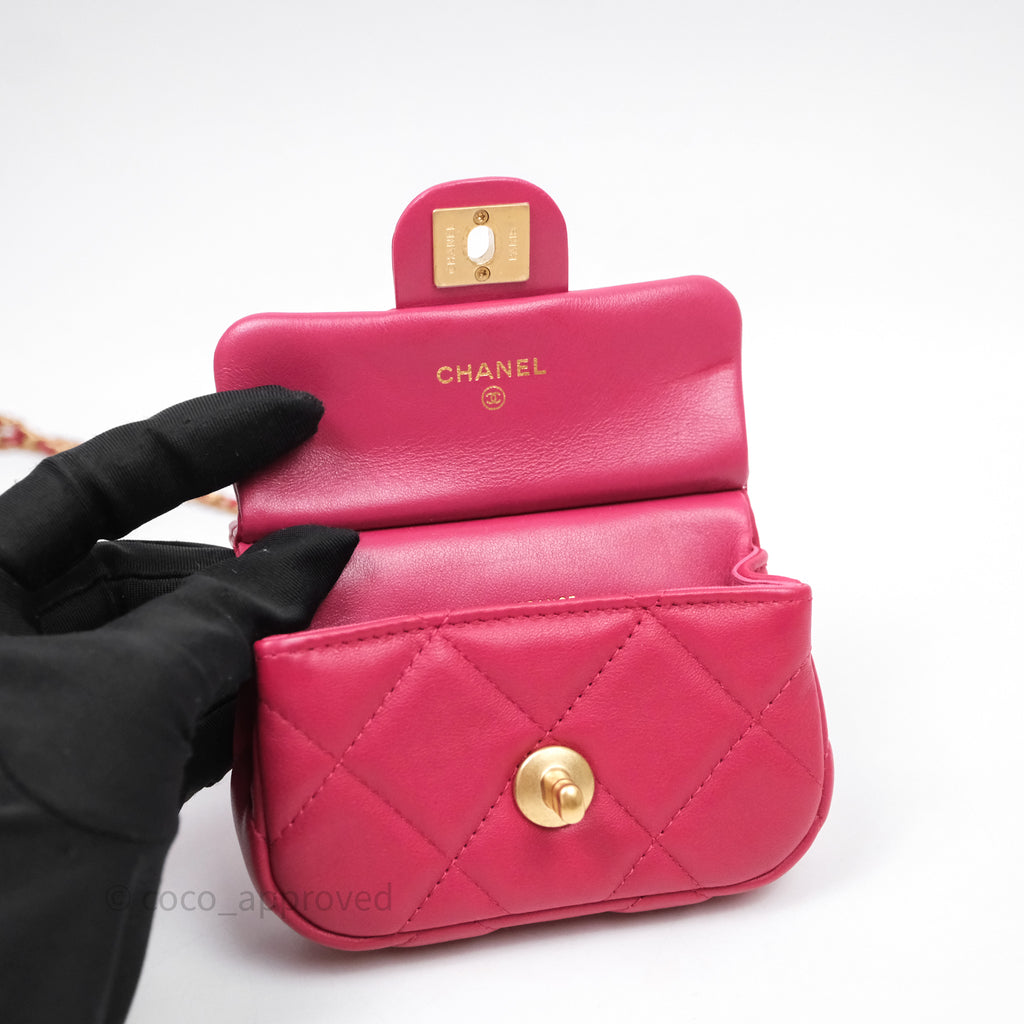Chanel Quilted Lady Handle Flap Card Holder With Chain Dark Pink Calfskin Aged Gold Hardware