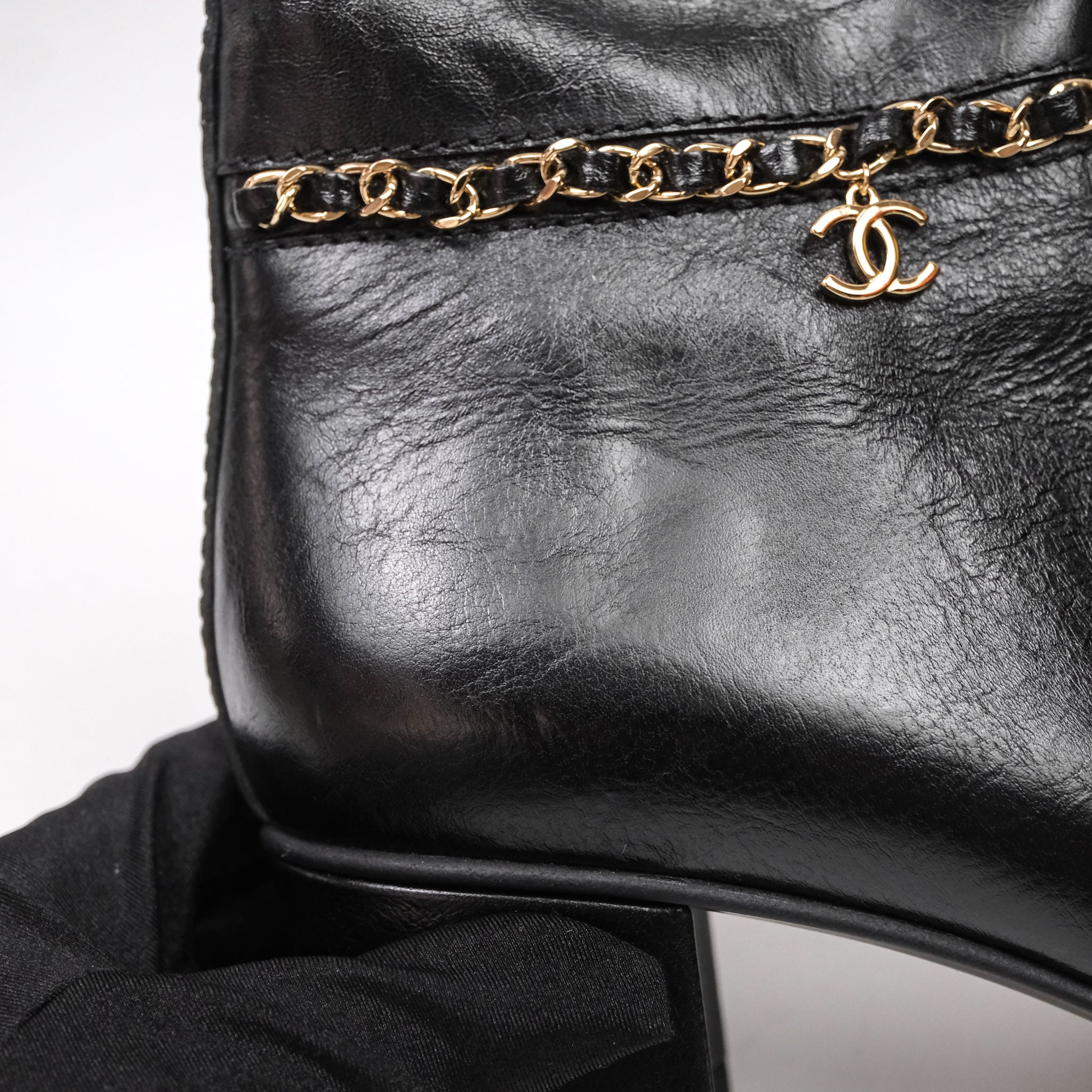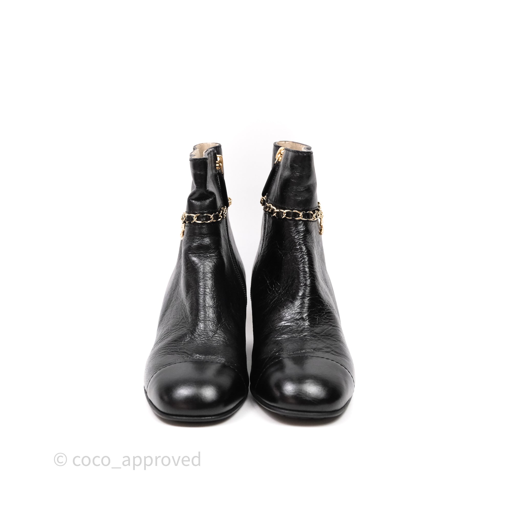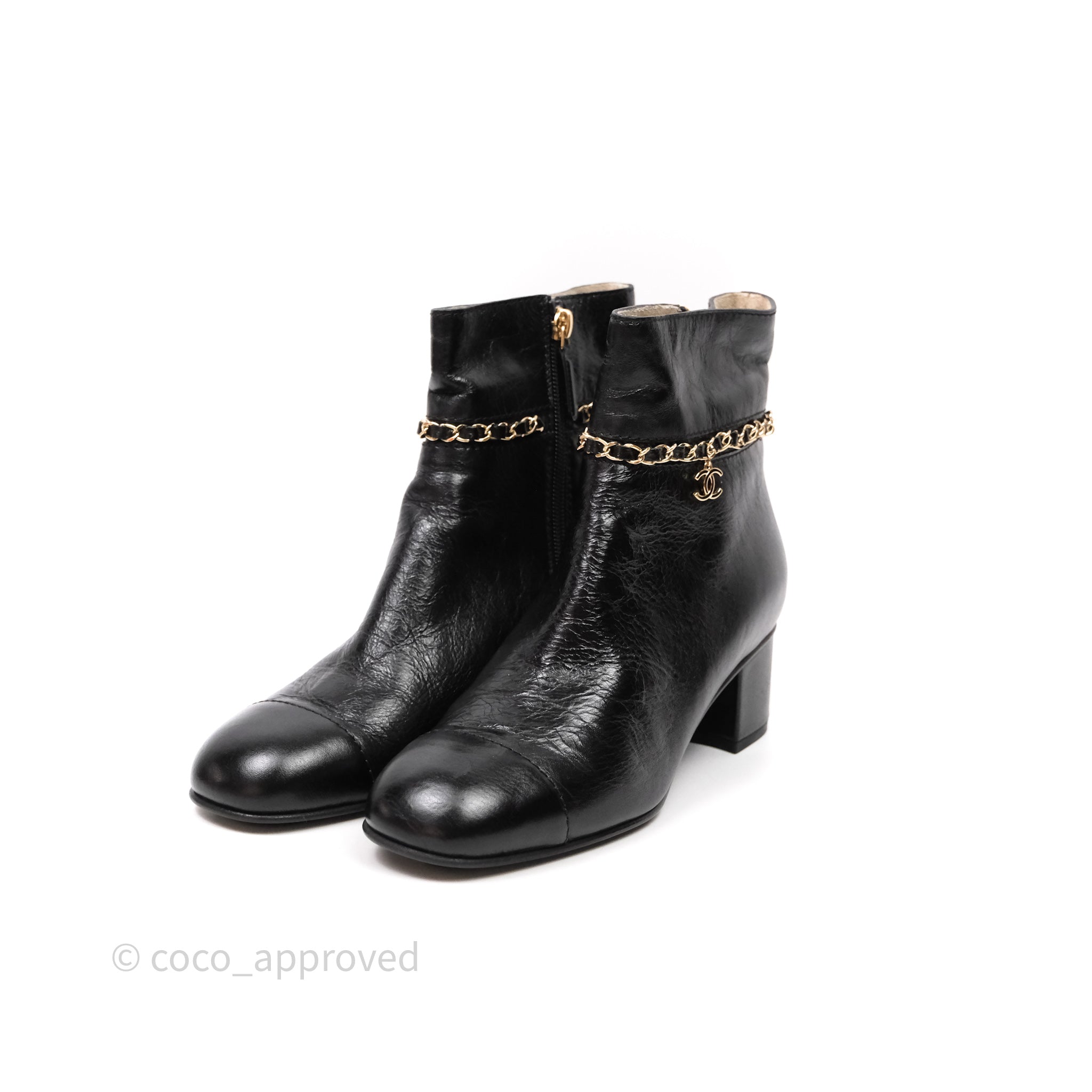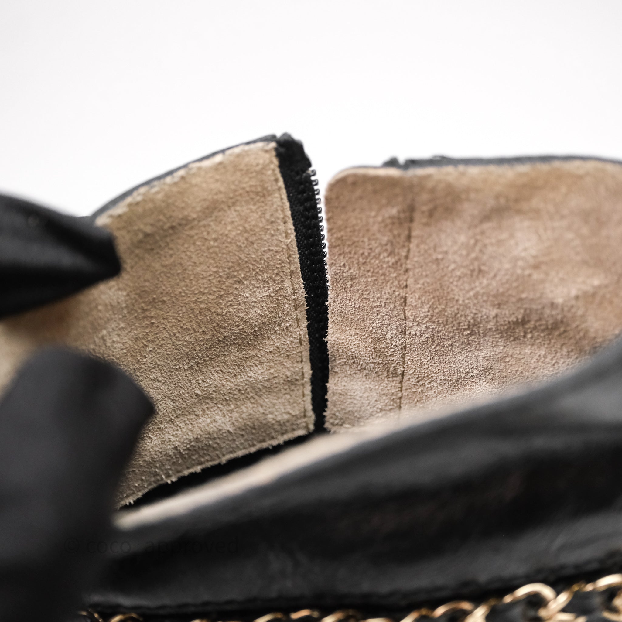Chanel CC Black Leather Chain Ankle Boots Size 39