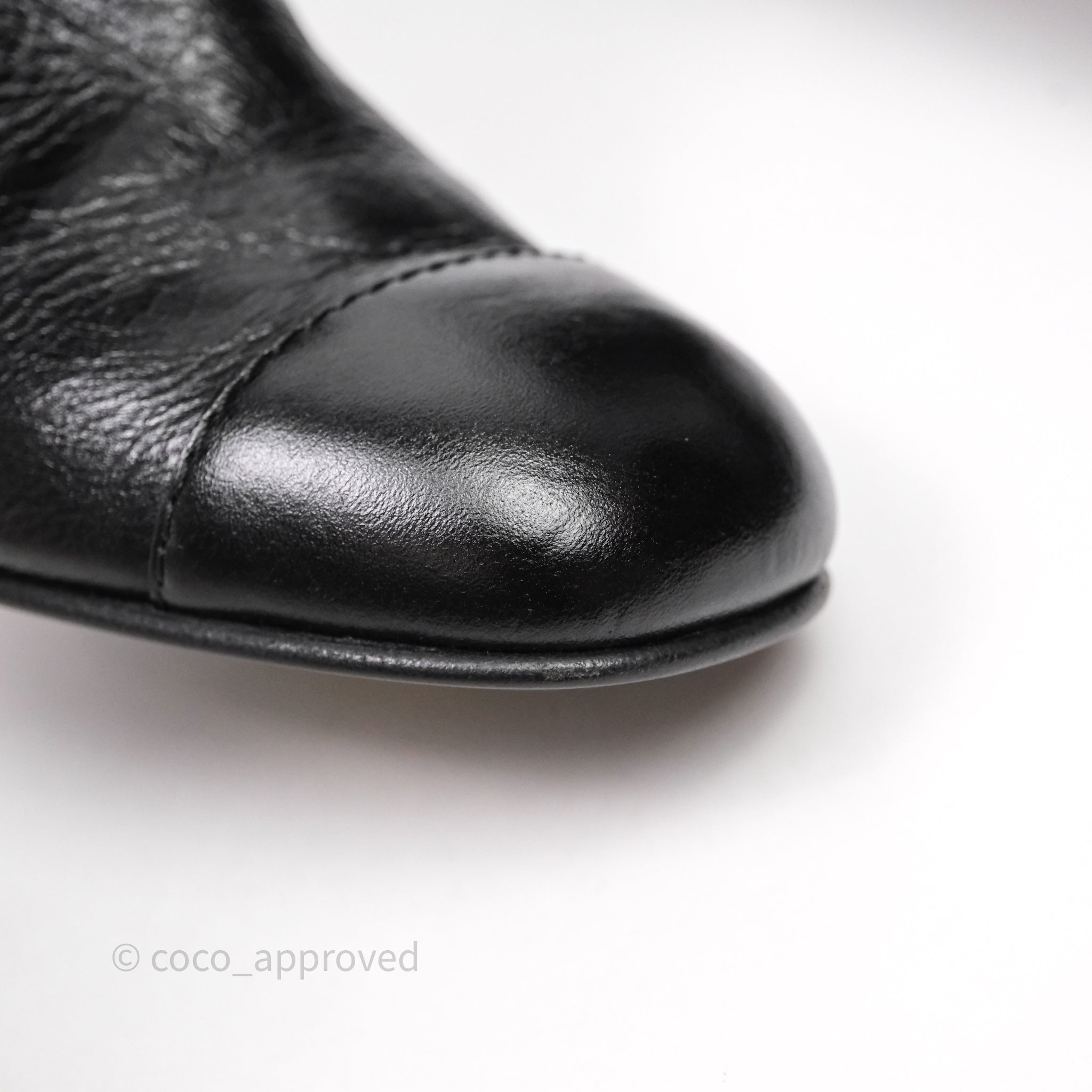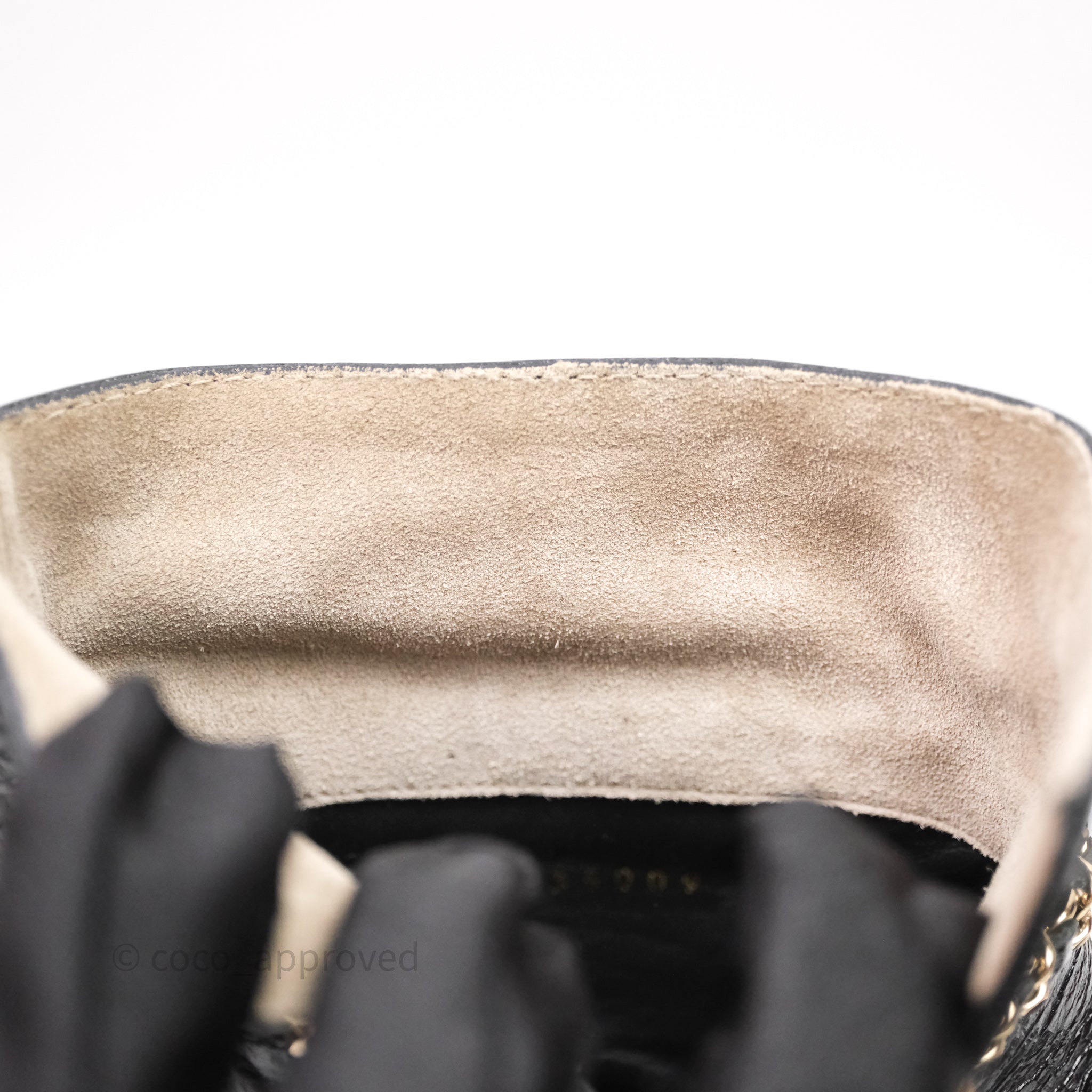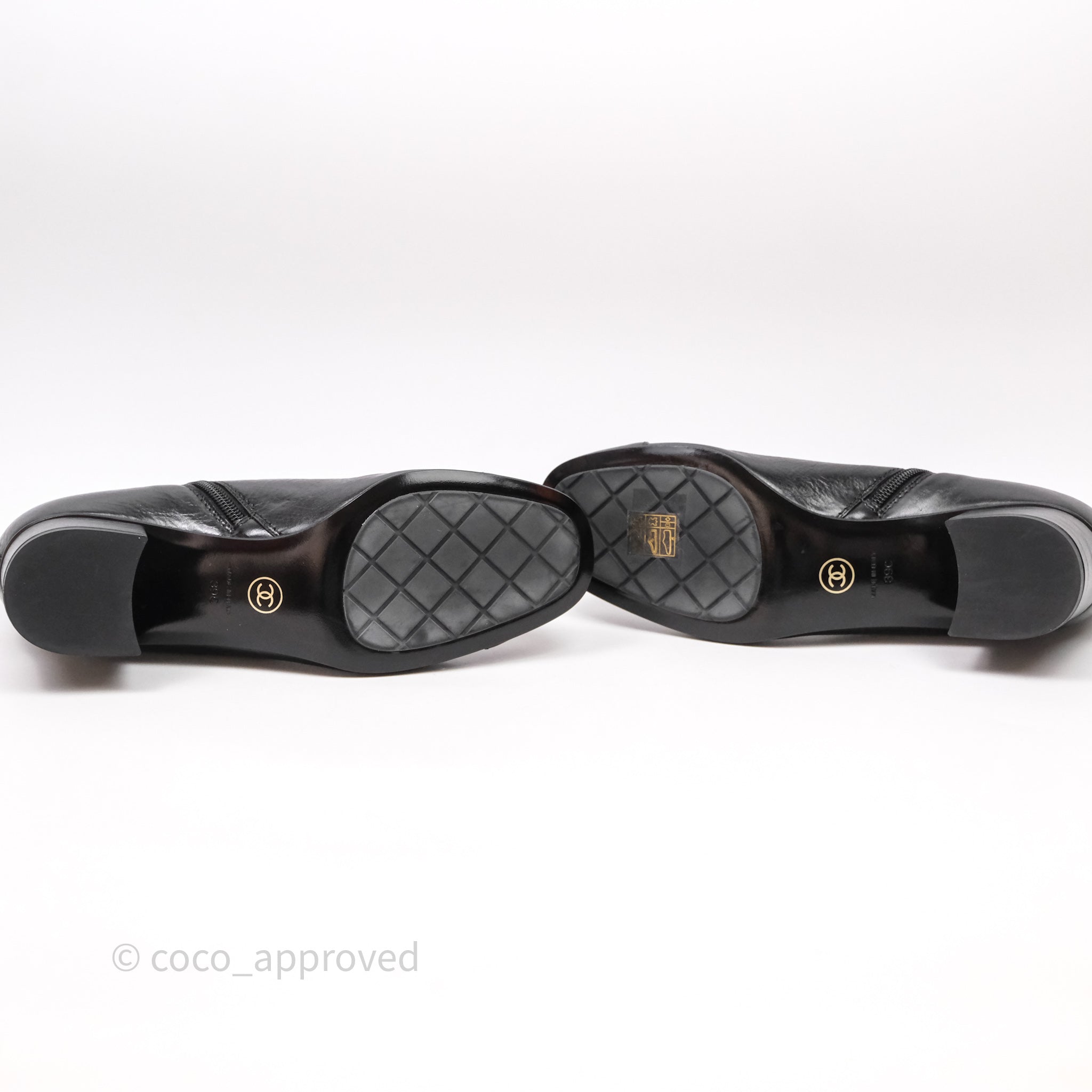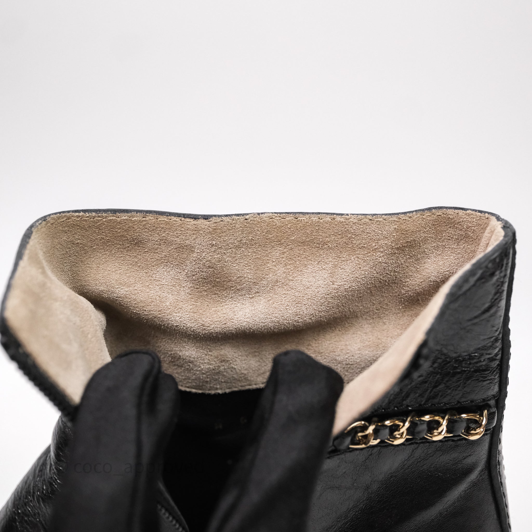 Chanel CC Black Leather Chain Ankle Boots Size 39