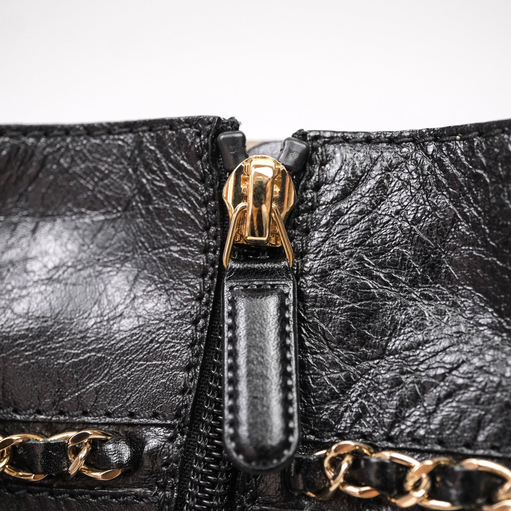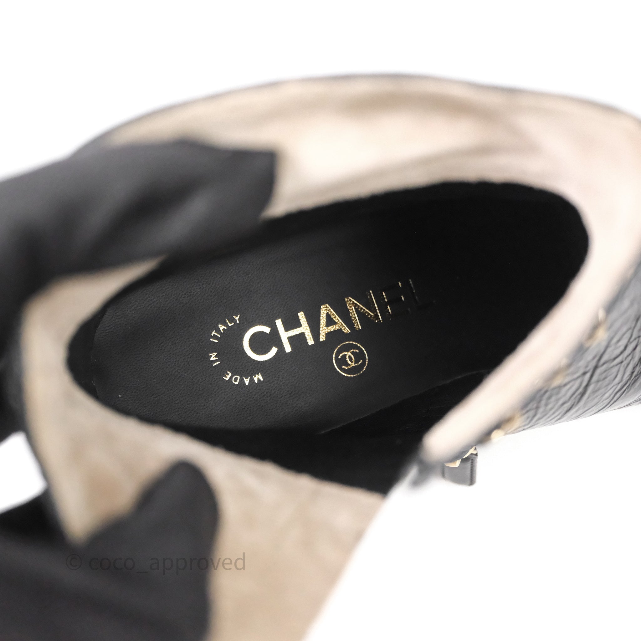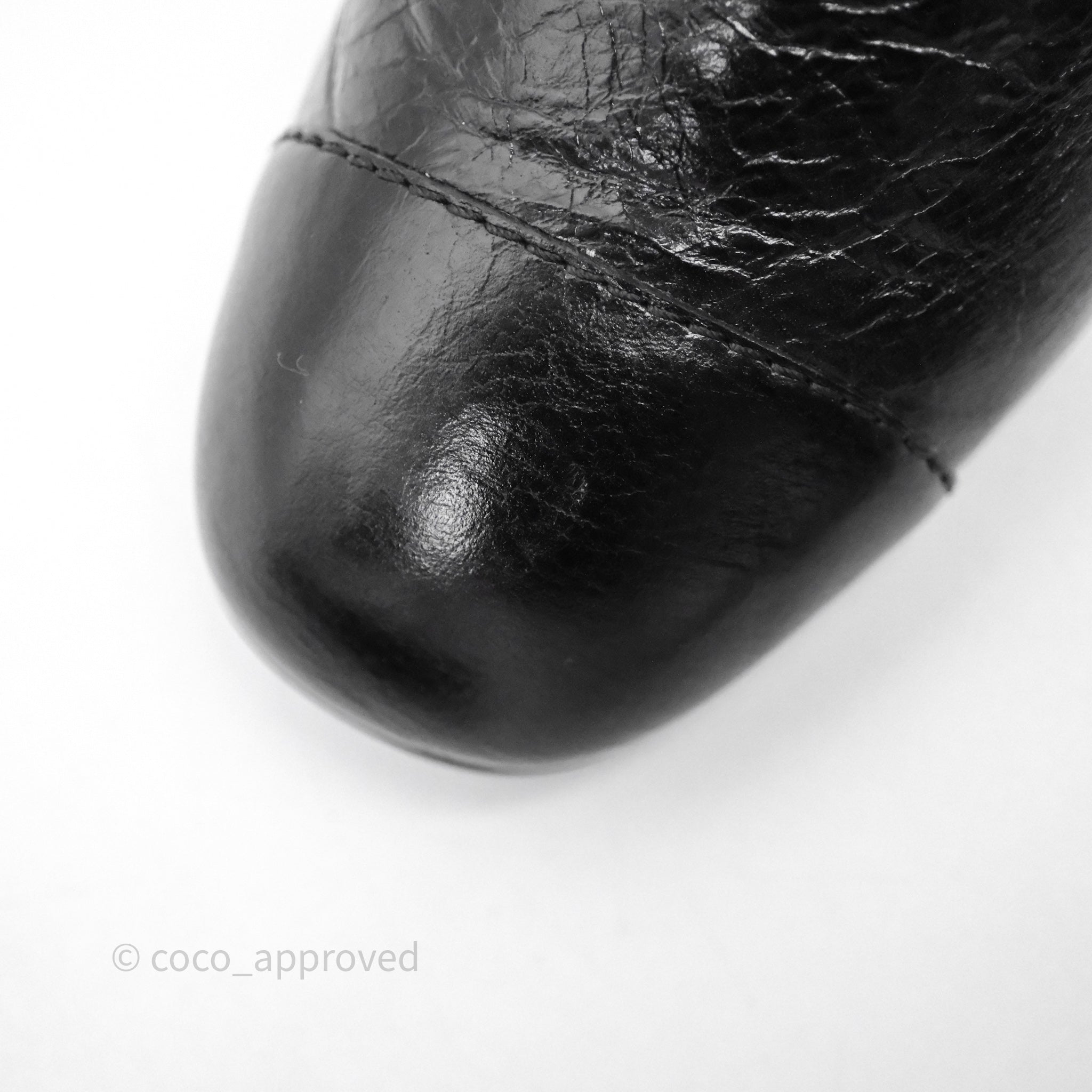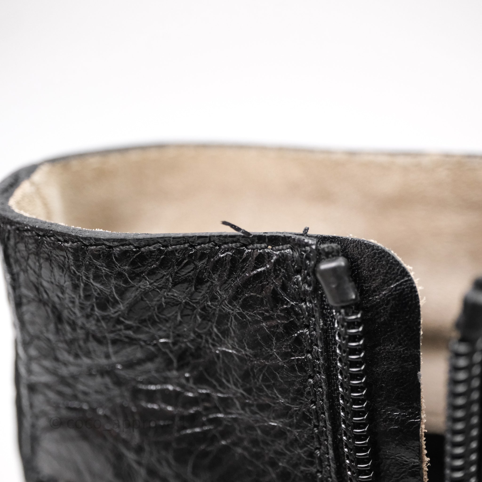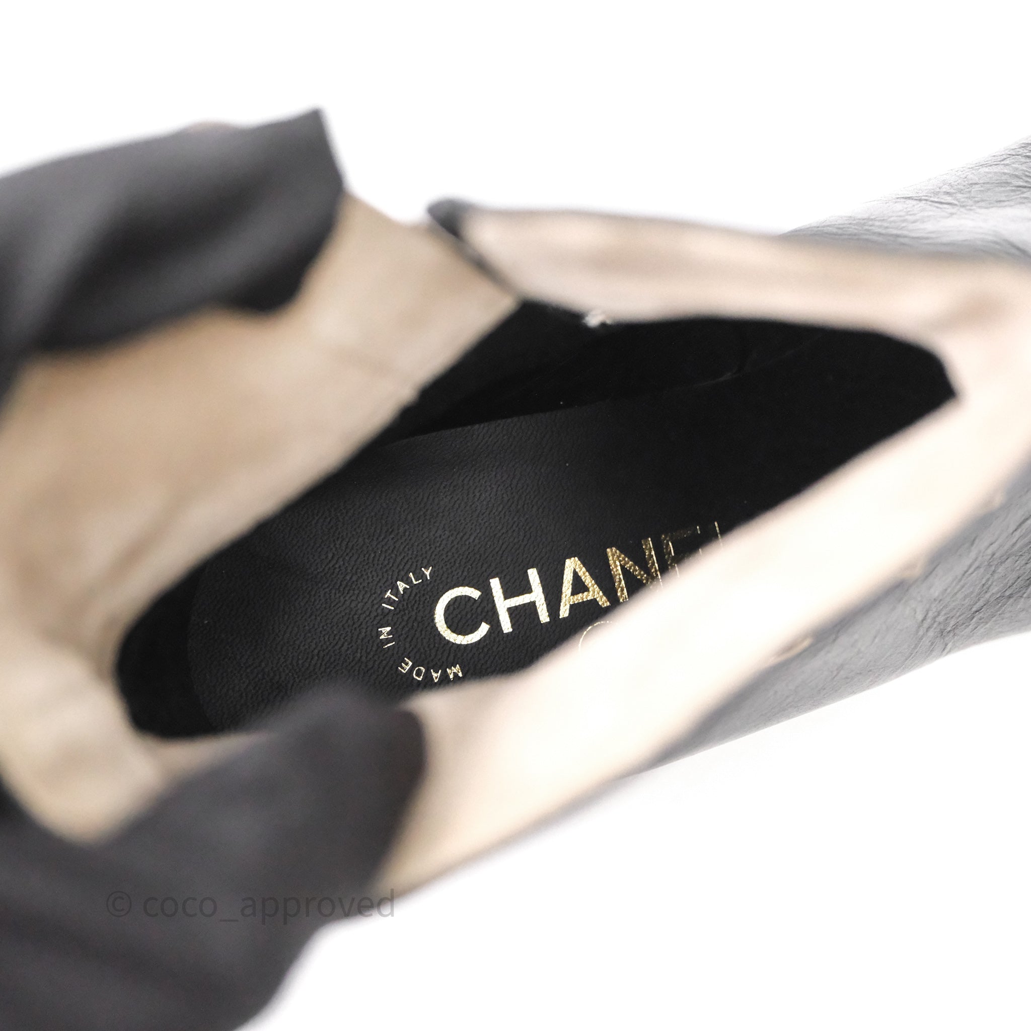 Chanel CC Black Leather Chain Ankle Boots Size 39