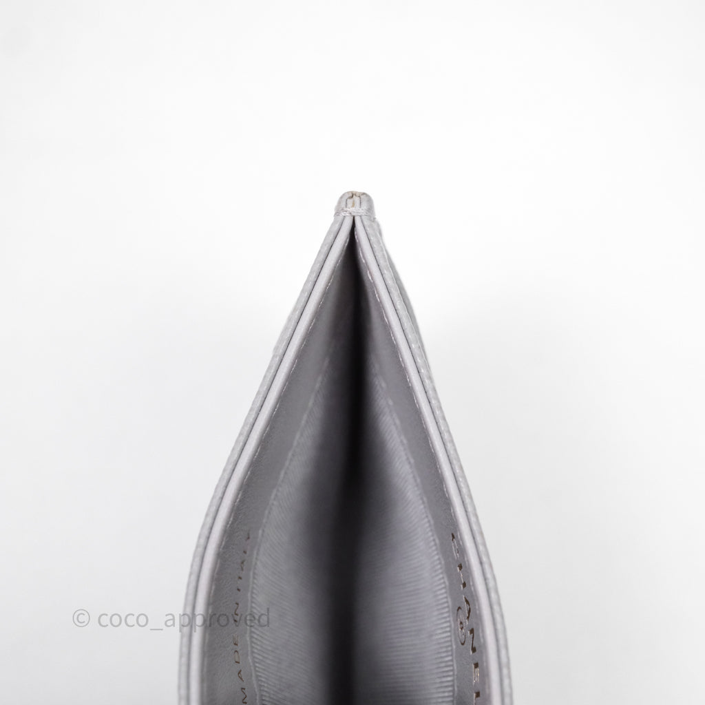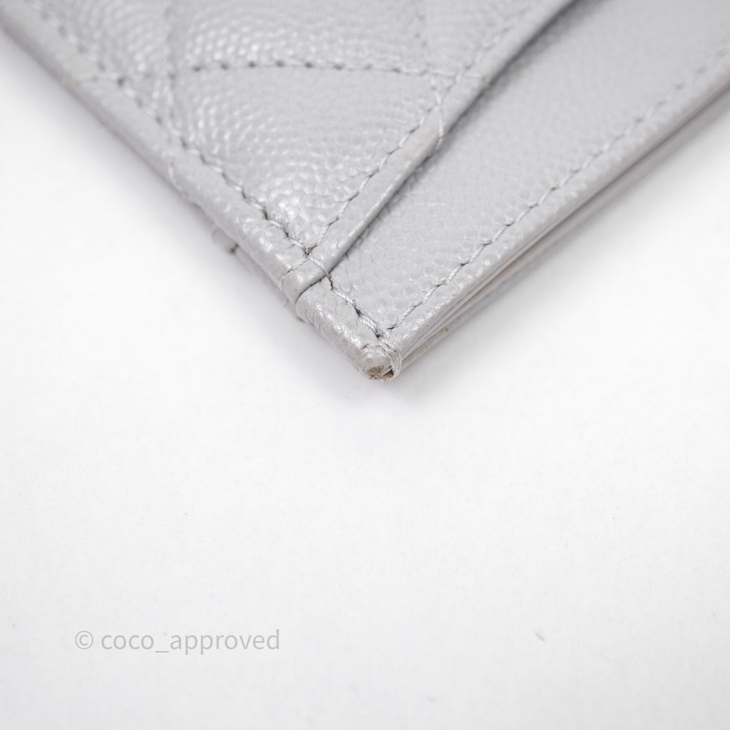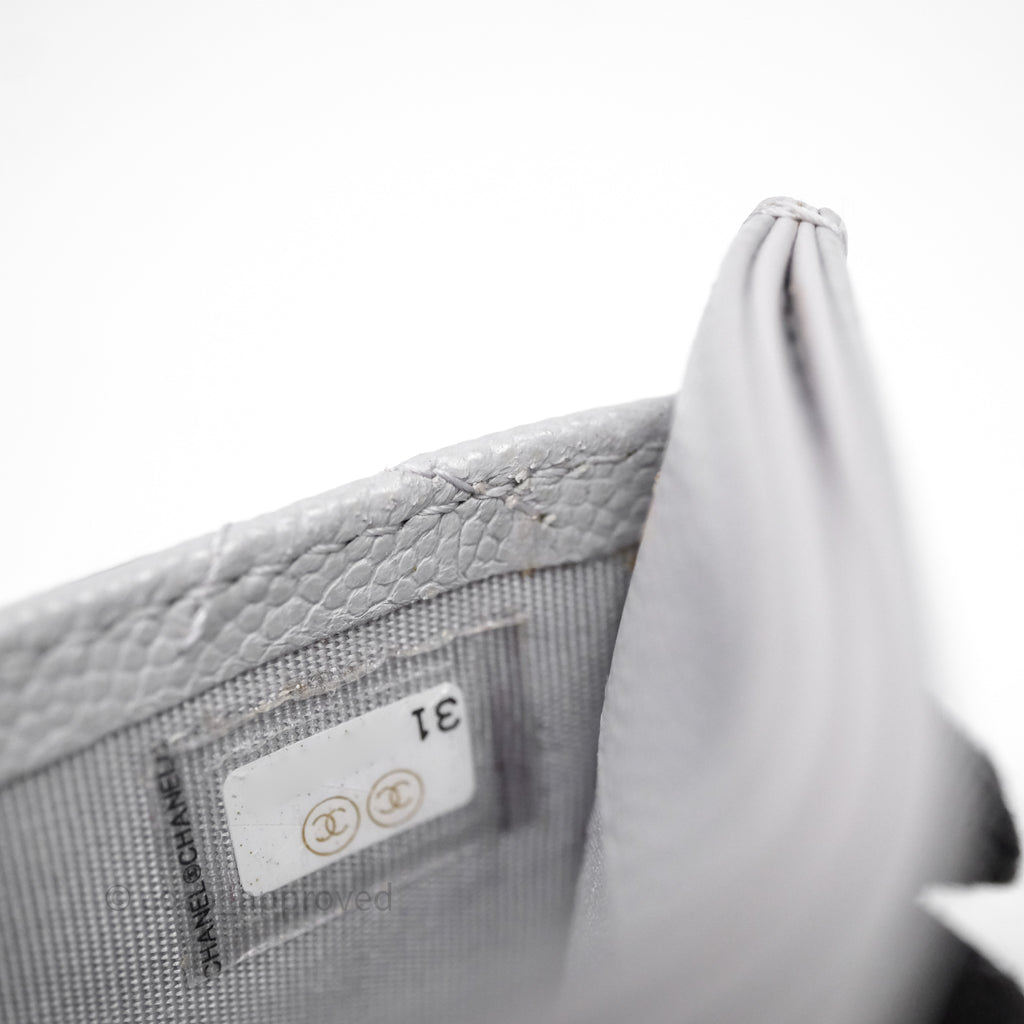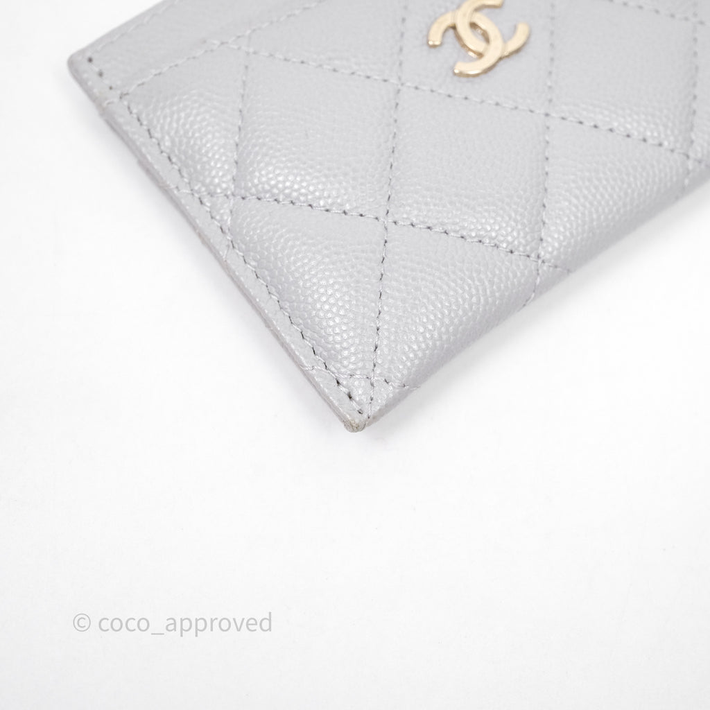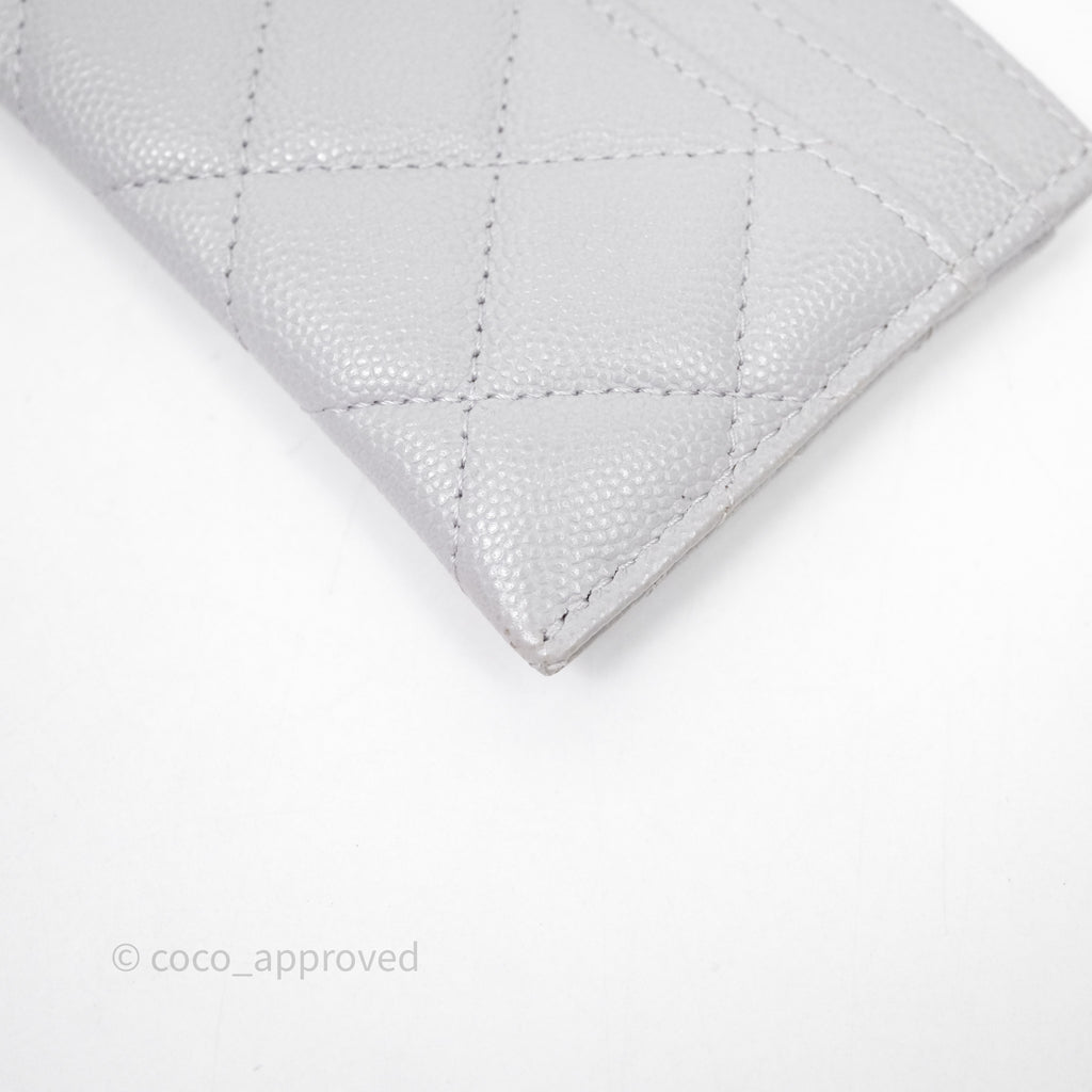 Chanel Classic Flat Card Holder Grey Caviar Gold Hardware