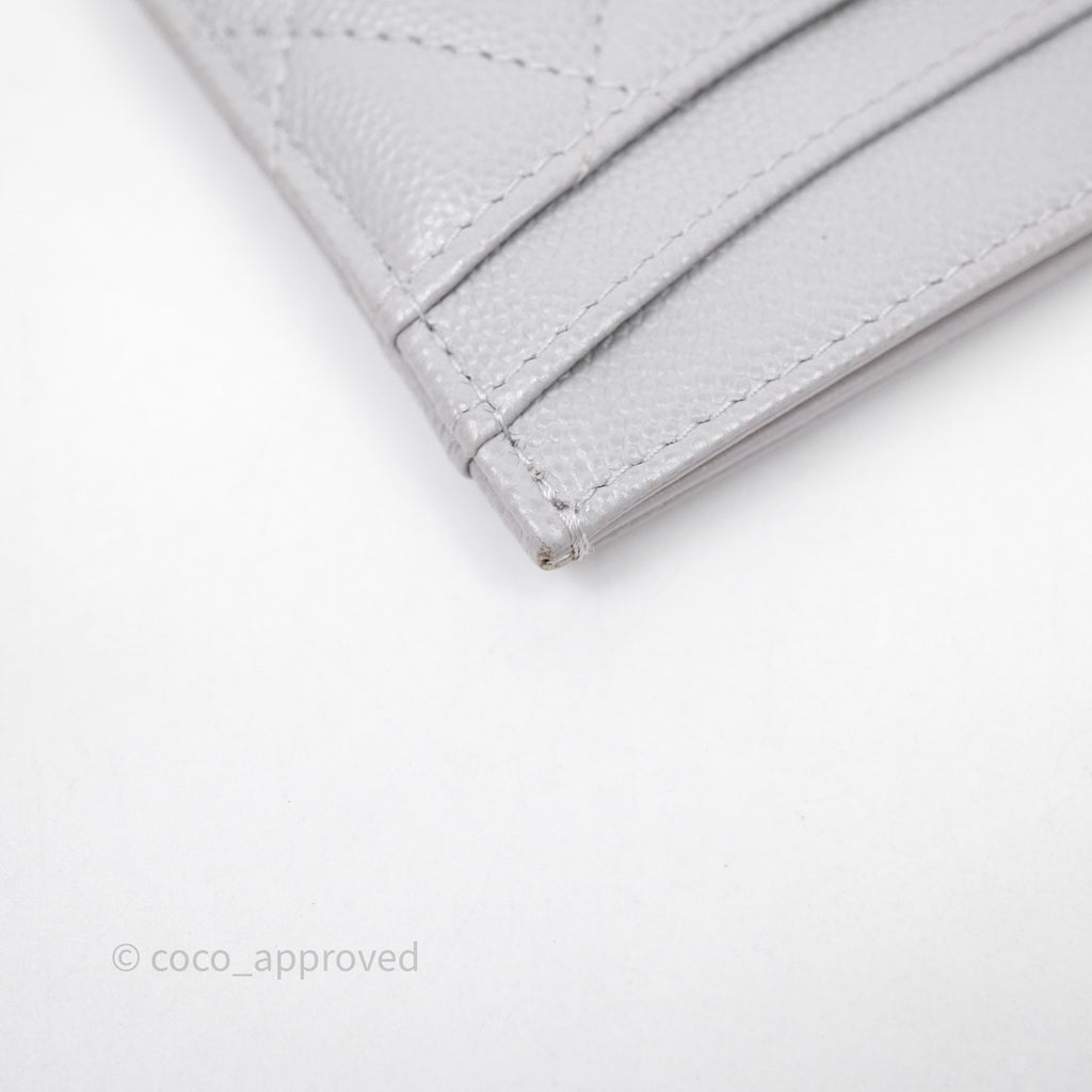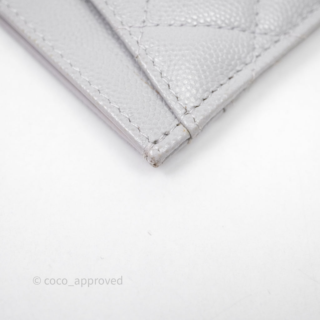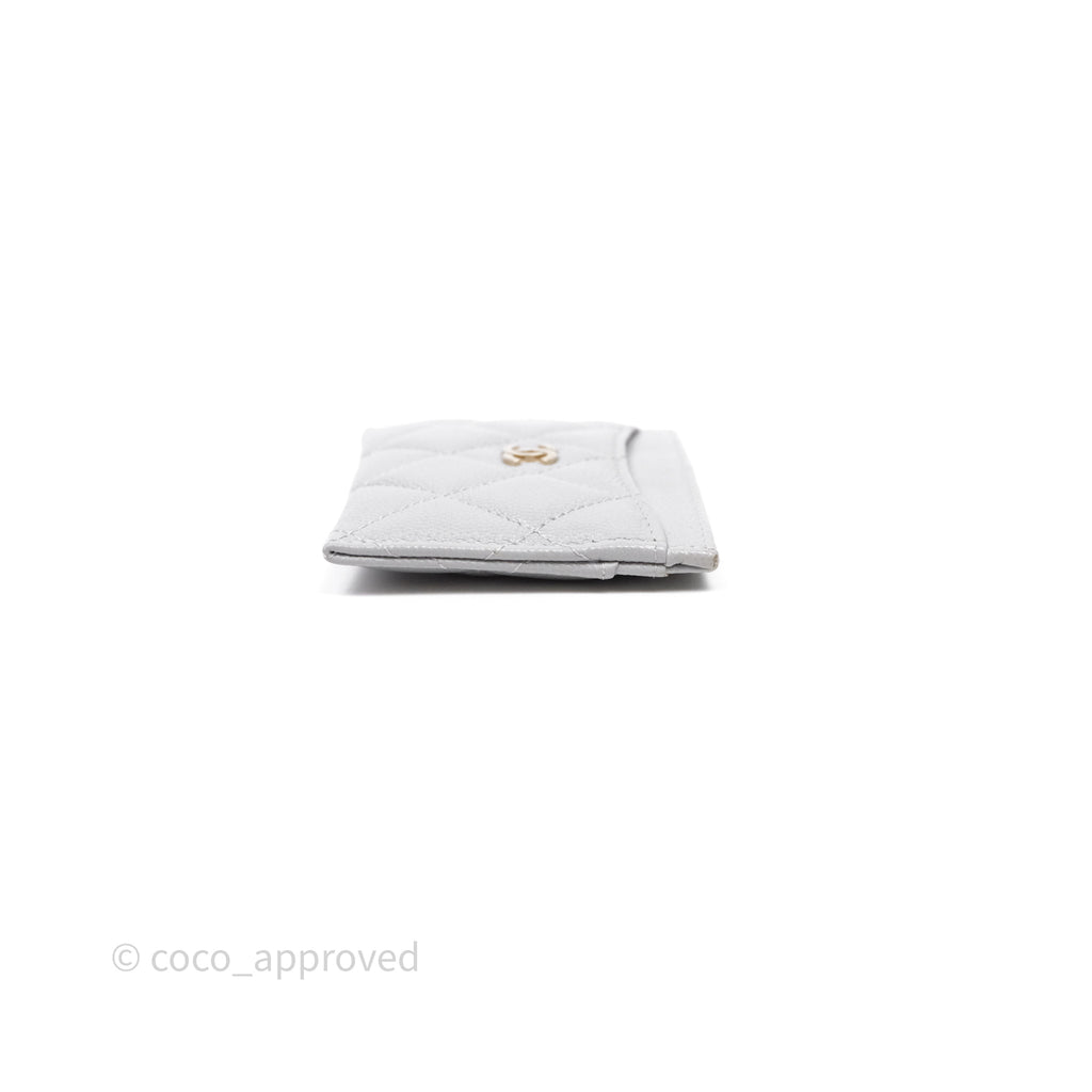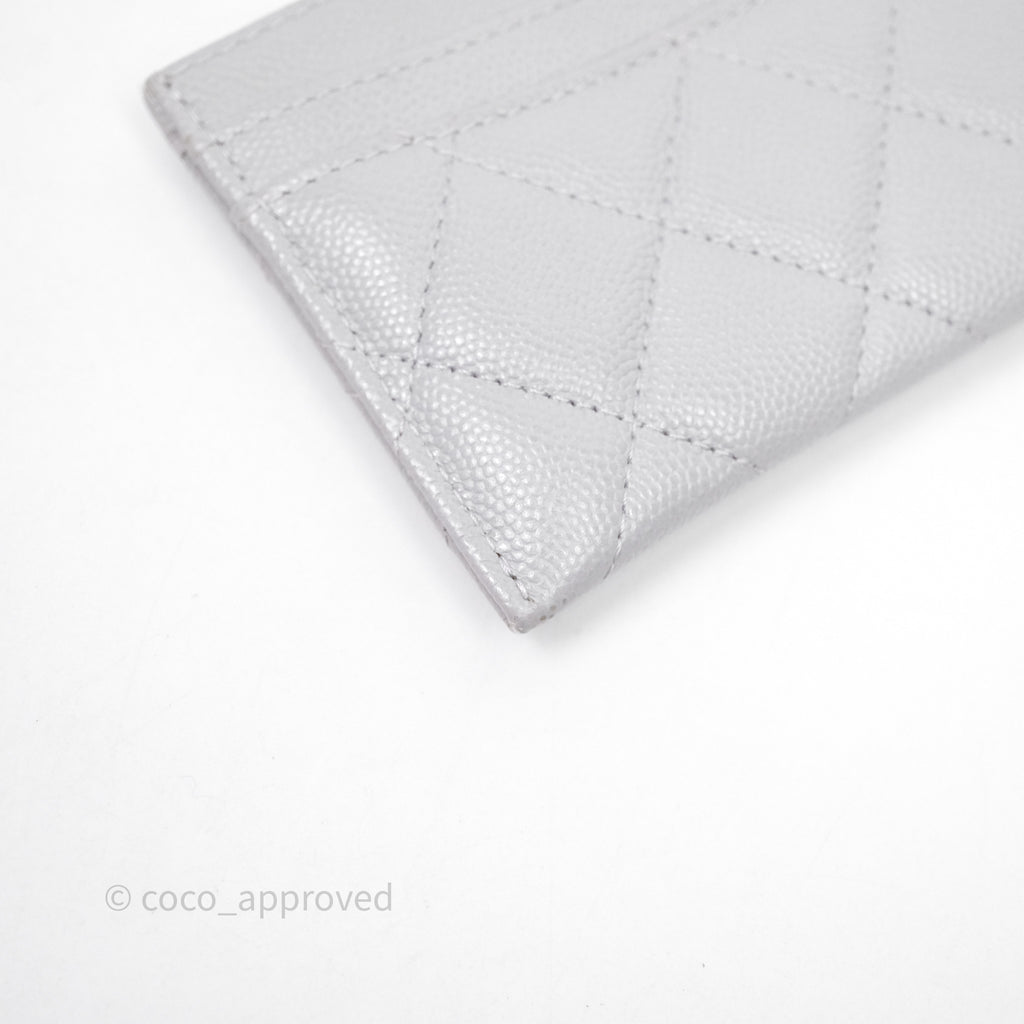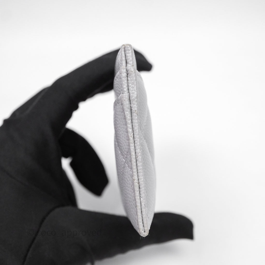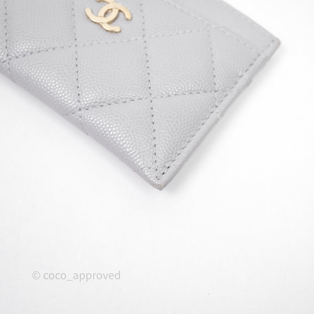 Chanel Classic Flat Card Holder Grey Caviar Gold Hardware