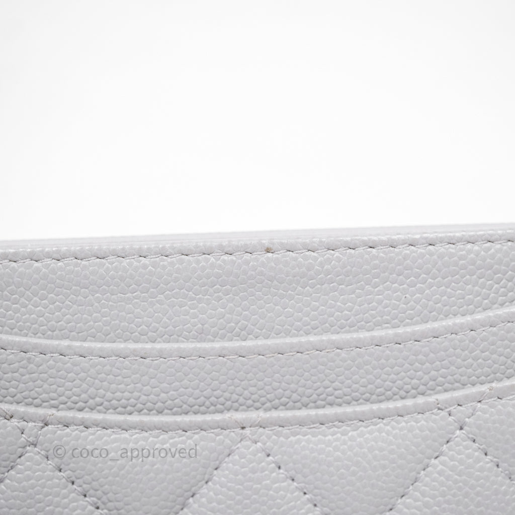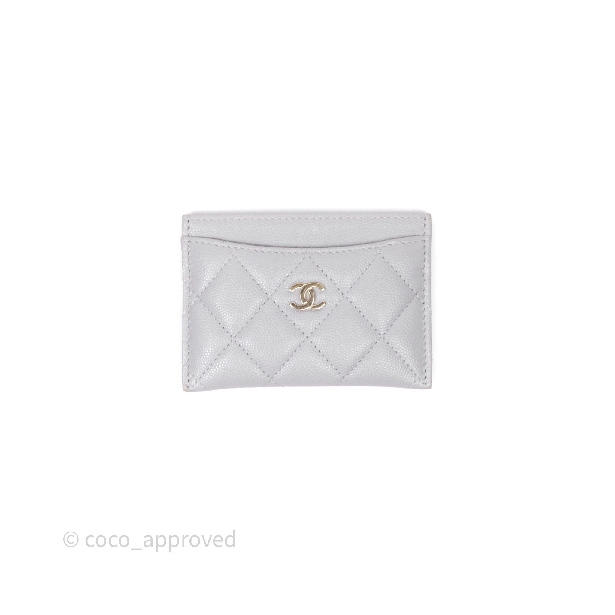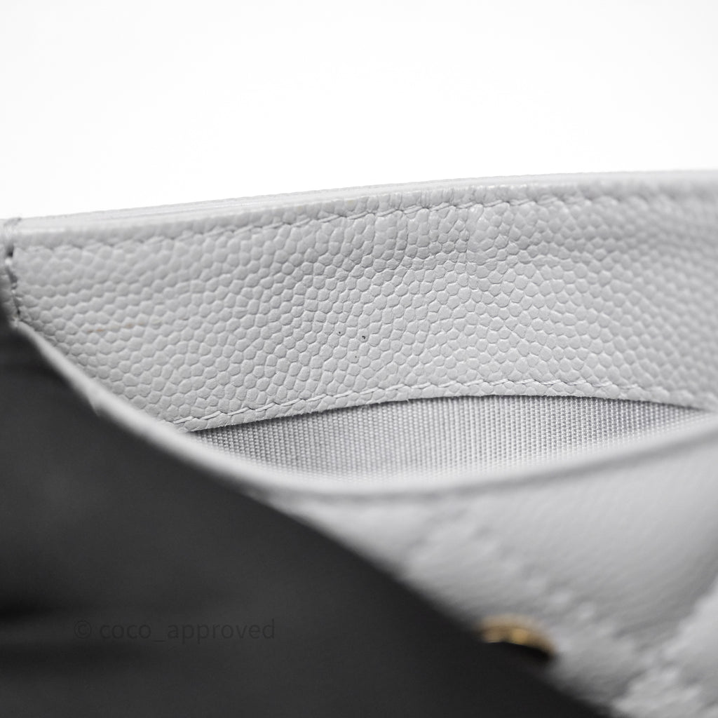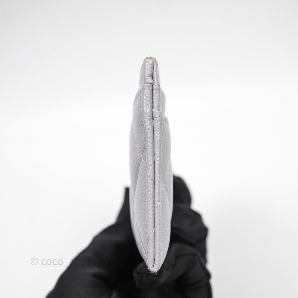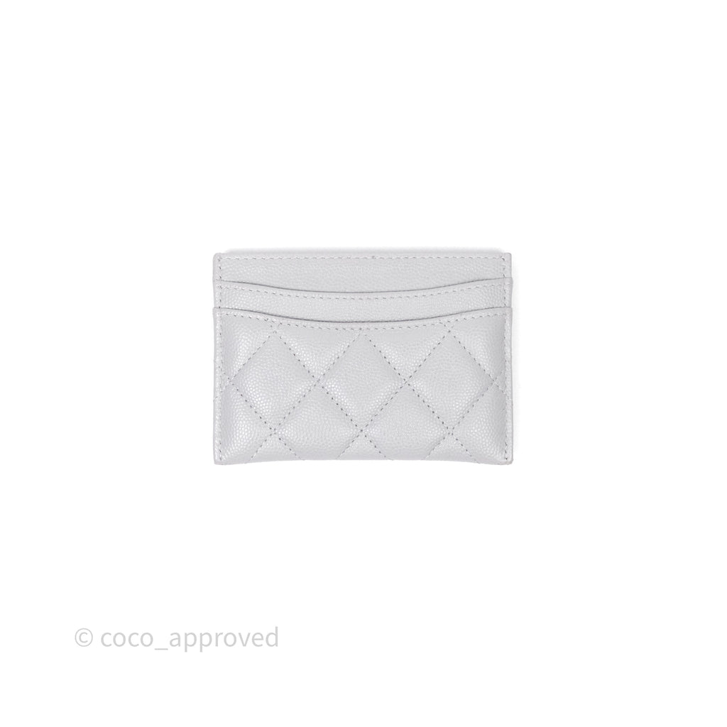 Chanel Classic Flat Card Holder Grey Caviar Gold Hardware
