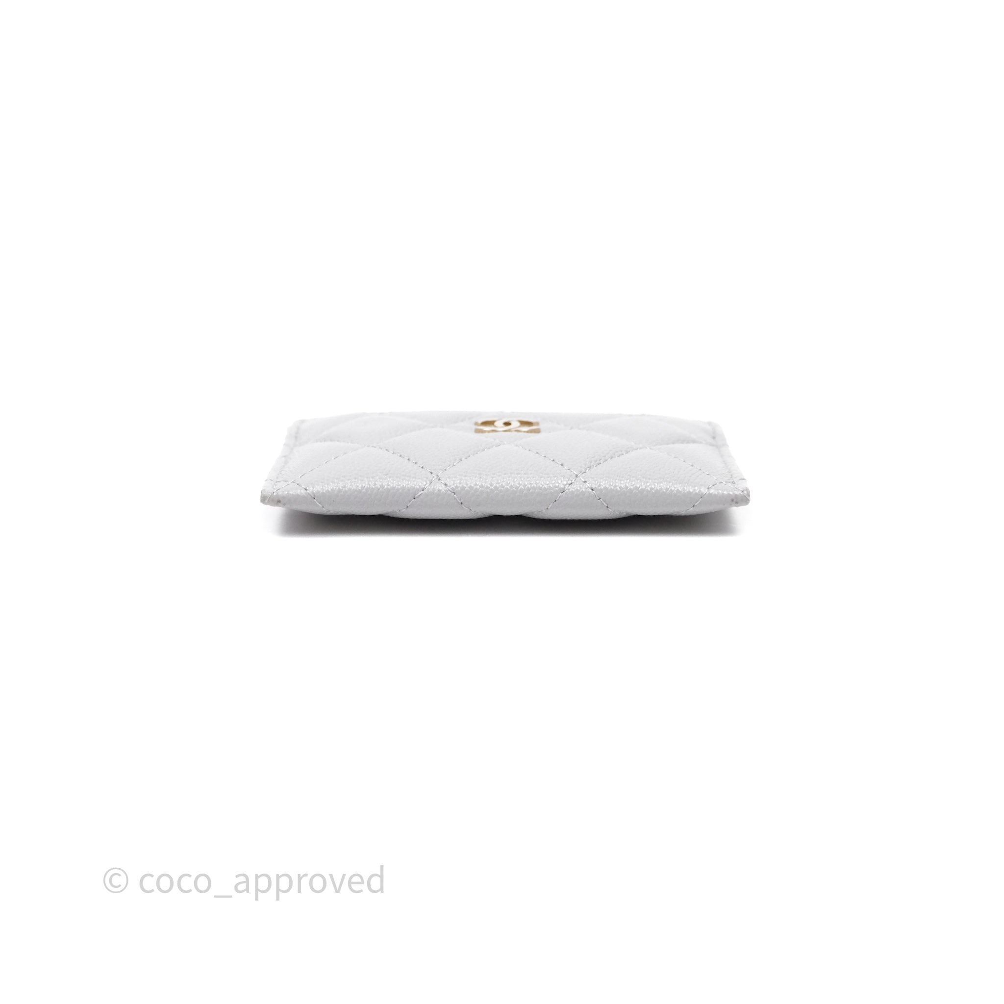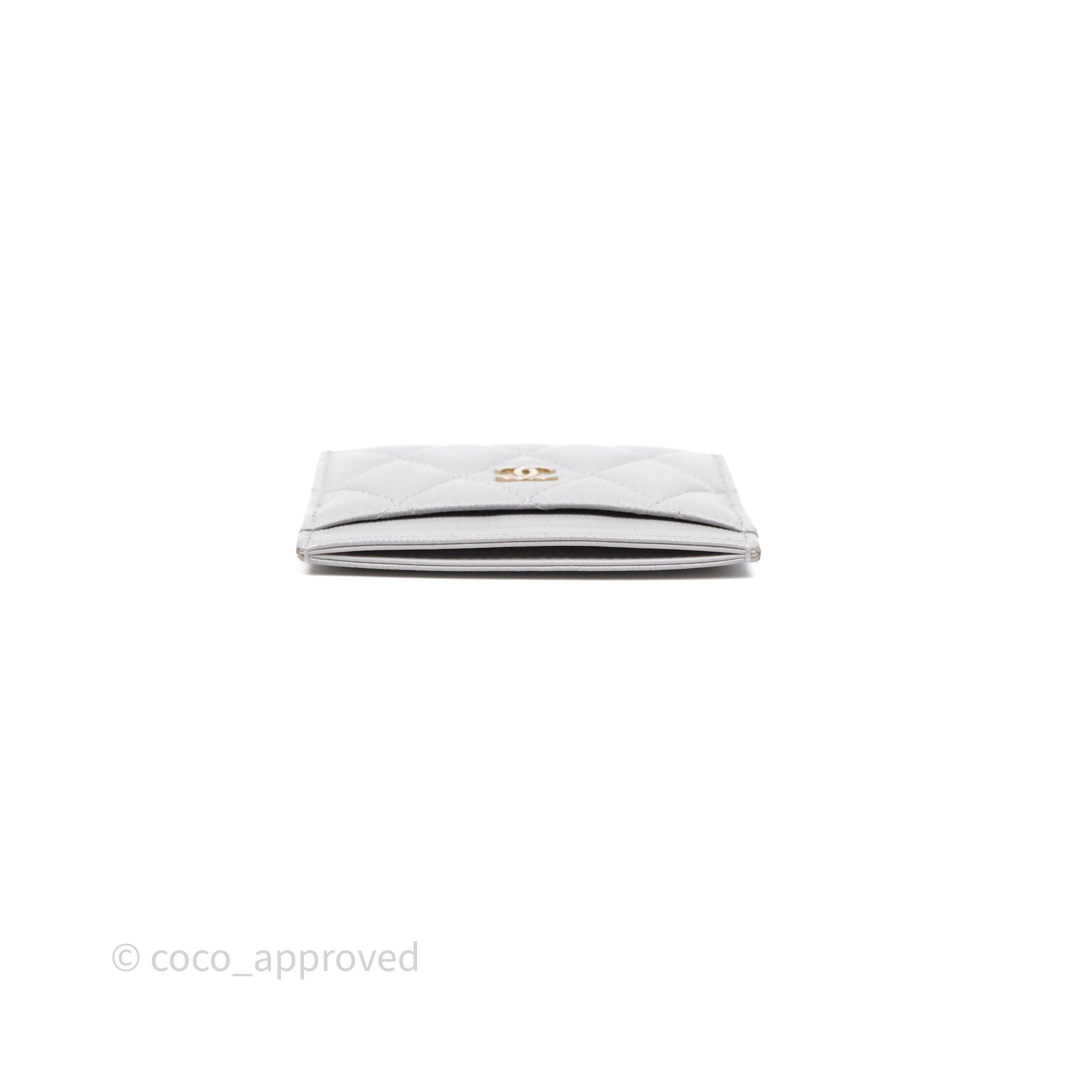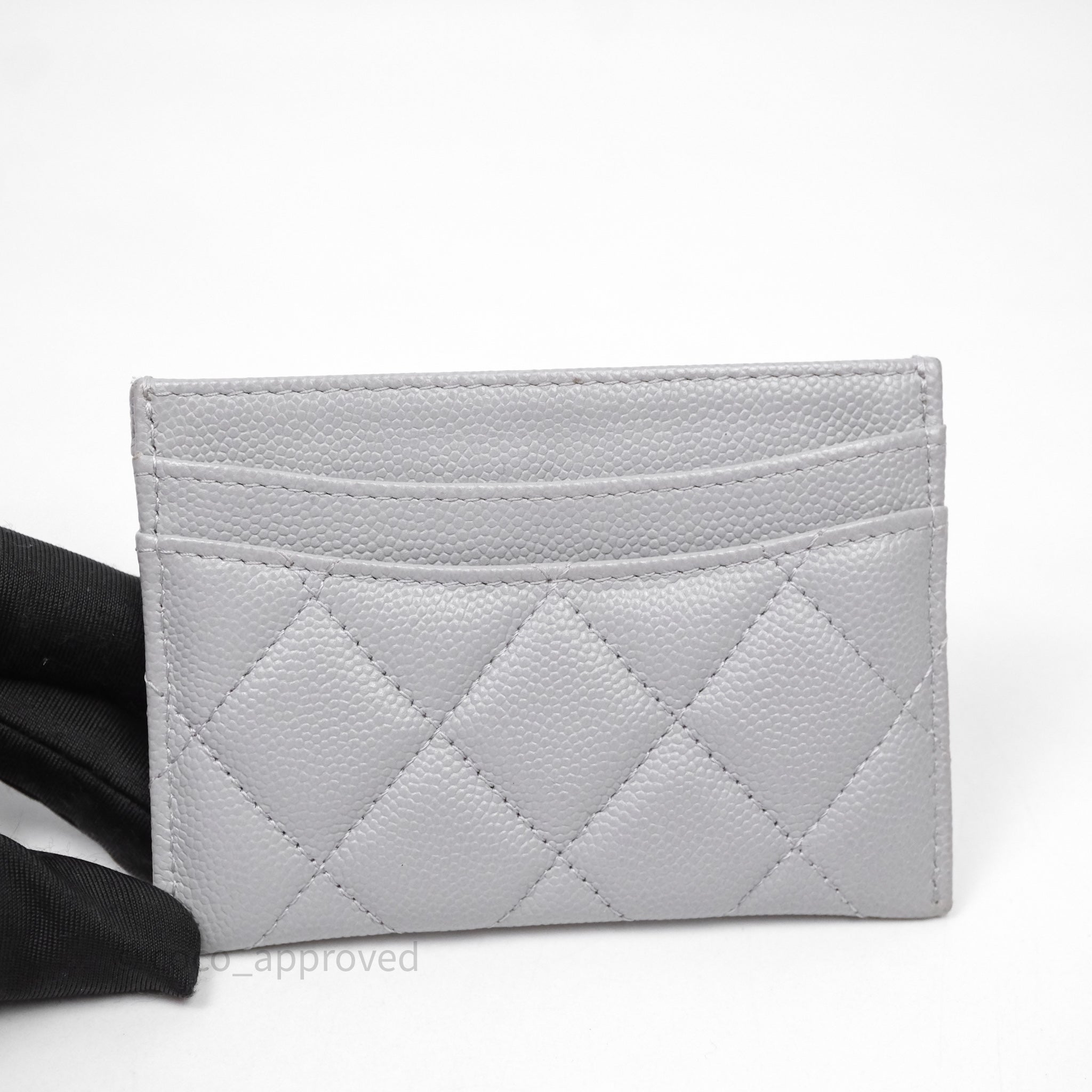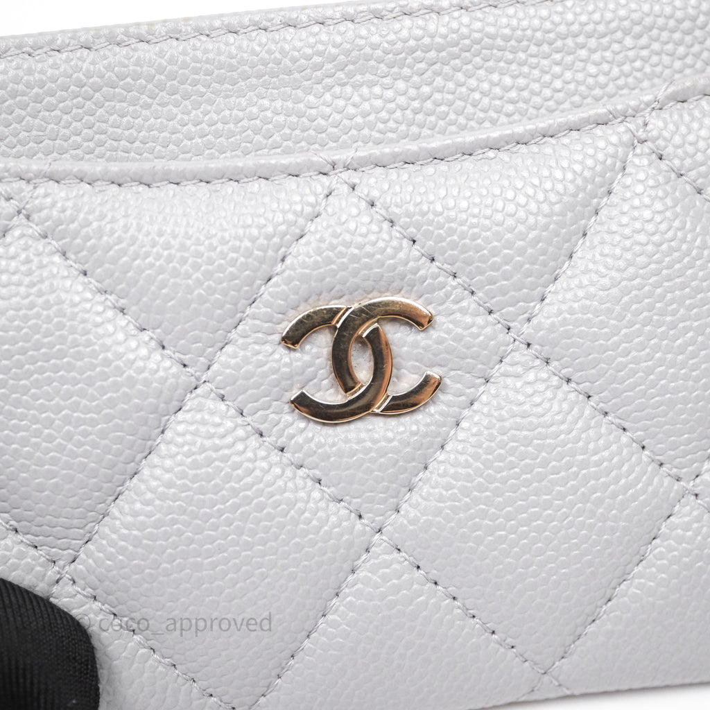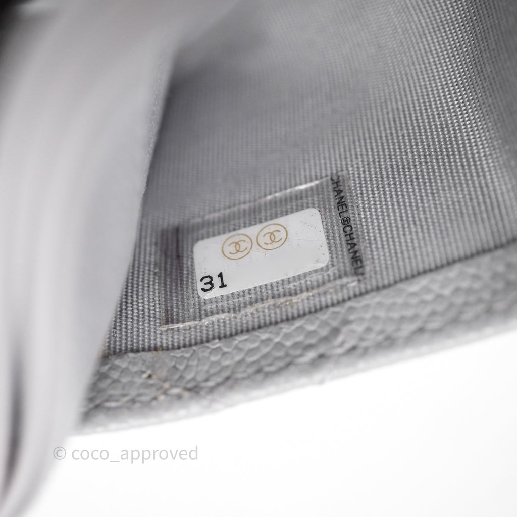 Chanel Classic Flat Card Holder Grey Caviar Gold Hardware