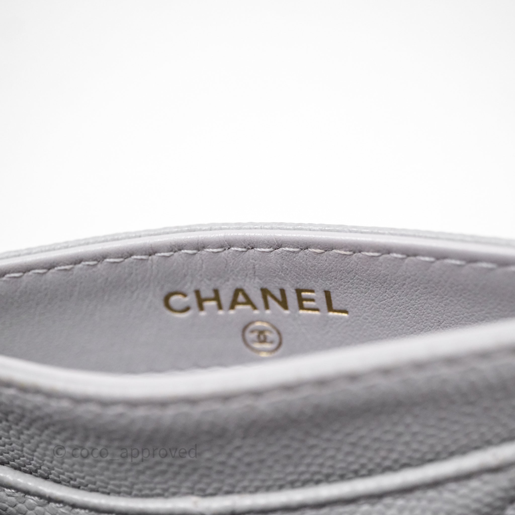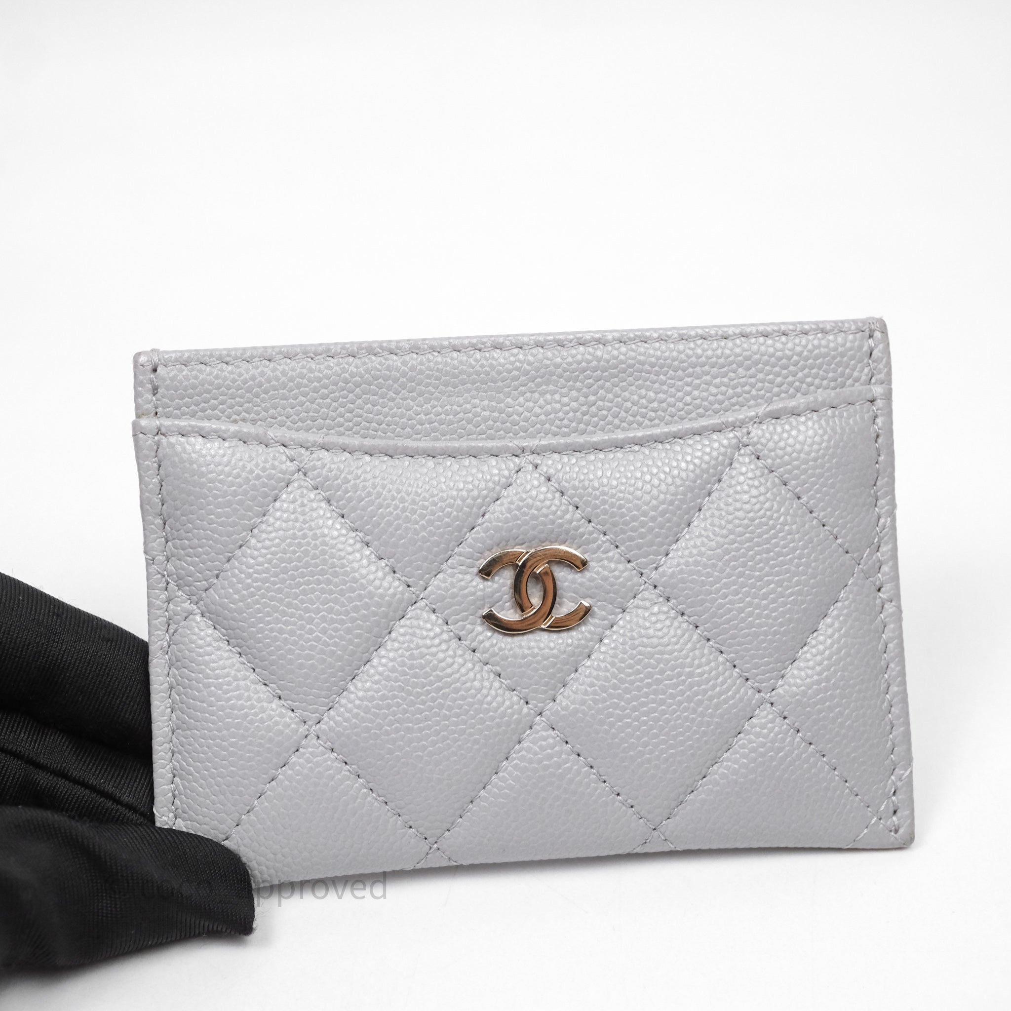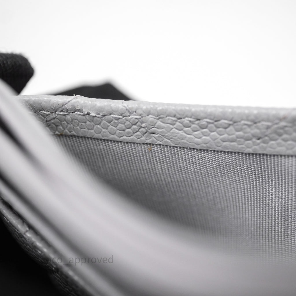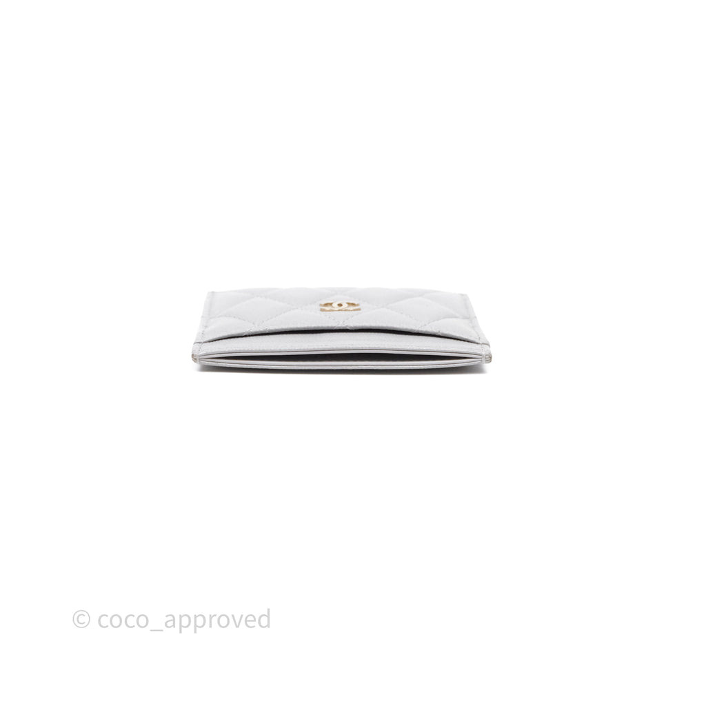 Chanel Classic Flat Card Holder Grey Caviar Gold Hardware