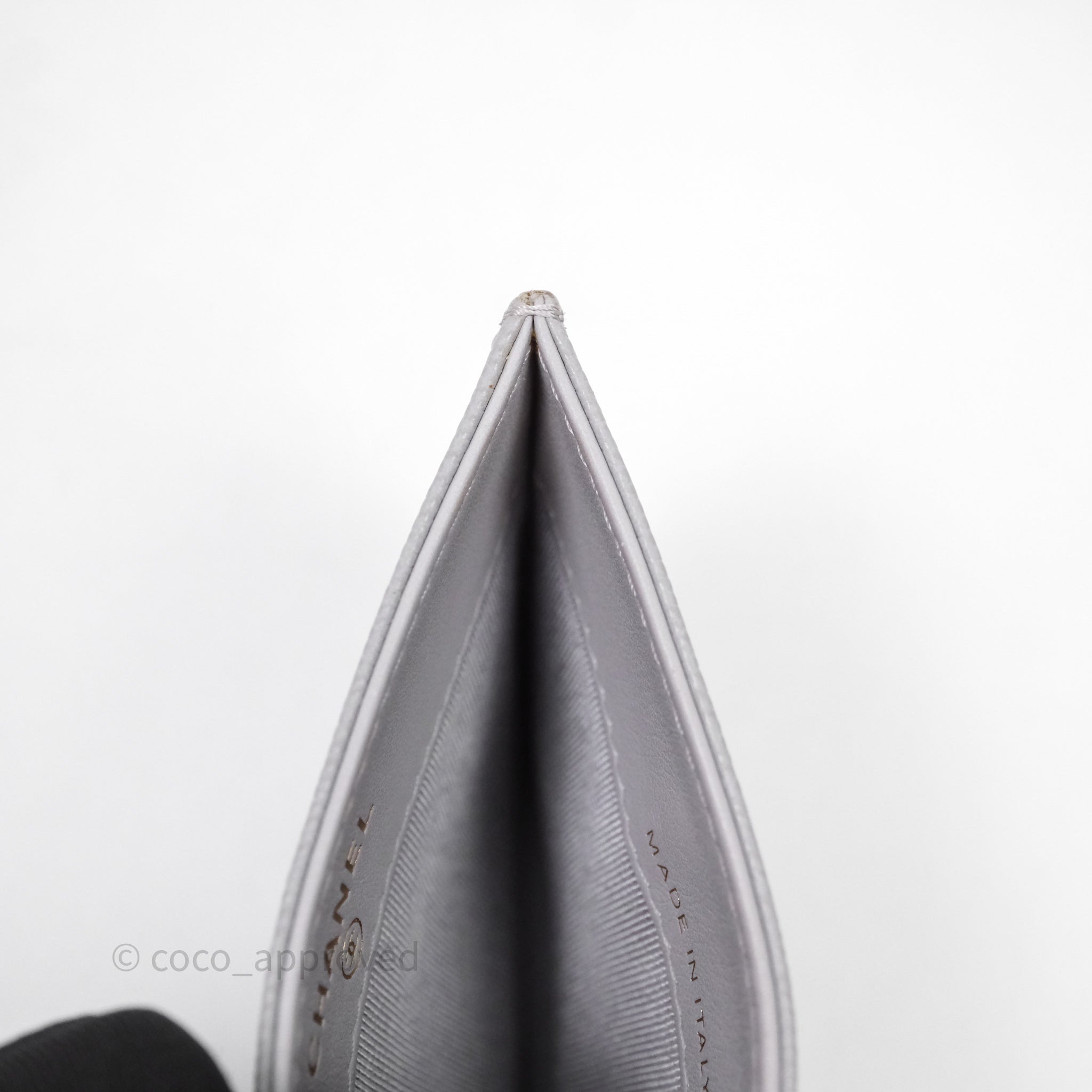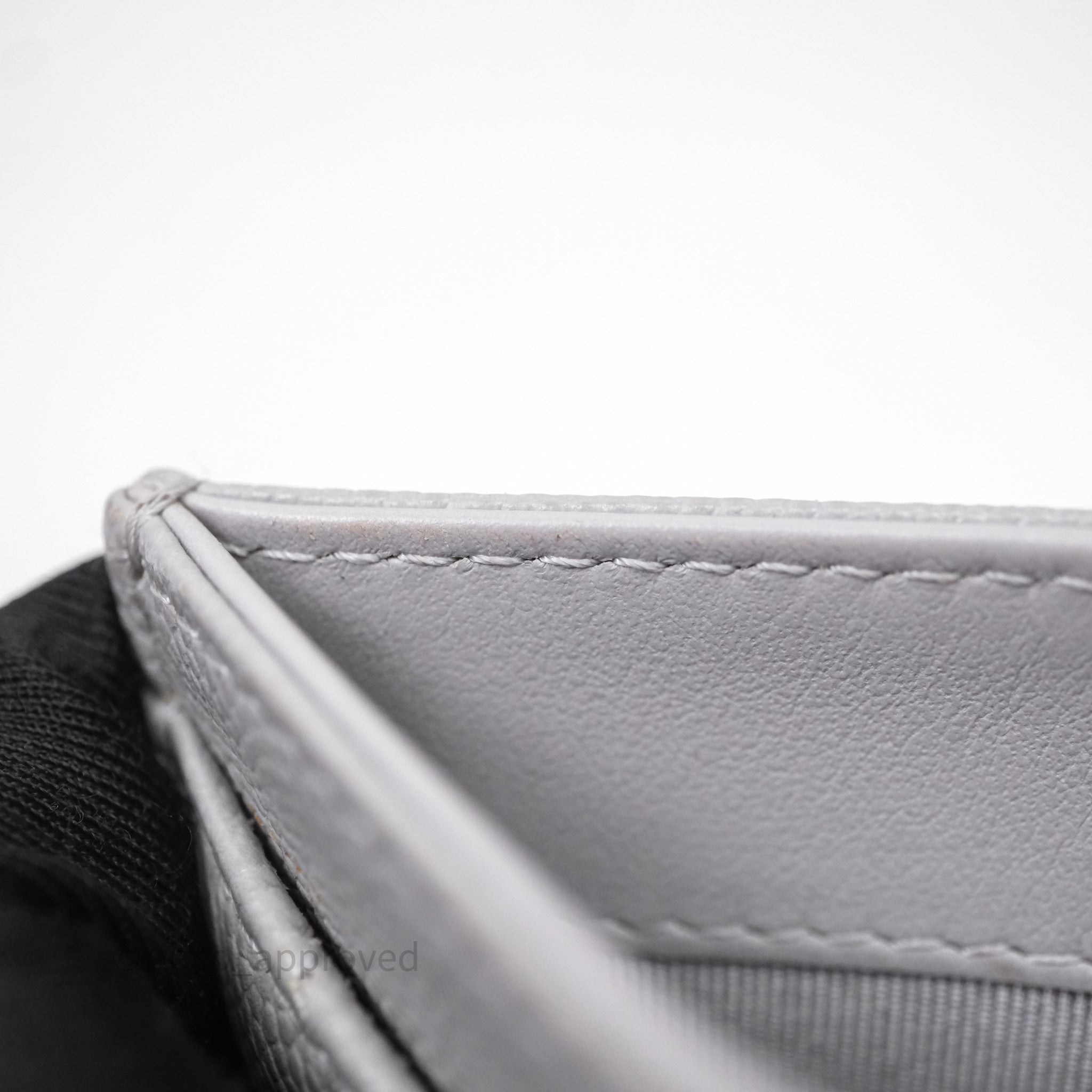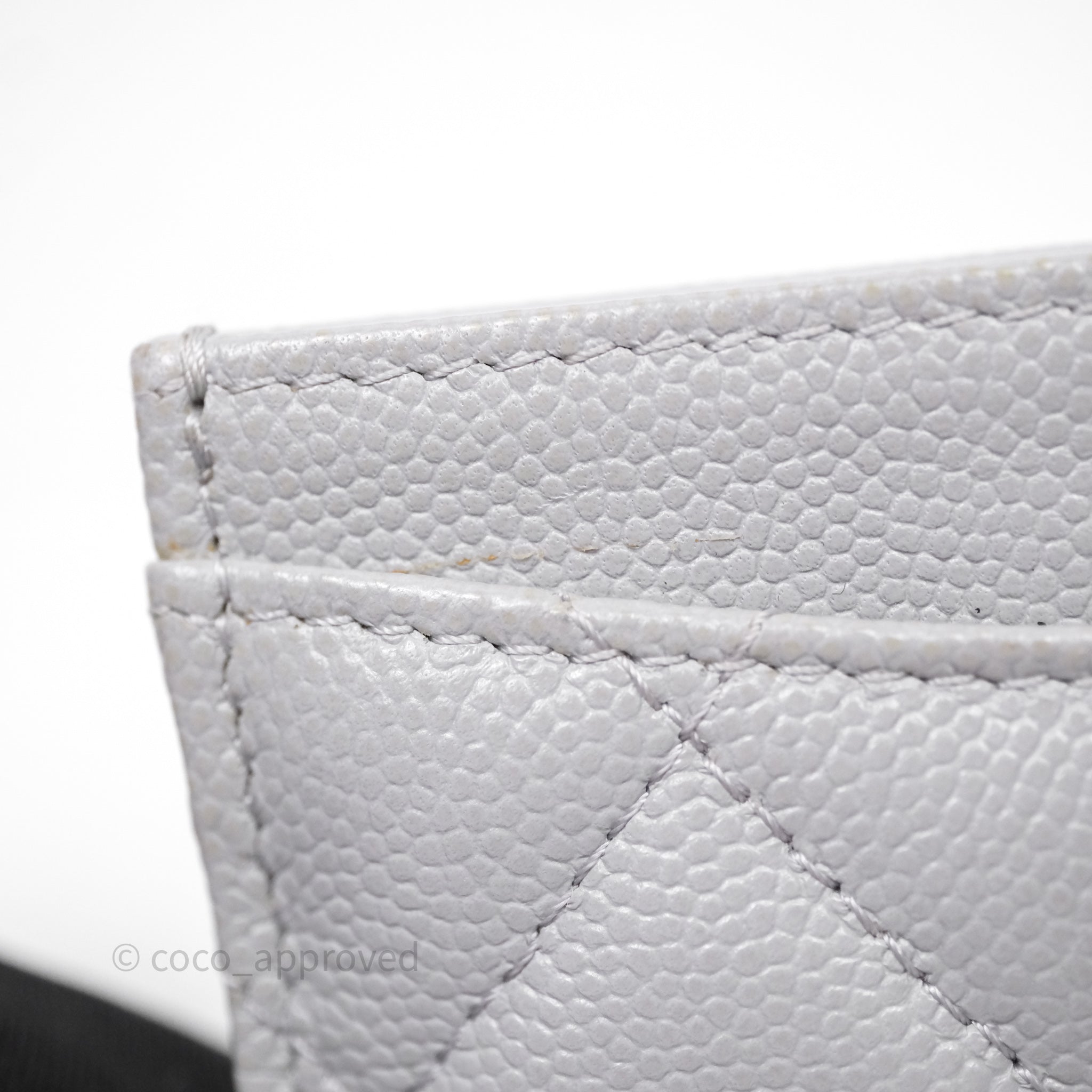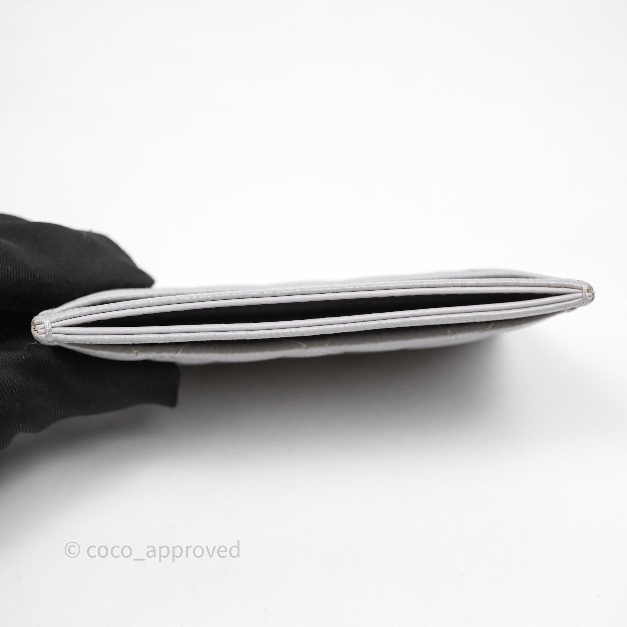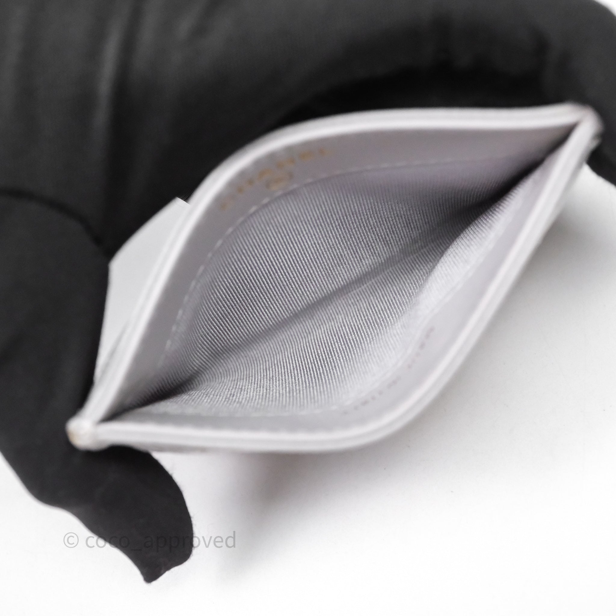 Chanel Classic Flat Card Holder Grey Caviar Gold Hardware