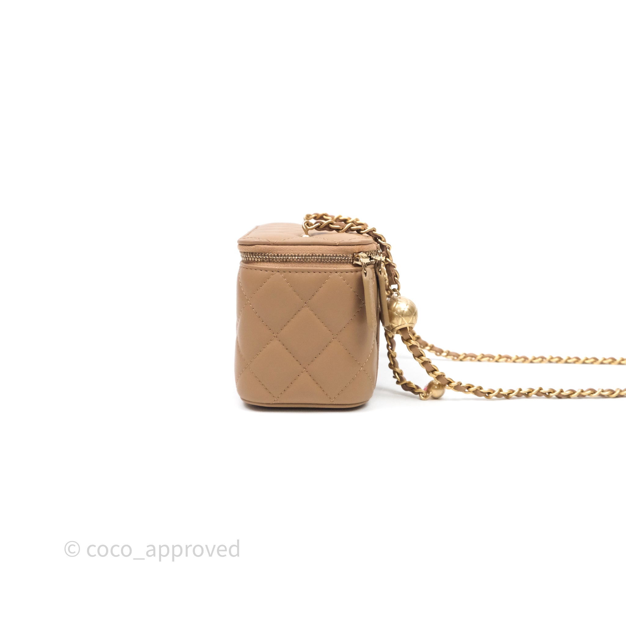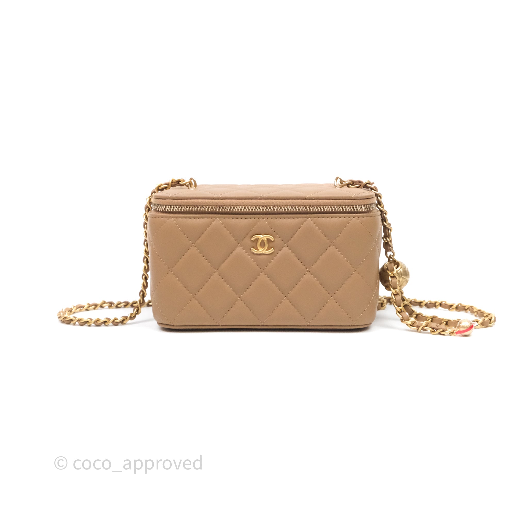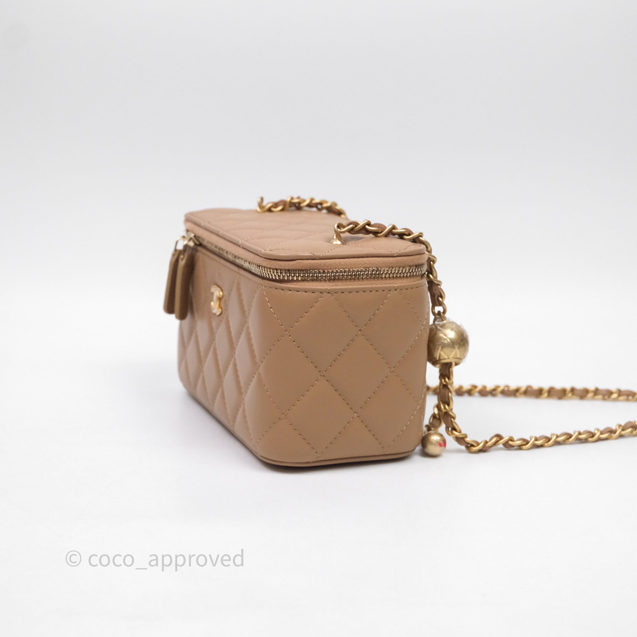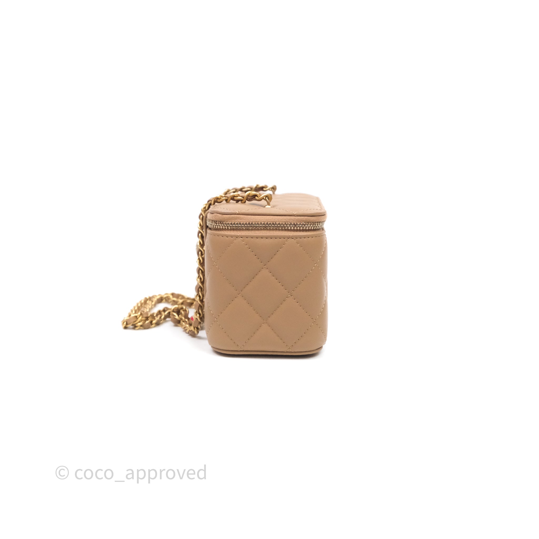 Chanel Pearl Crush Vanity With Chain Beige Lambskin Aged Gold Hardware