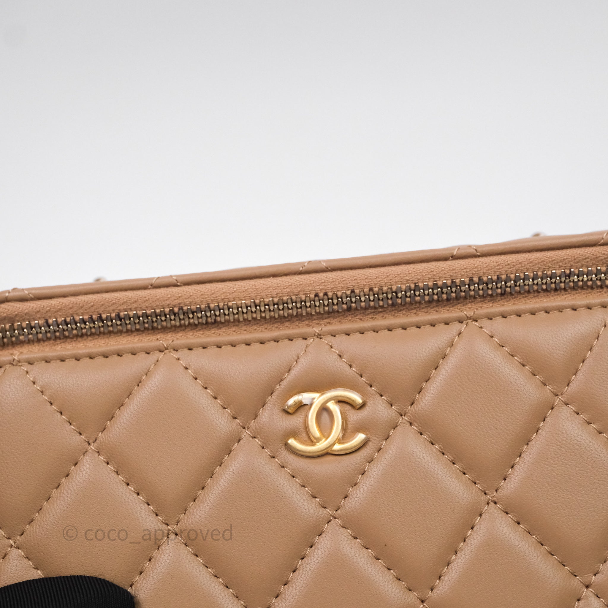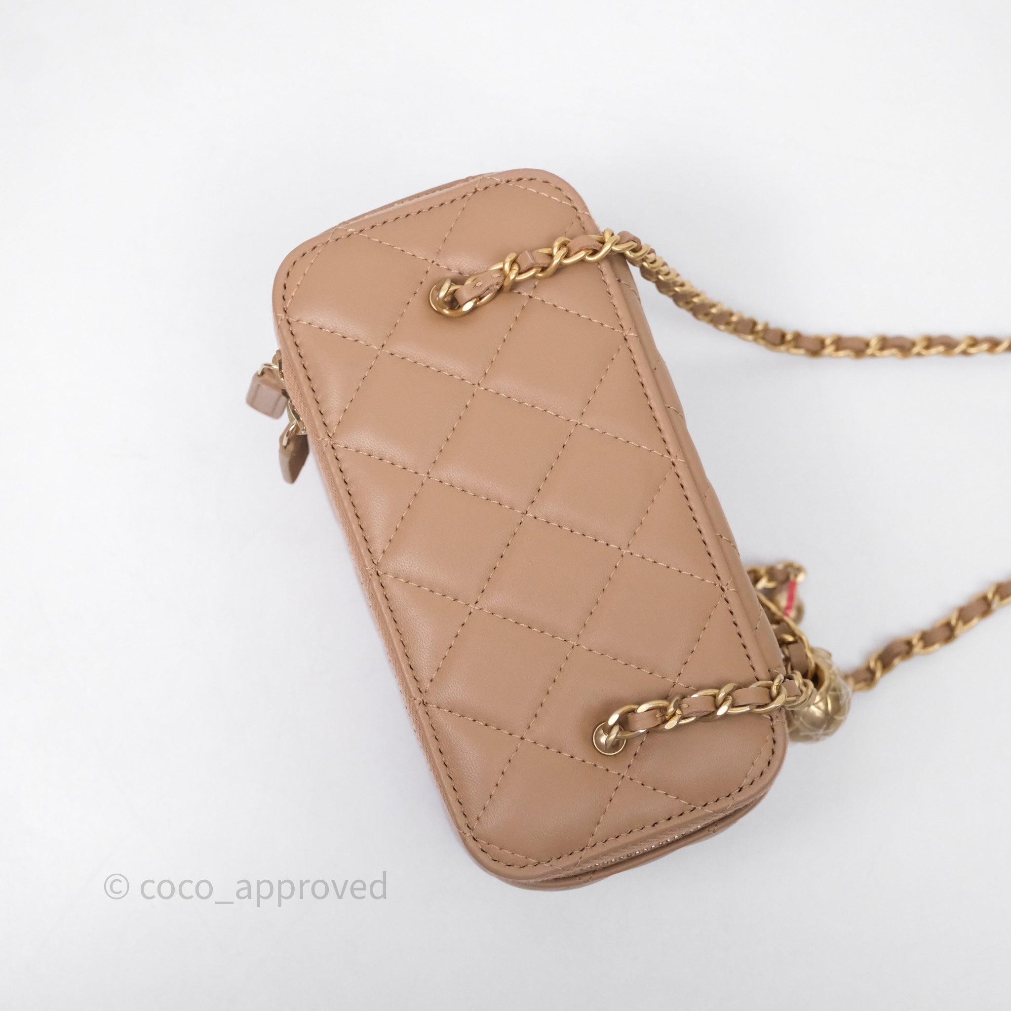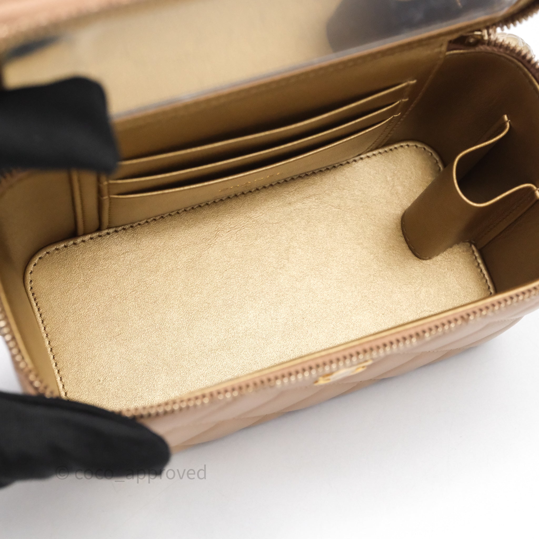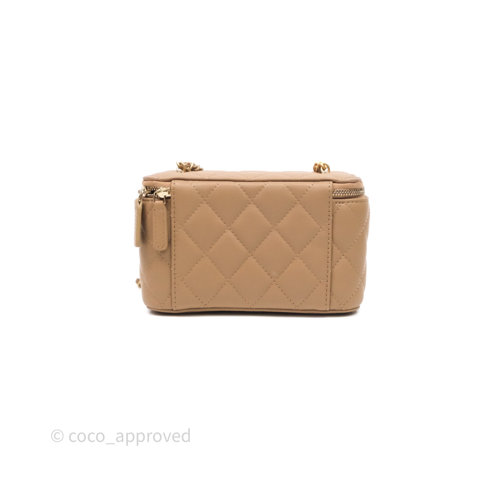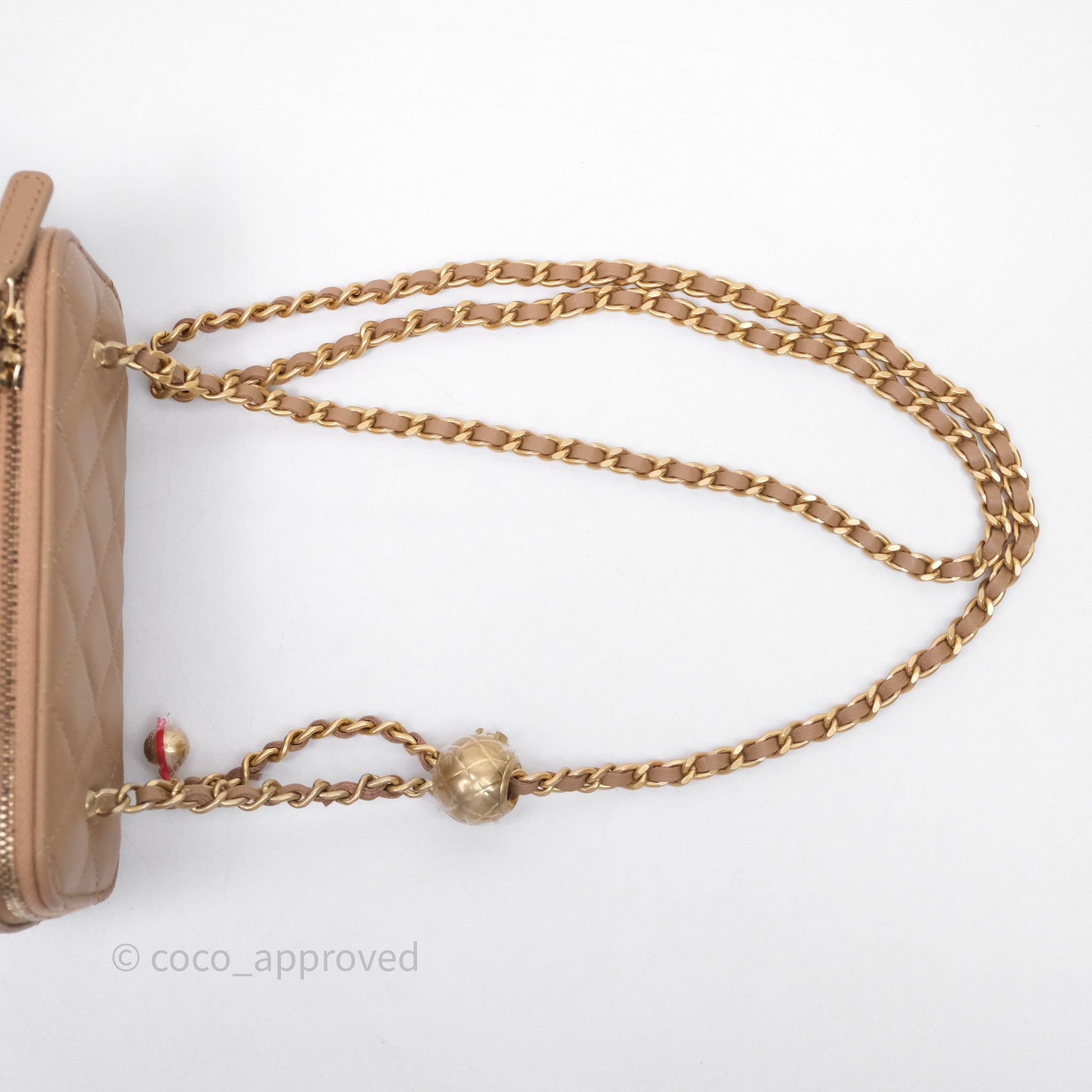 Chanel Pearl Crush Vanity With Chain Beige Lambskin Aged Gold Hardware
