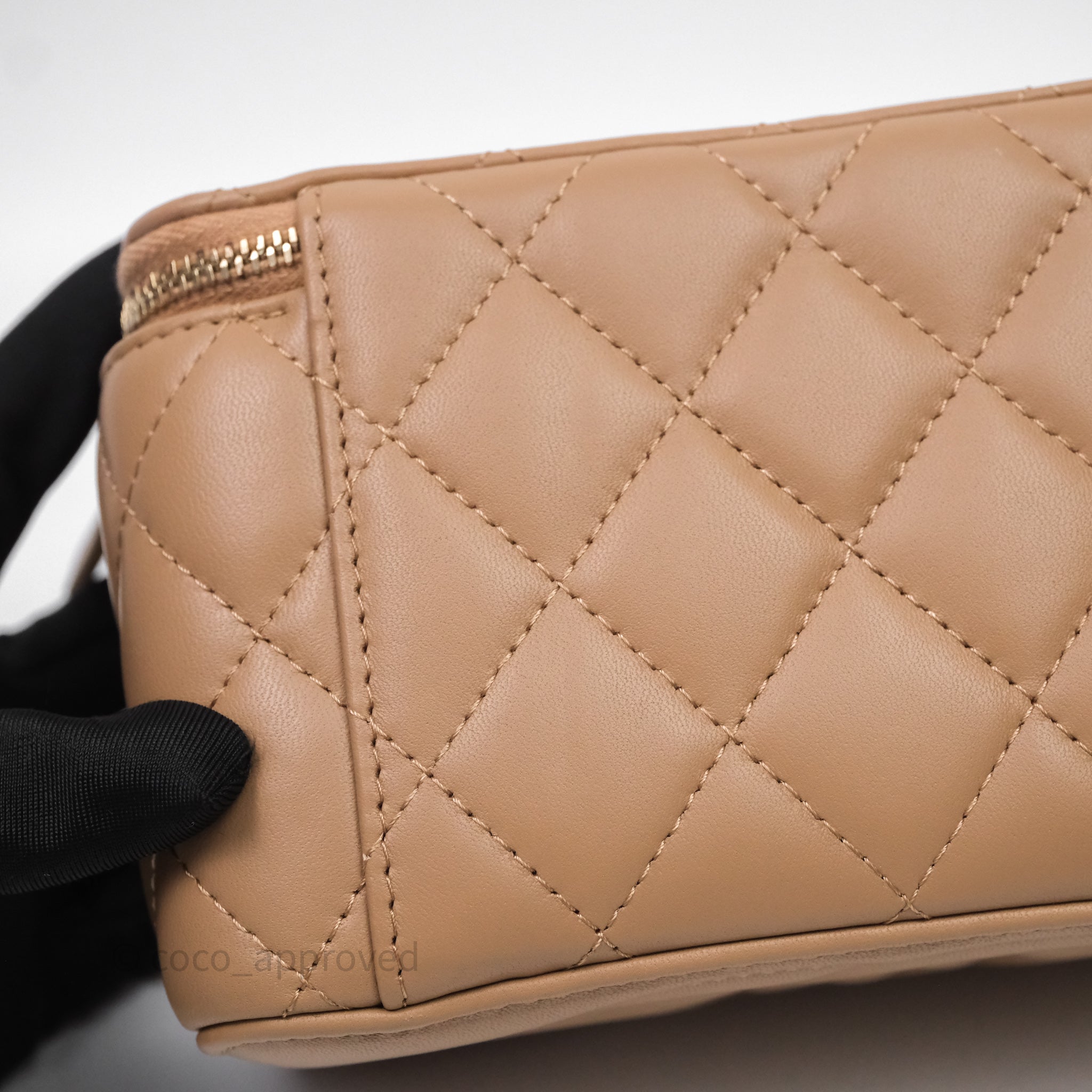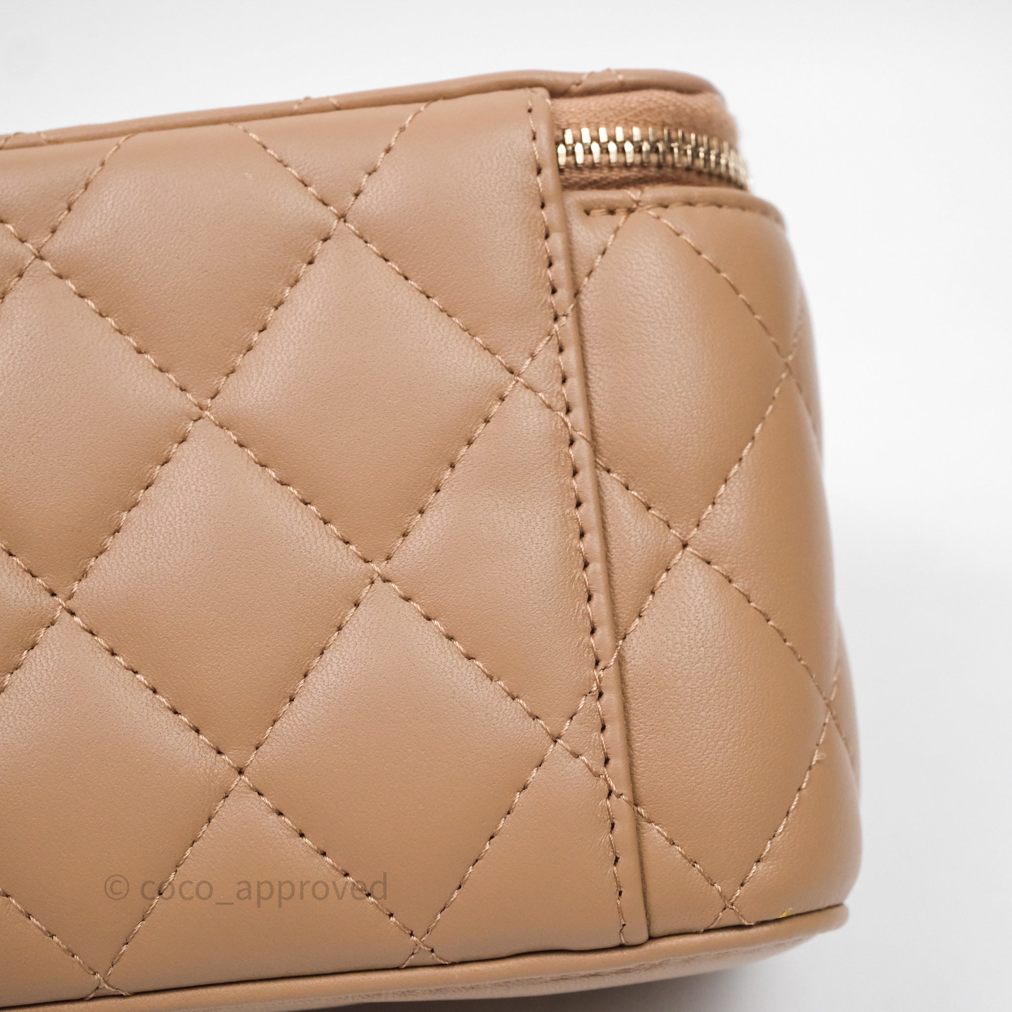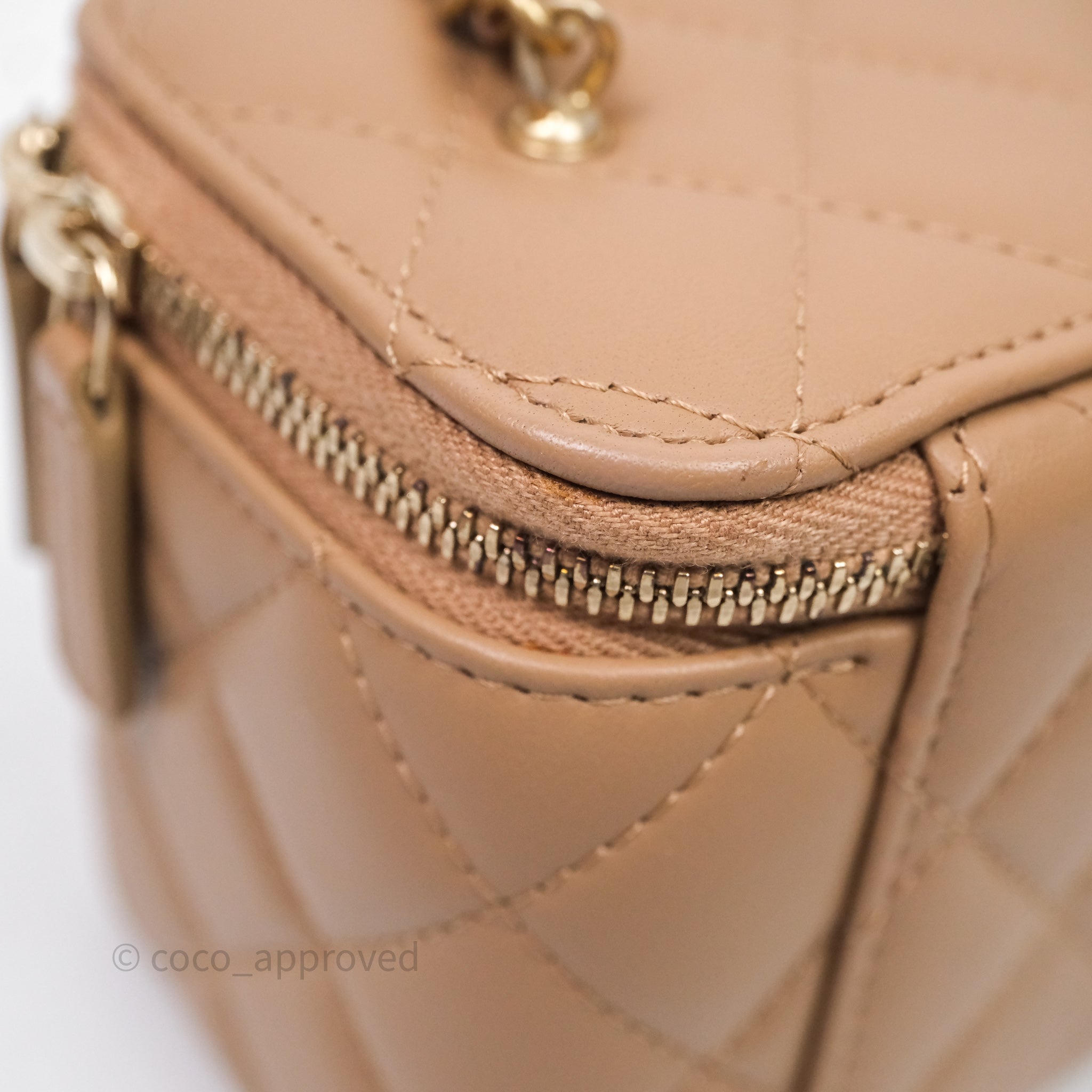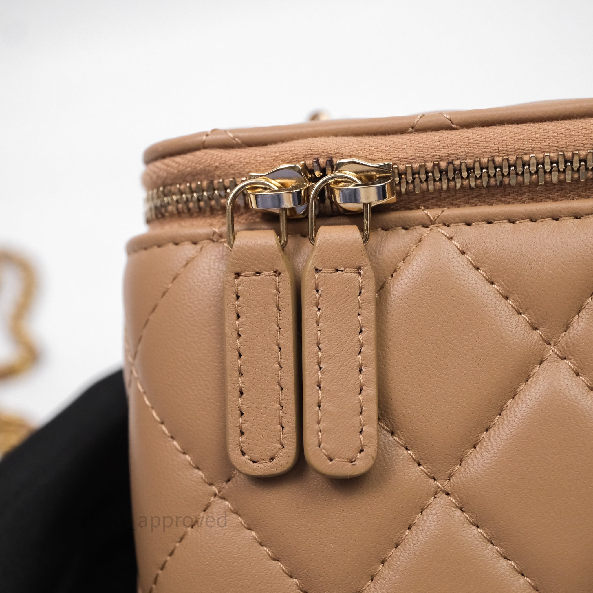 Chanel Pearl Crush Vanity With Chain Beige Lambskin Aged Gold Hardware