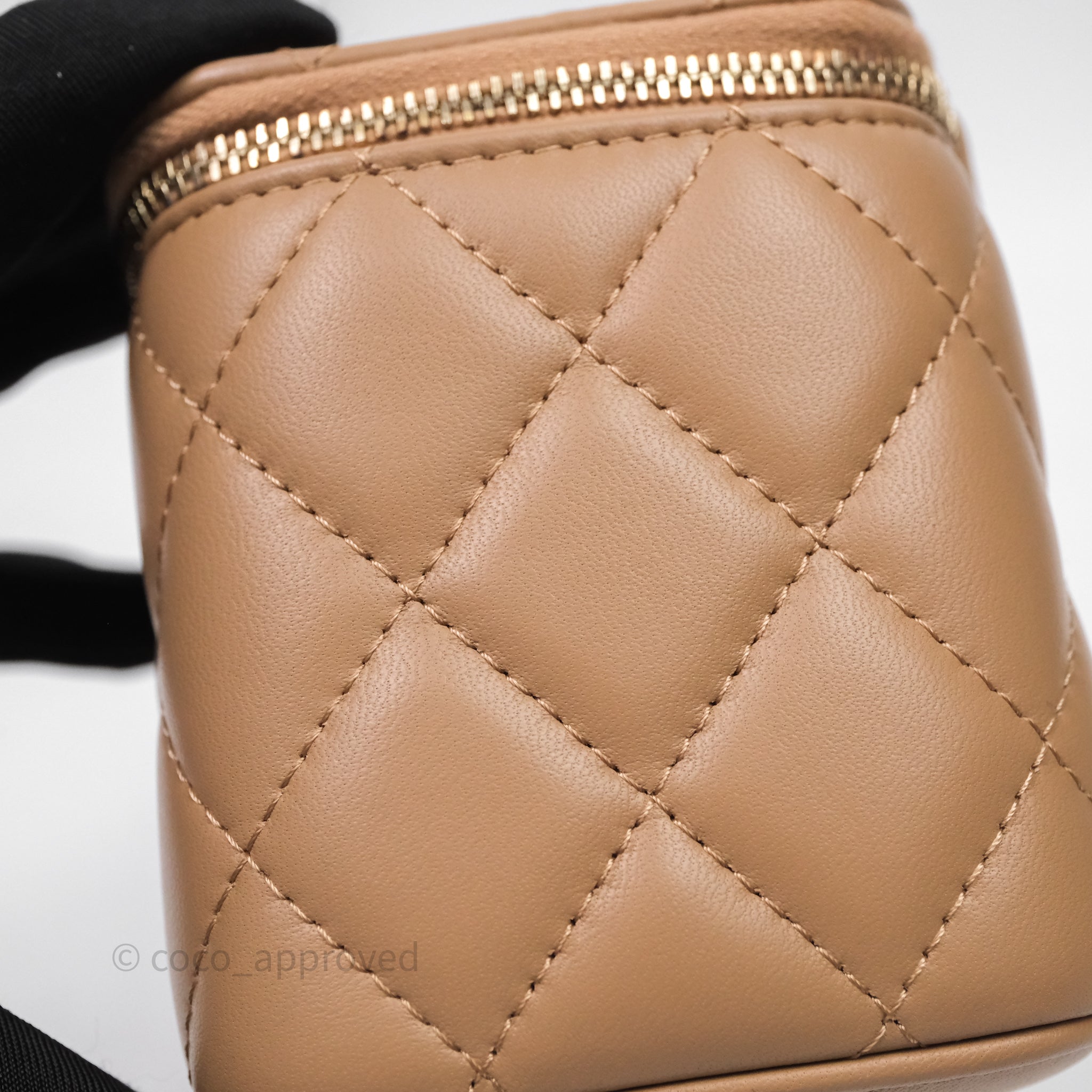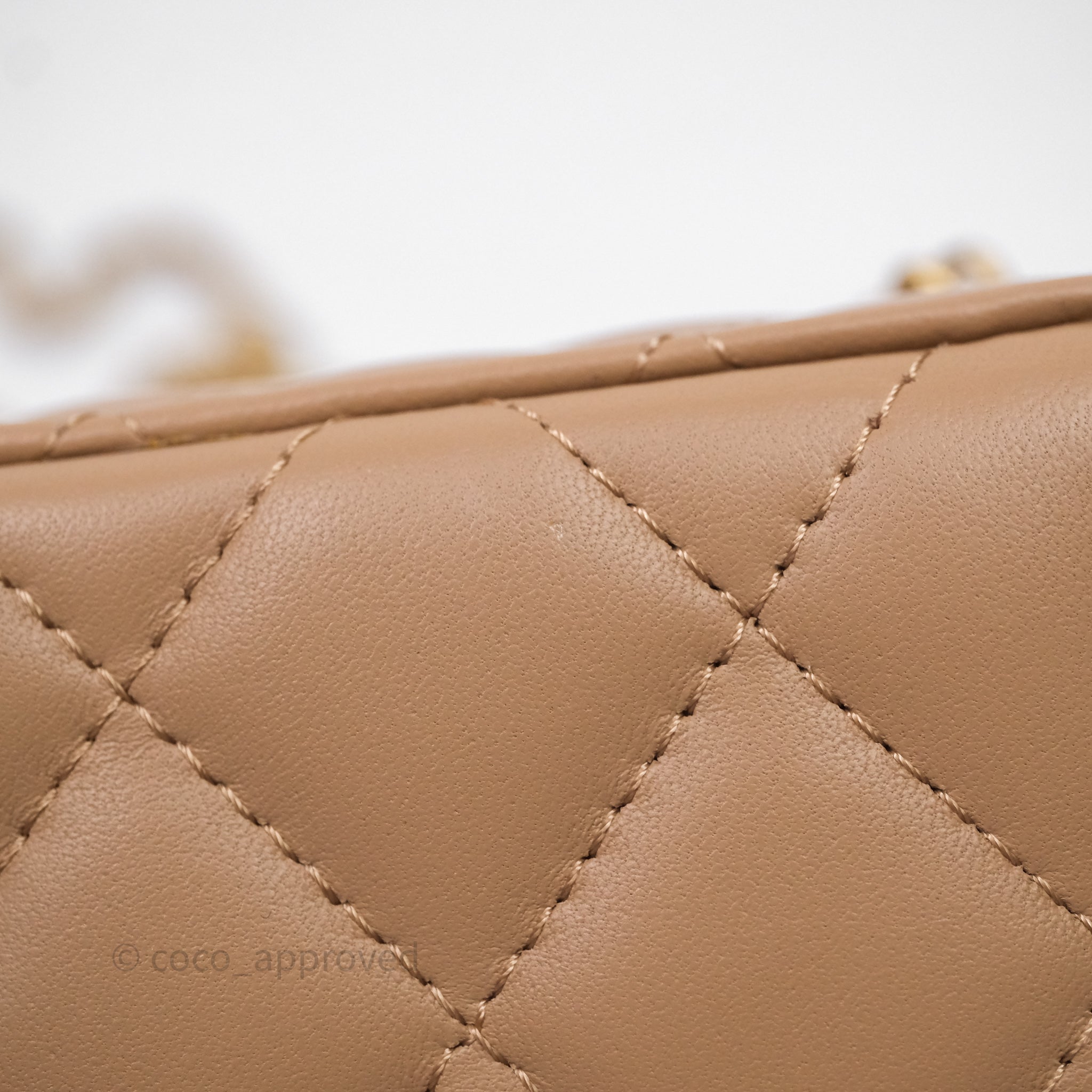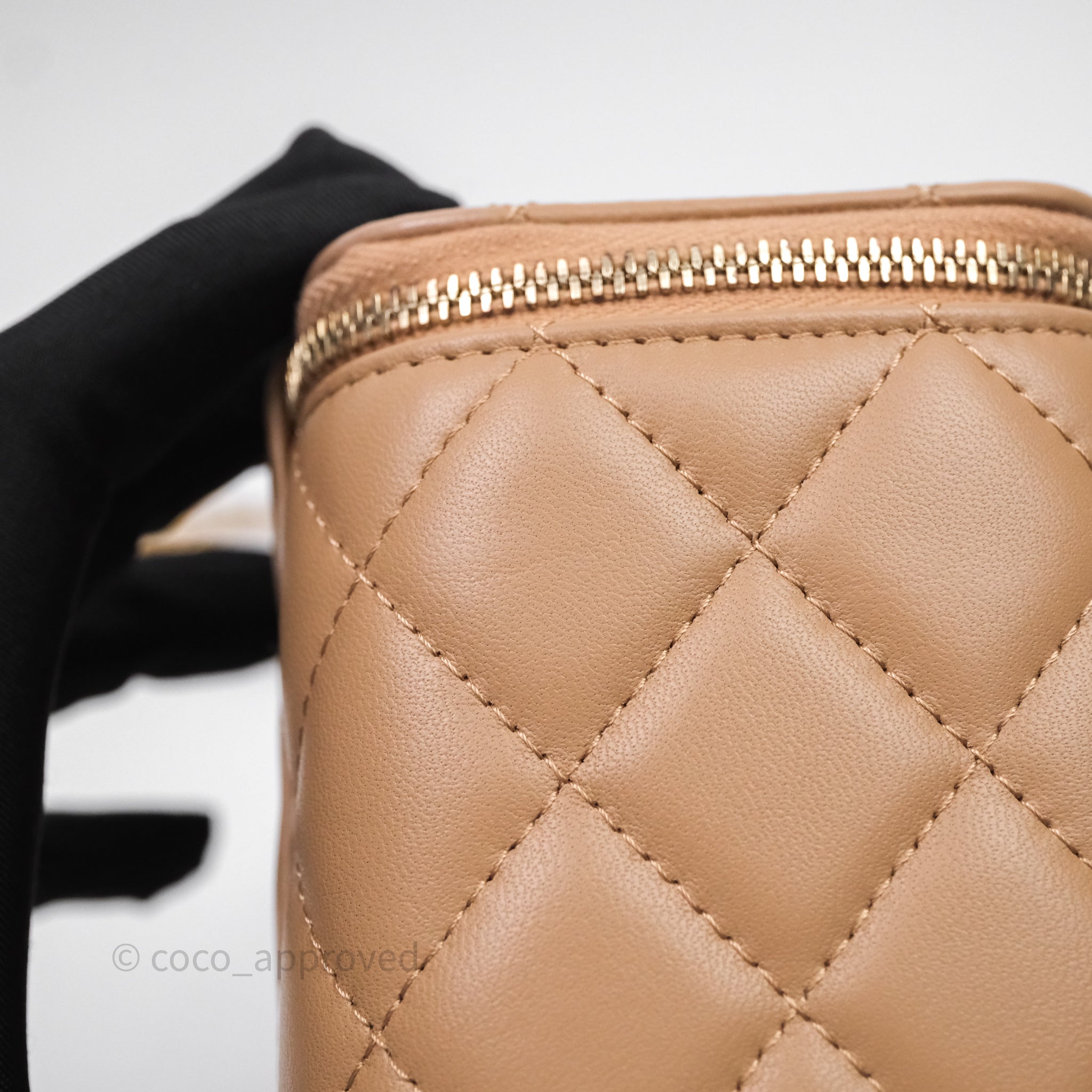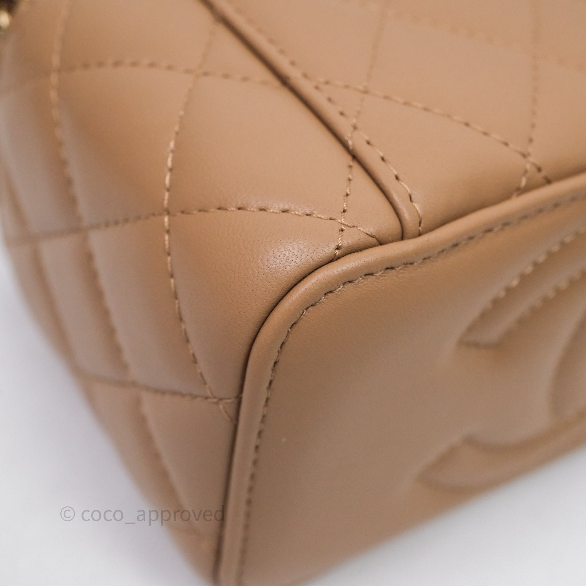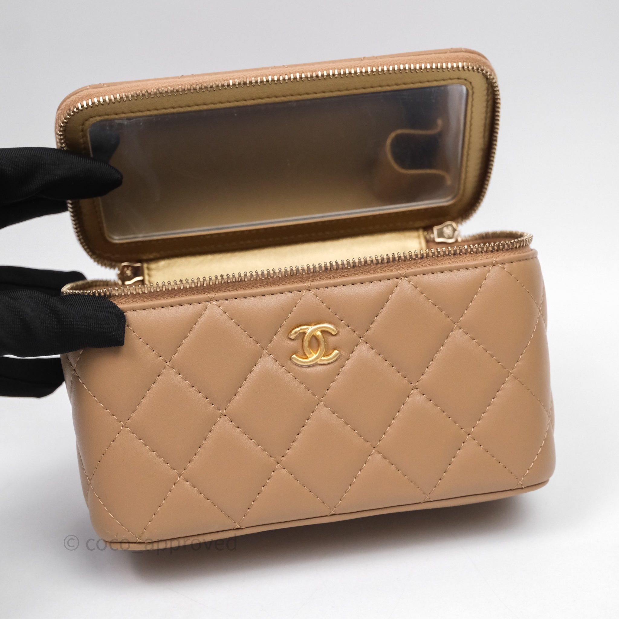 Chanel Pearl Crush Vanity With Chain Beige Lambskin Aged Gold Hardware