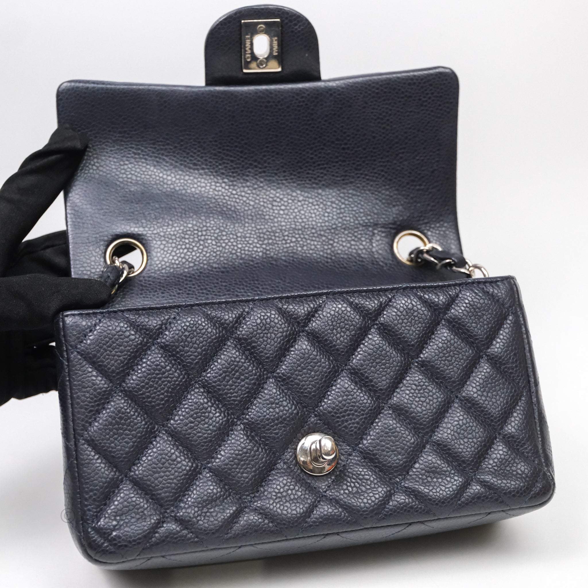 Chanel Mini Rectangular Quilted Dark Navy Caviar Silver Hardware