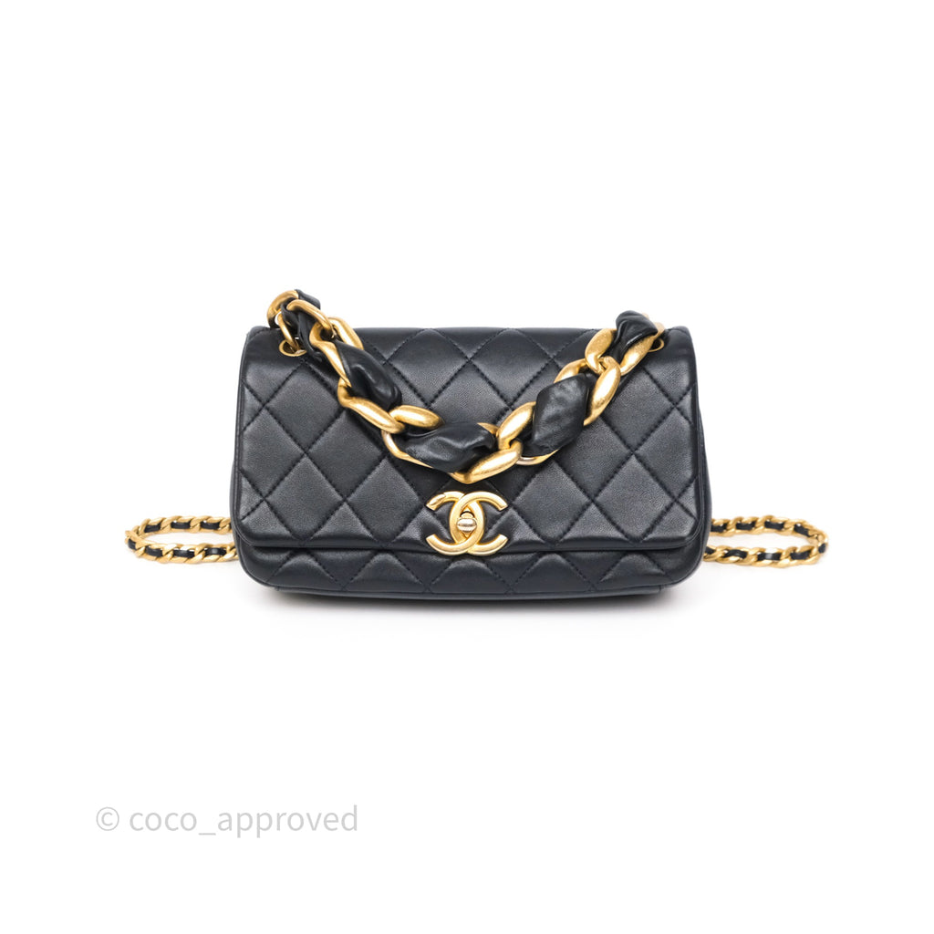 Chanel Quilted Entwined Chain Bag Navy Lambskin Aged Gold Hardware 21P