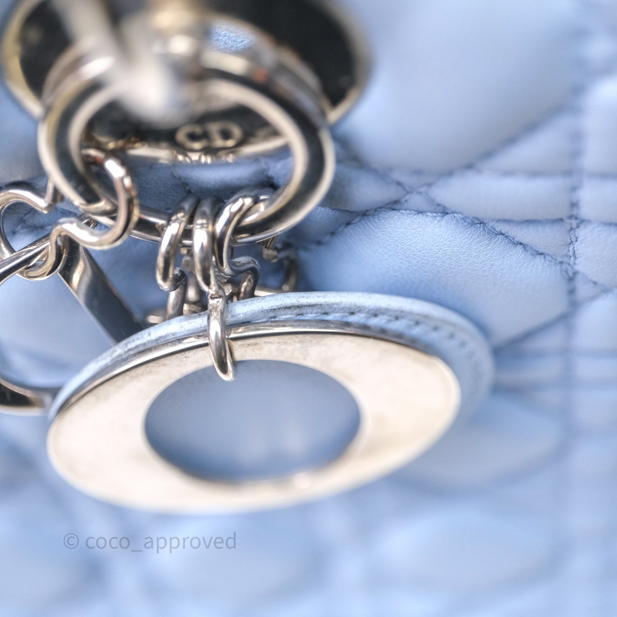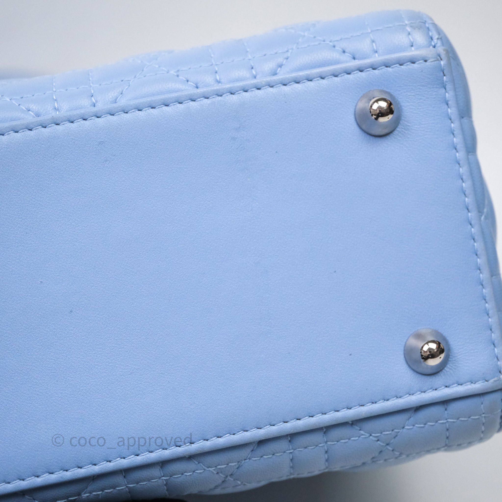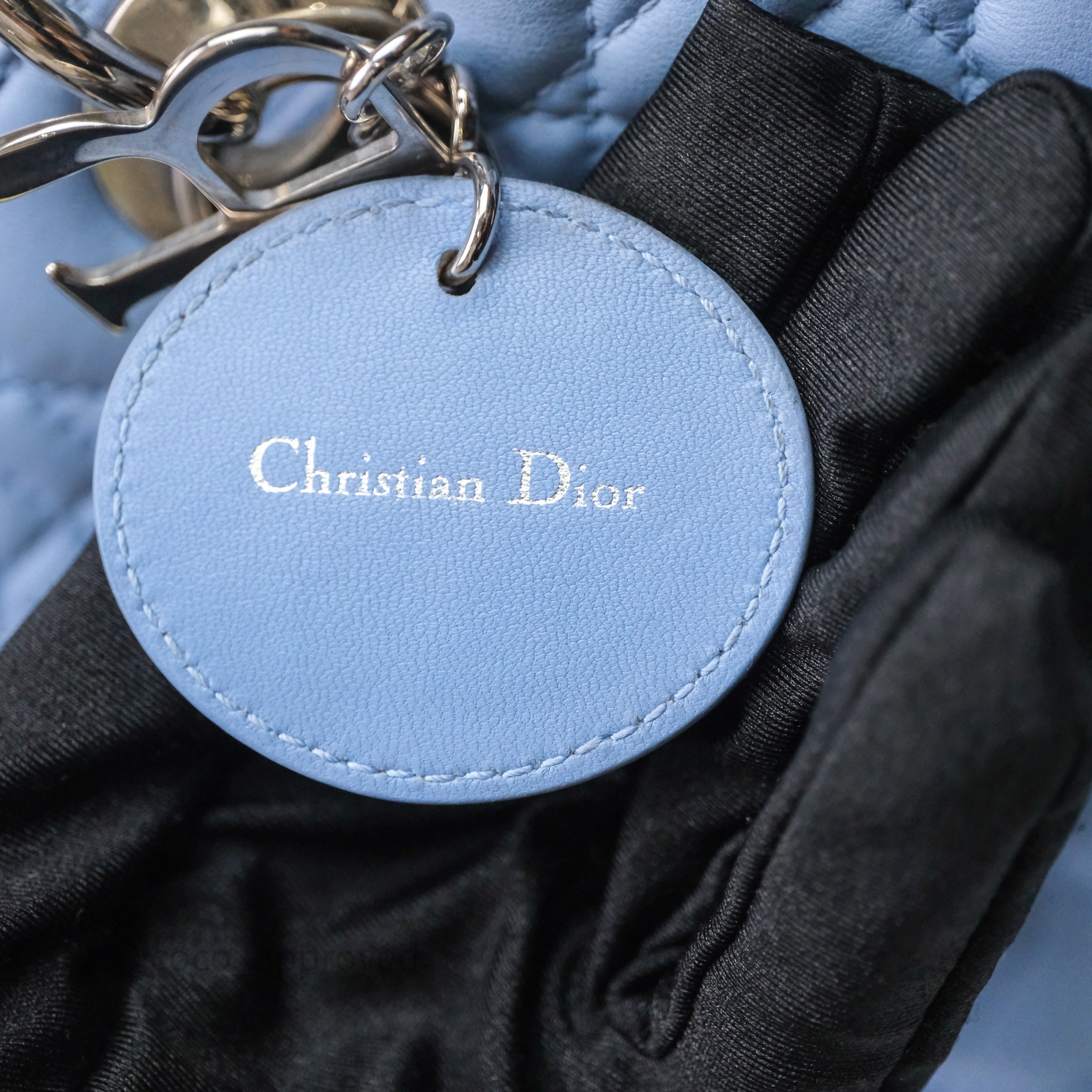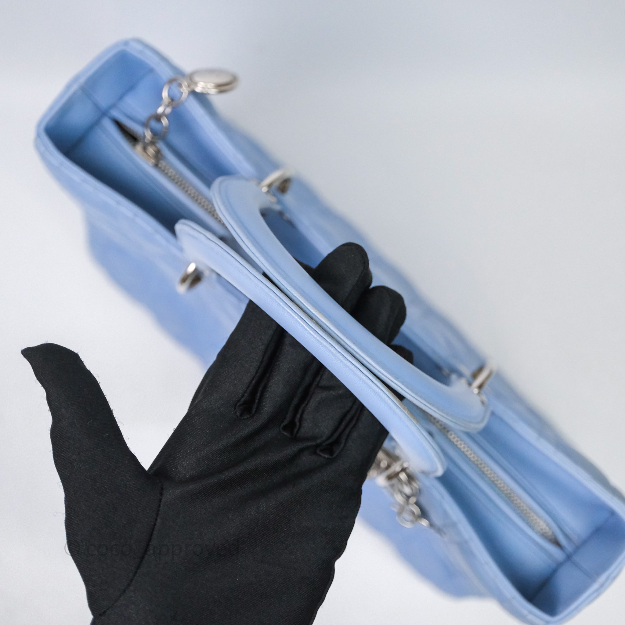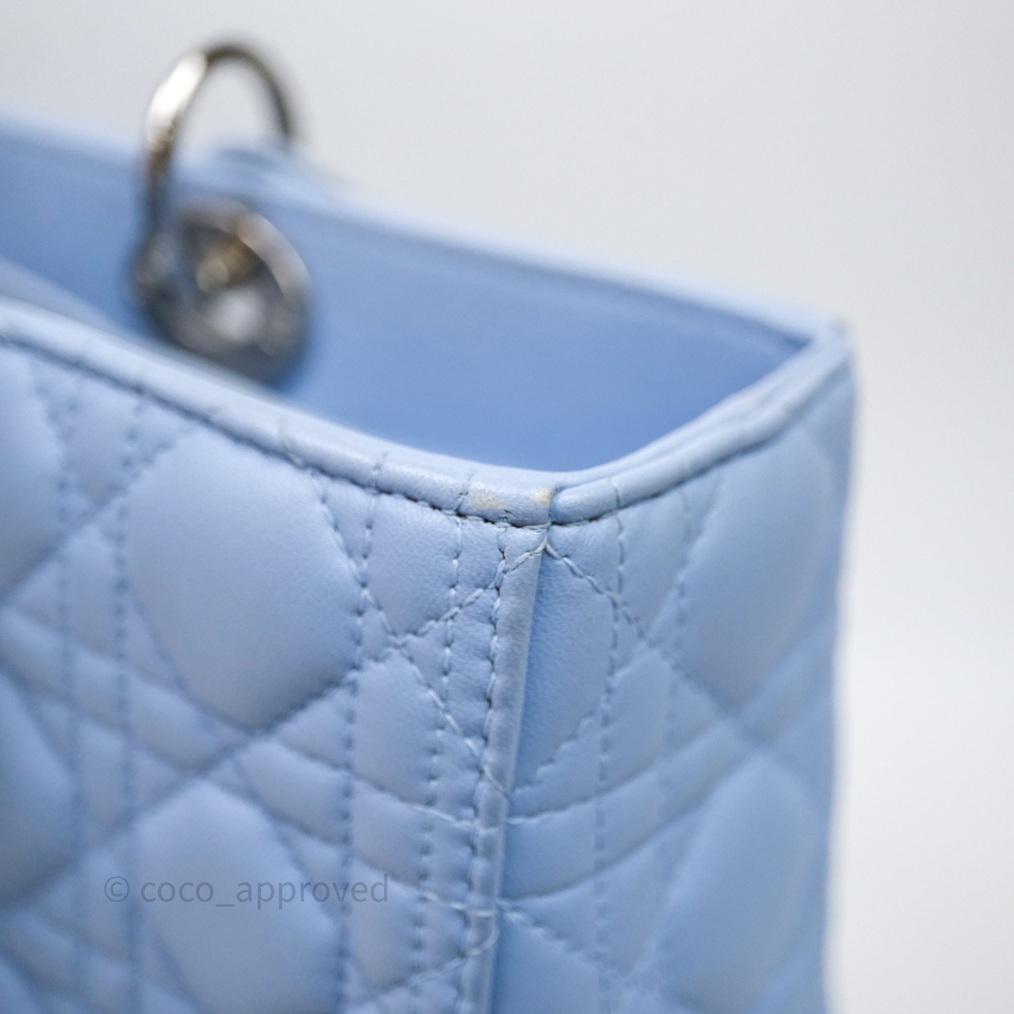 Christian Dior Large Lady Dior Cannage Blue Lambskin Silver Hardware