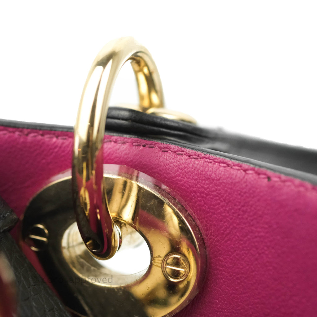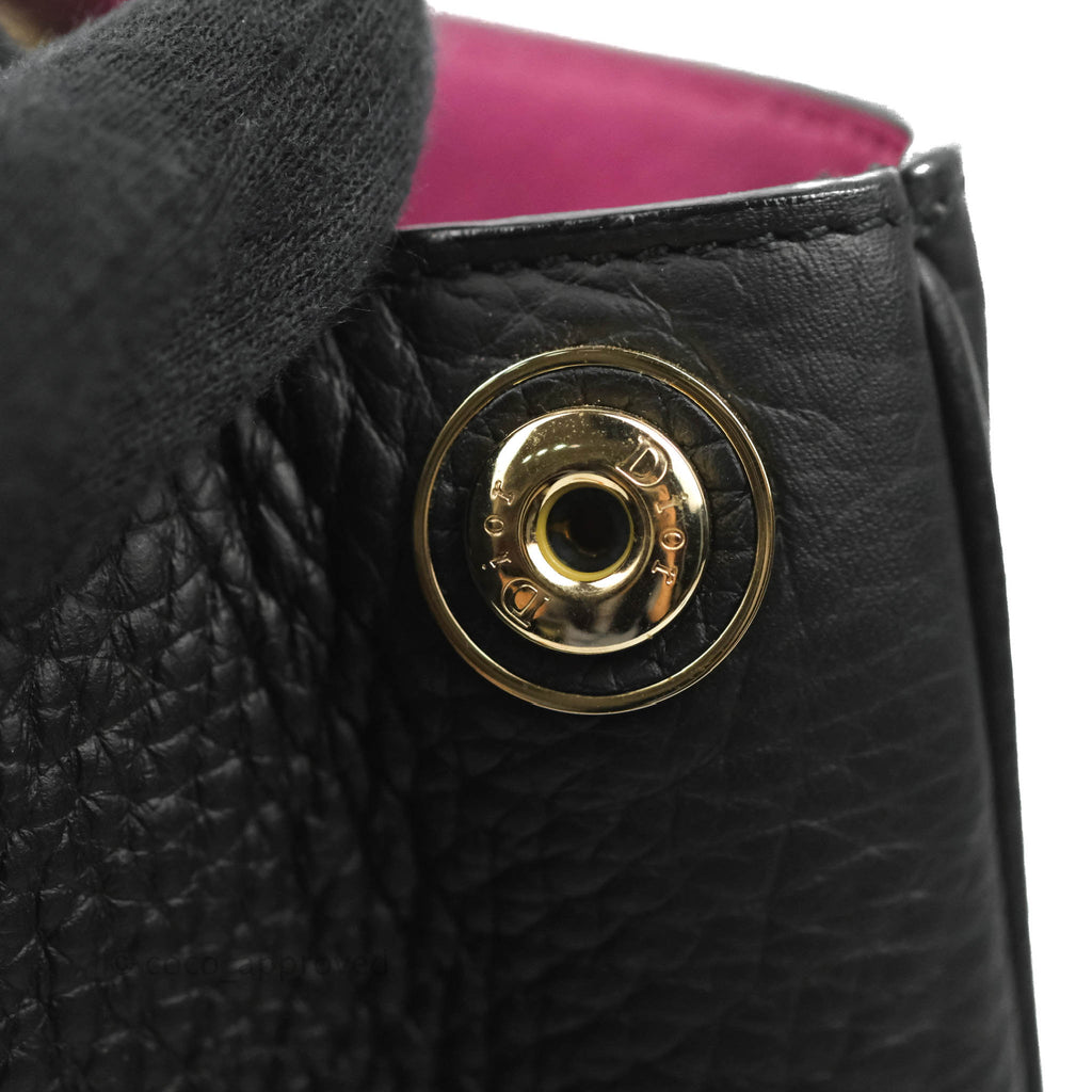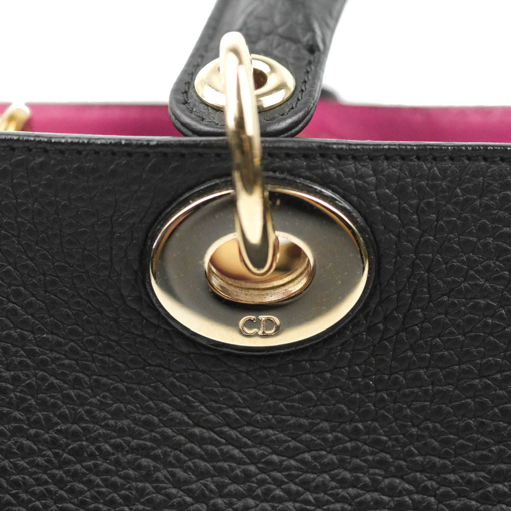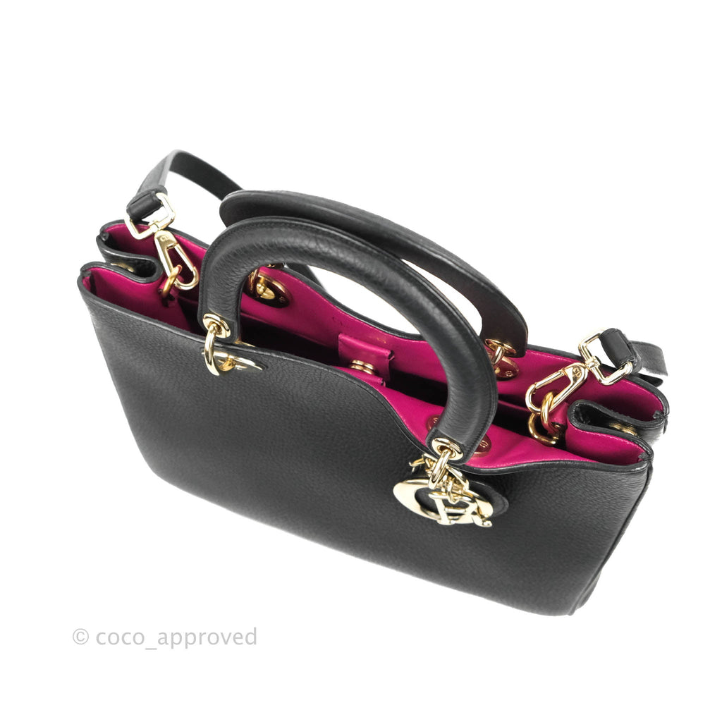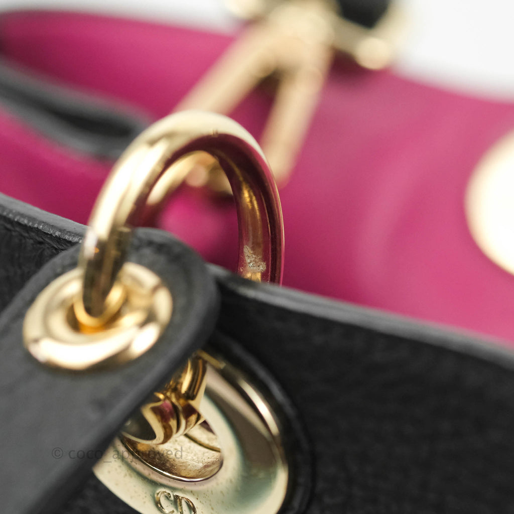 Christian Dior Medium Diorissimo Bag Black Fuchsia Grained Calfskin Gold Hardware