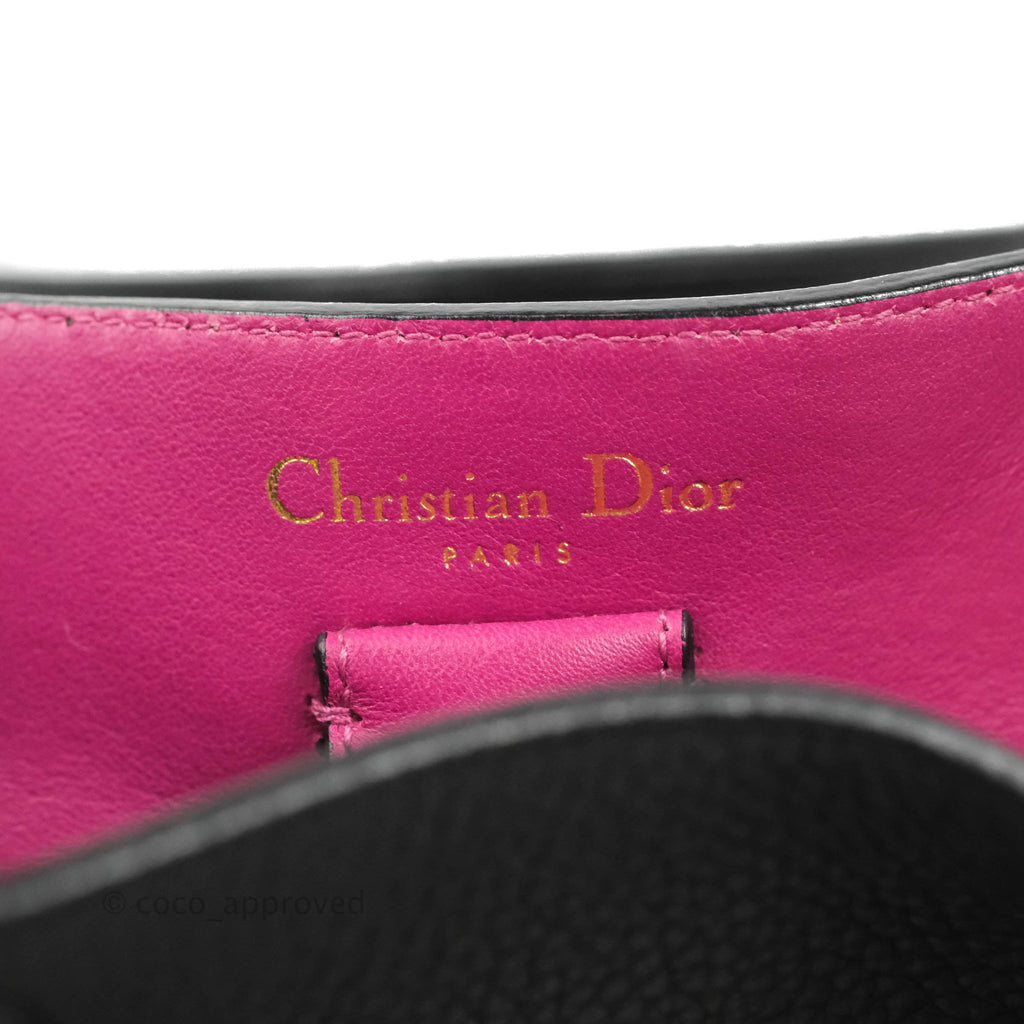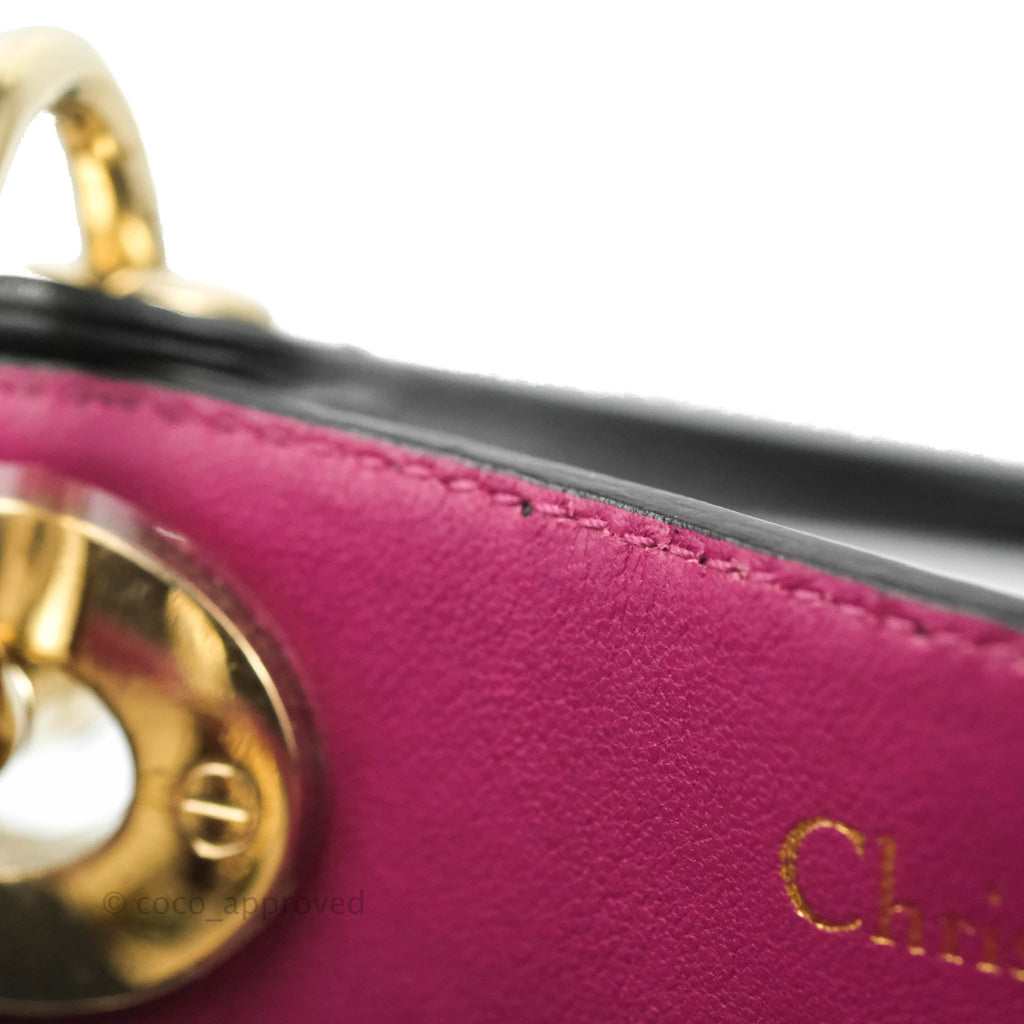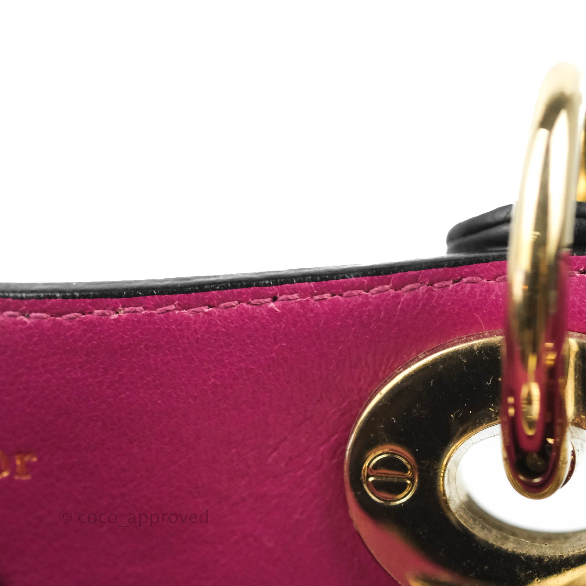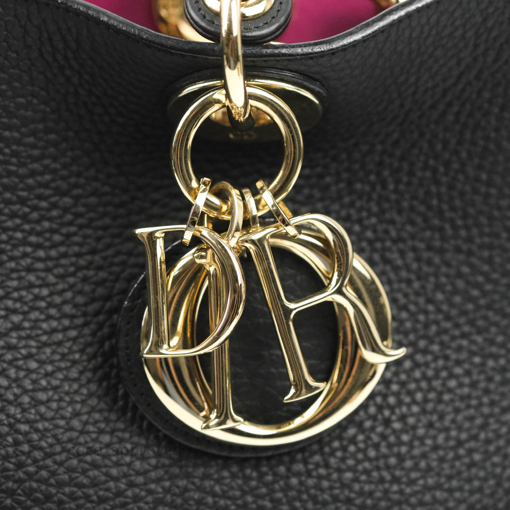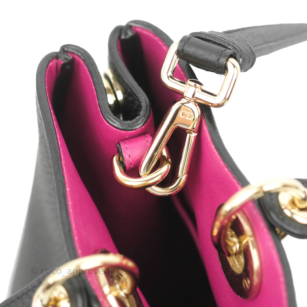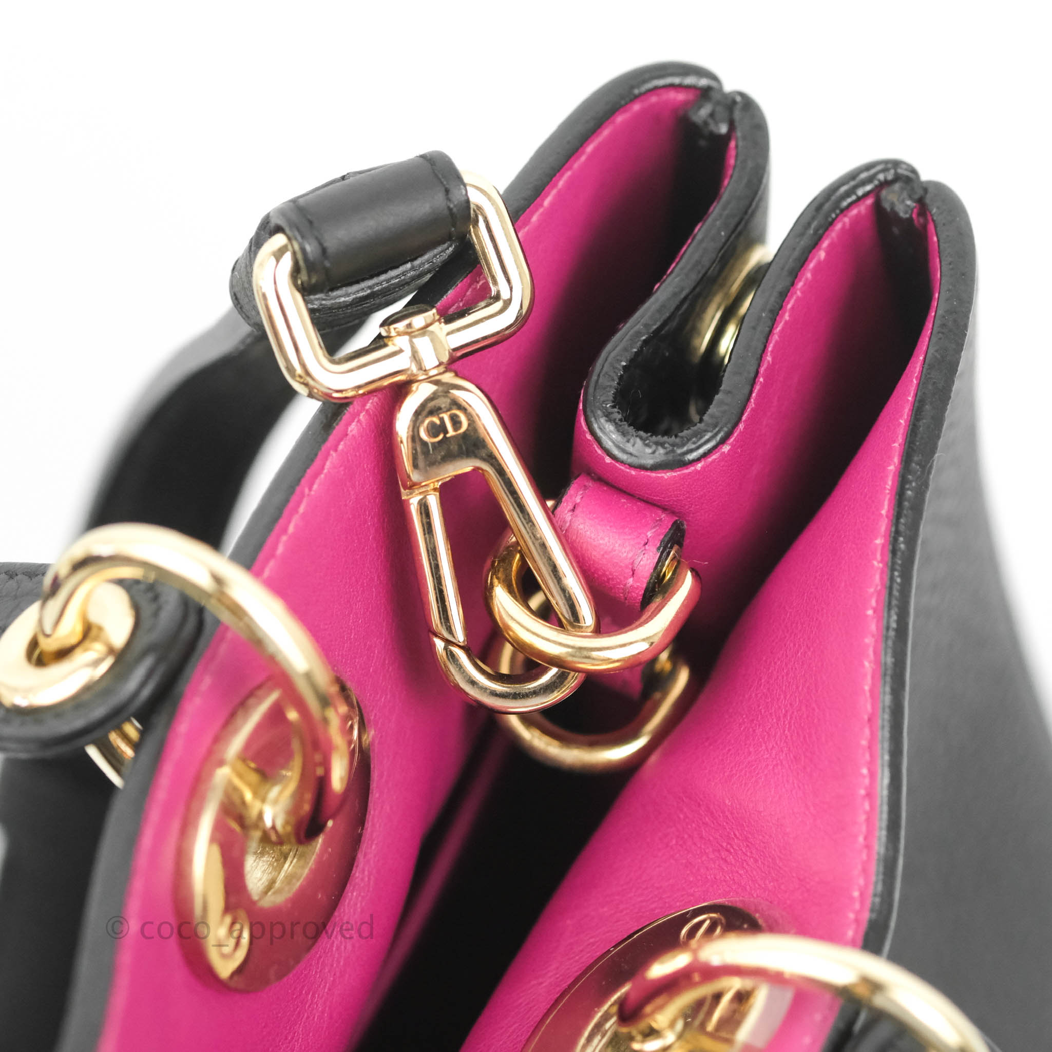 Christian Dior Medium Diorissimo Bag Black Fuchsia Grained Calfskin Gold Hardware