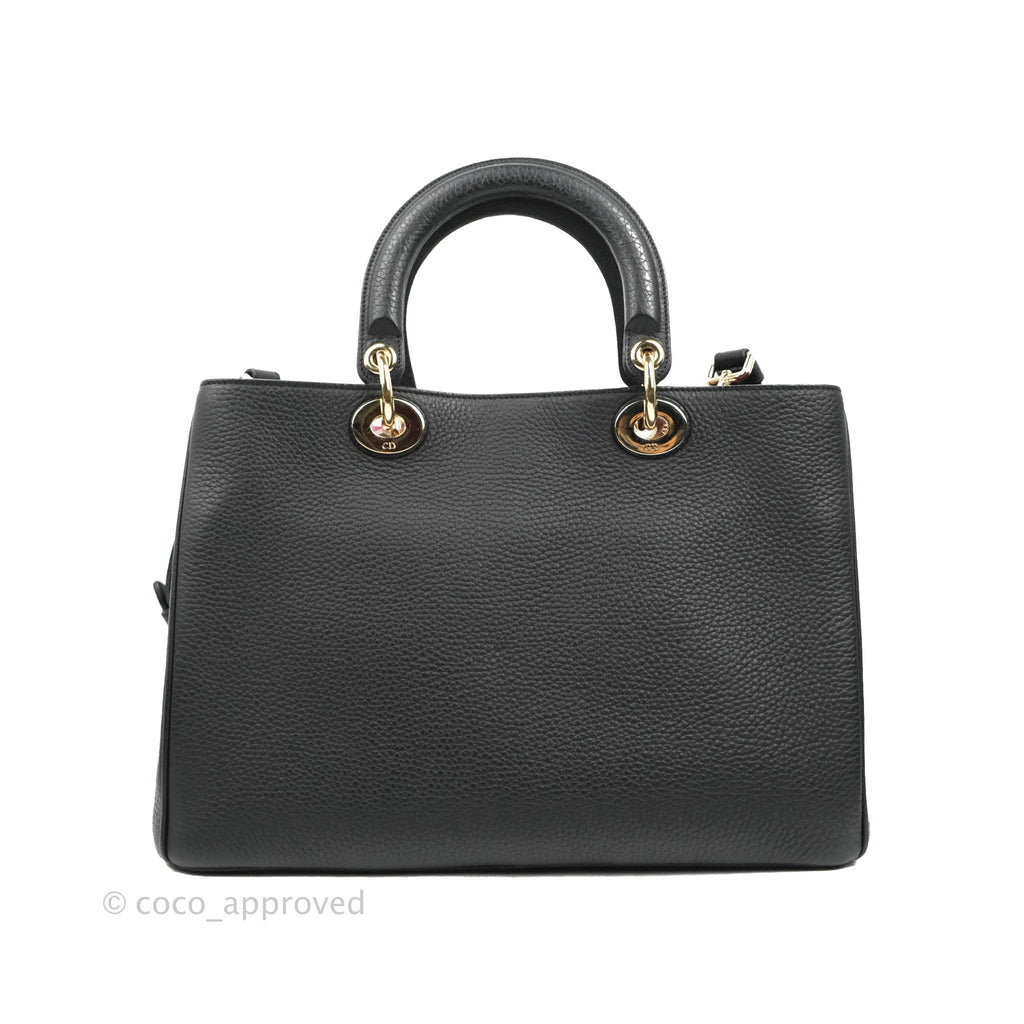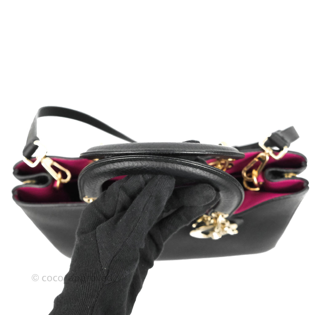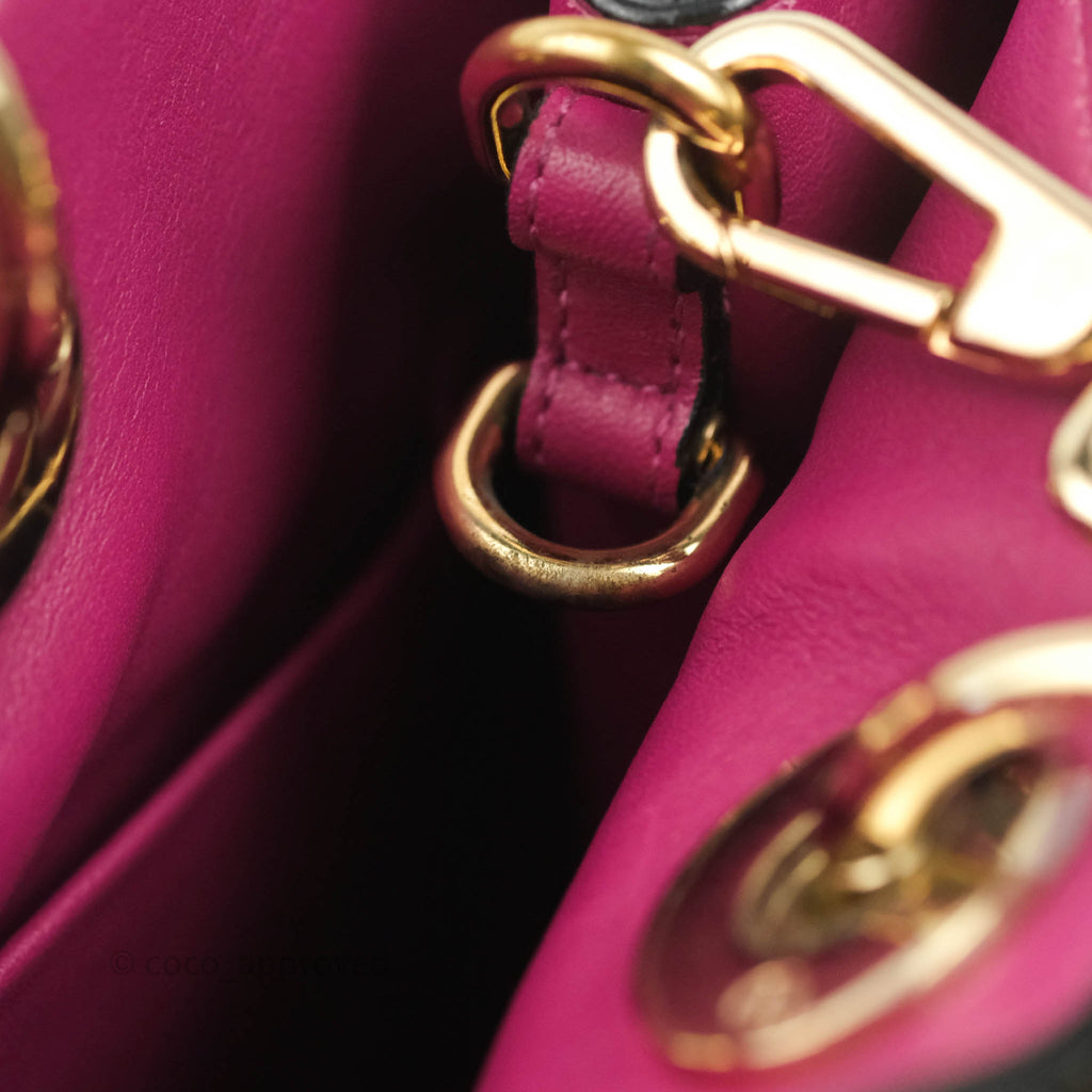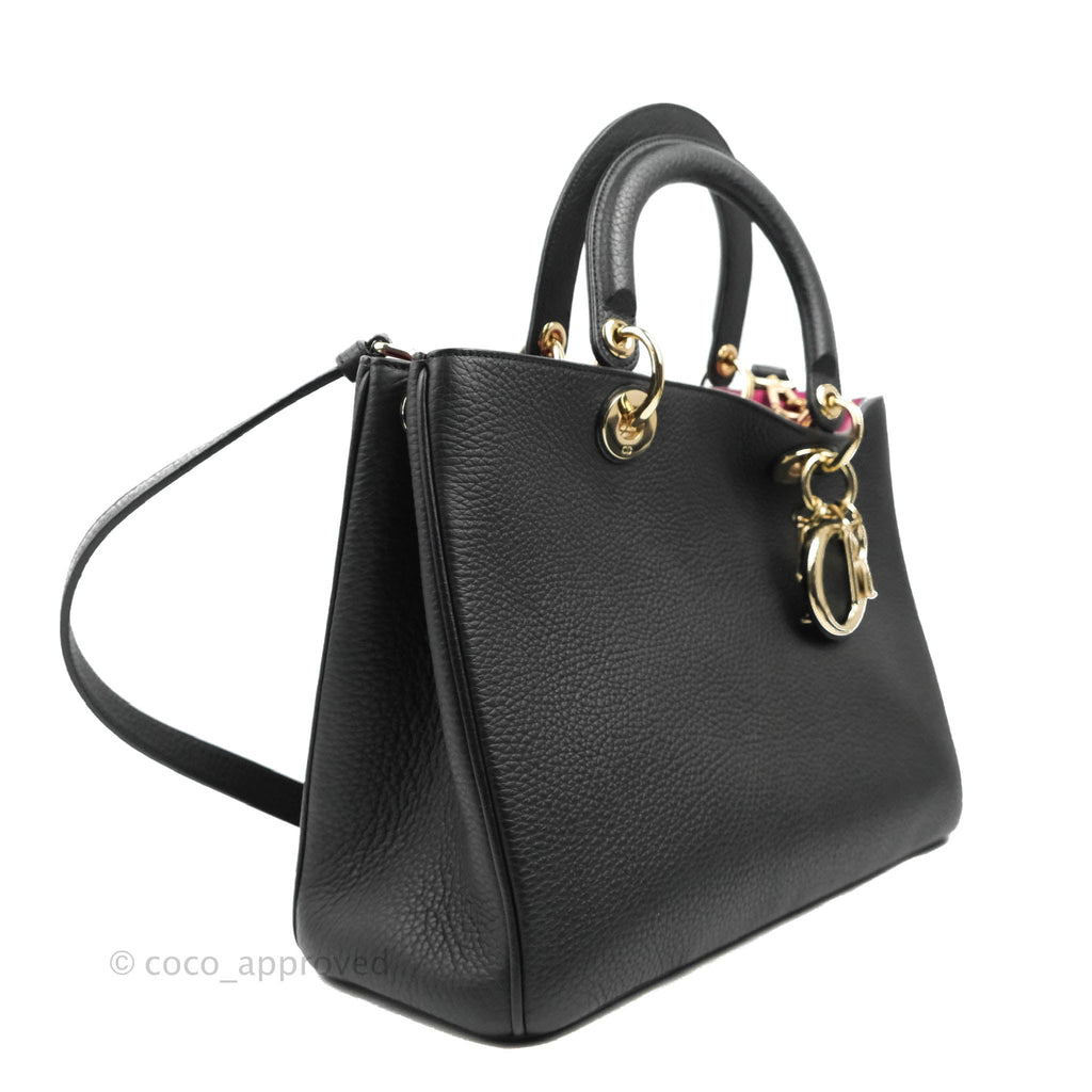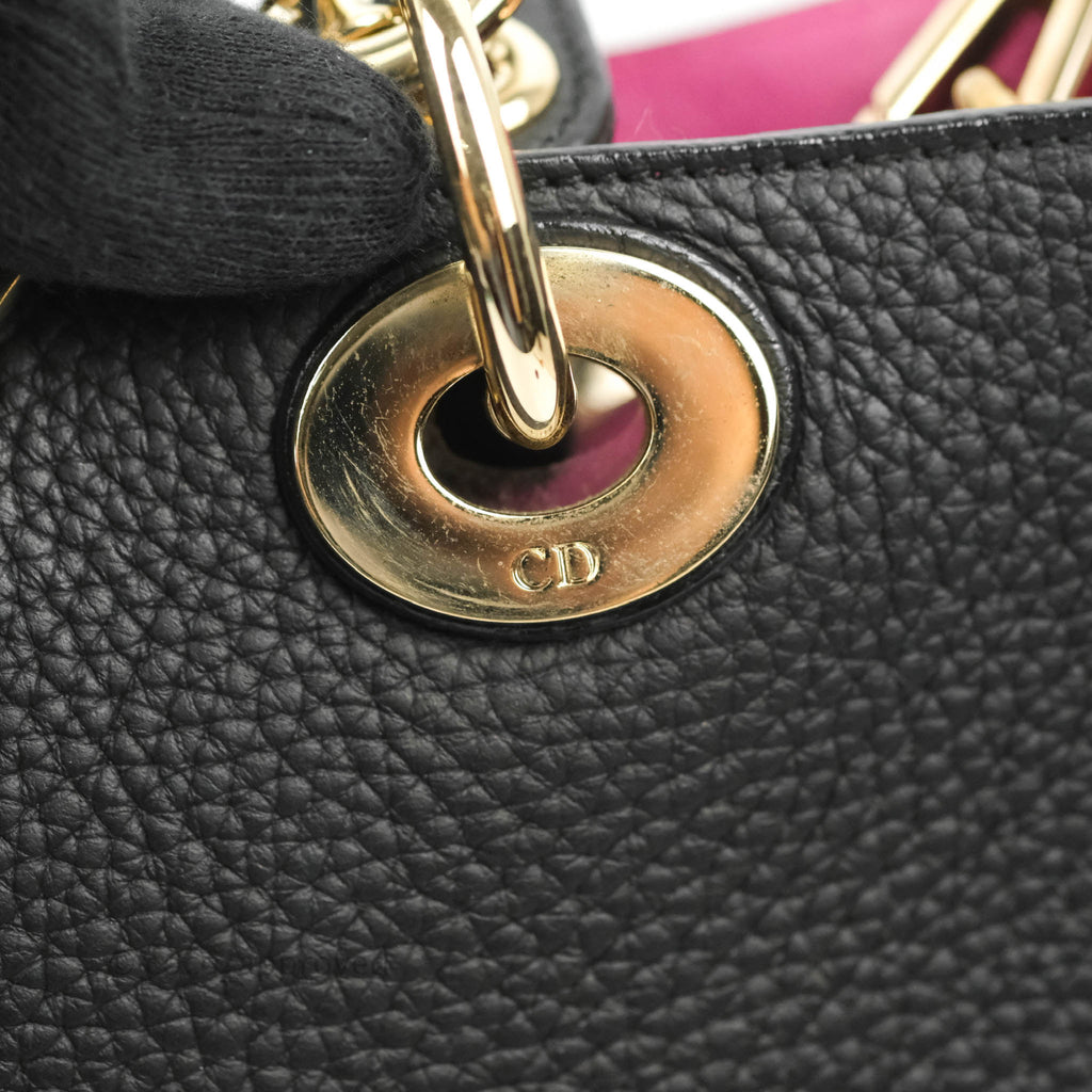 Christian Dior Medium Diorissimo Bag Black Fuchsia Grained Calfskin Gold Hardware