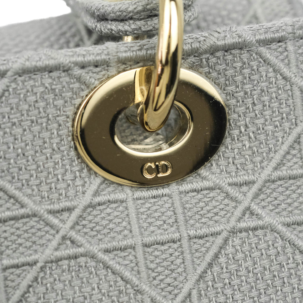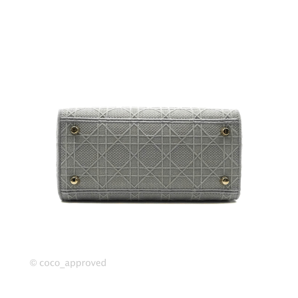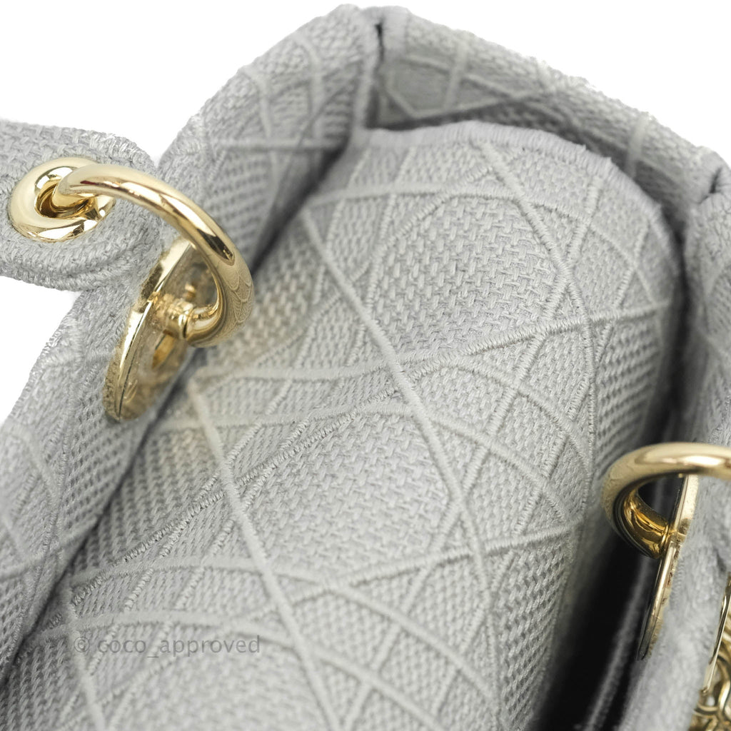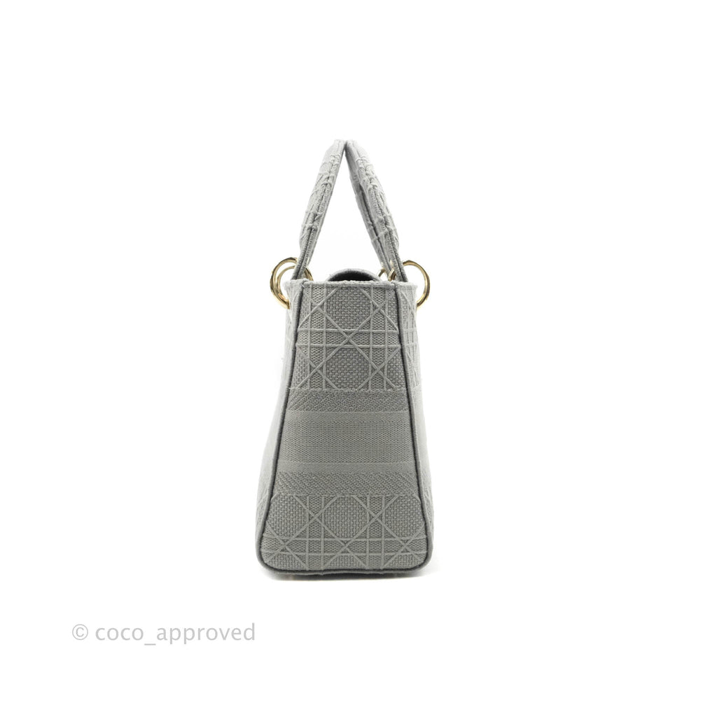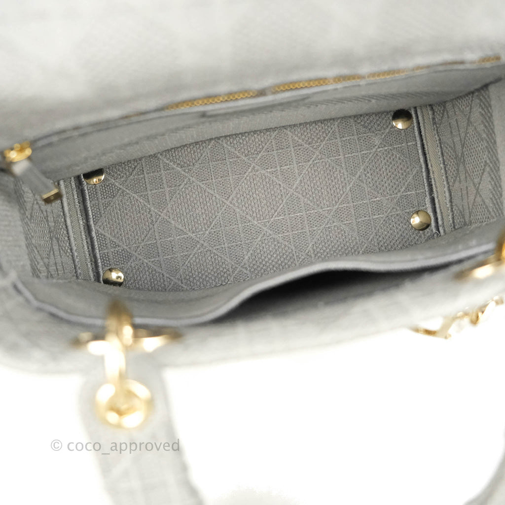 Christian Dior Medium Lady D-Lite Bag Gray Cannage Embroidery Gold Hardware