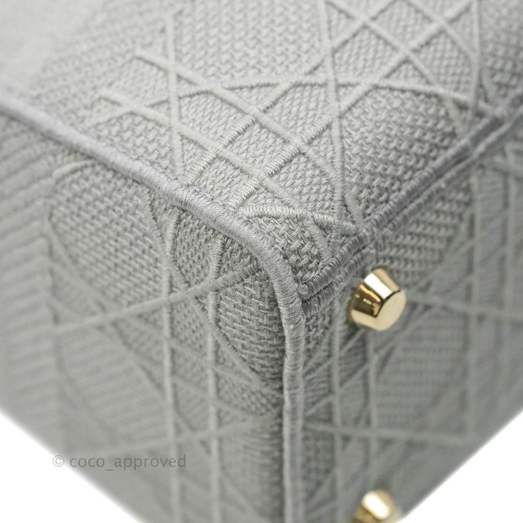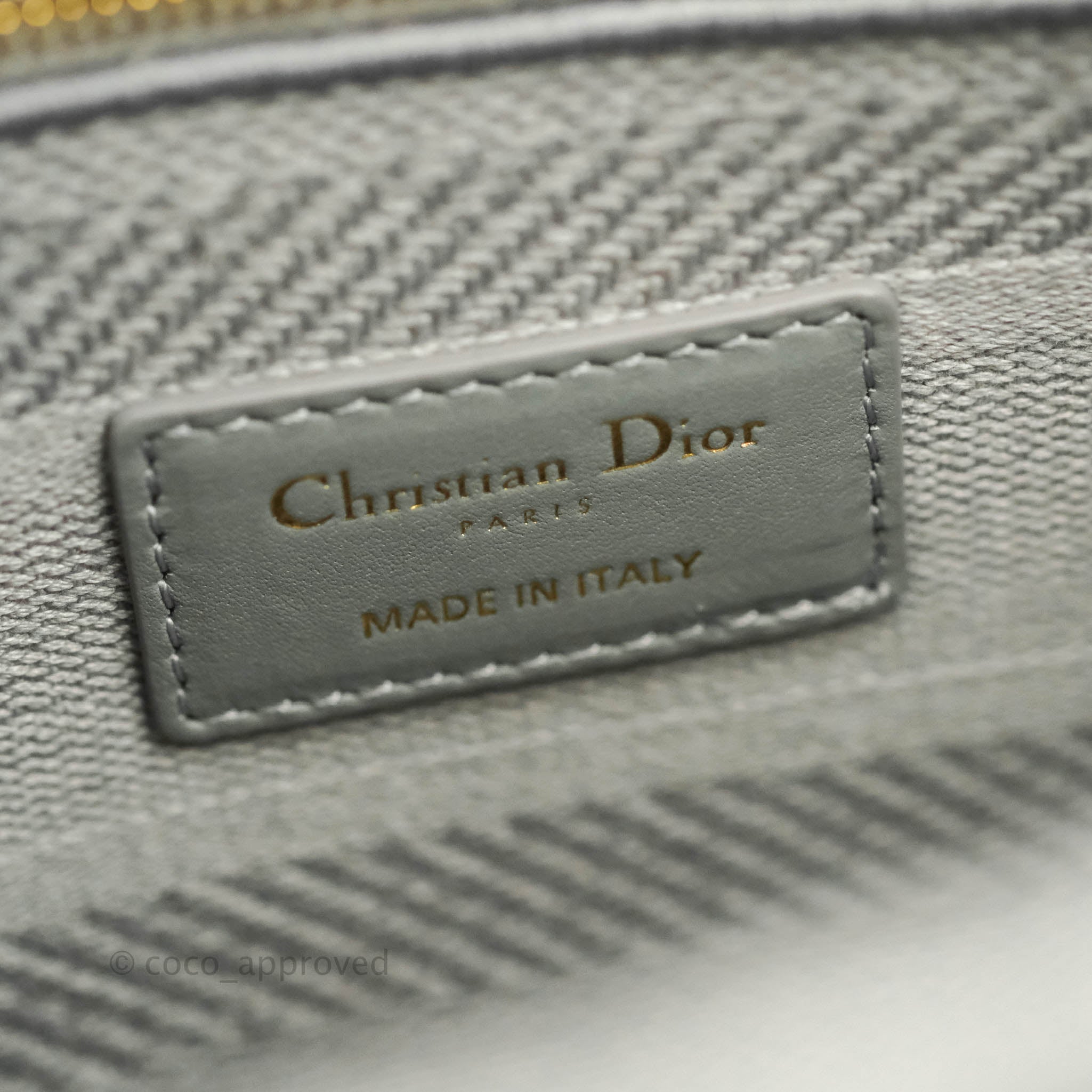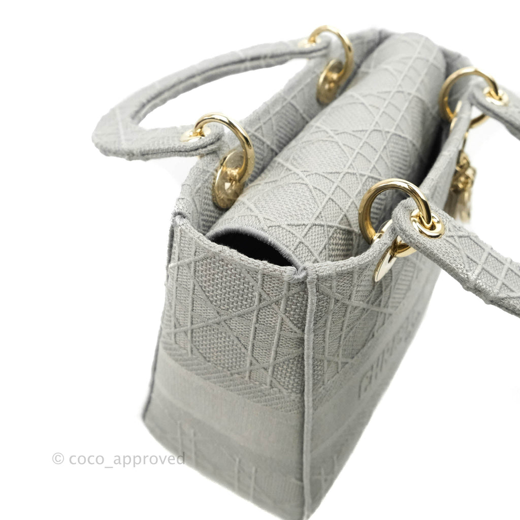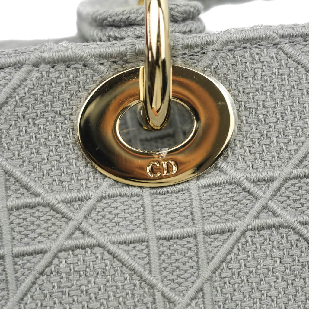Christian Dior Medium Lady D-Lite Bag Gray Cannage Embroidery Gold Hardware