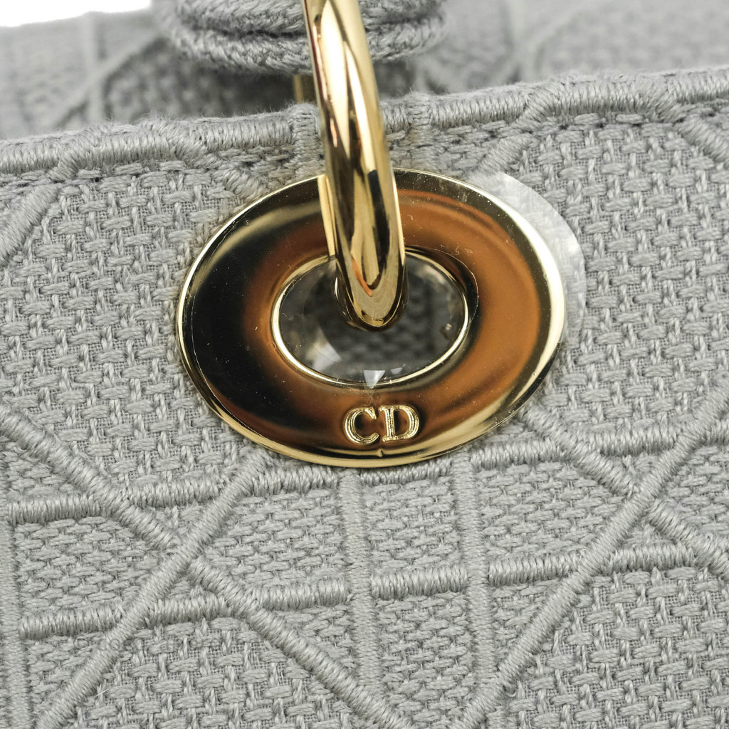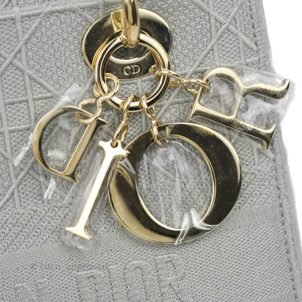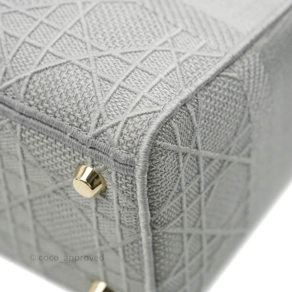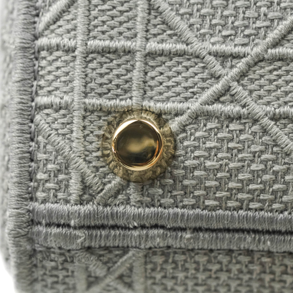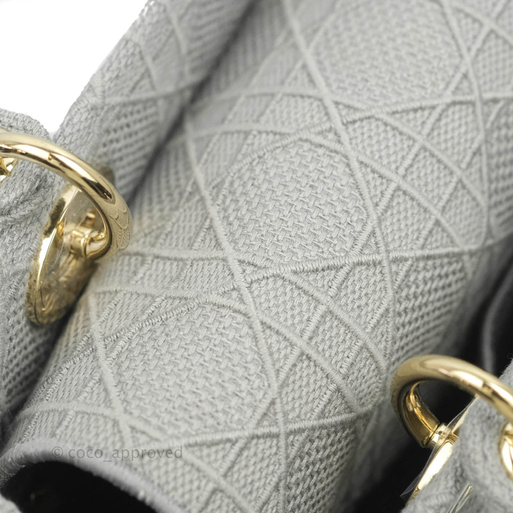 Christian Dior Medium Lady D-Lite Bag Gray Cannage Embroidery Gold Hardware