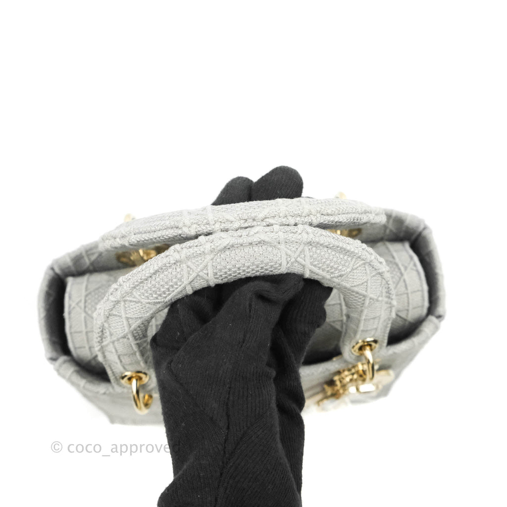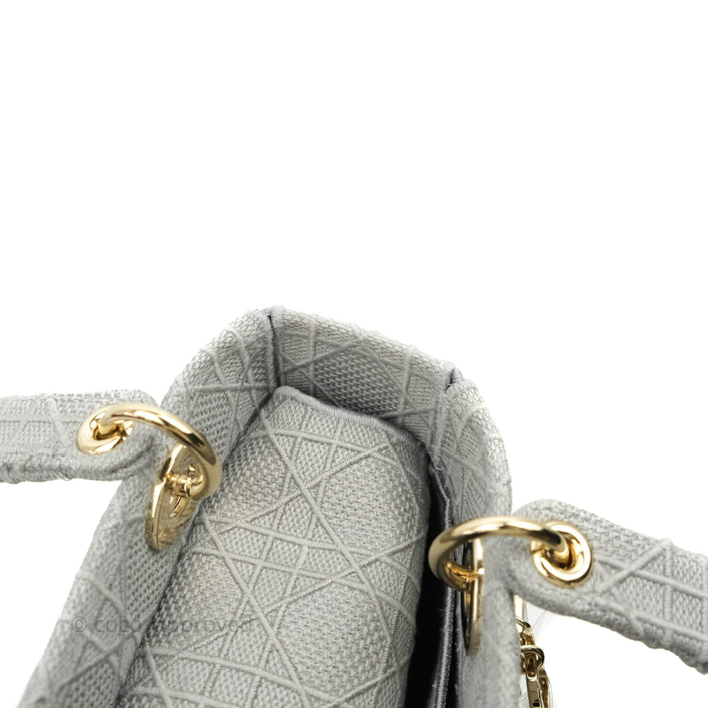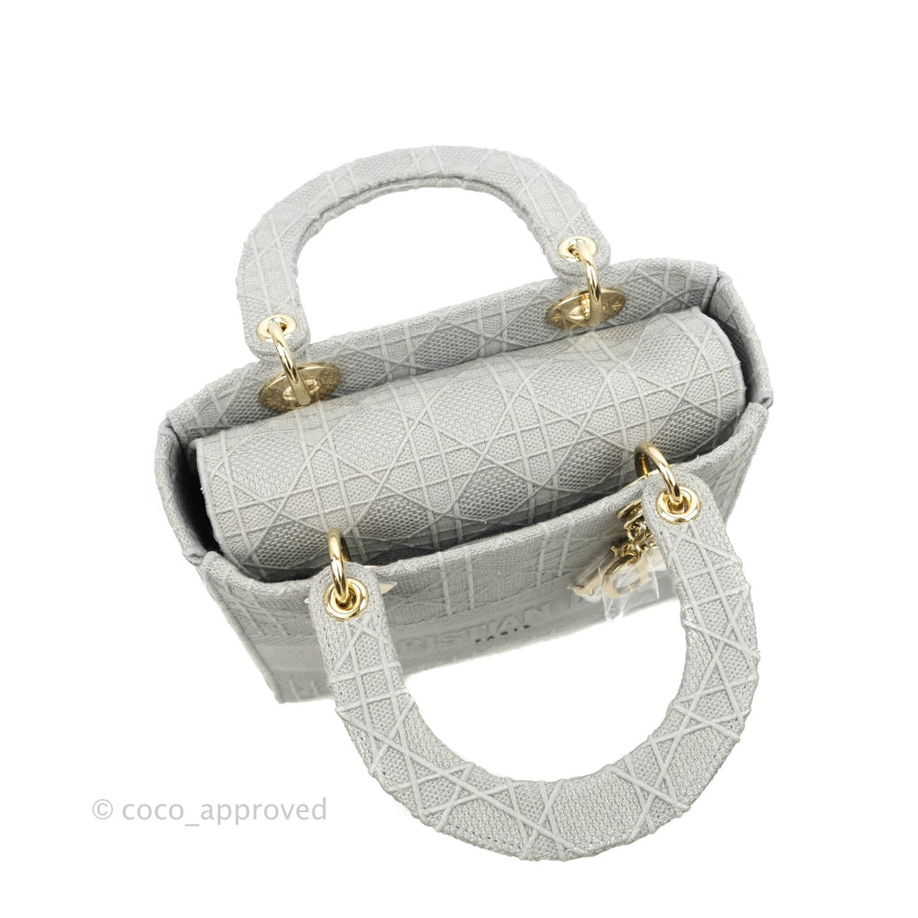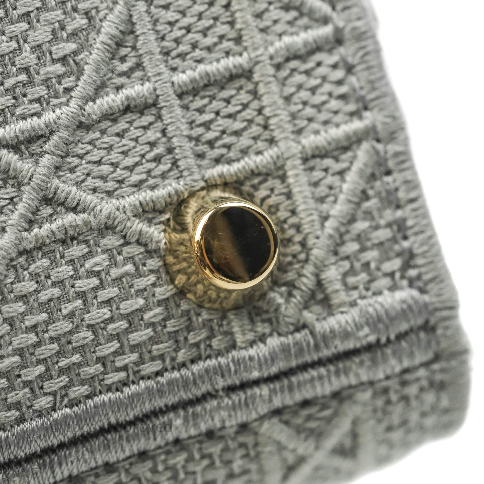 Christian Dior Medium Lady D-Lite Bag Gray Cannage Embroidery Gold Hardware