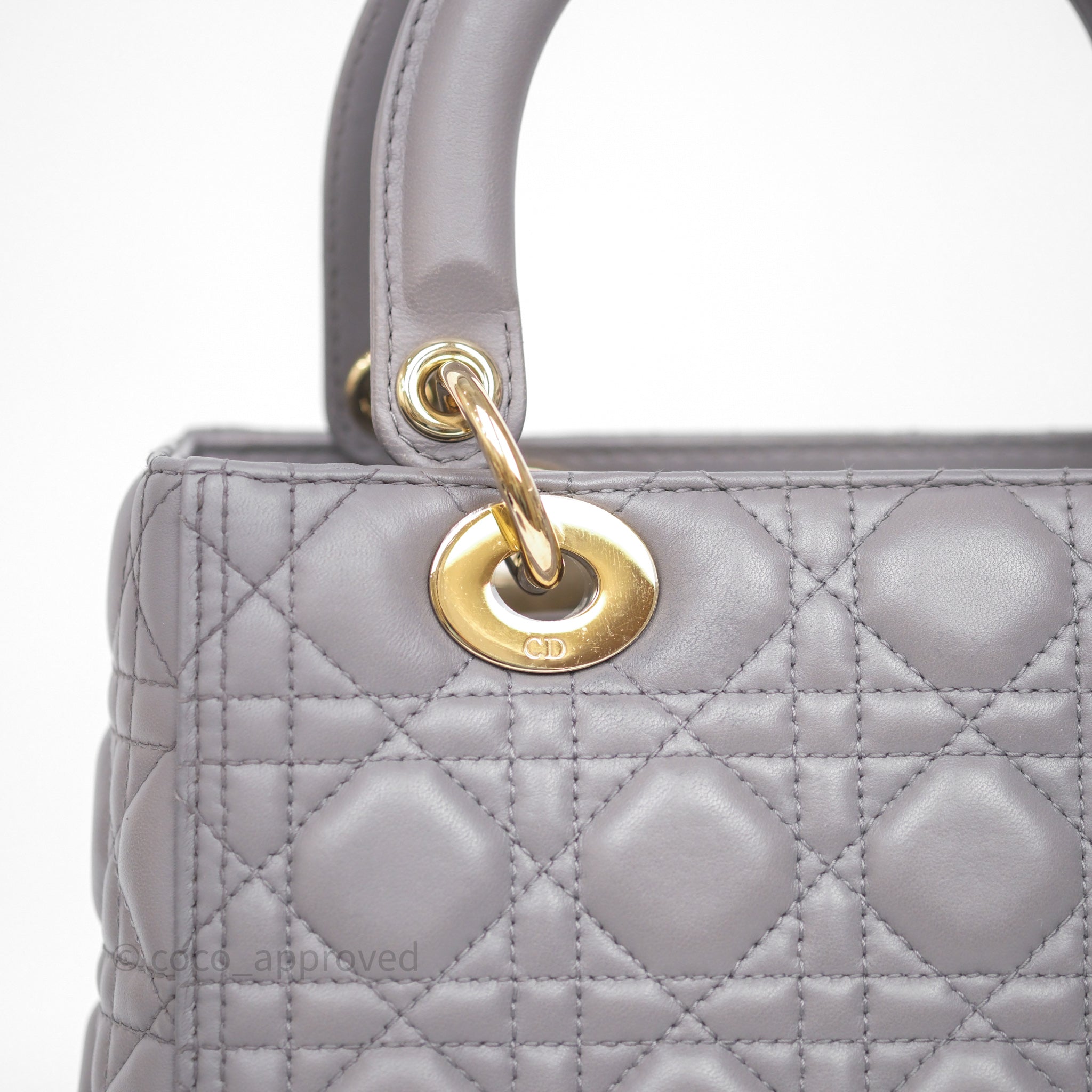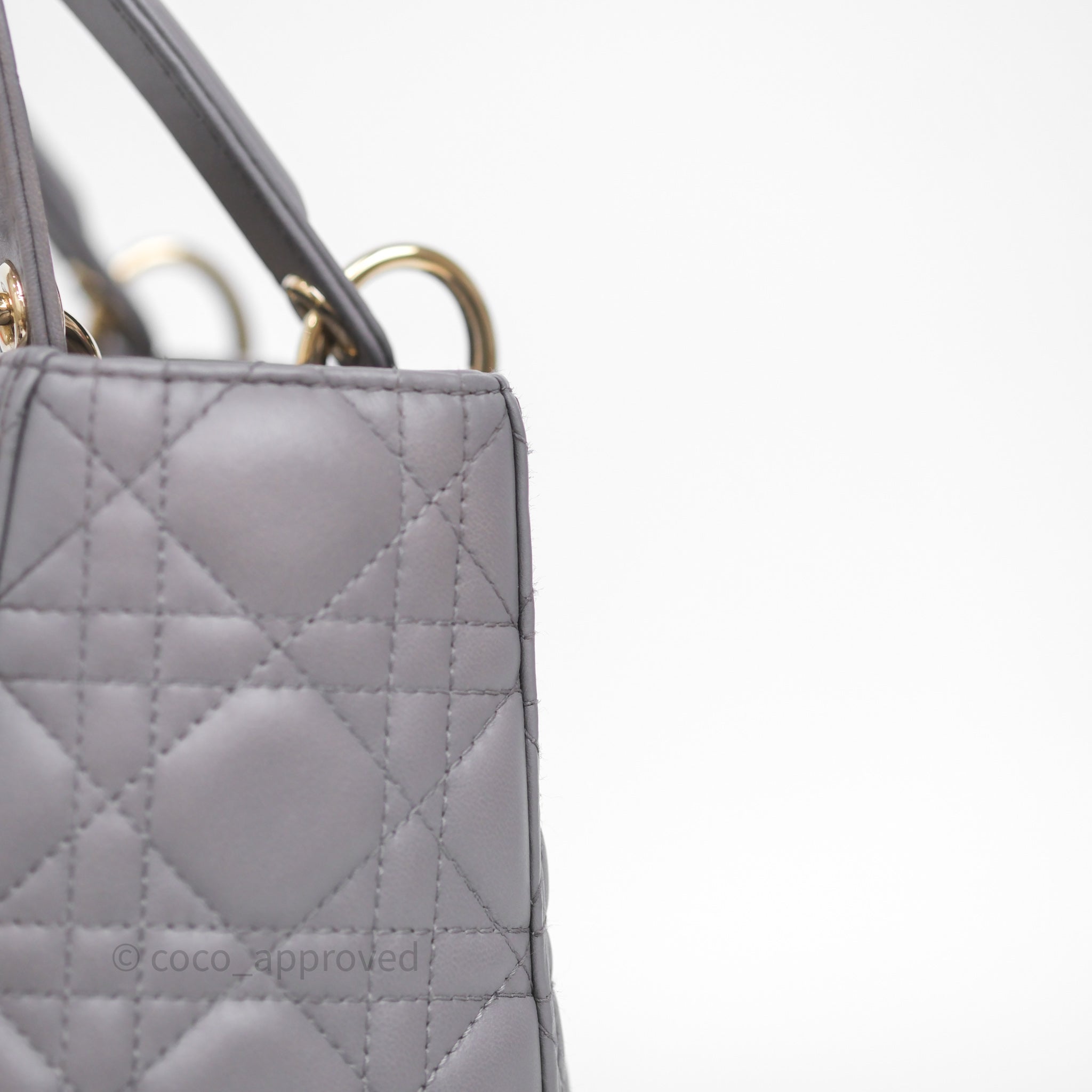 Christian Dior Medium Lady Dior Grey Lambskin Gold Hardware