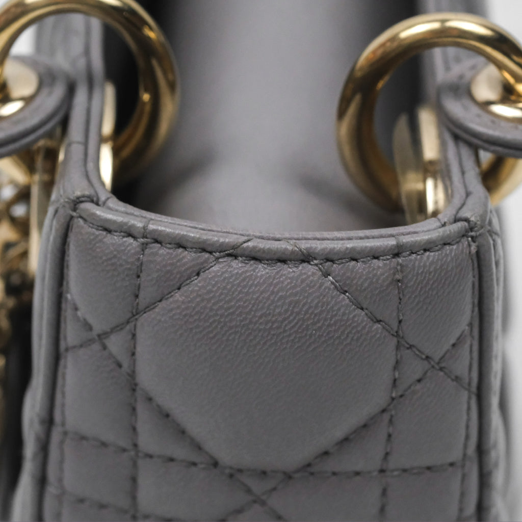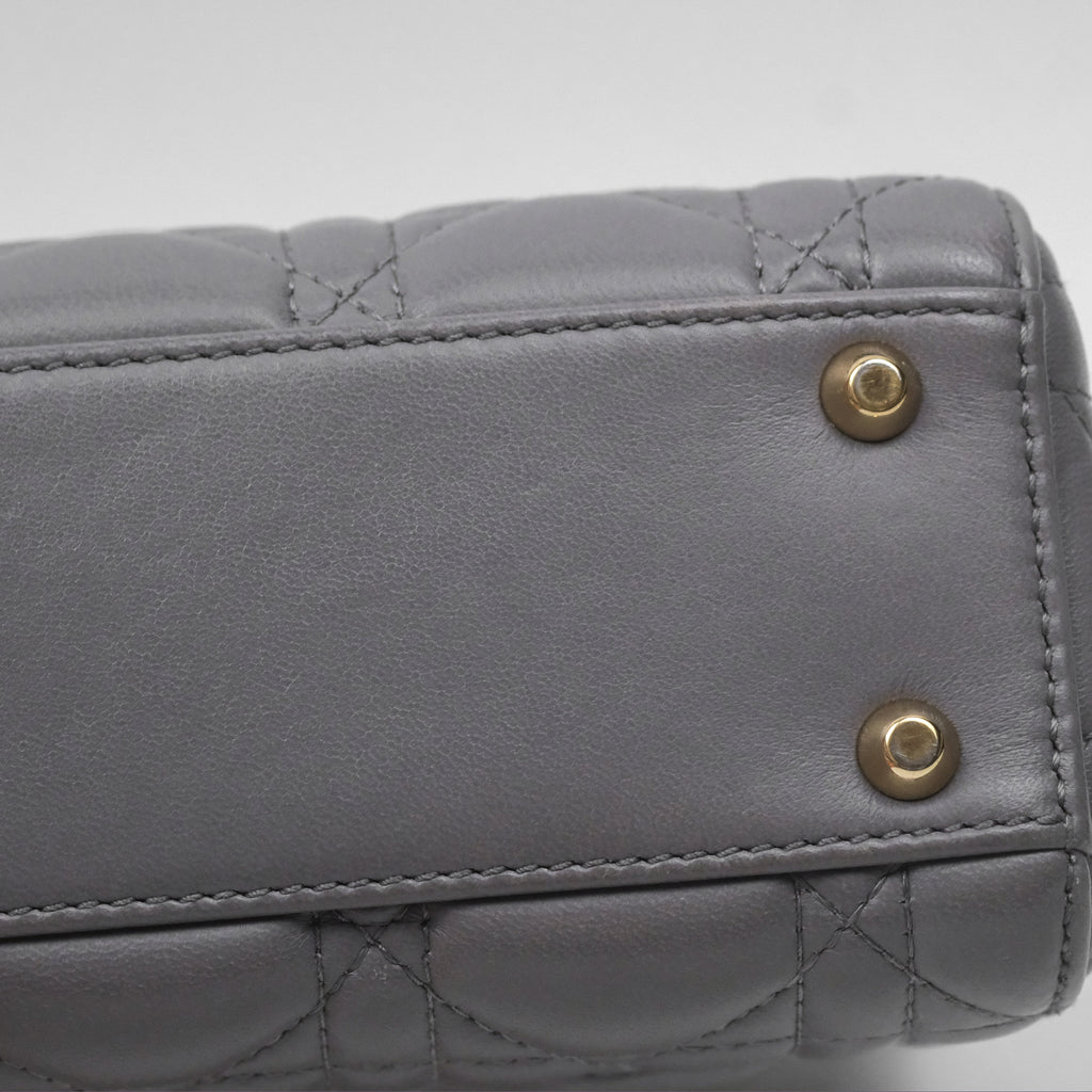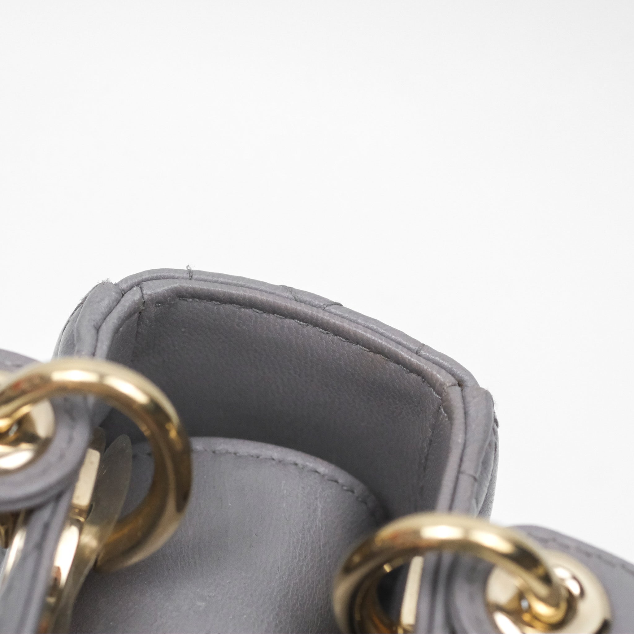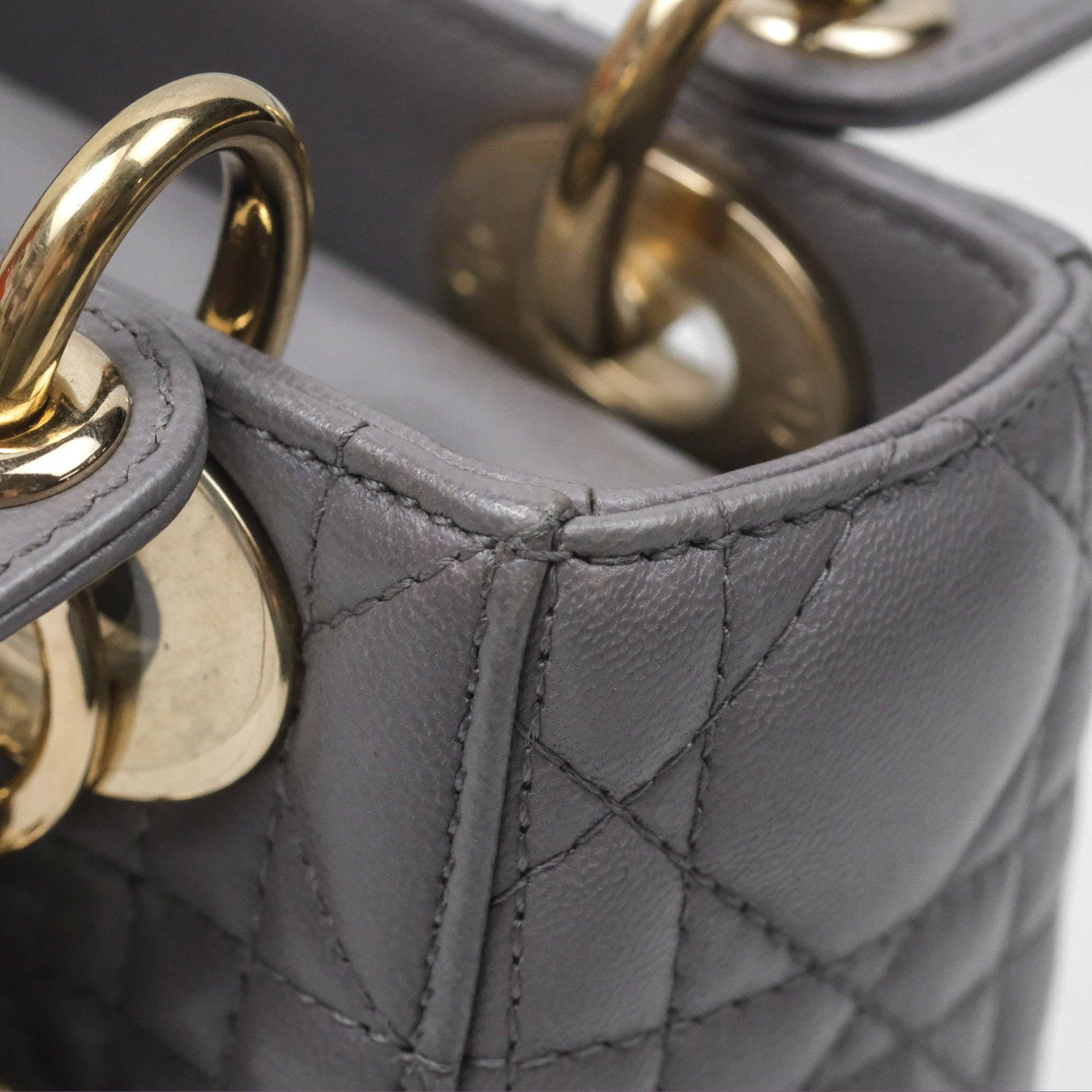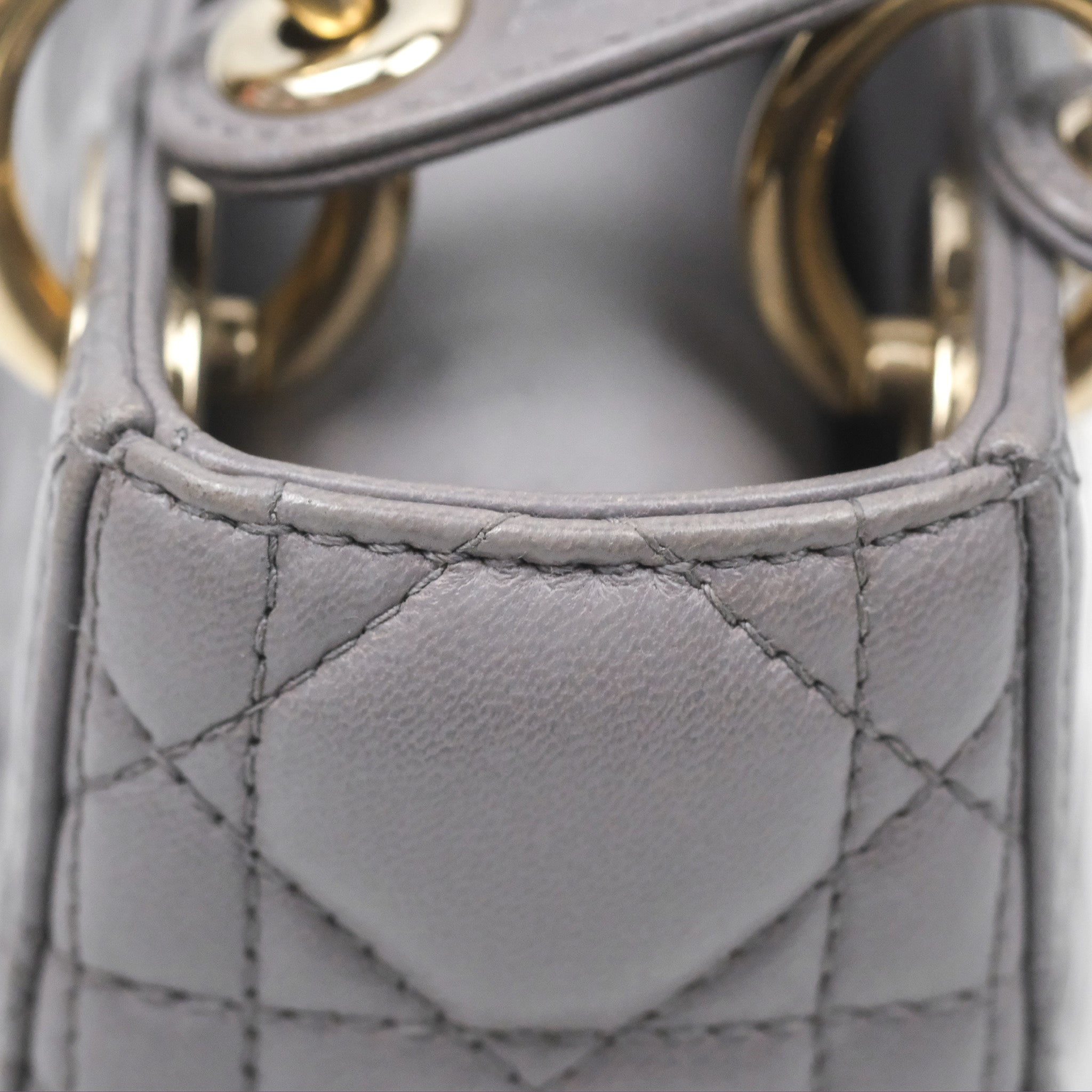 Christian Dior Mini Lady Dior Grey Lambskin Cannage Gold Hardware