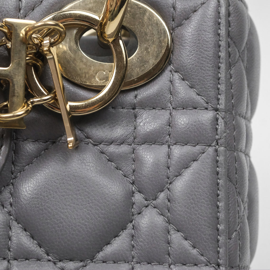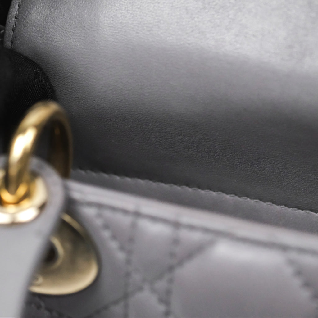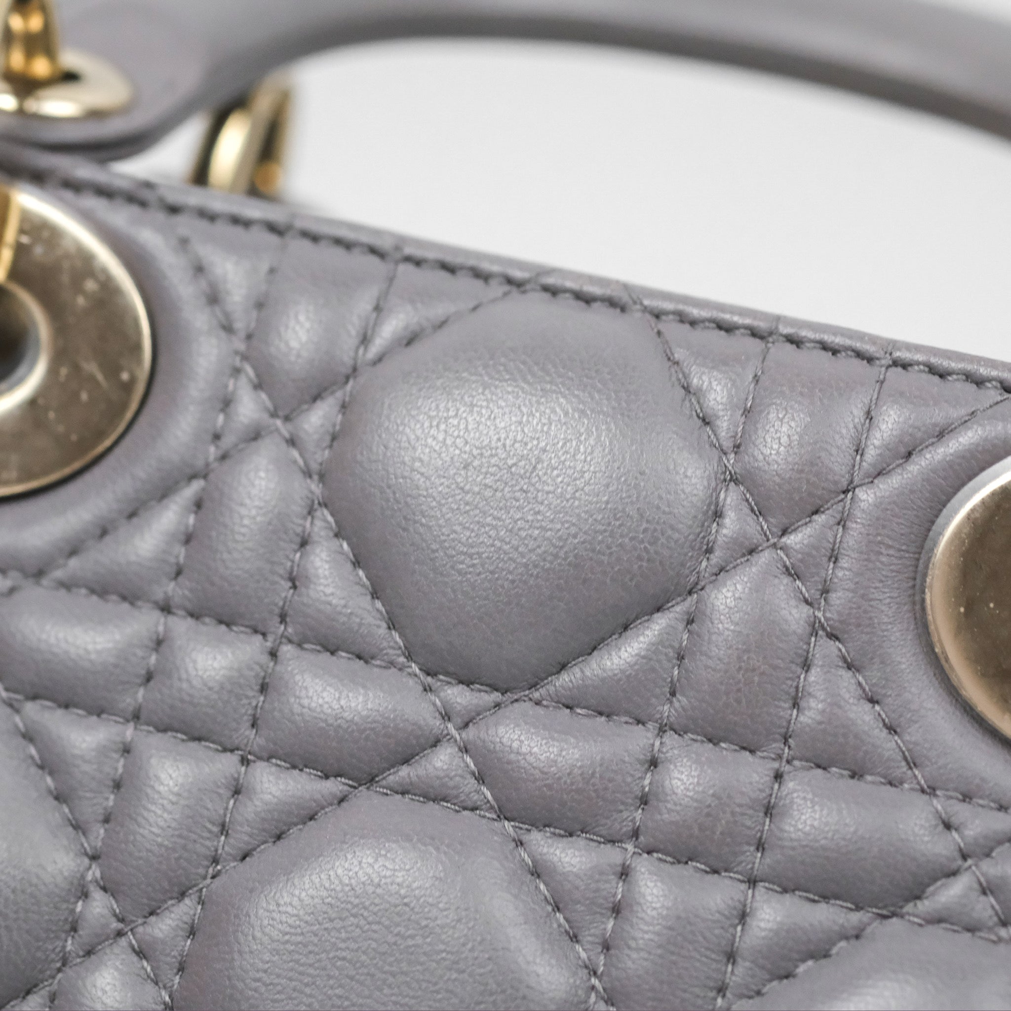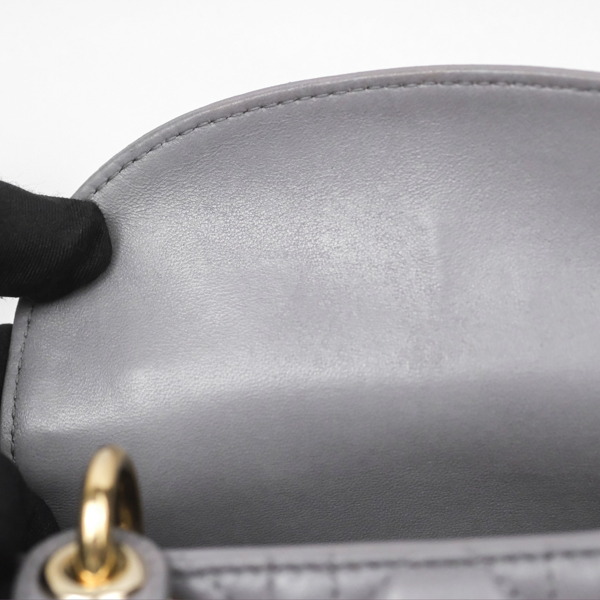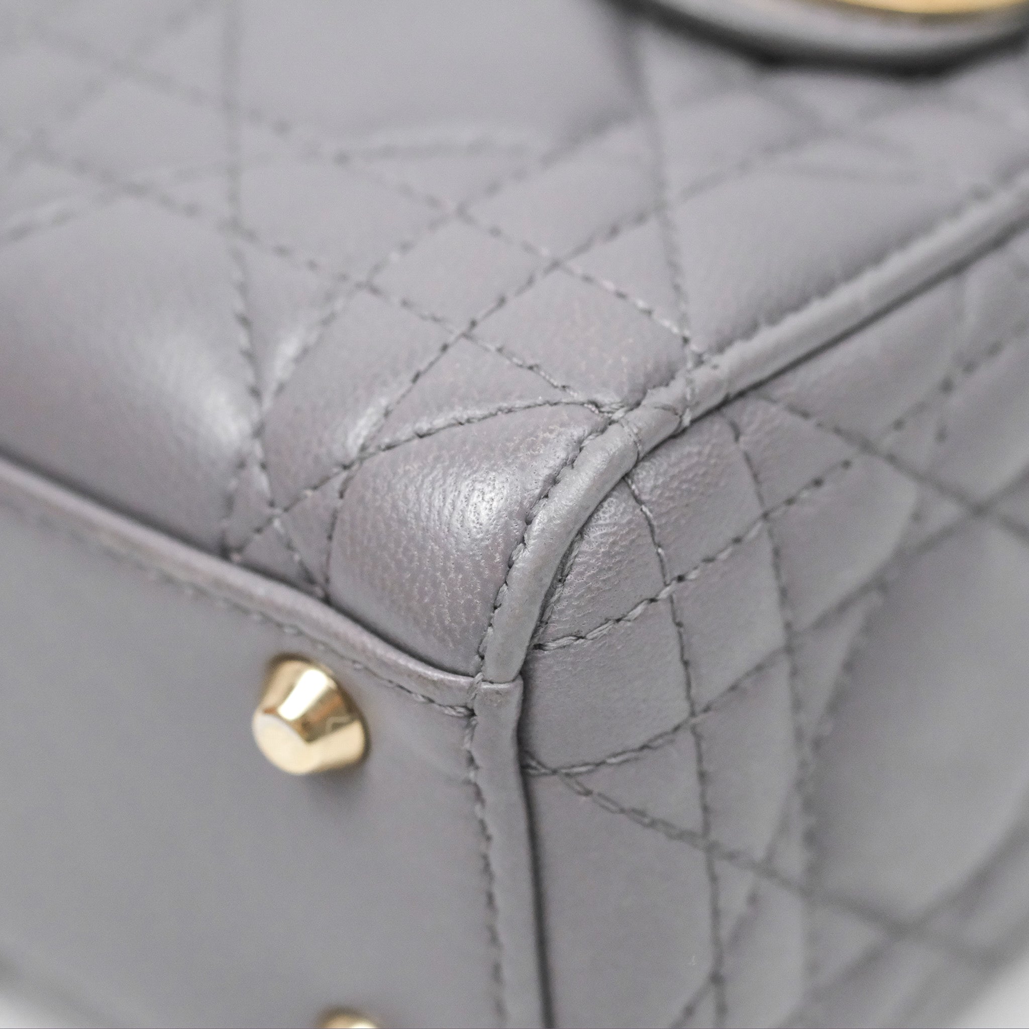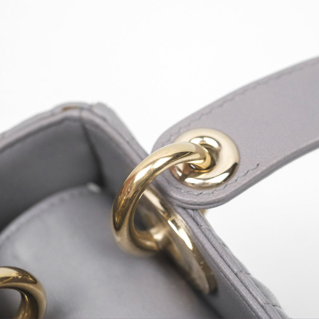 Christian Dior Mini Lady Dior Grey Lambskin Cannage Gold Hardware
