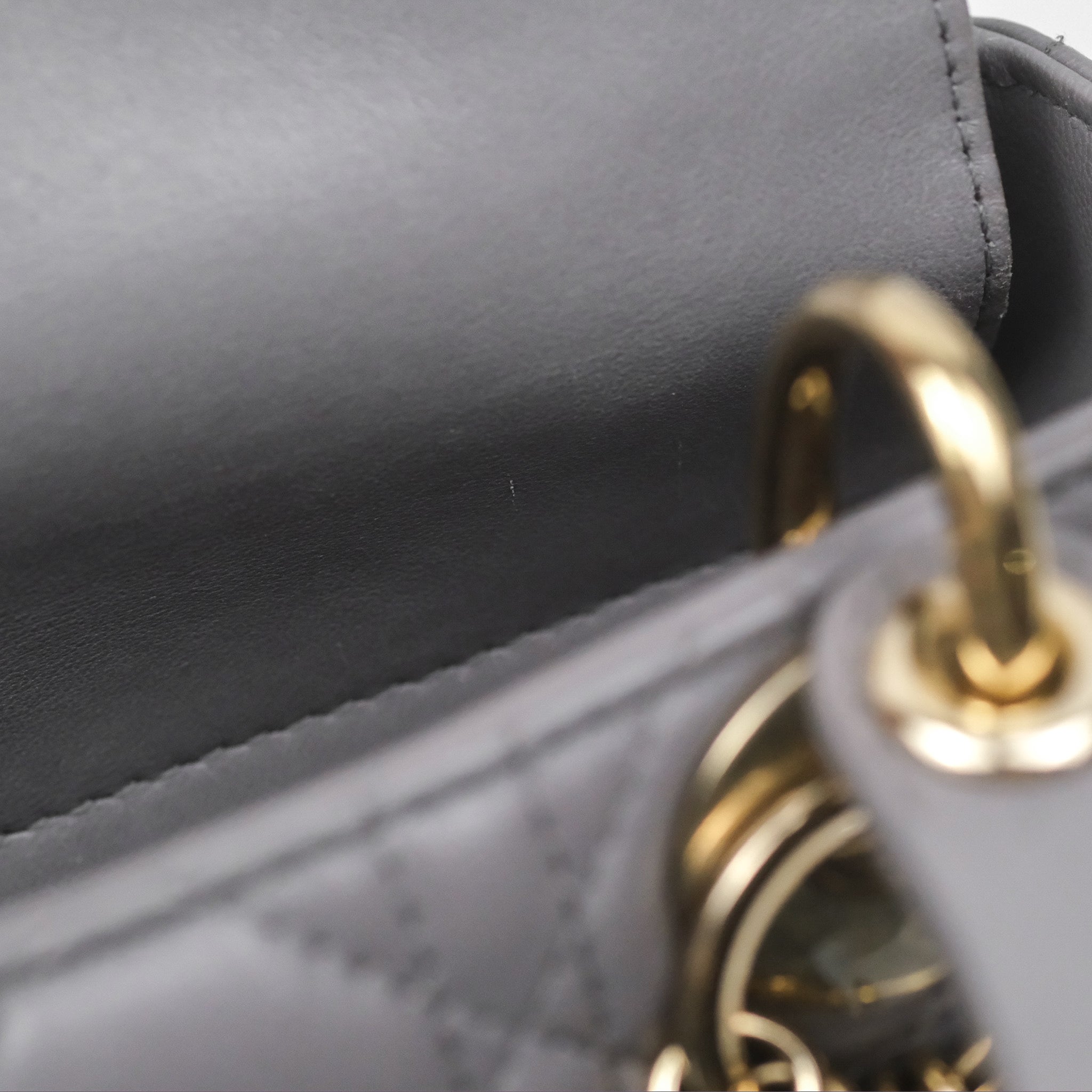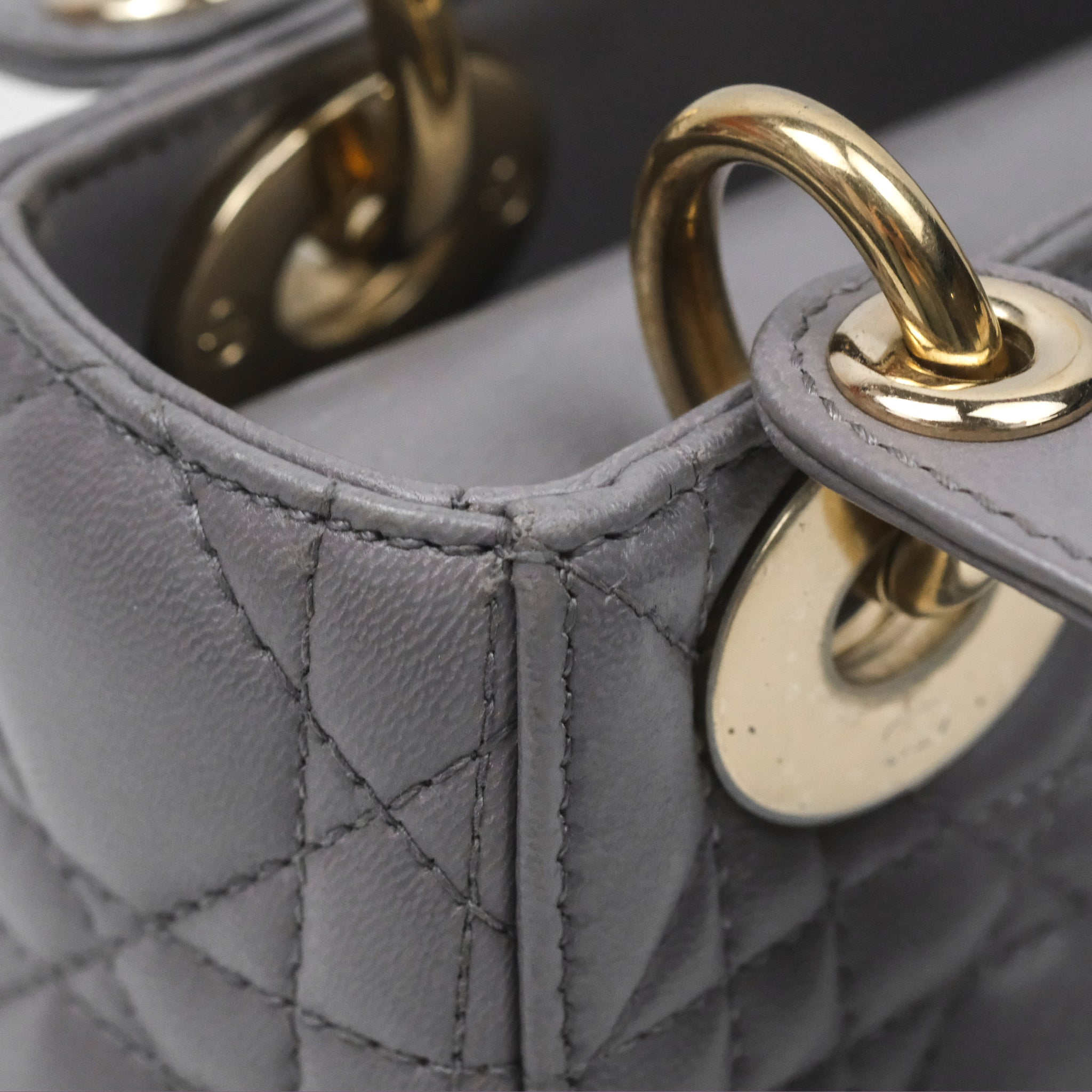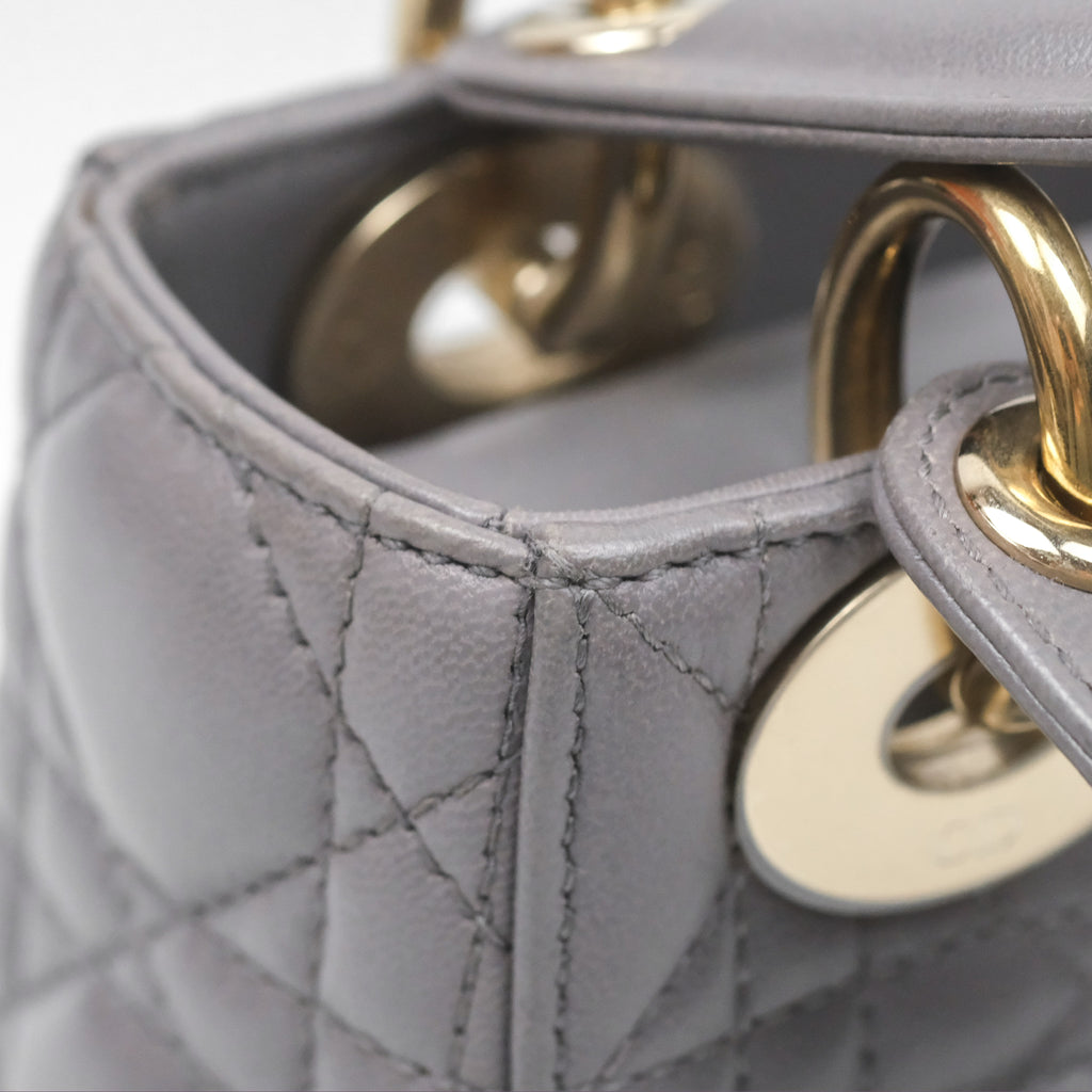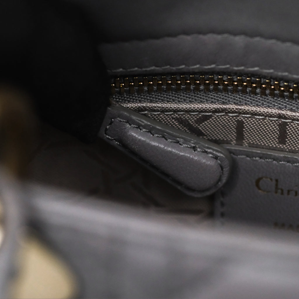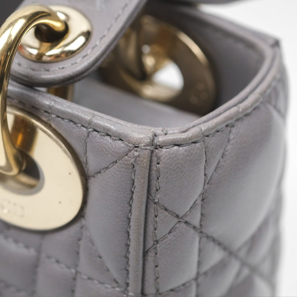 Christian Dior Mini Lady Dior Grey Lambskin Cannage Gold Hardware