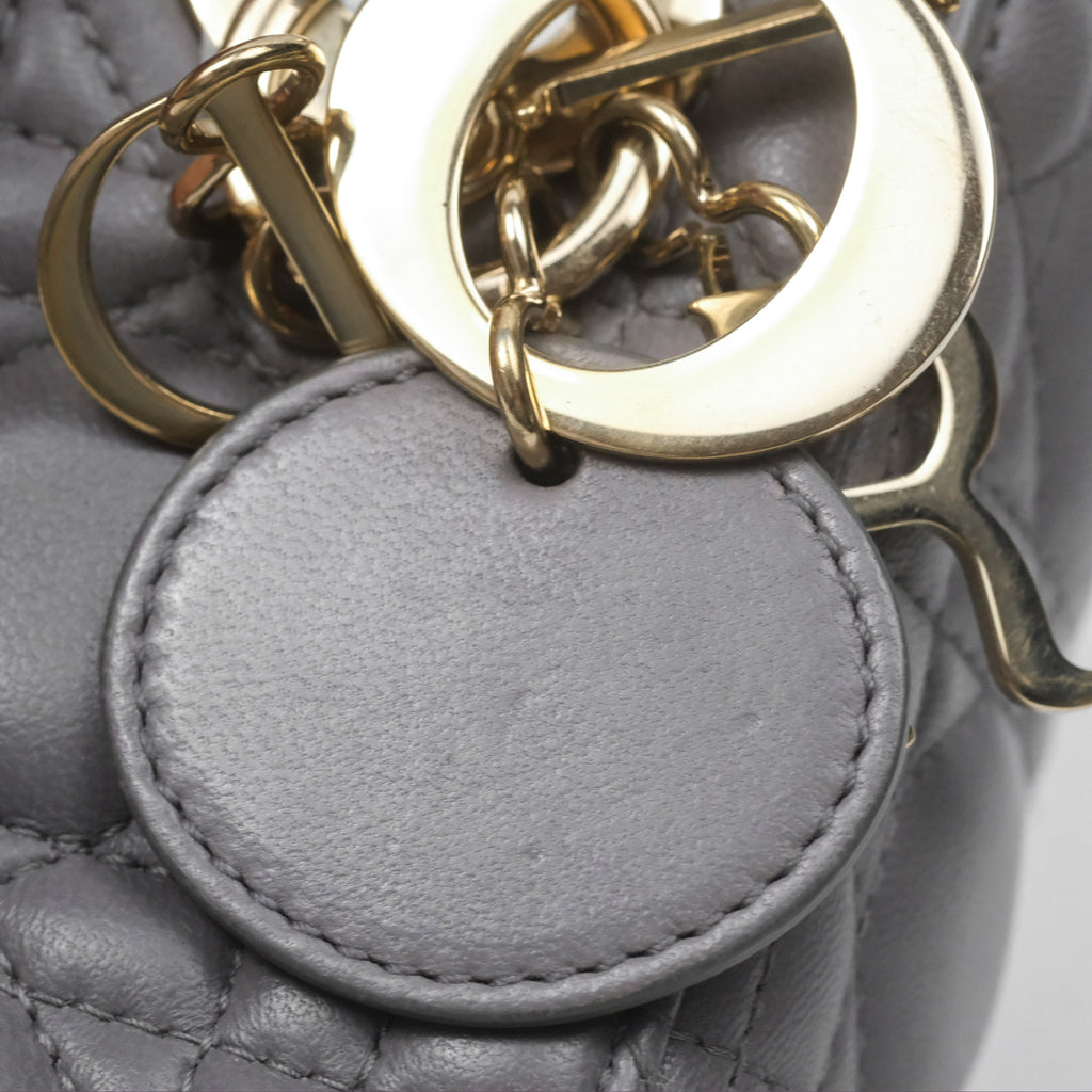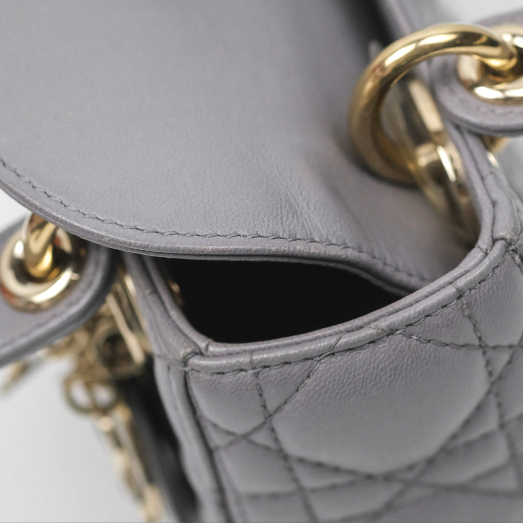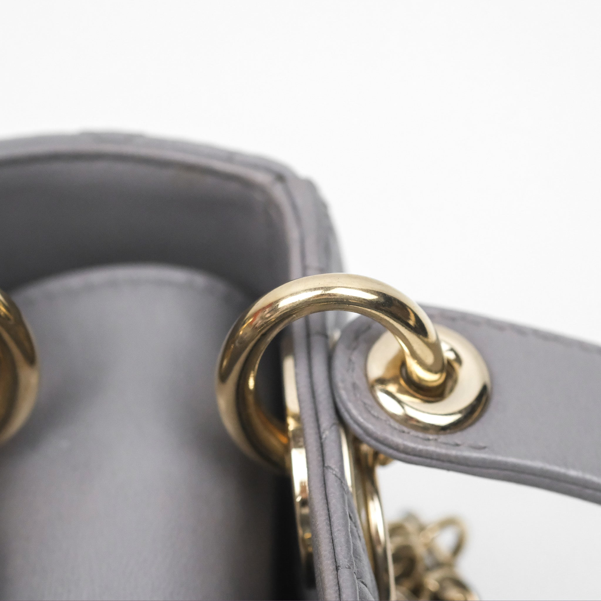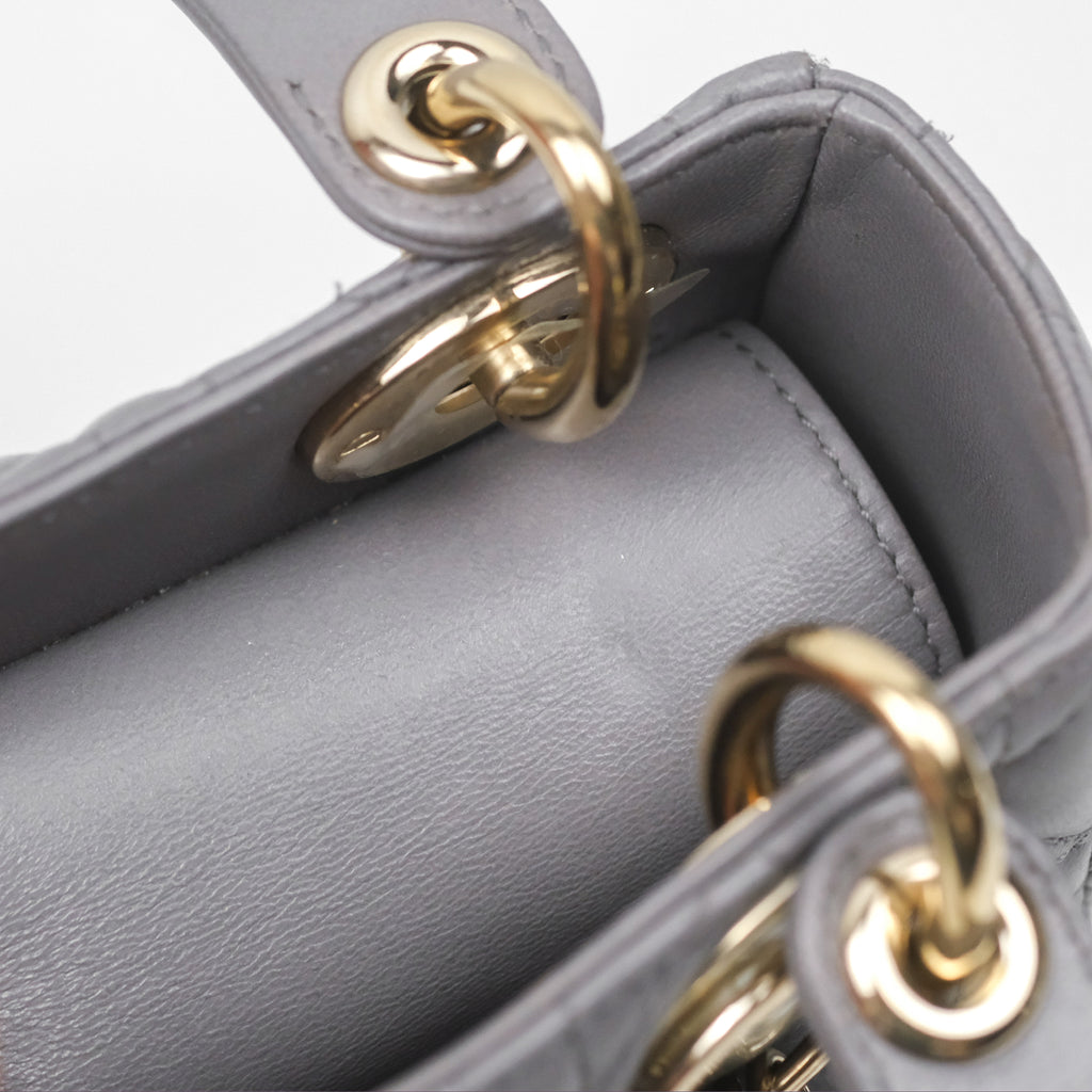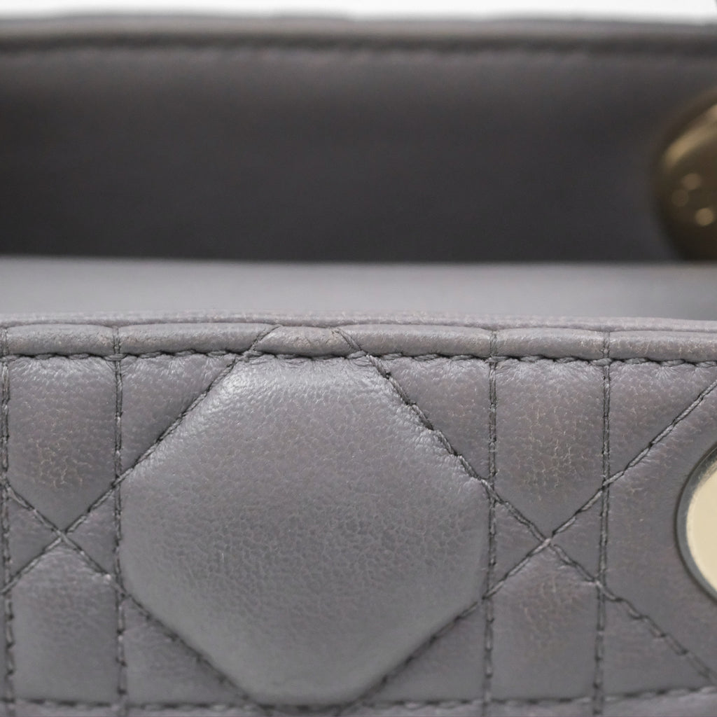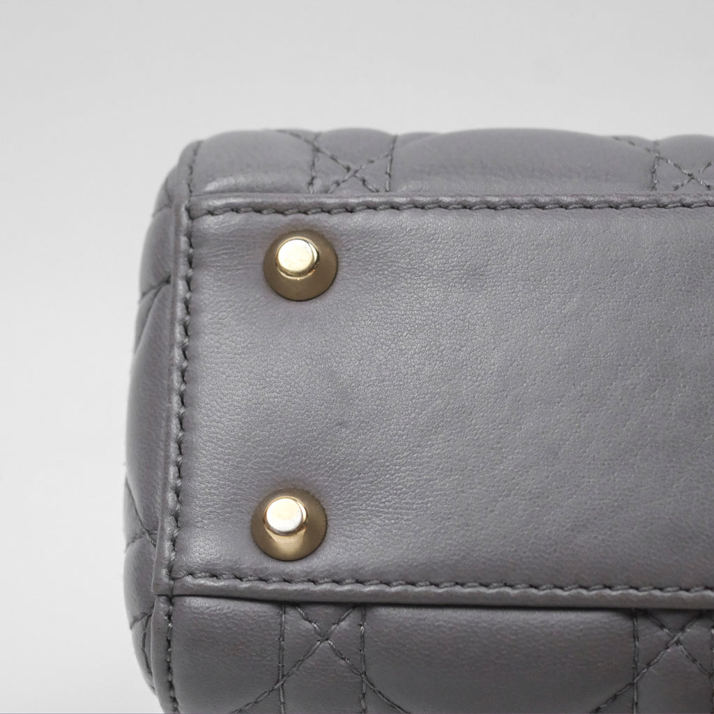 Christian Dior Mini Lady Dior Grey Lambskin Cannage Gold Hardware