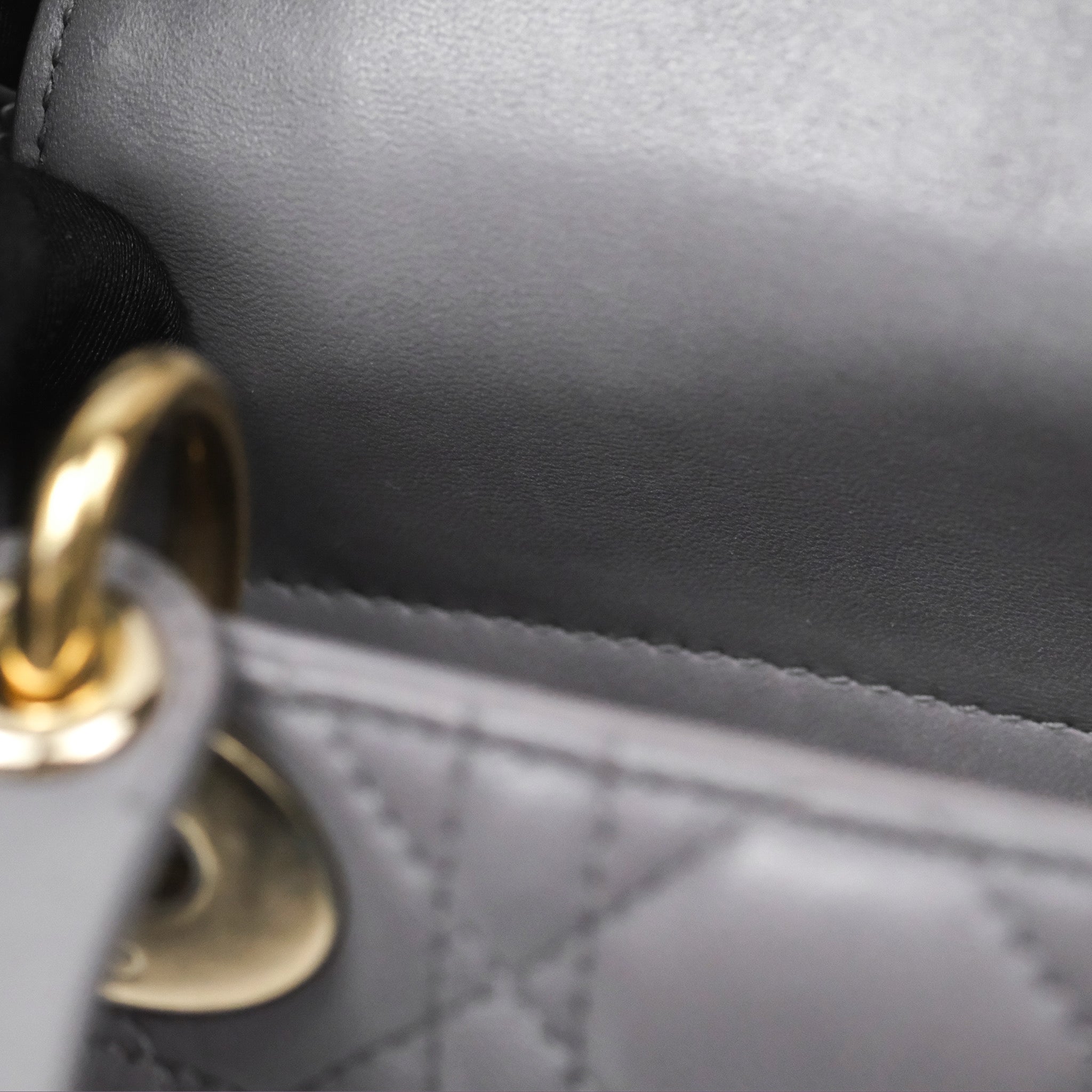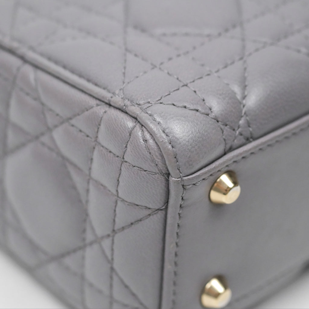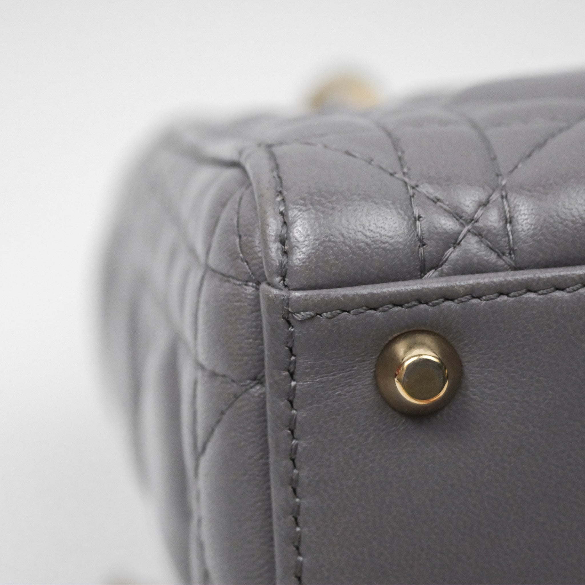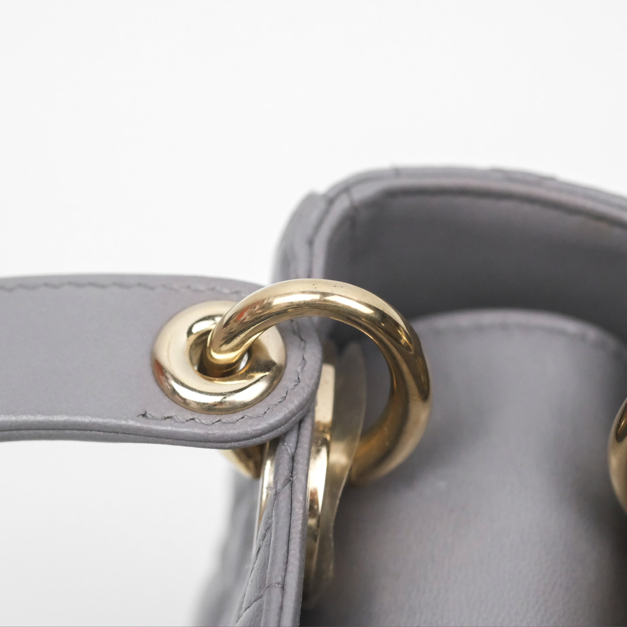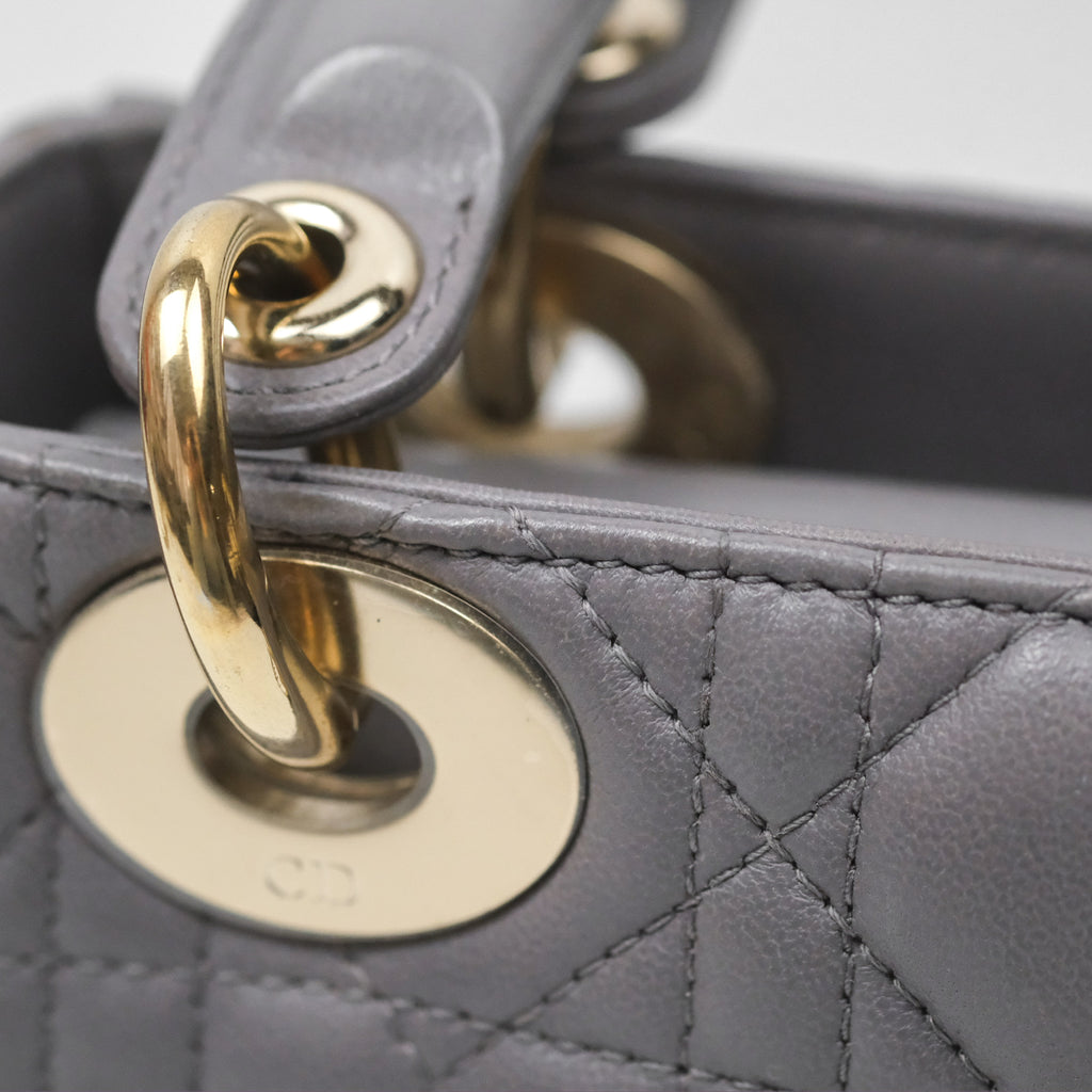 Christian Dior Mini Lady Dior Grey Lambskin Cannage Gold Hardware