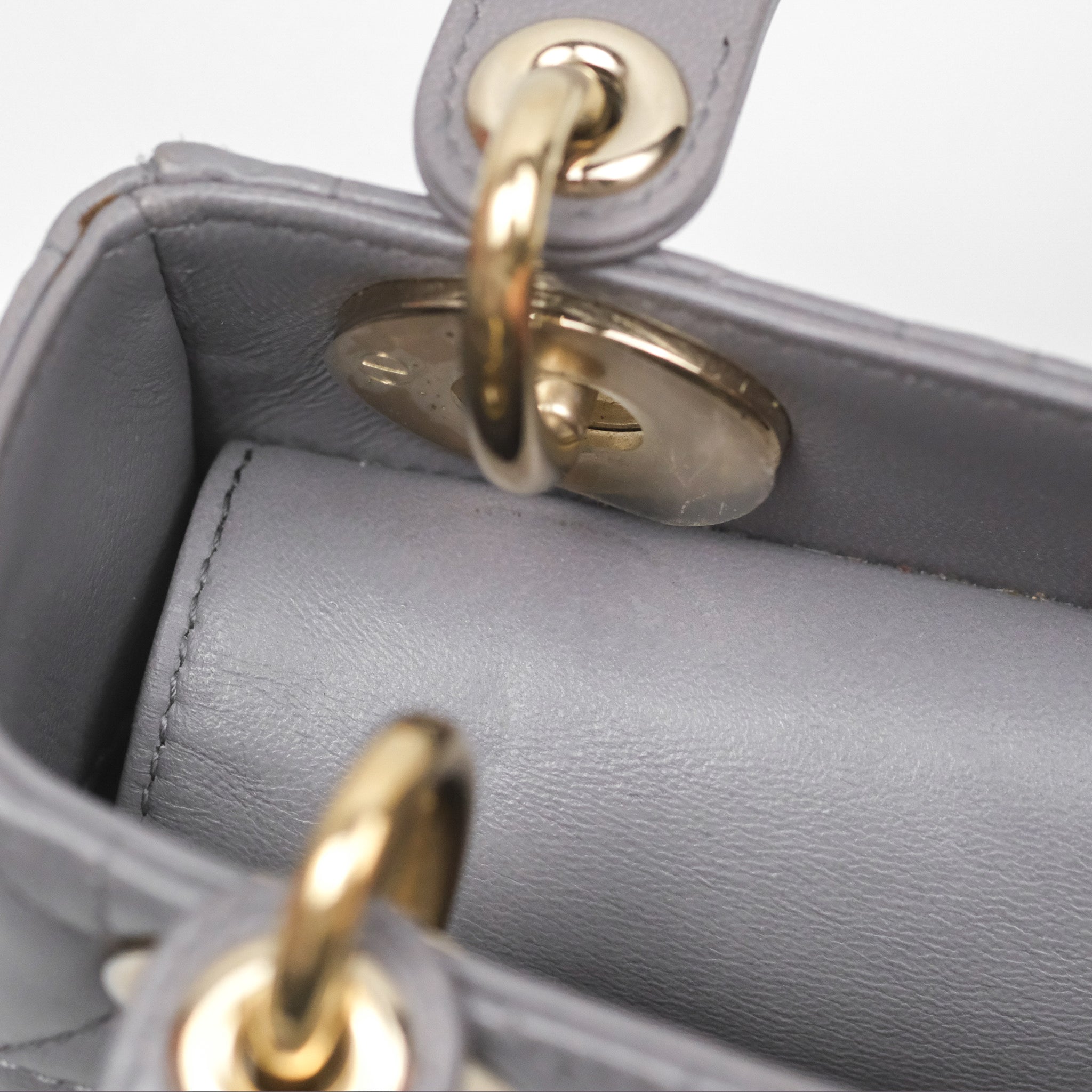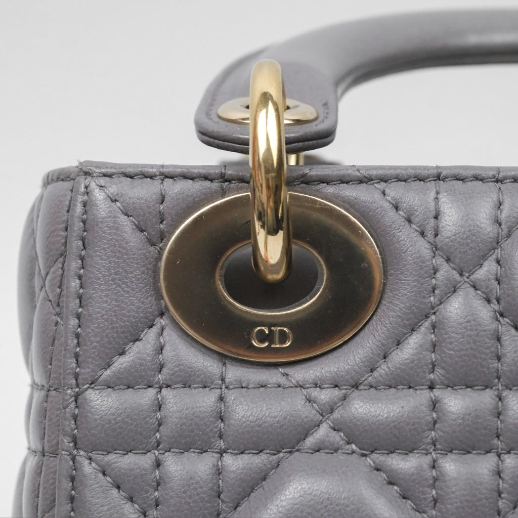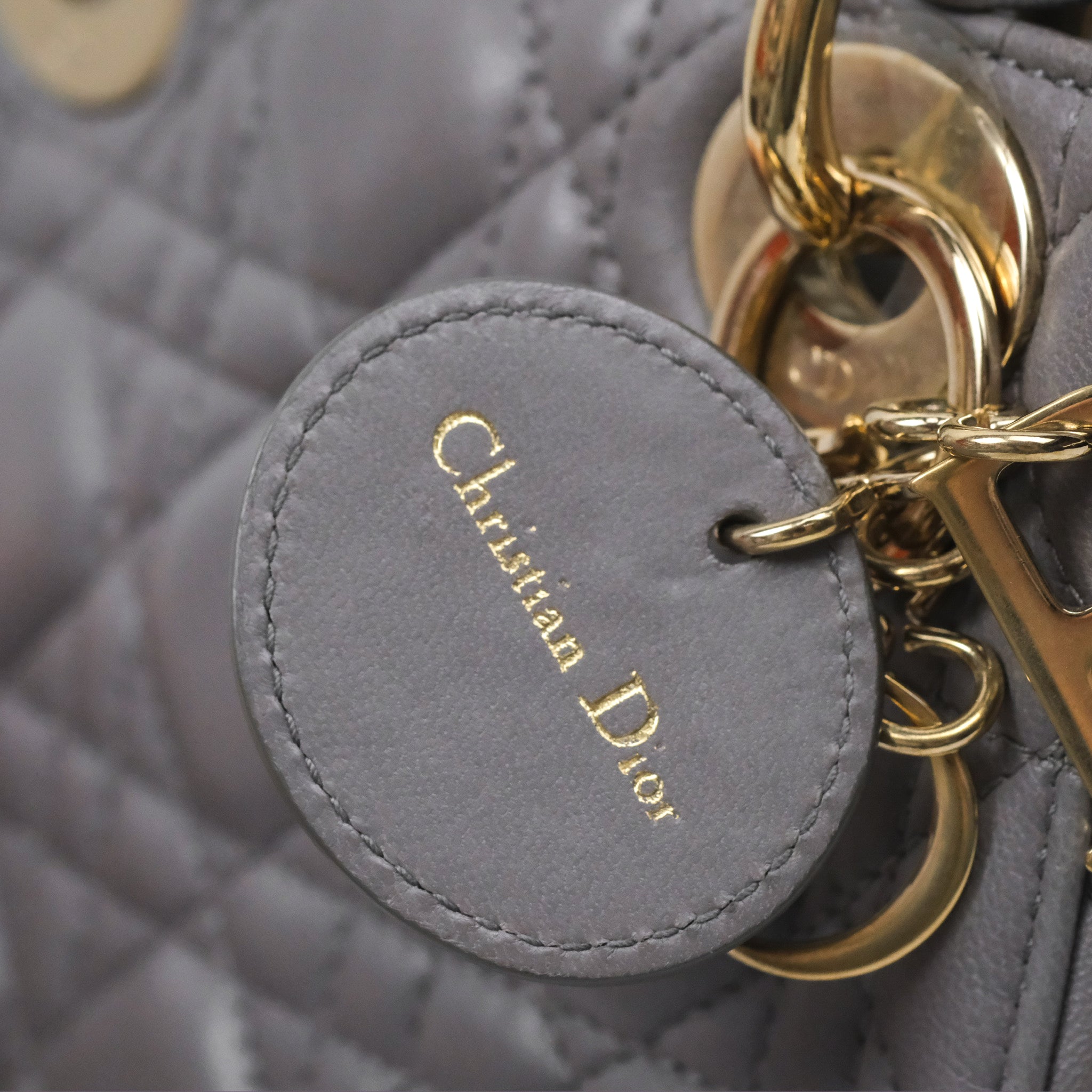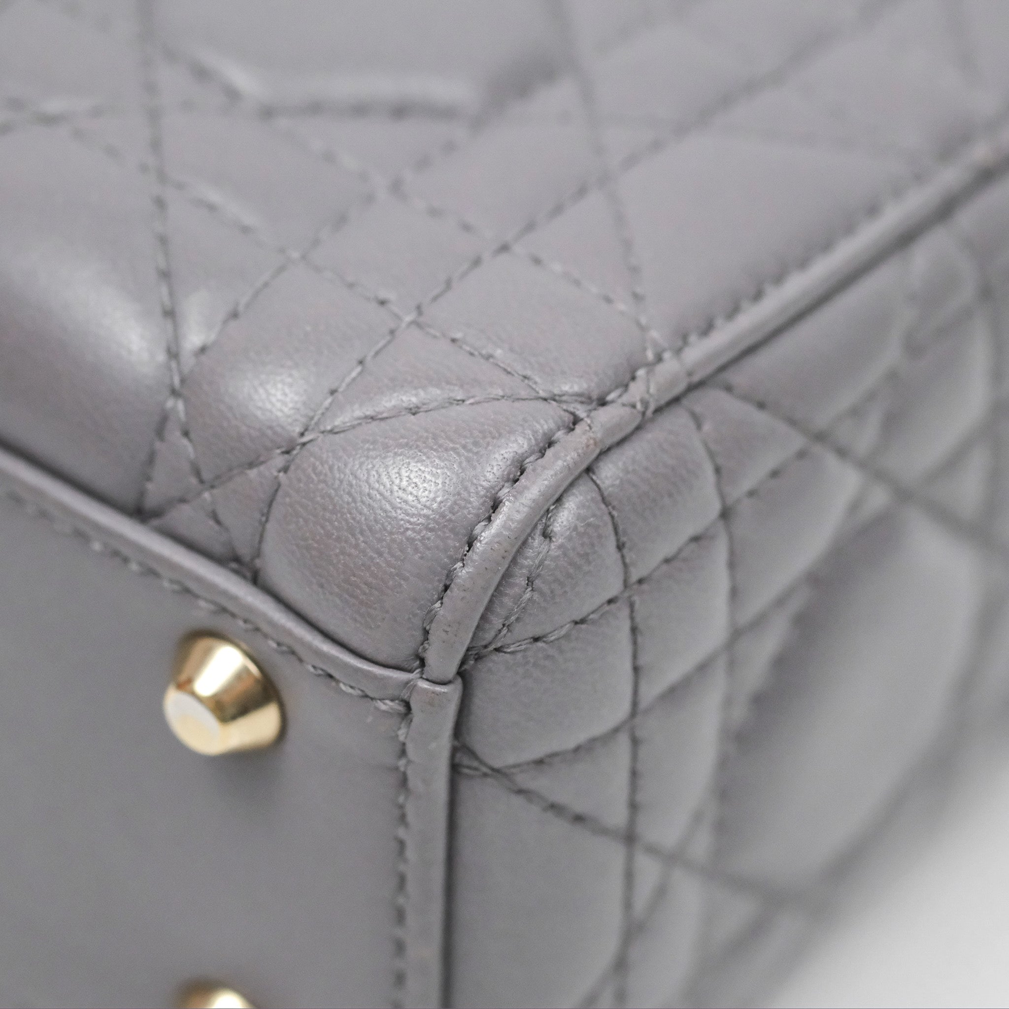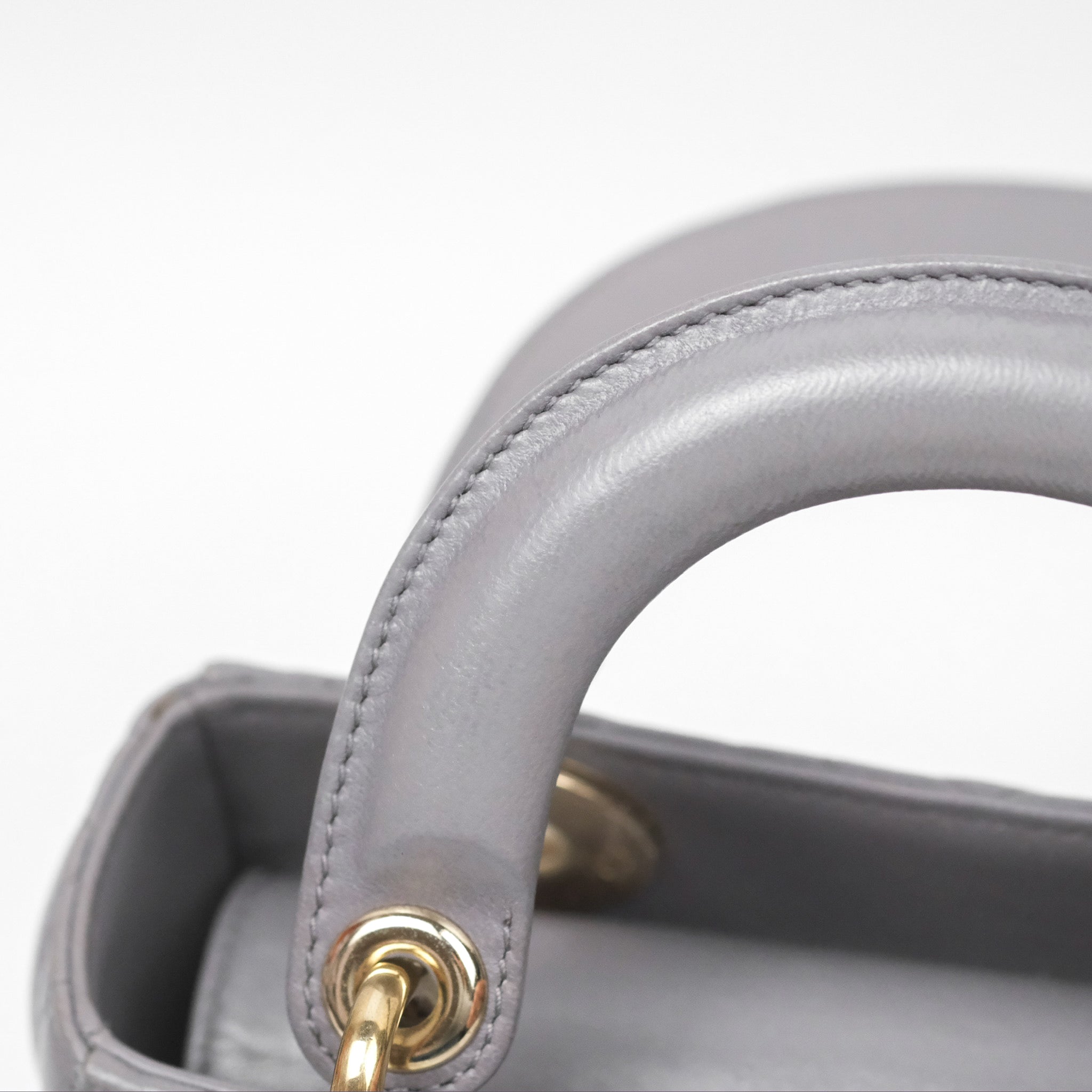 Christian Dior Mini Lady Dior Grey Lambskin Cannage Gold Hardware