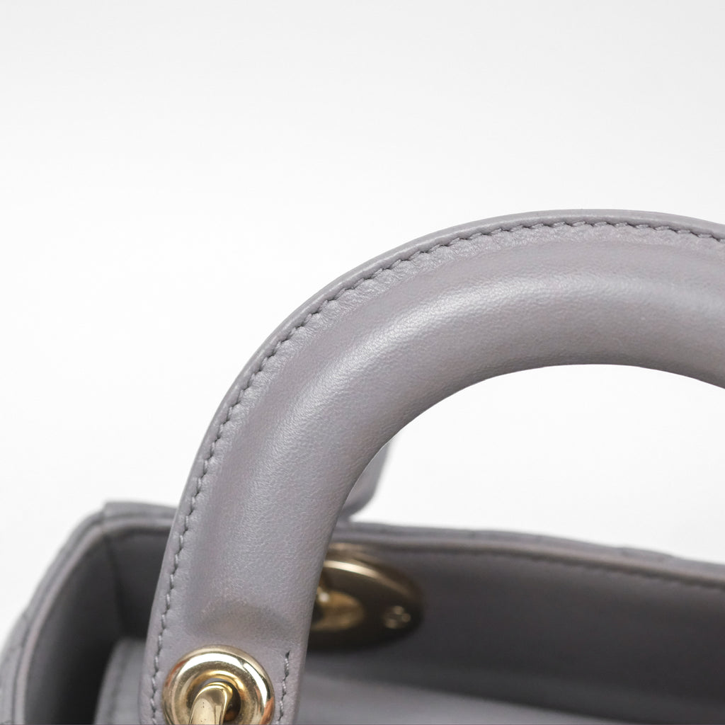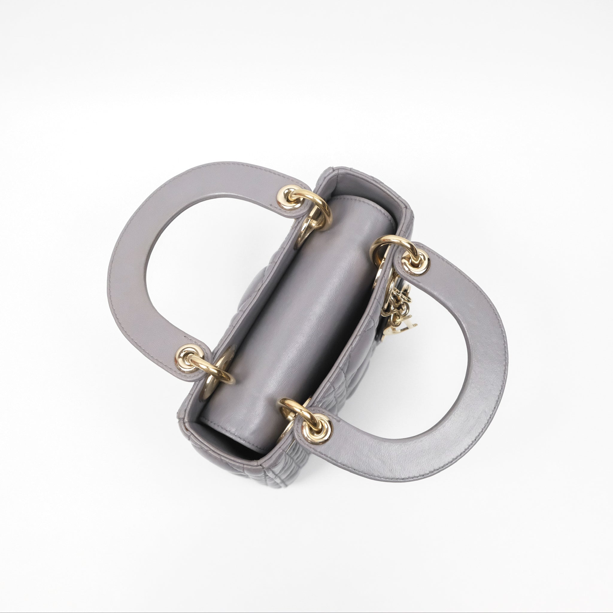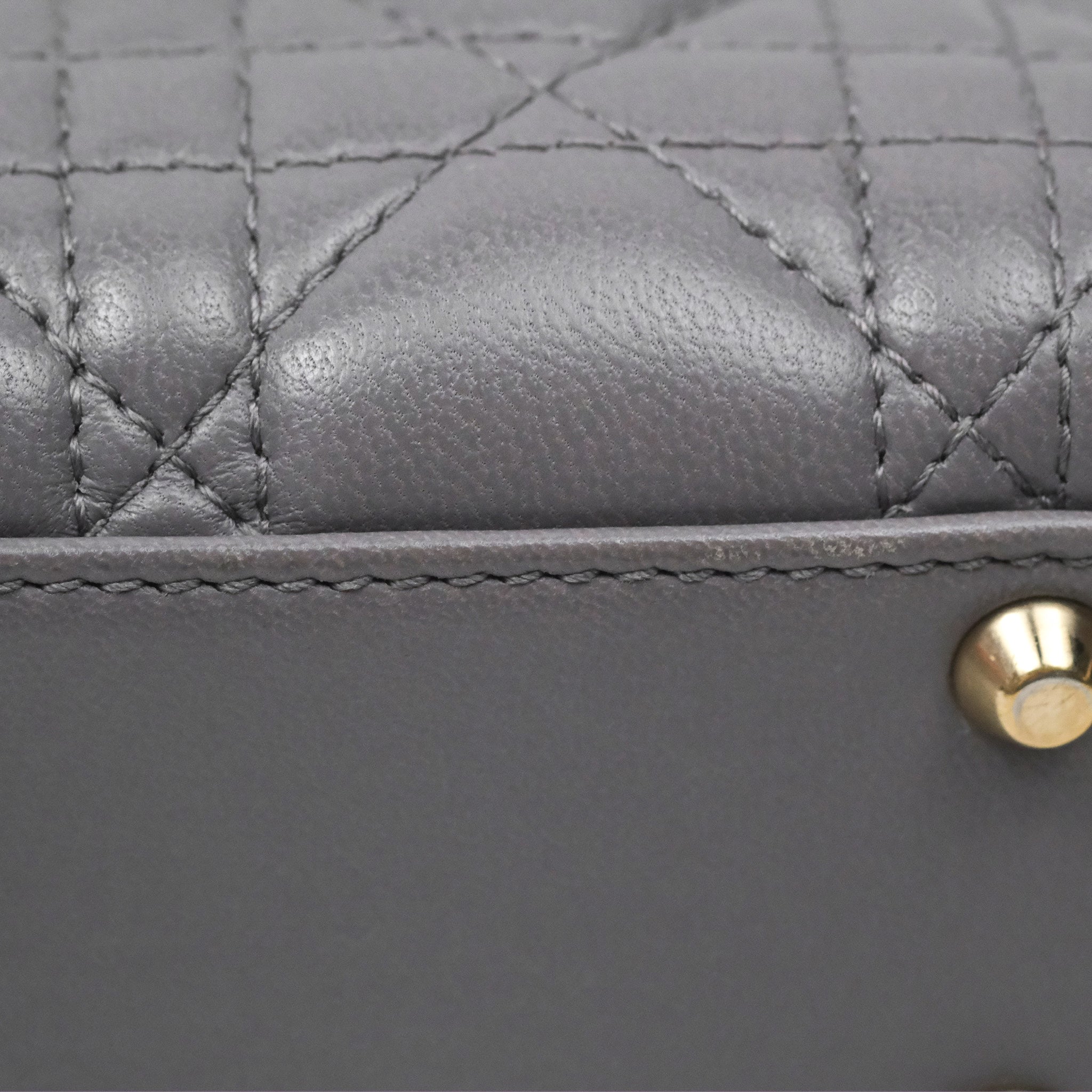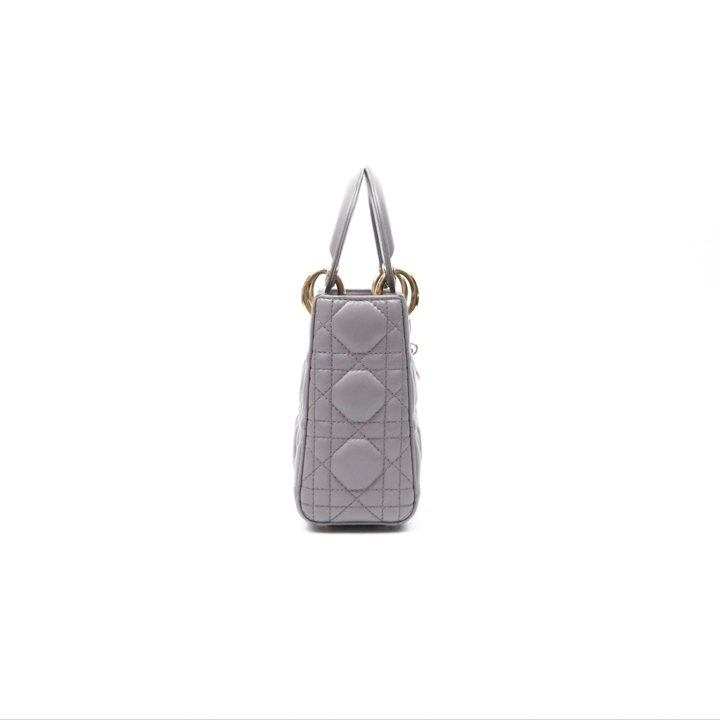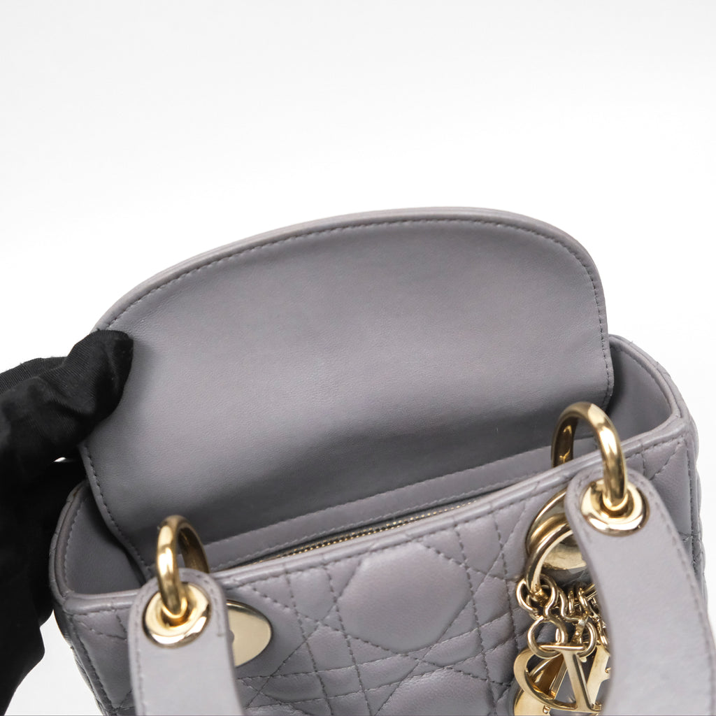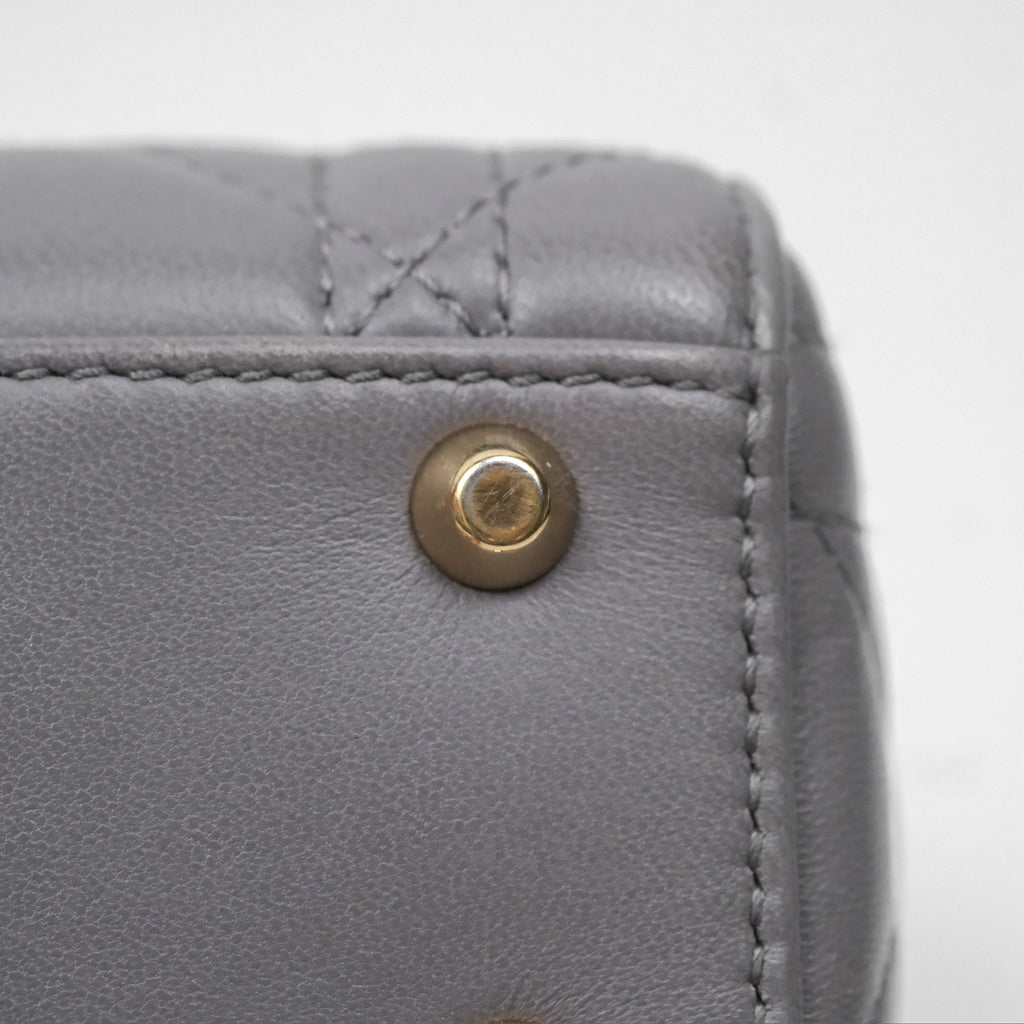 Christian Dior Mini Lady Dior Grey Lambskin Cannage Gold Hardware