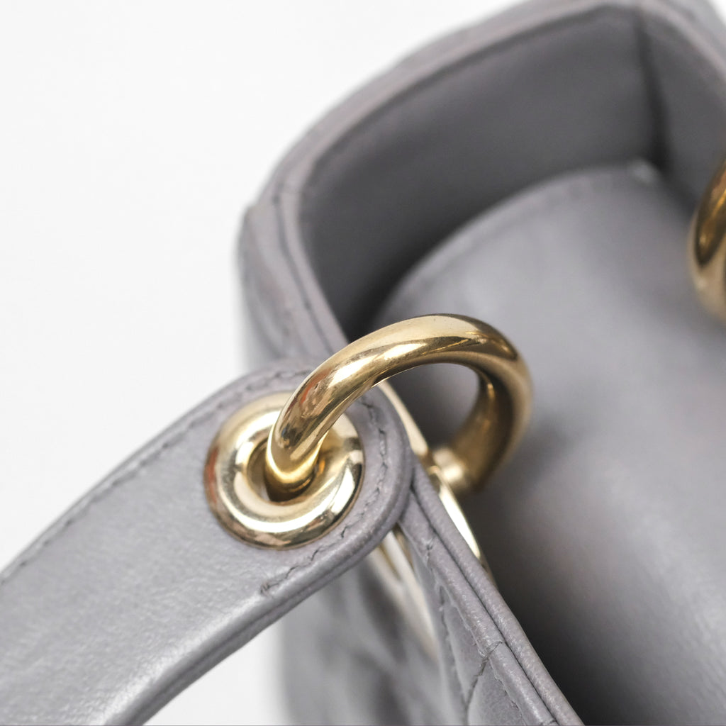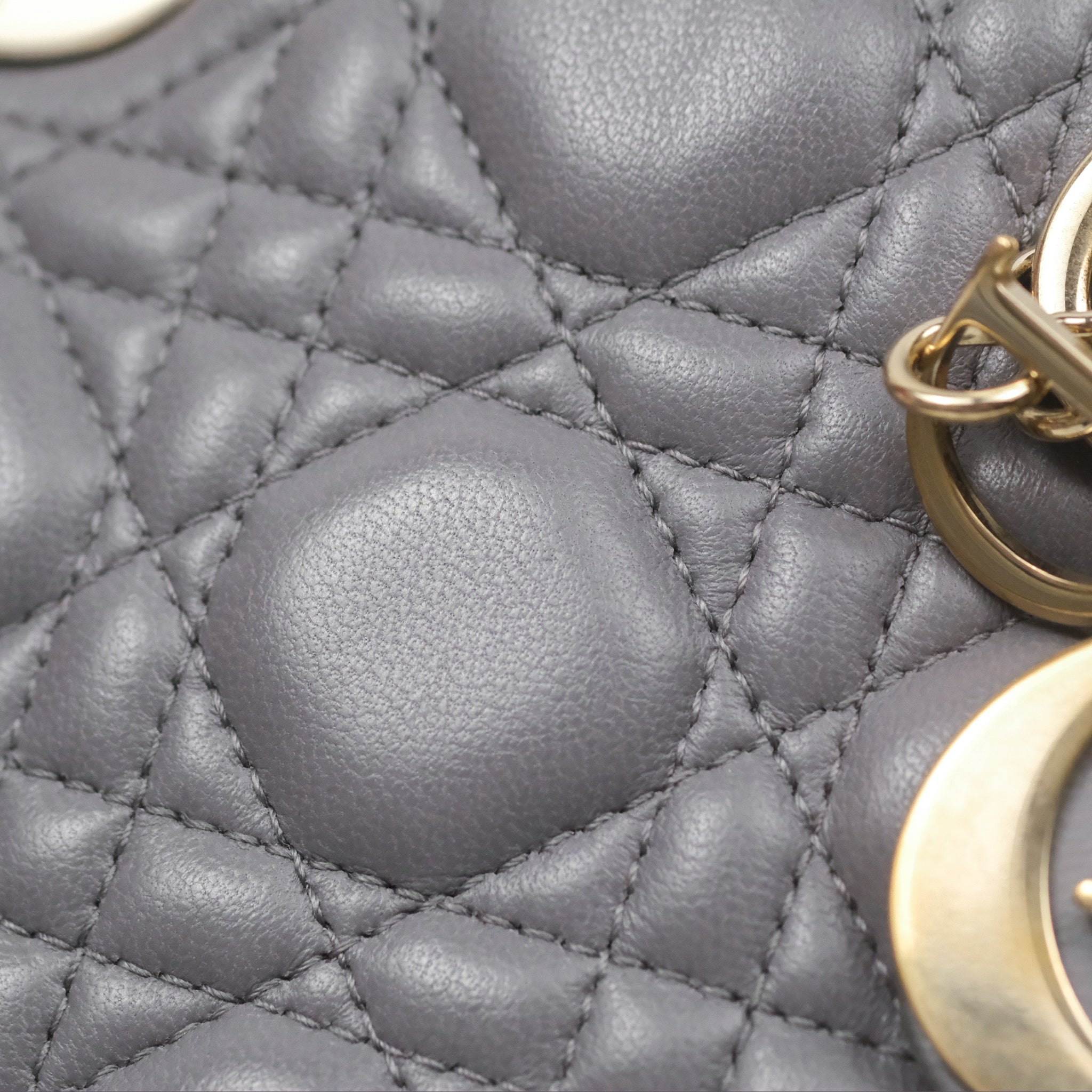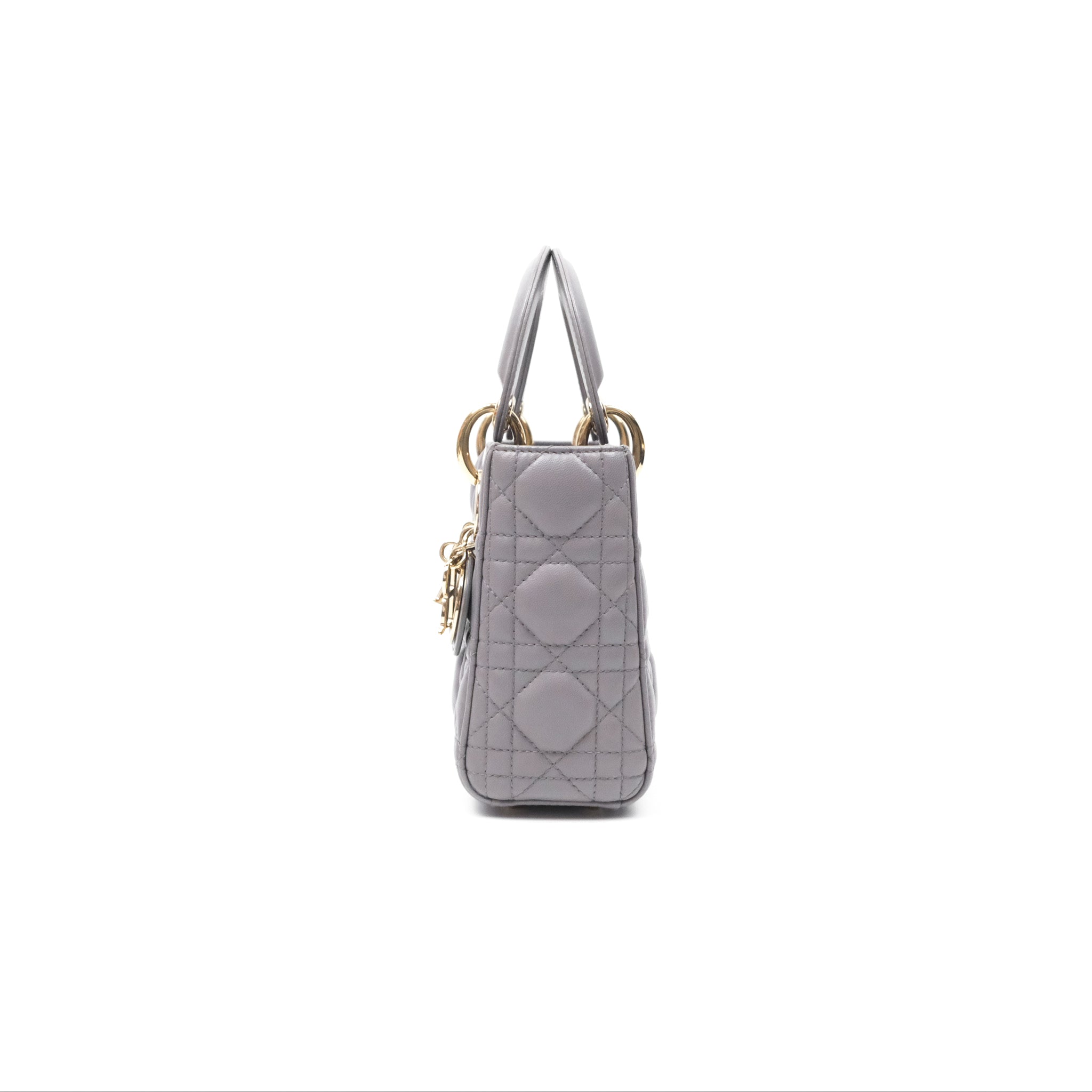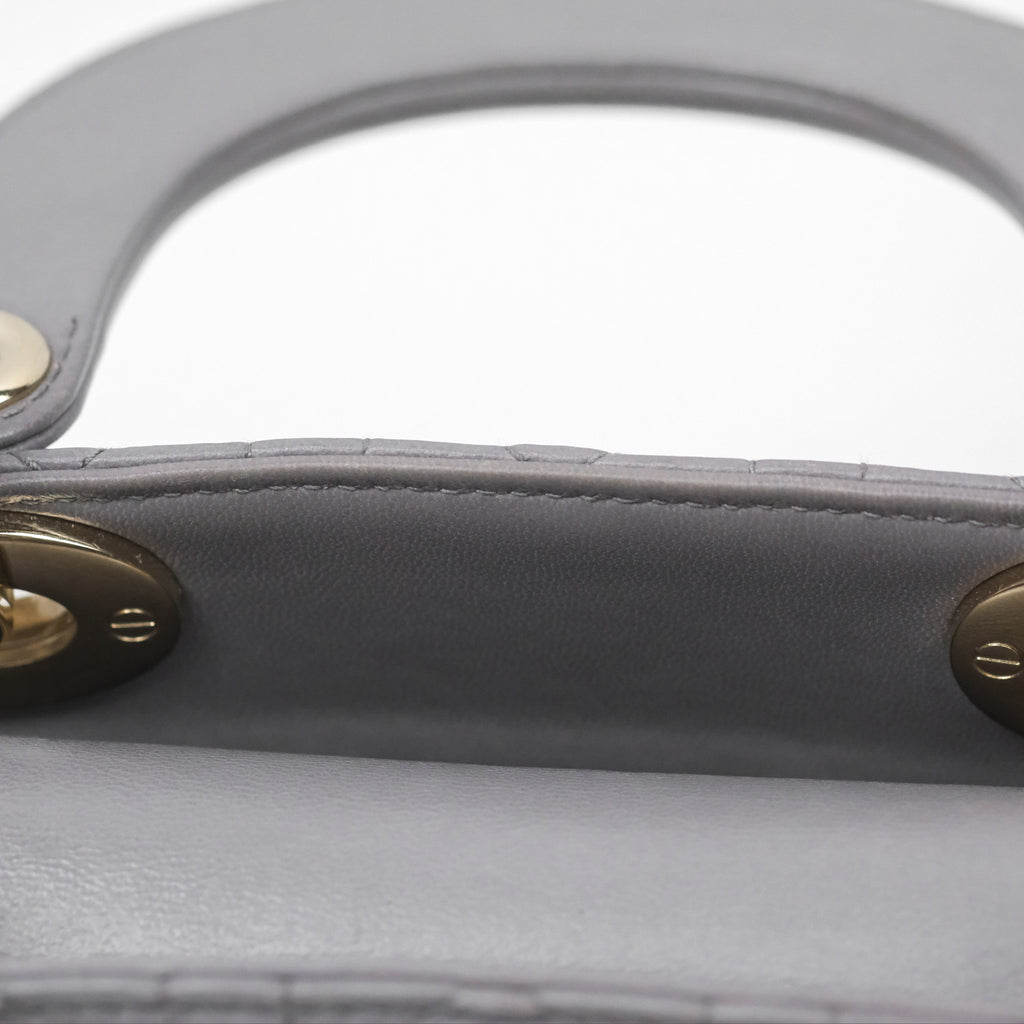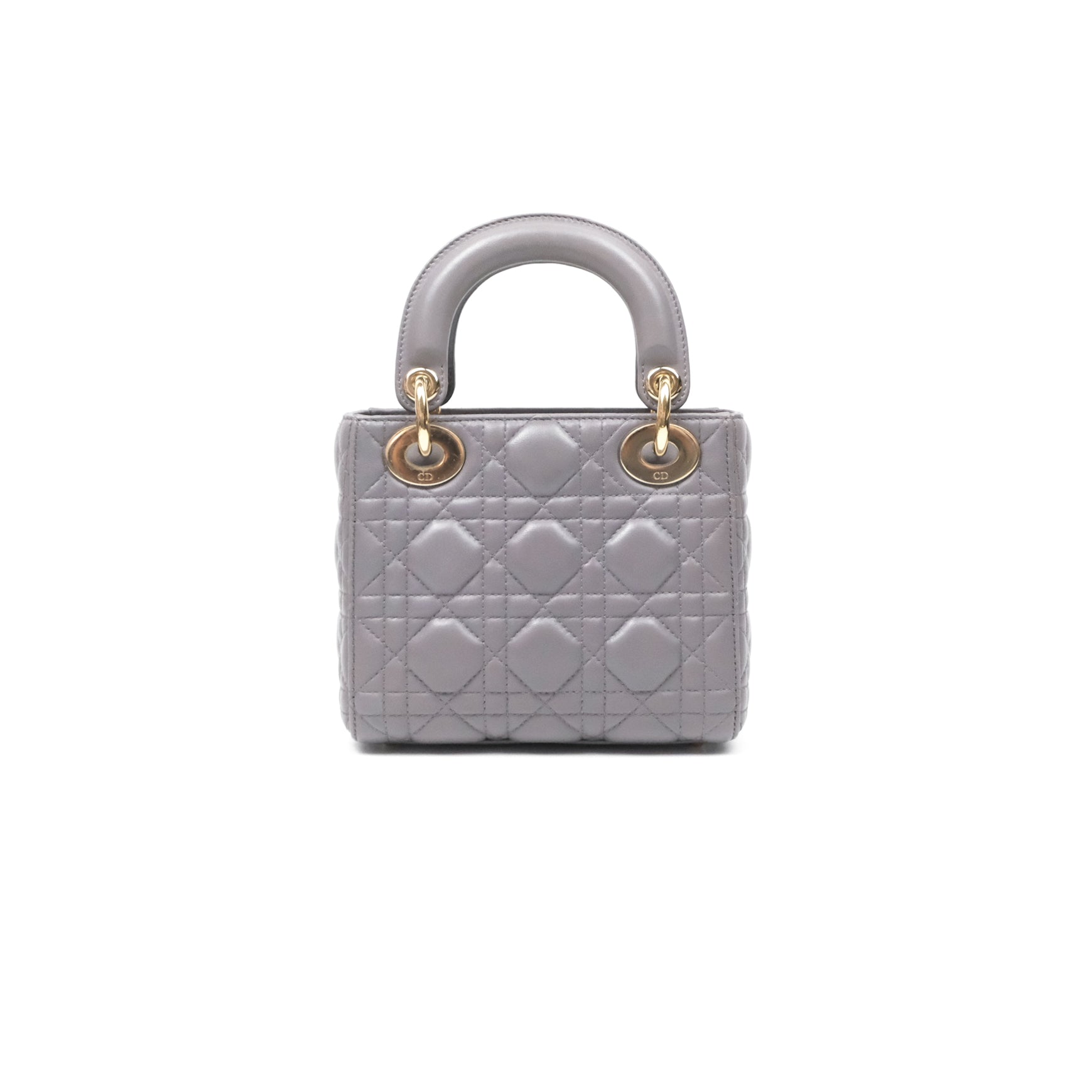 Christian Dior Mini Lady Dior Grey Lambskin Cannage Gold Hardware