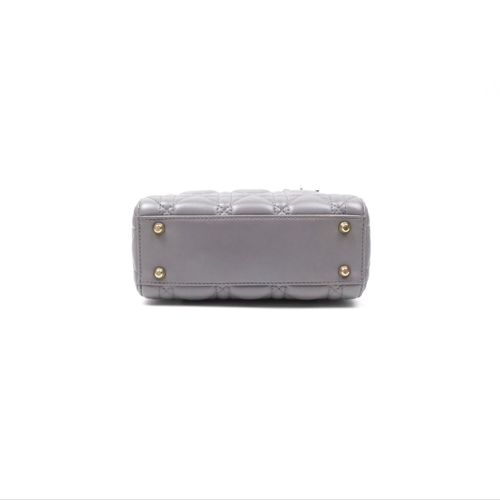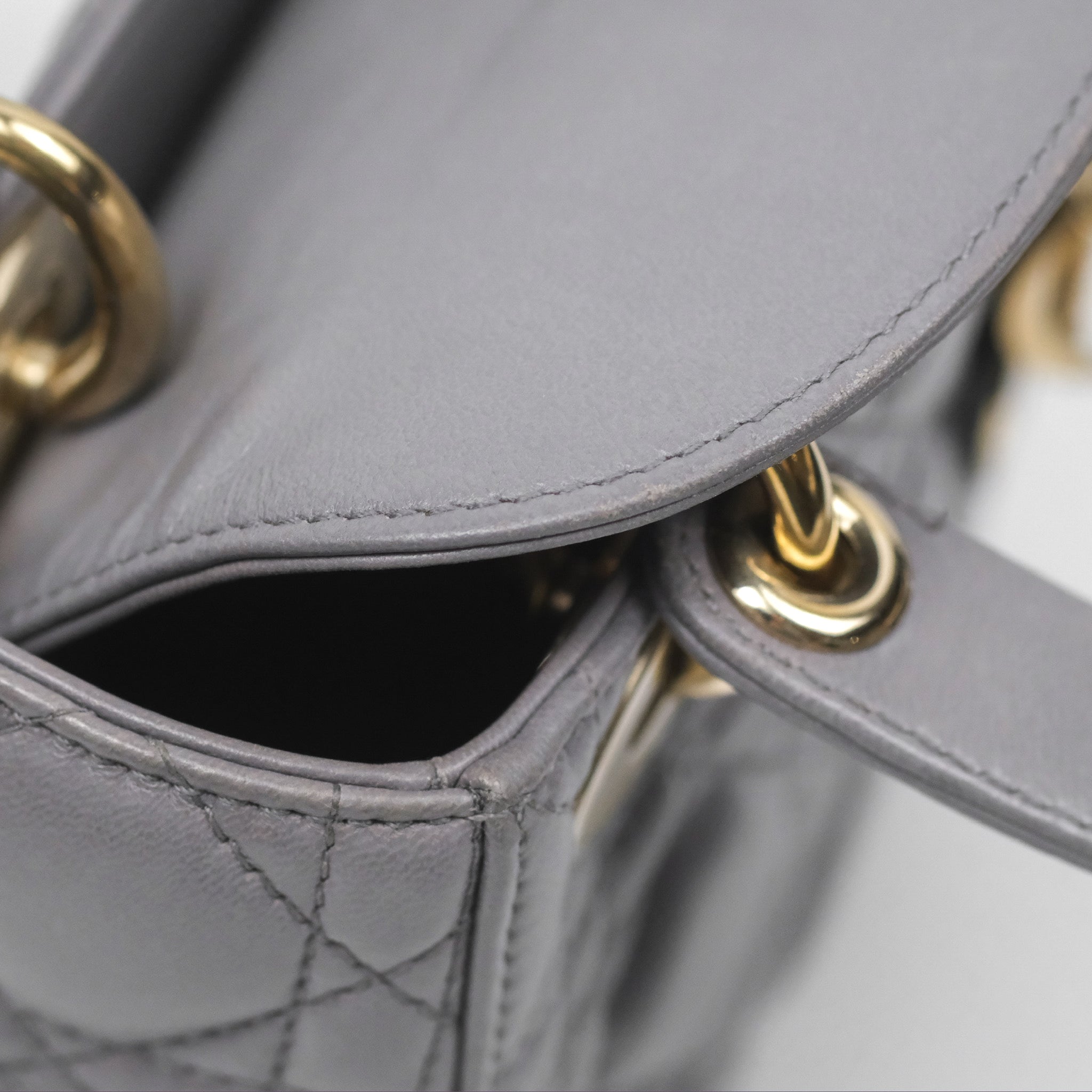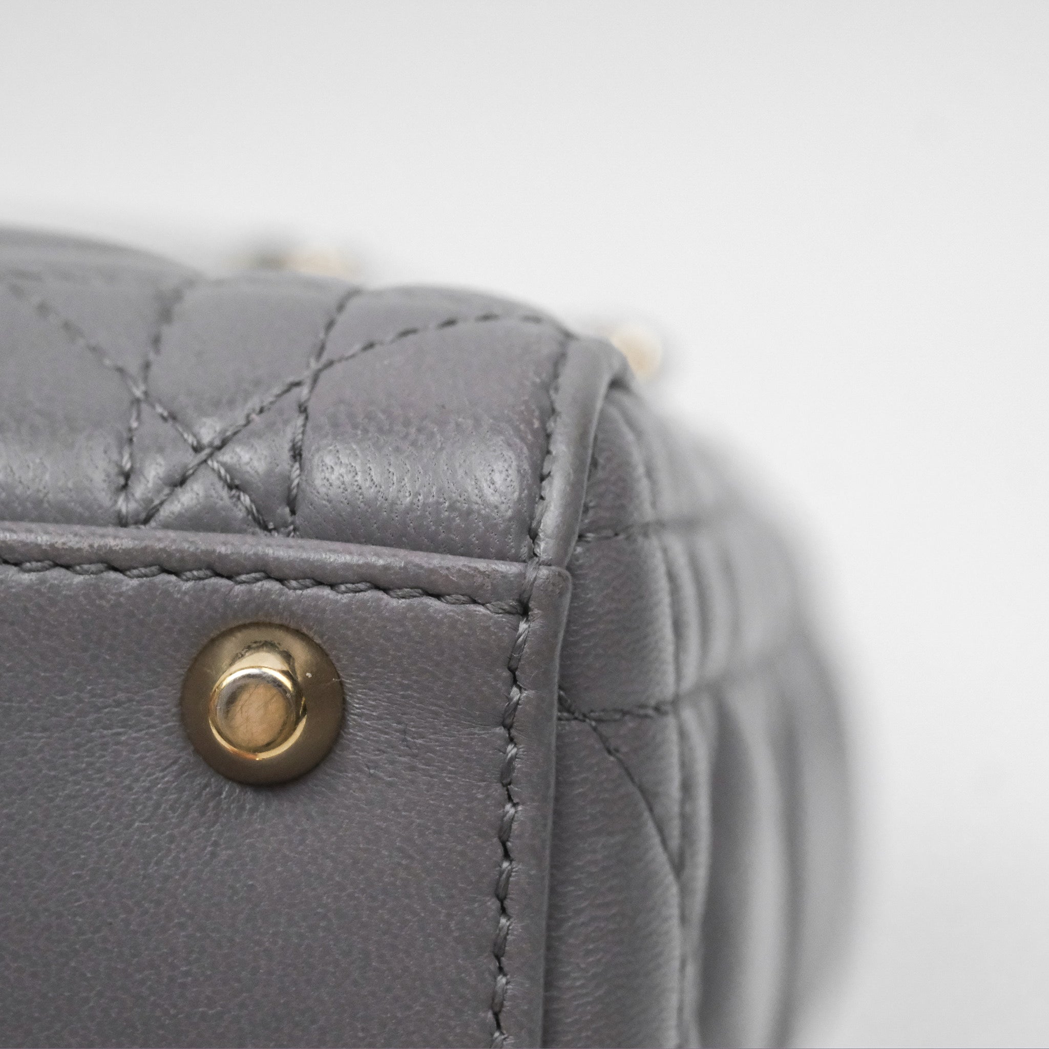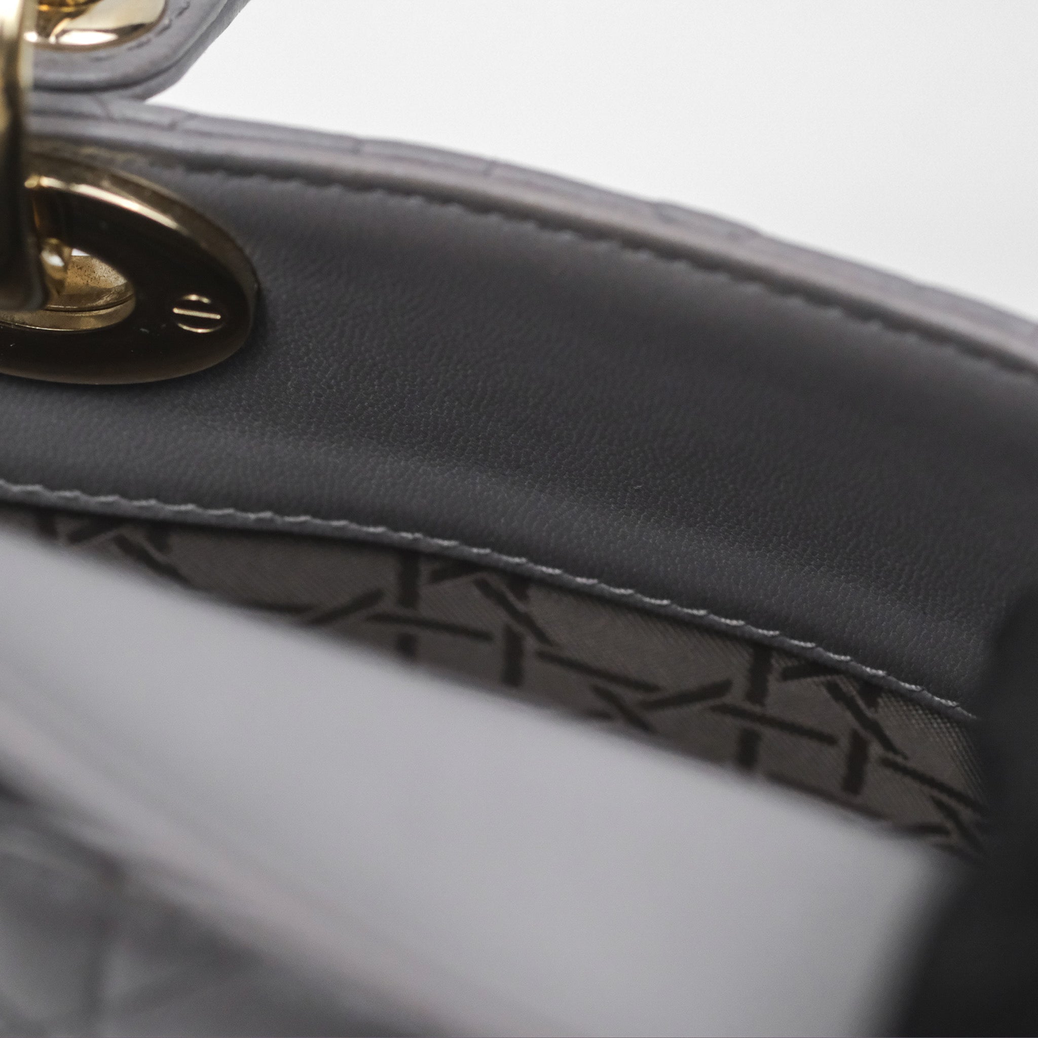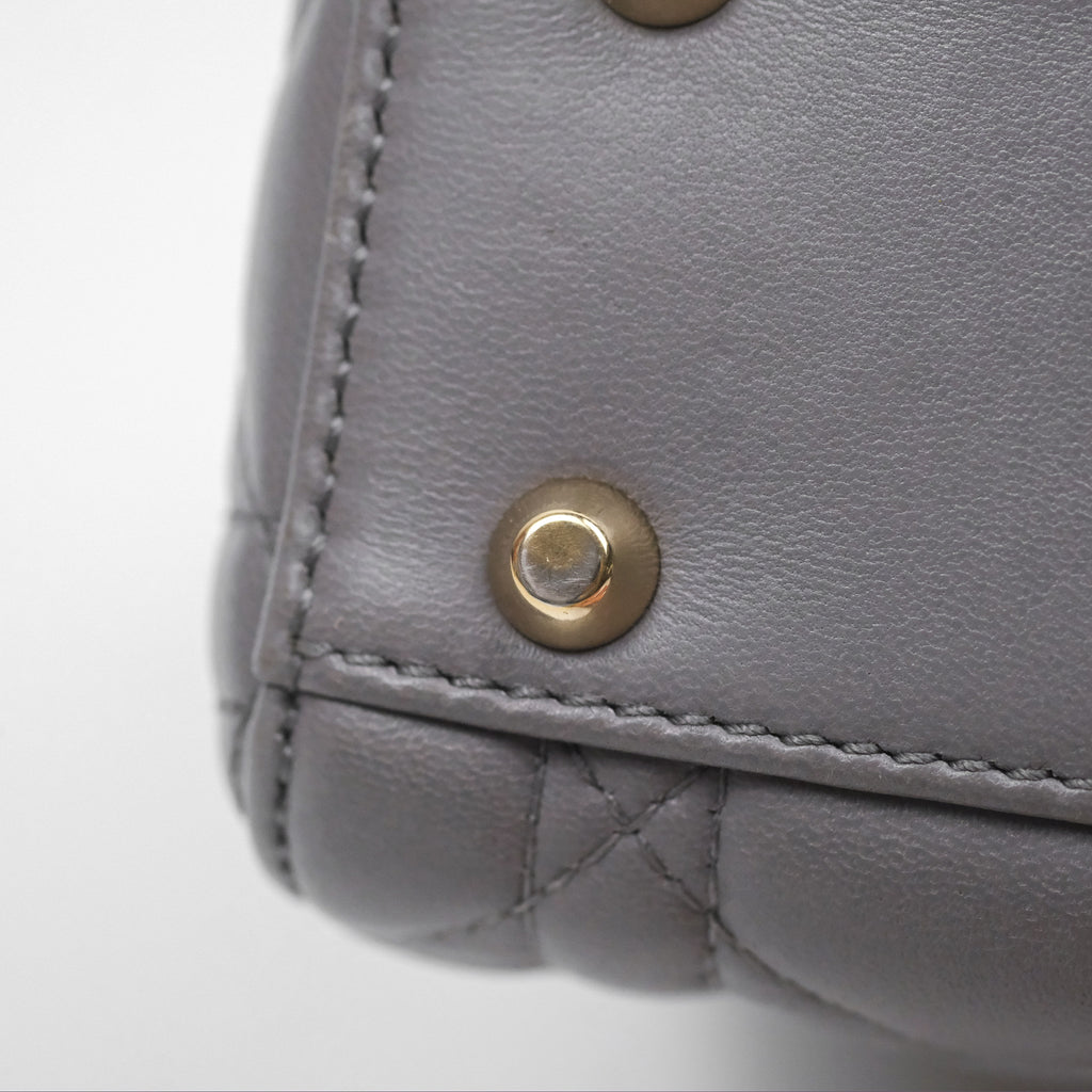 Christian Dior Mini Lady Dior Grey Lambskin Cannage Gold Hardware