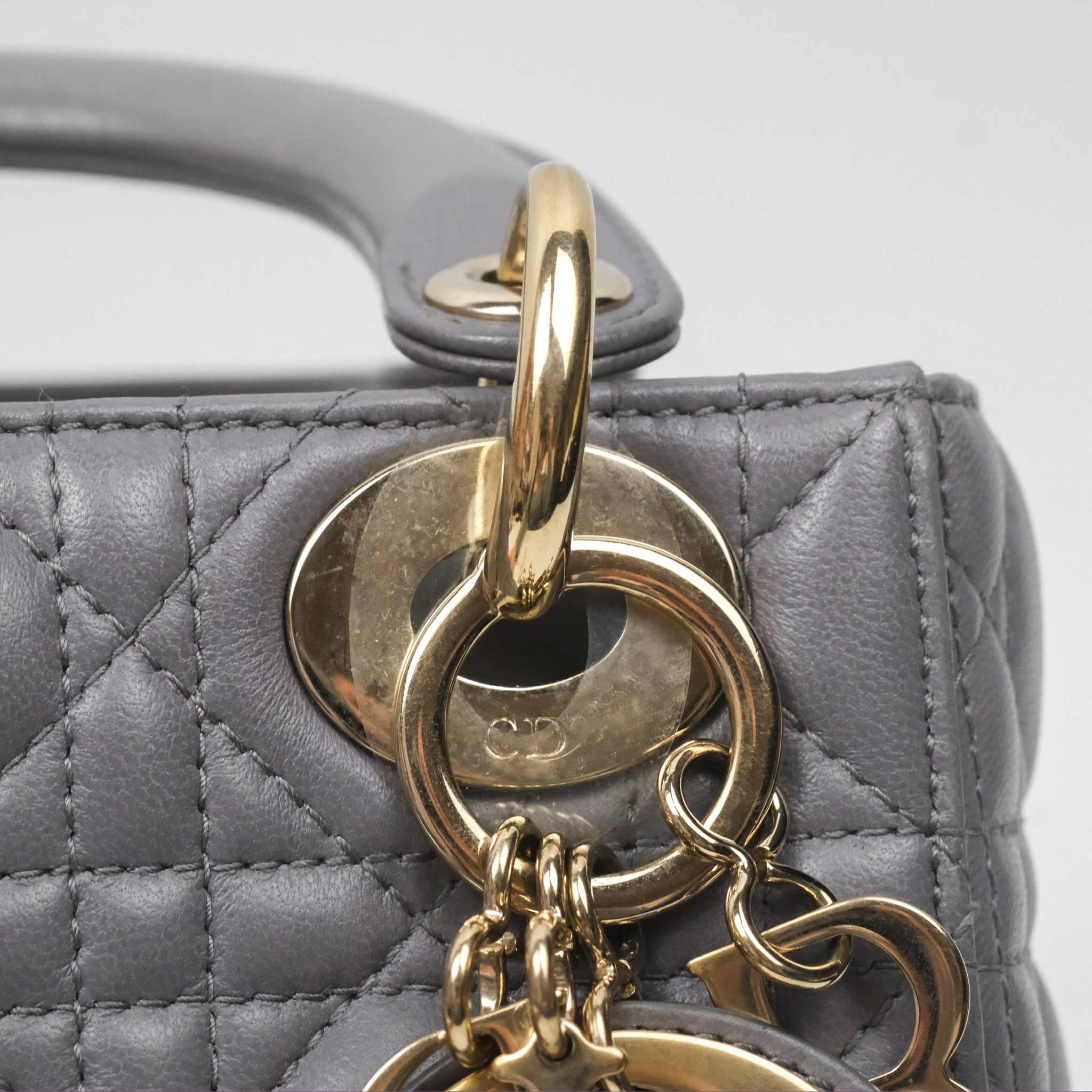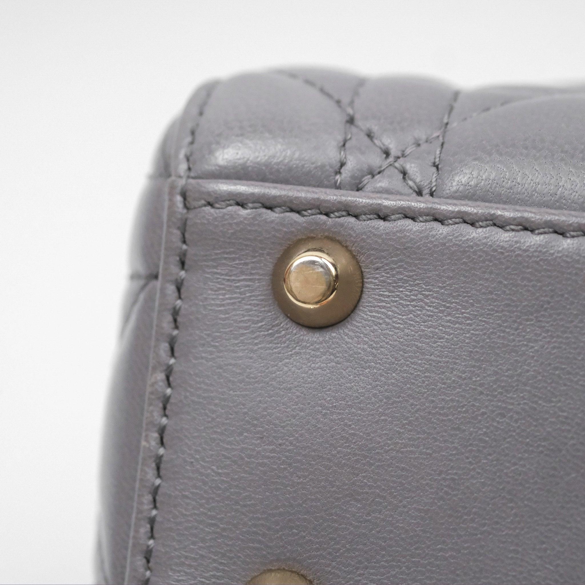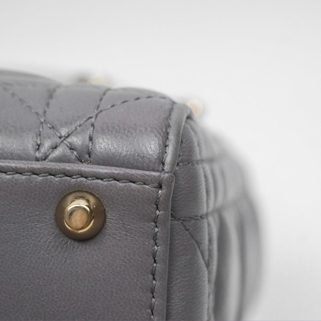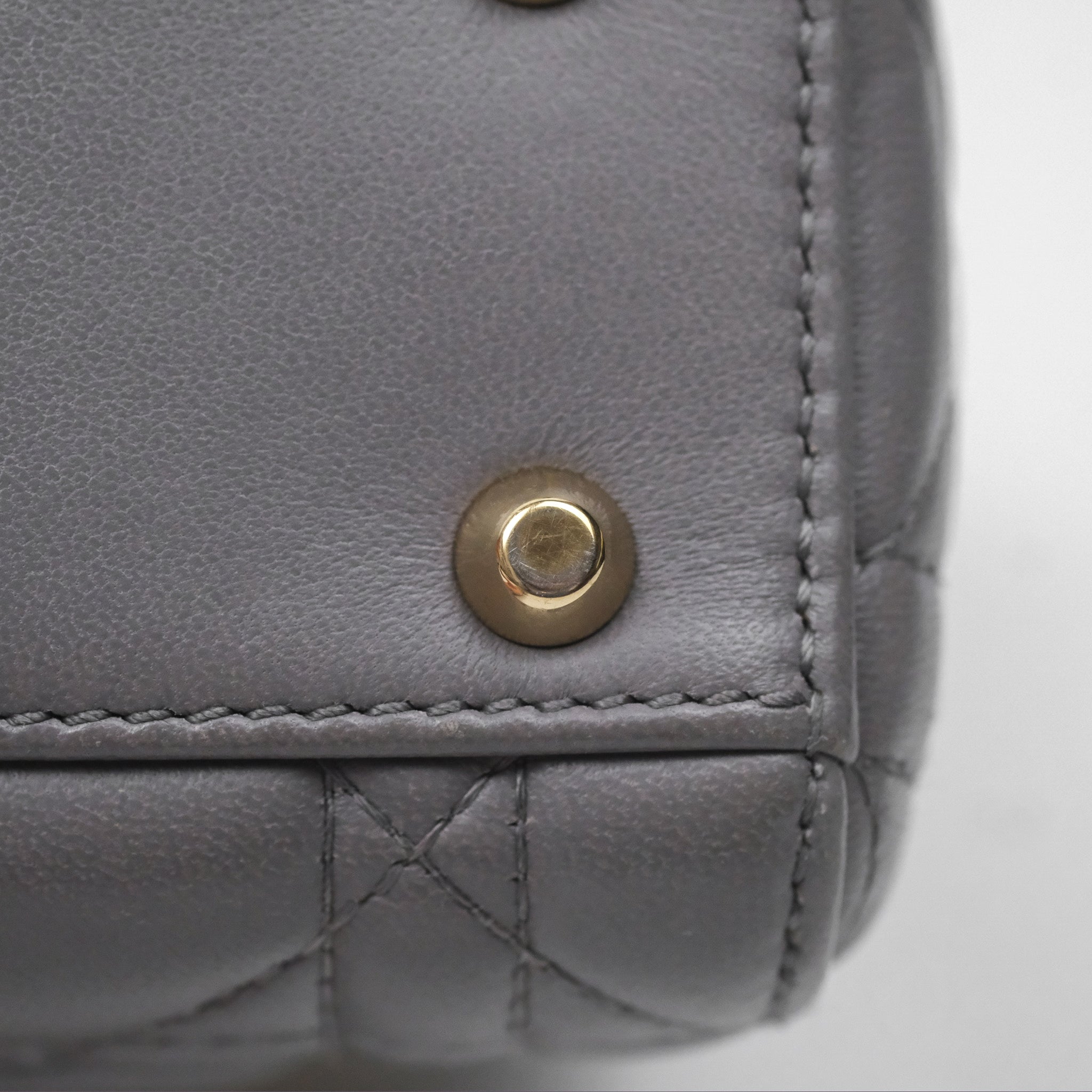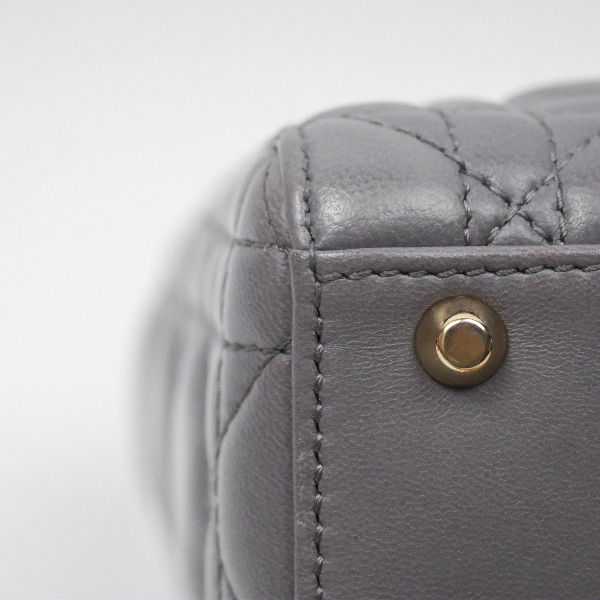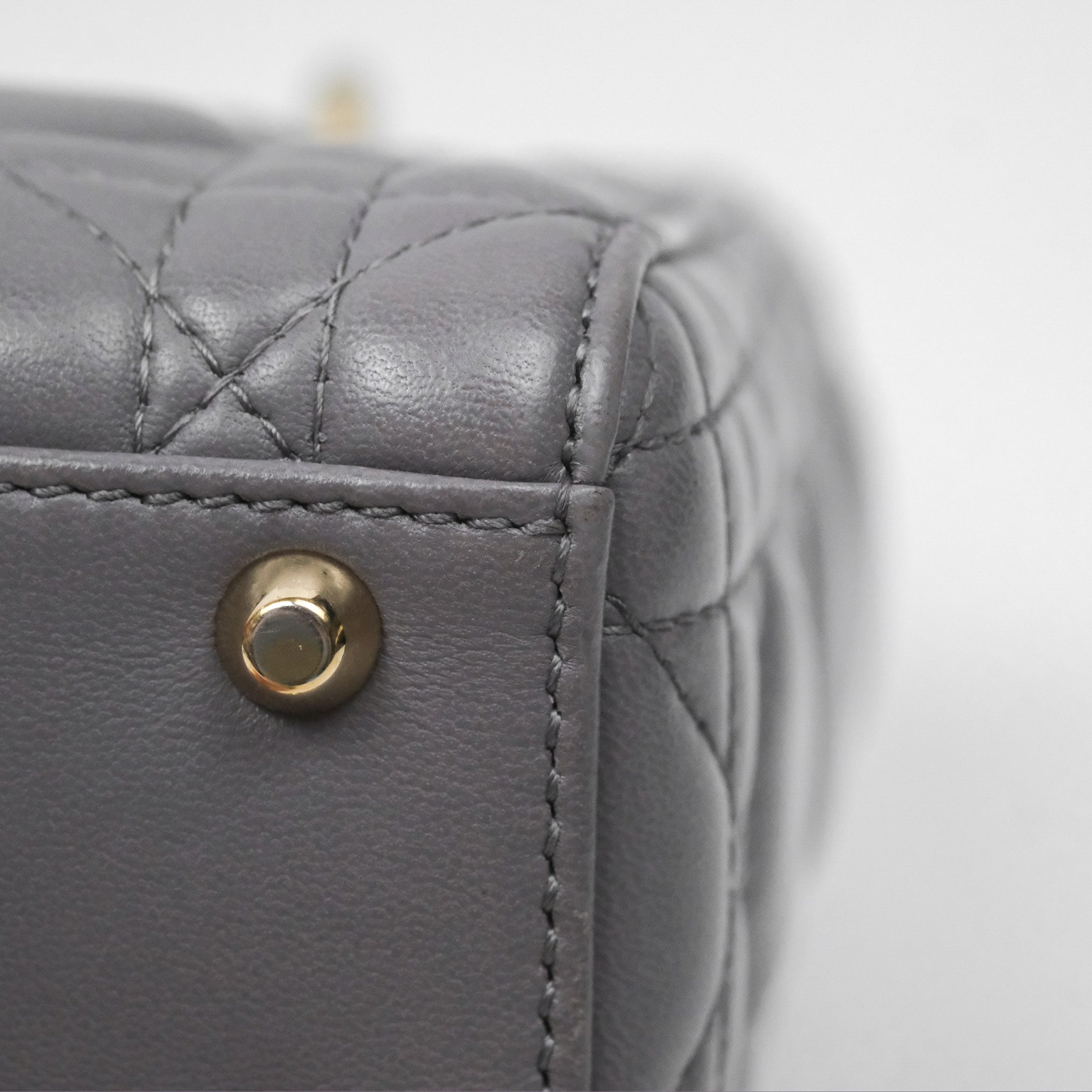 Christian Dior Mini Lady Dior Grey Lambskin Cannage Gold Hardware