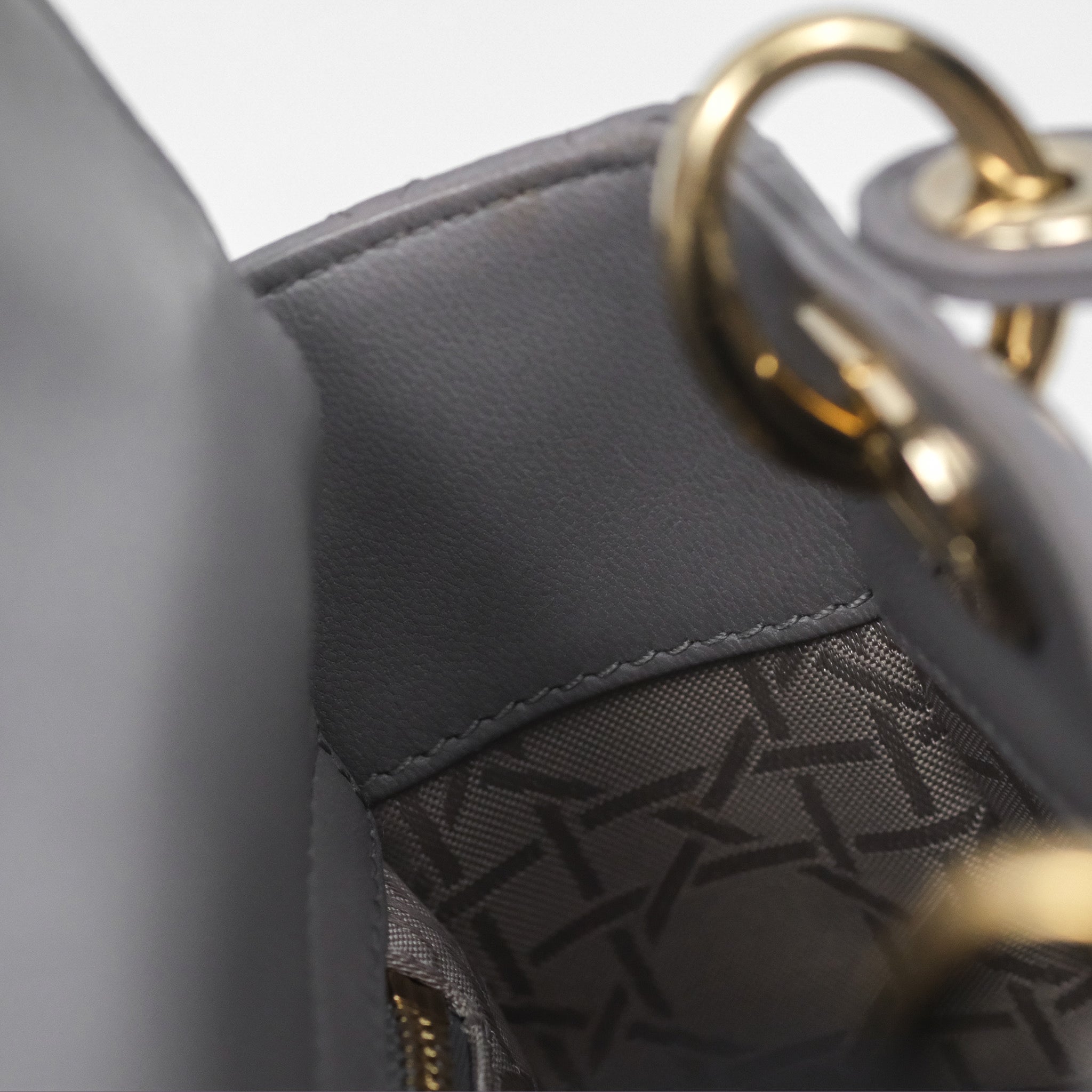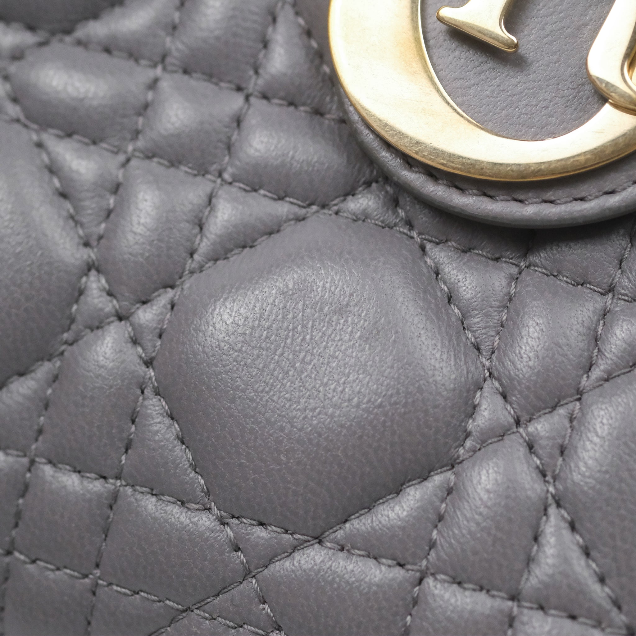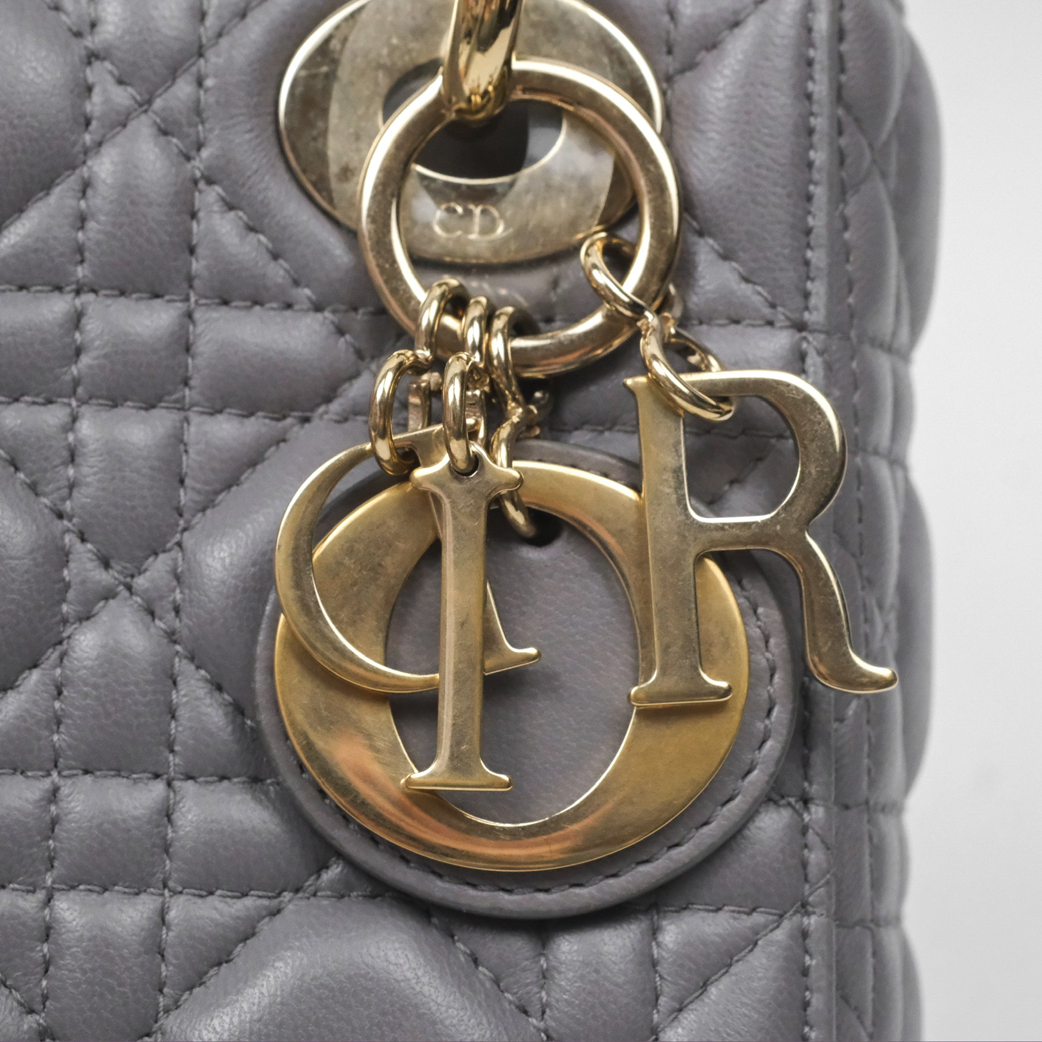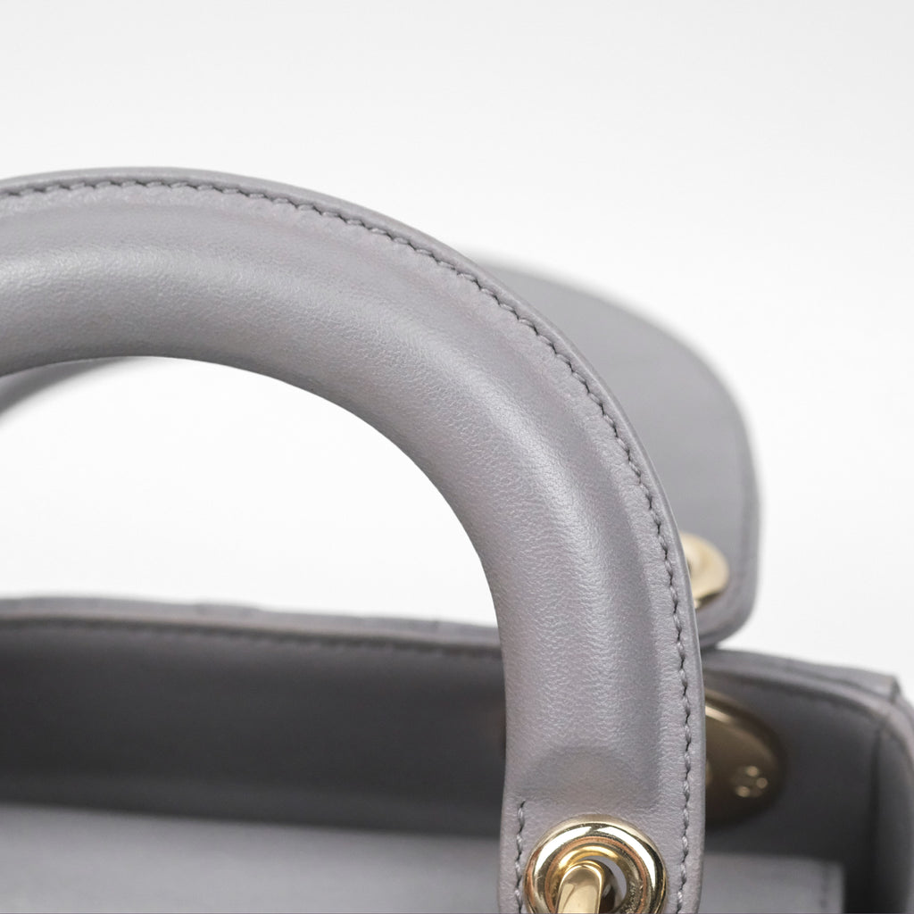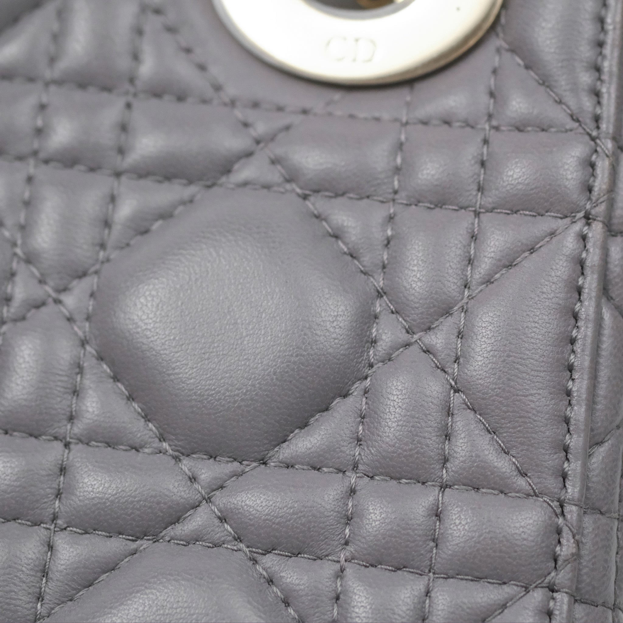 Christian Dior Mini Lady Dior Grey Lambskin Cannage Gold Hardware