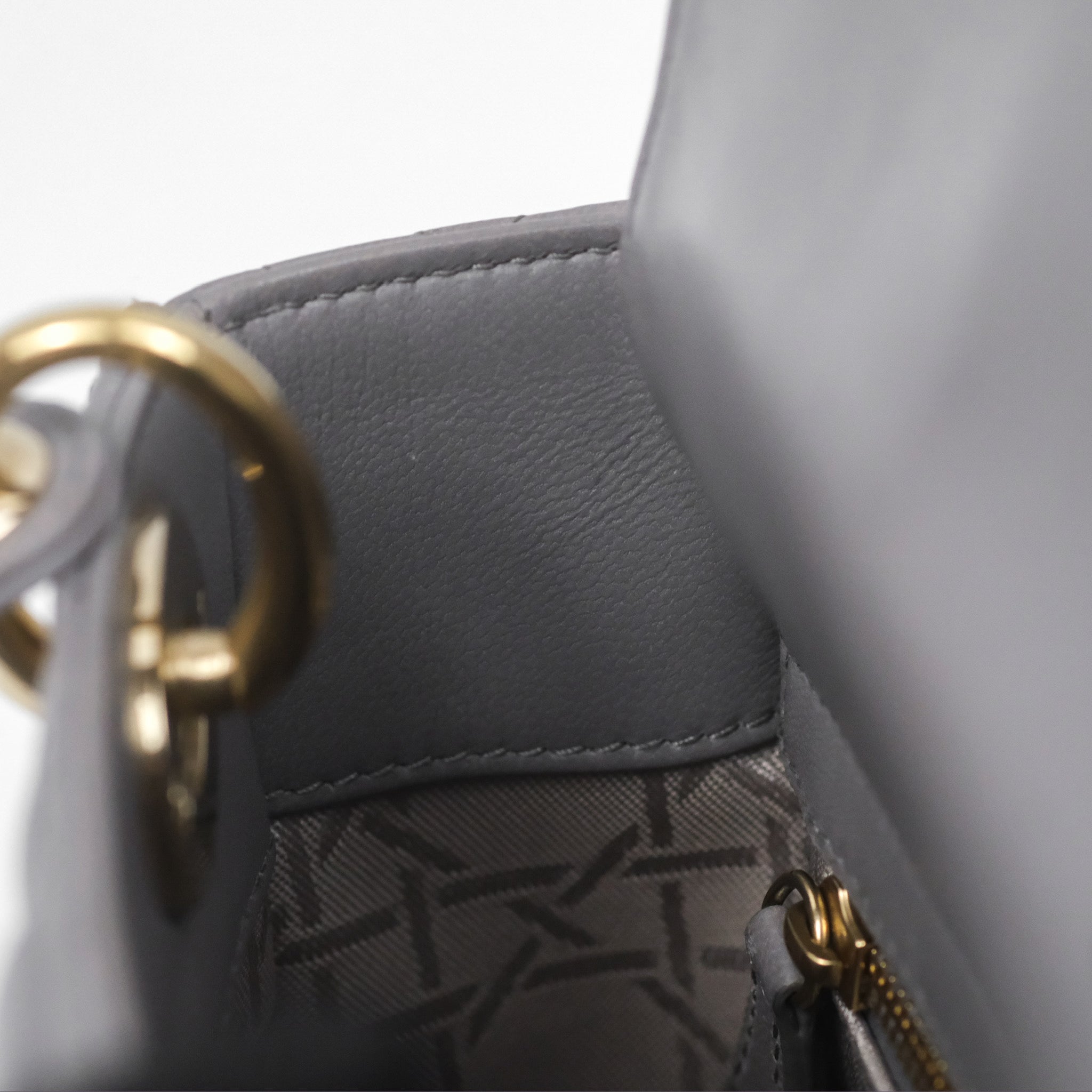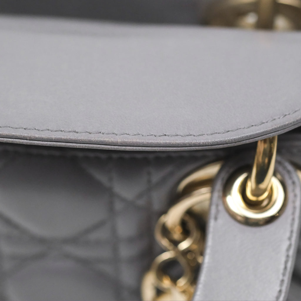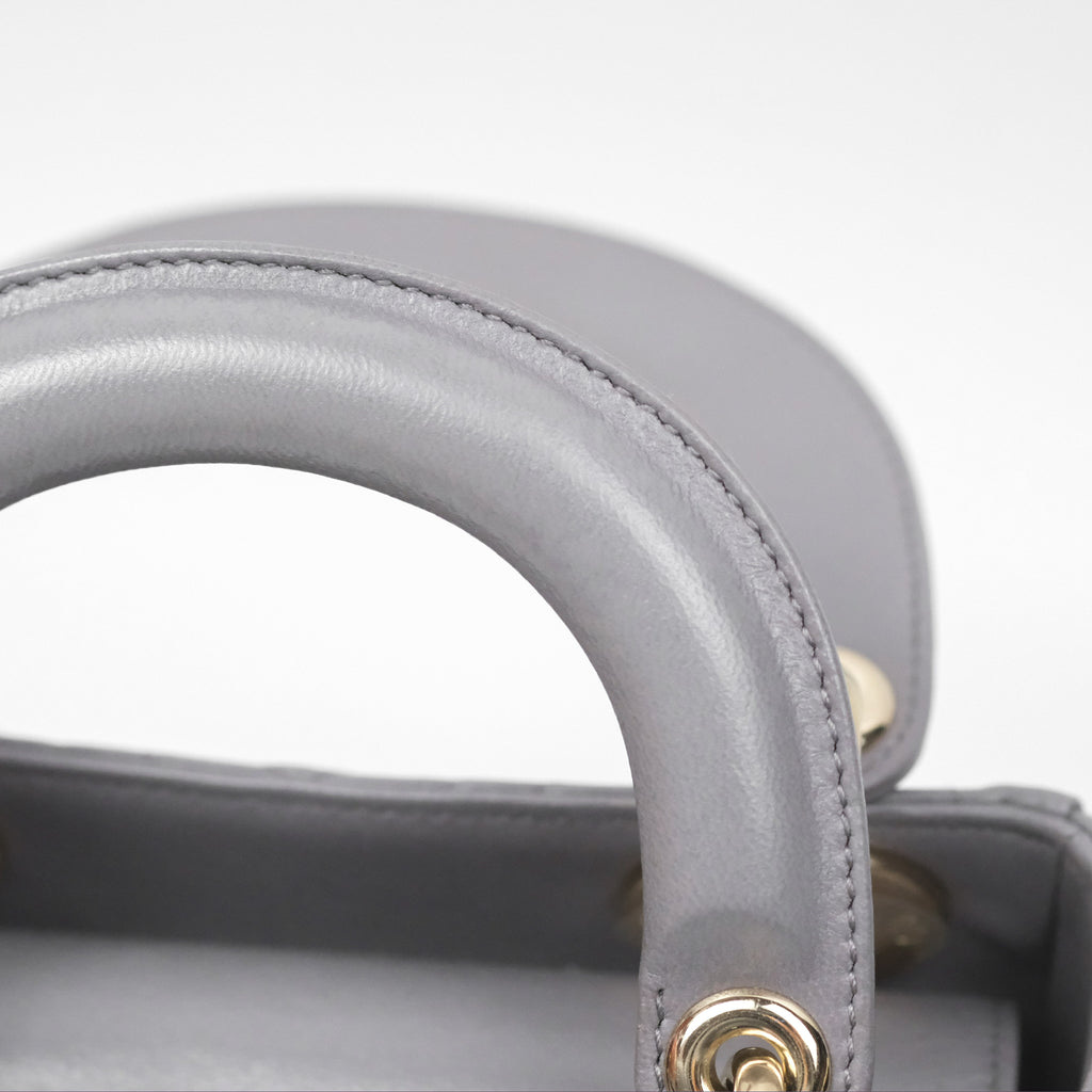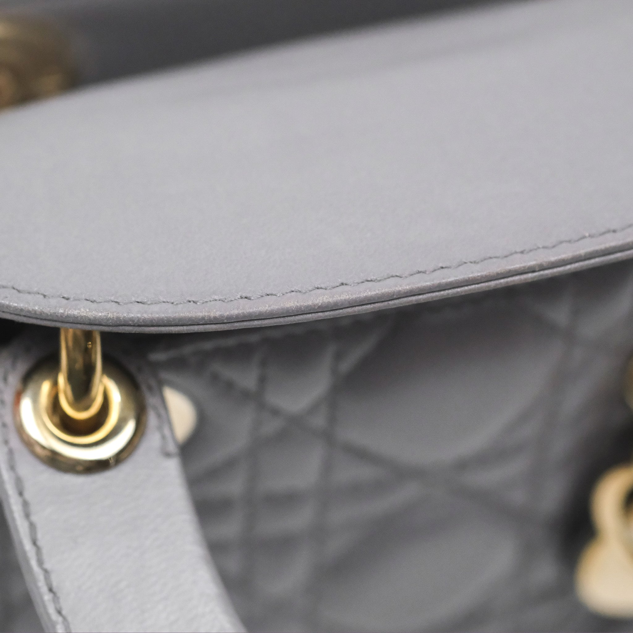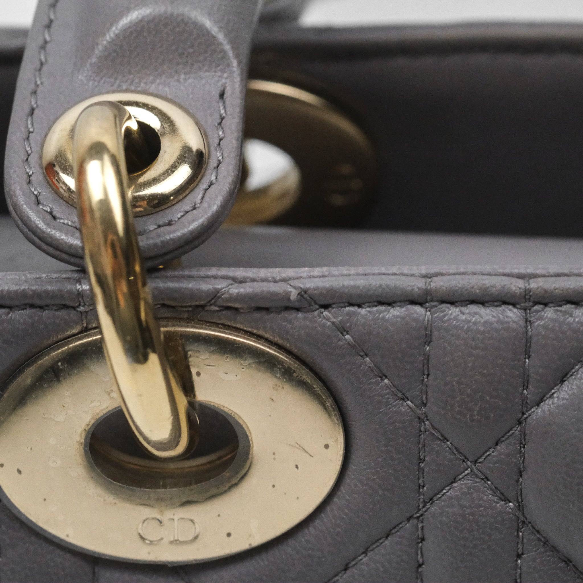 Christian Dior Mini Lady Dior Grey Lambskin Cannage Gold Hardware